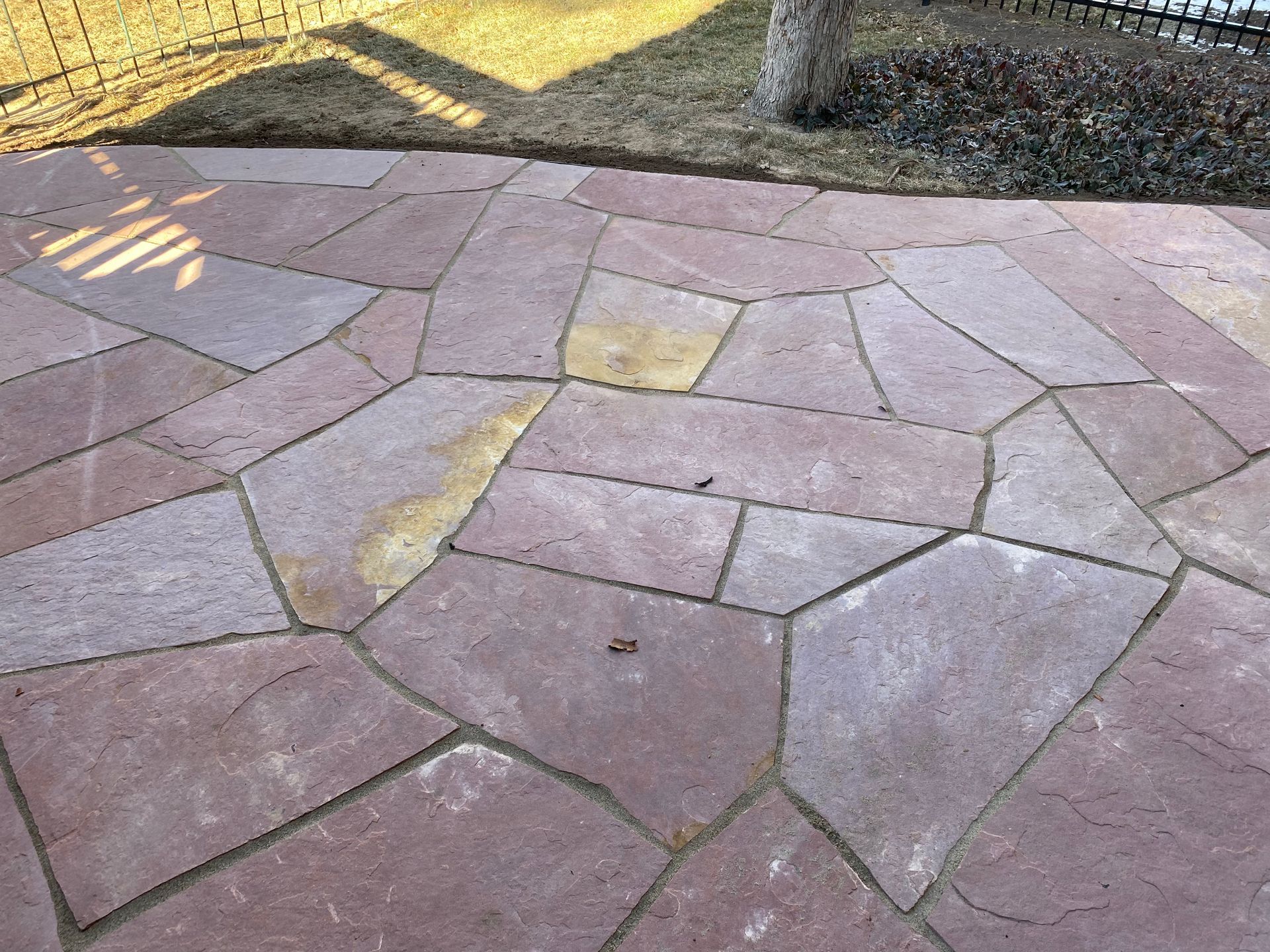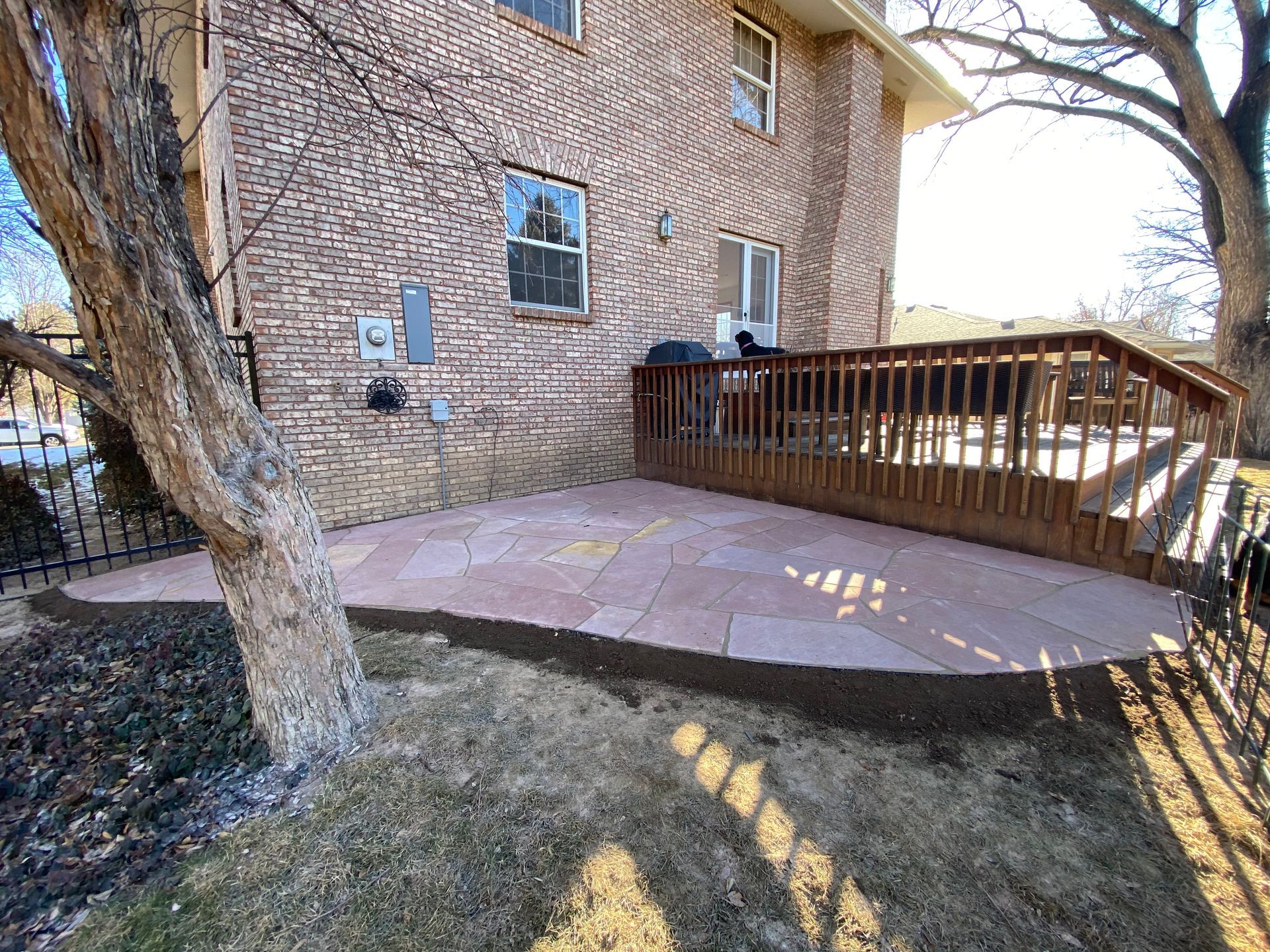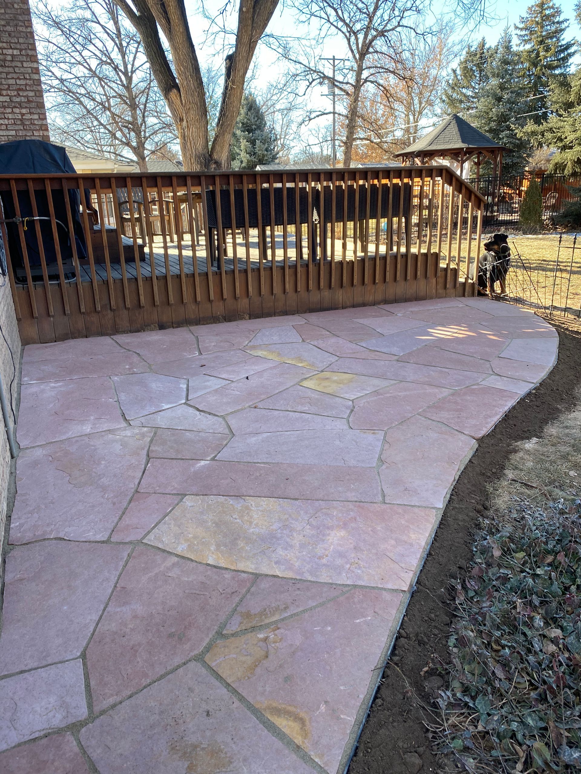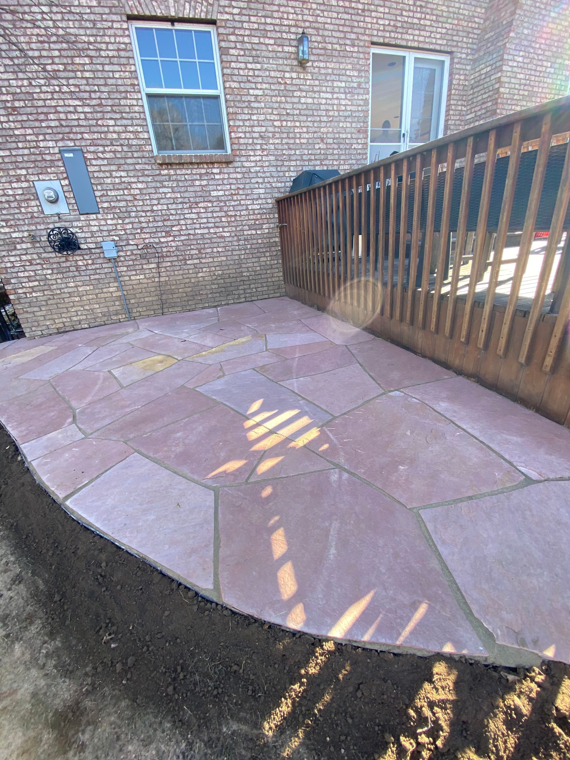 Addition of Colored red flagstone patio in a previously unused area of back yard. Greeley, CO 2020
