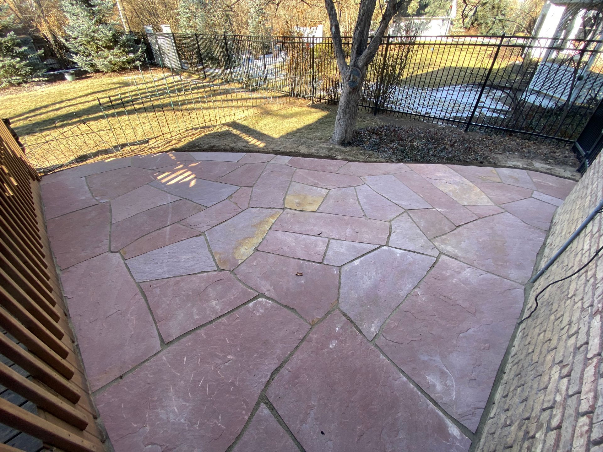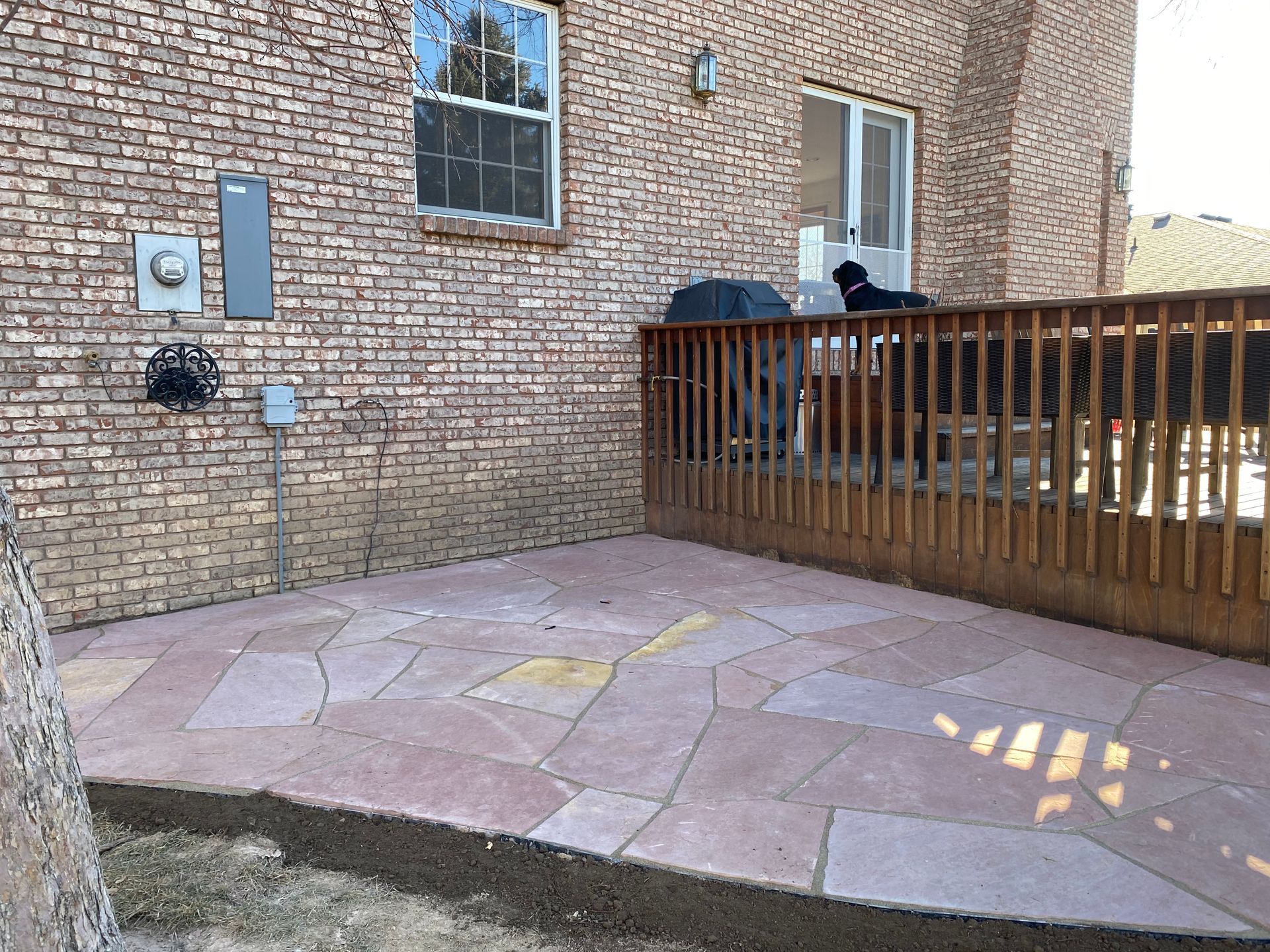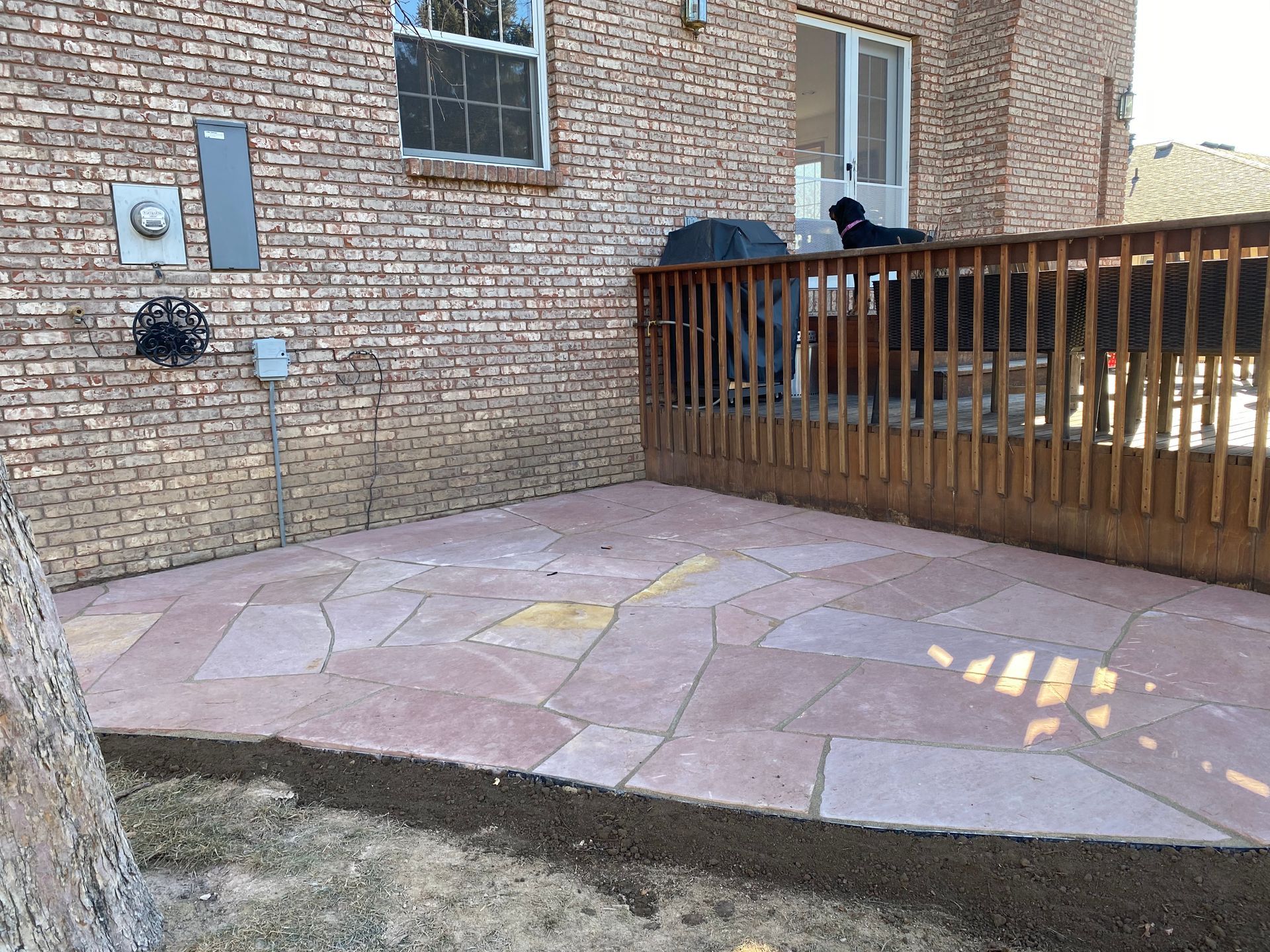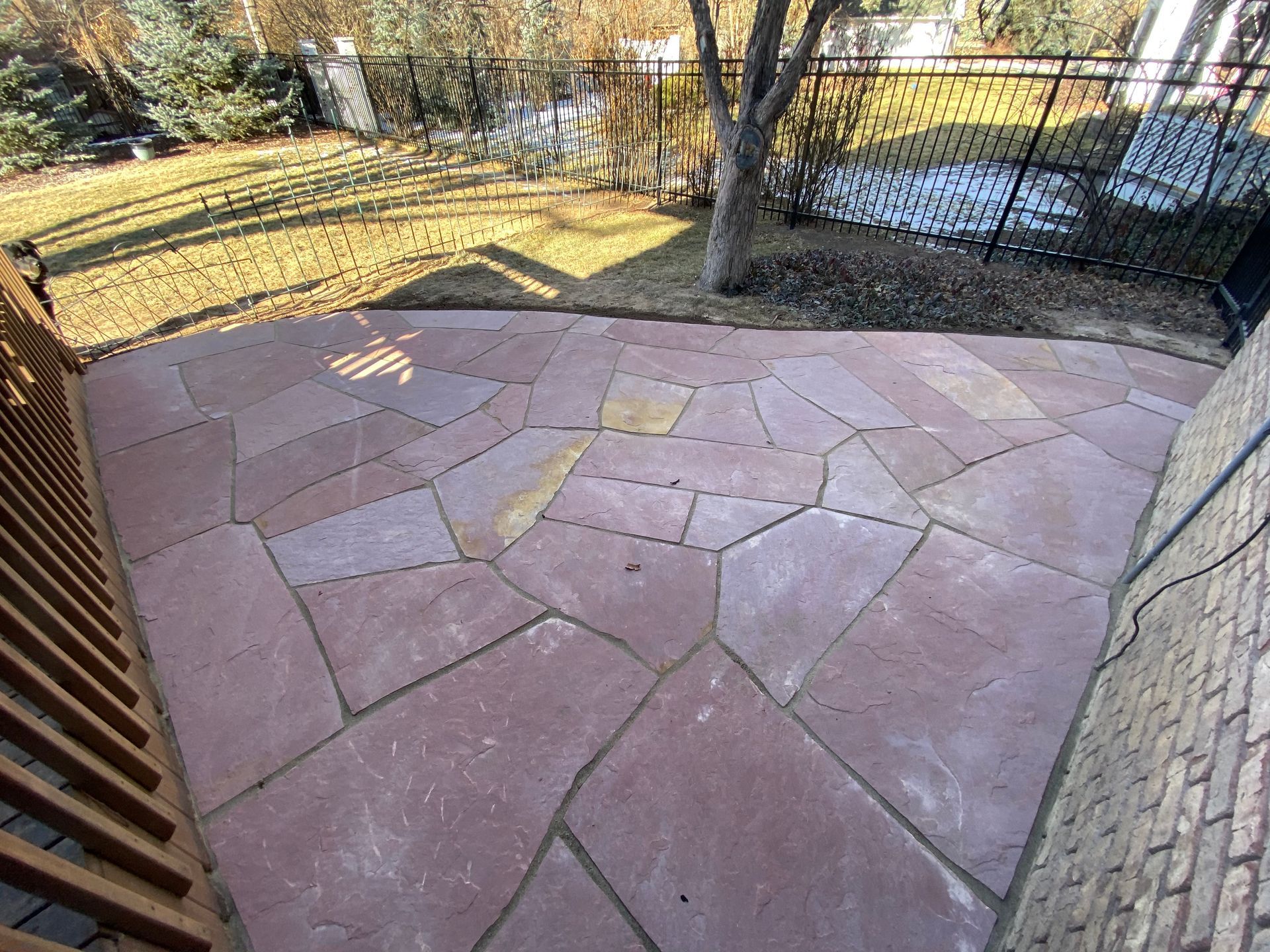 Addition of Colored red flagstone patio in a previously unused area of back yard. Greeley, CO 2020