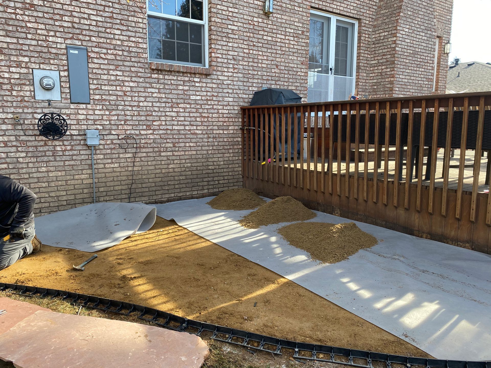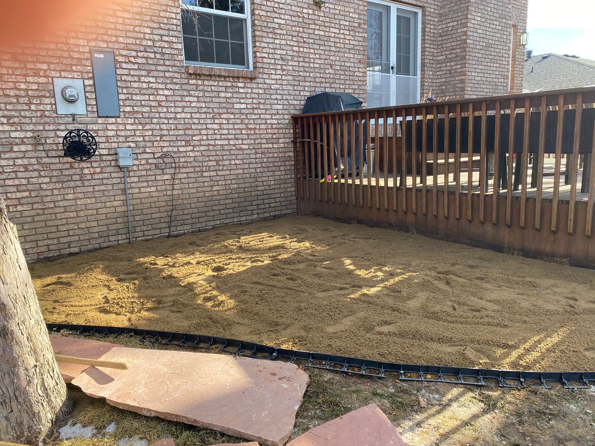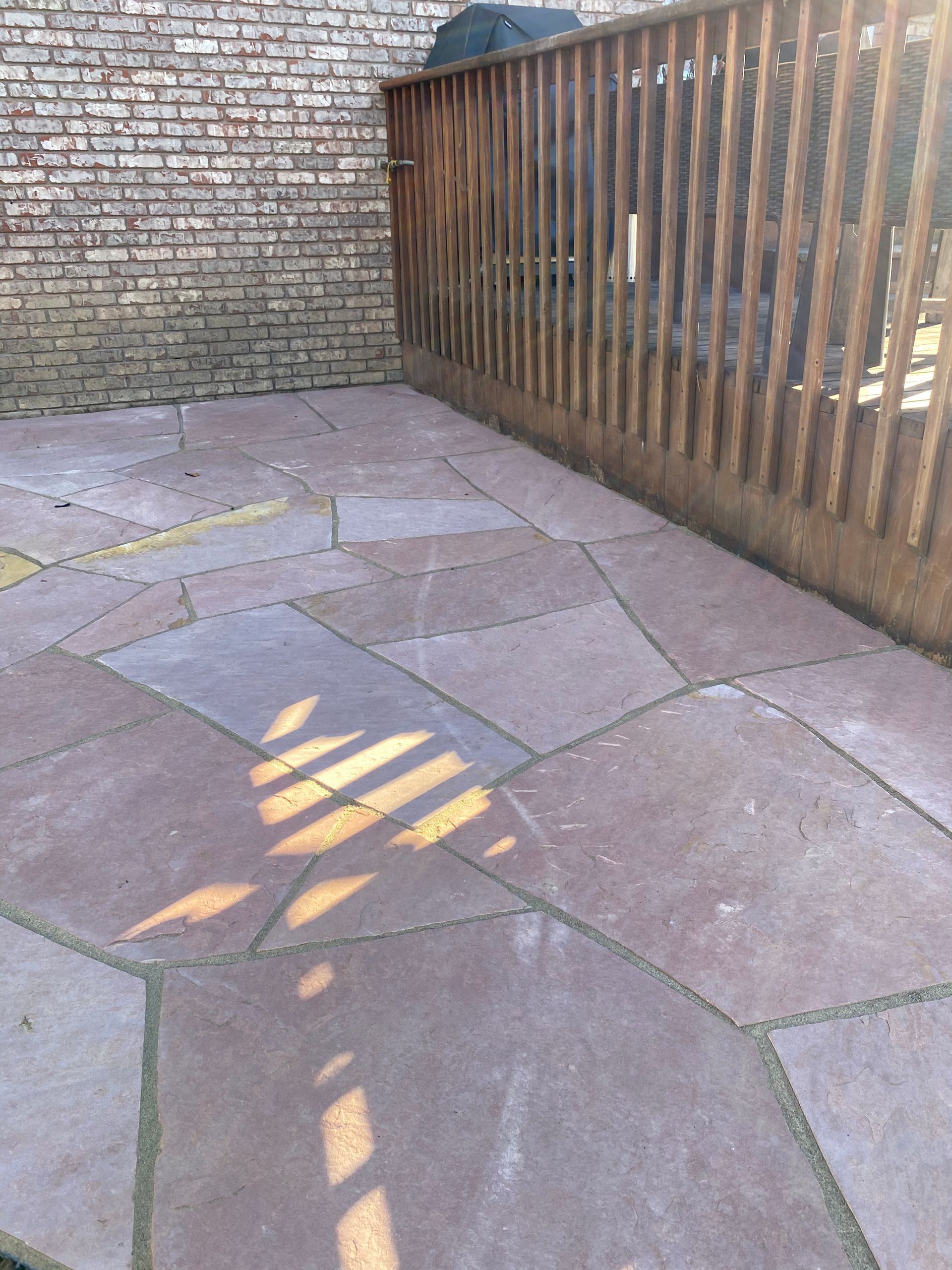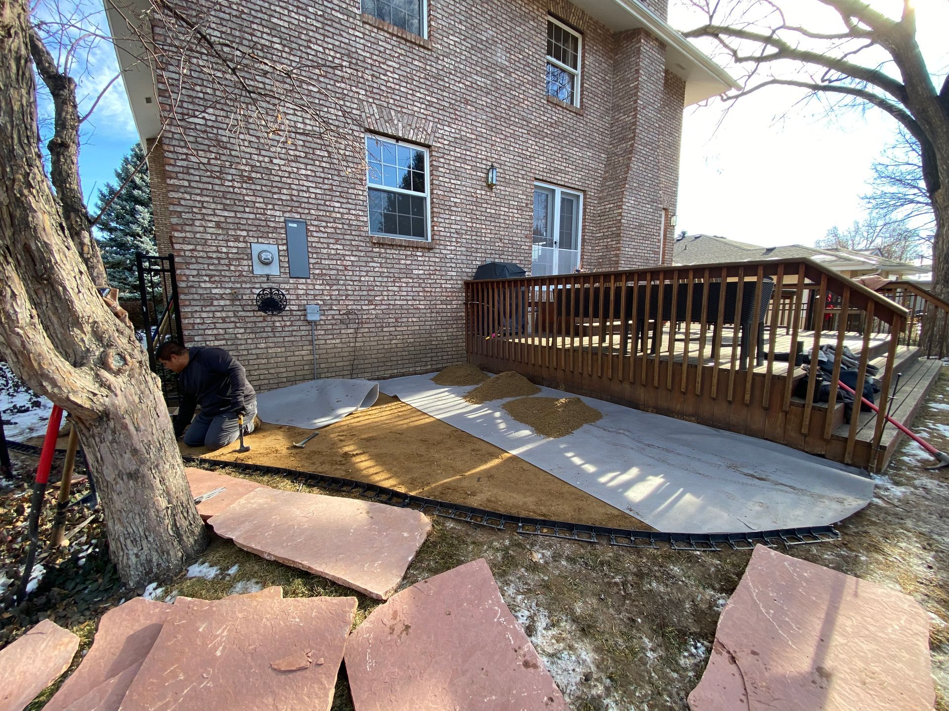 Addition of Colored red flagstone patio in a previously unused area of back yard. Greeley, CO 2020