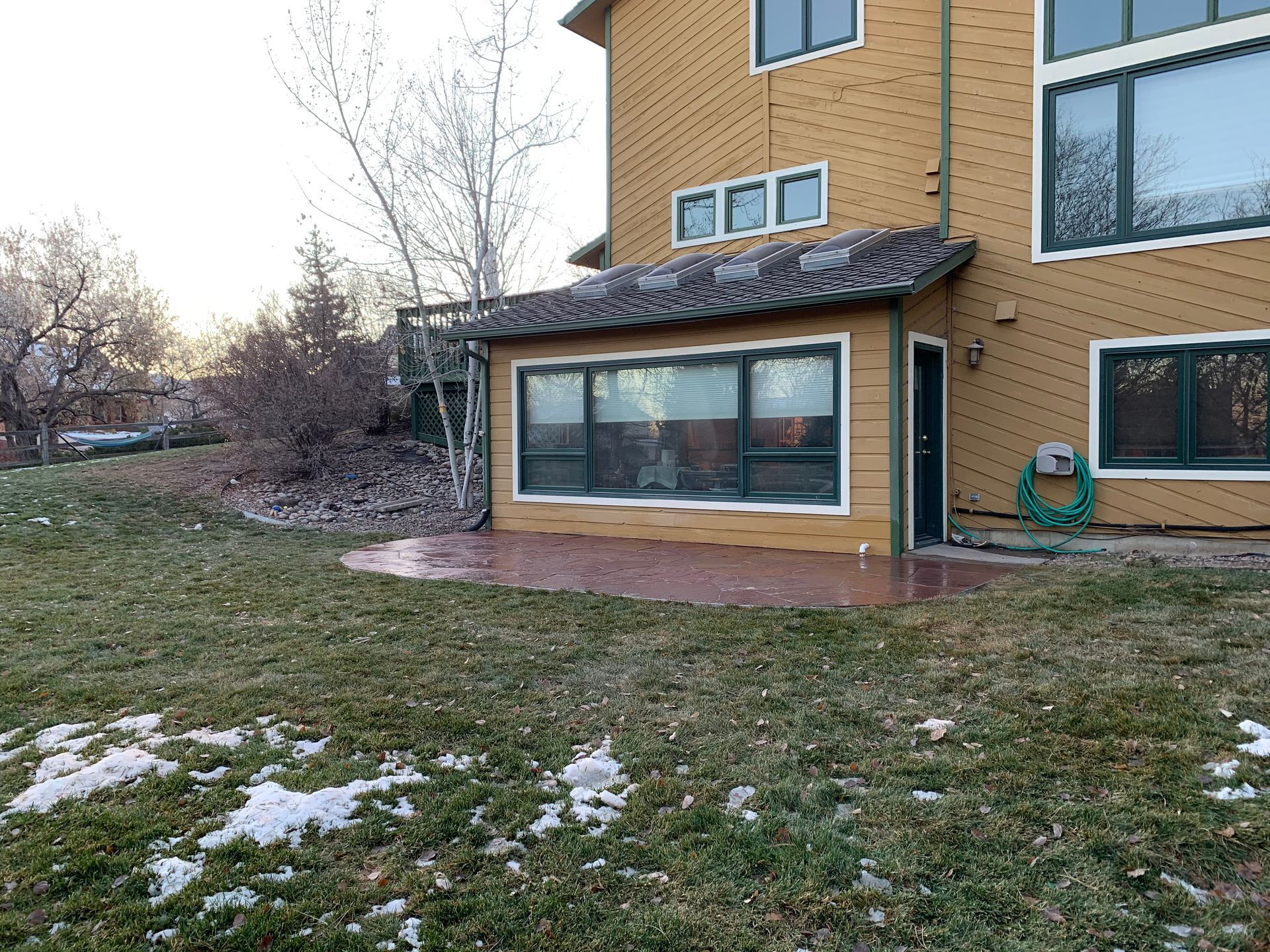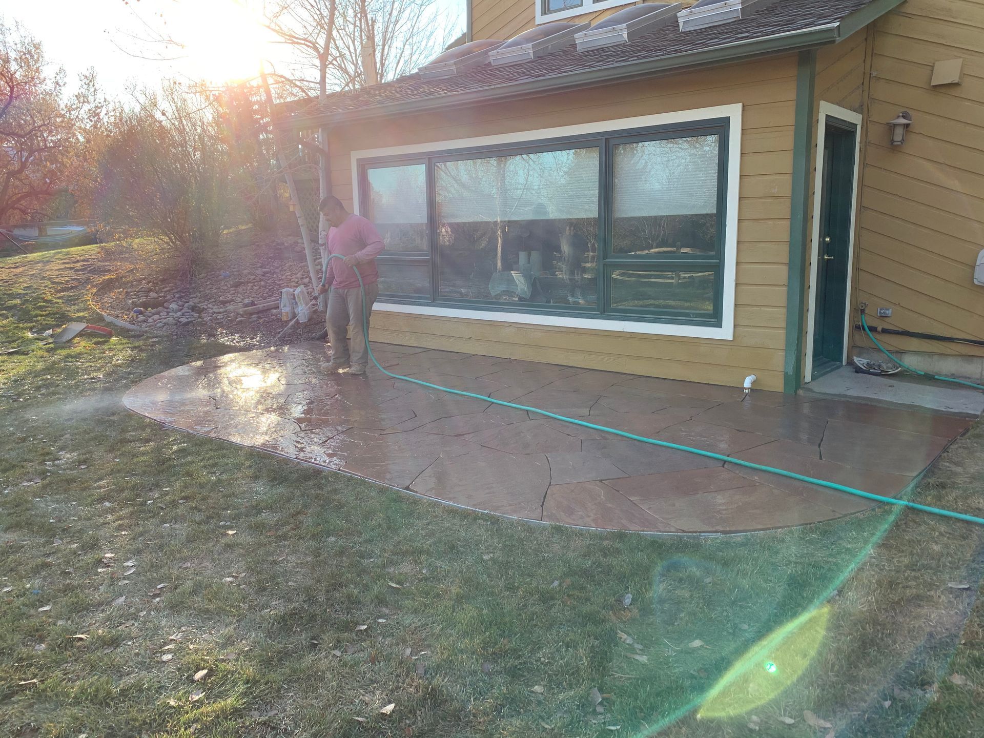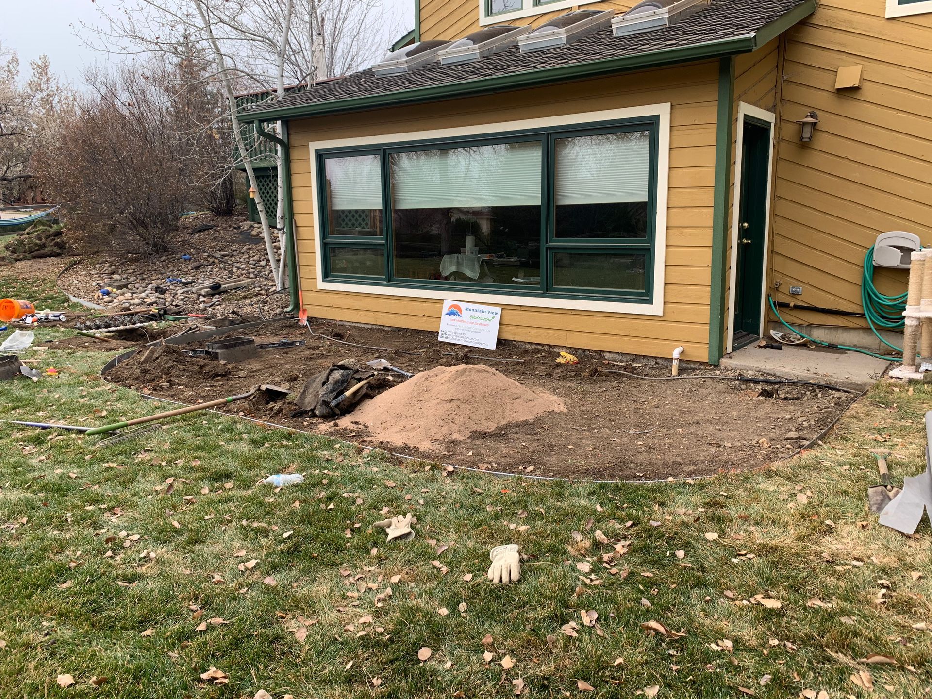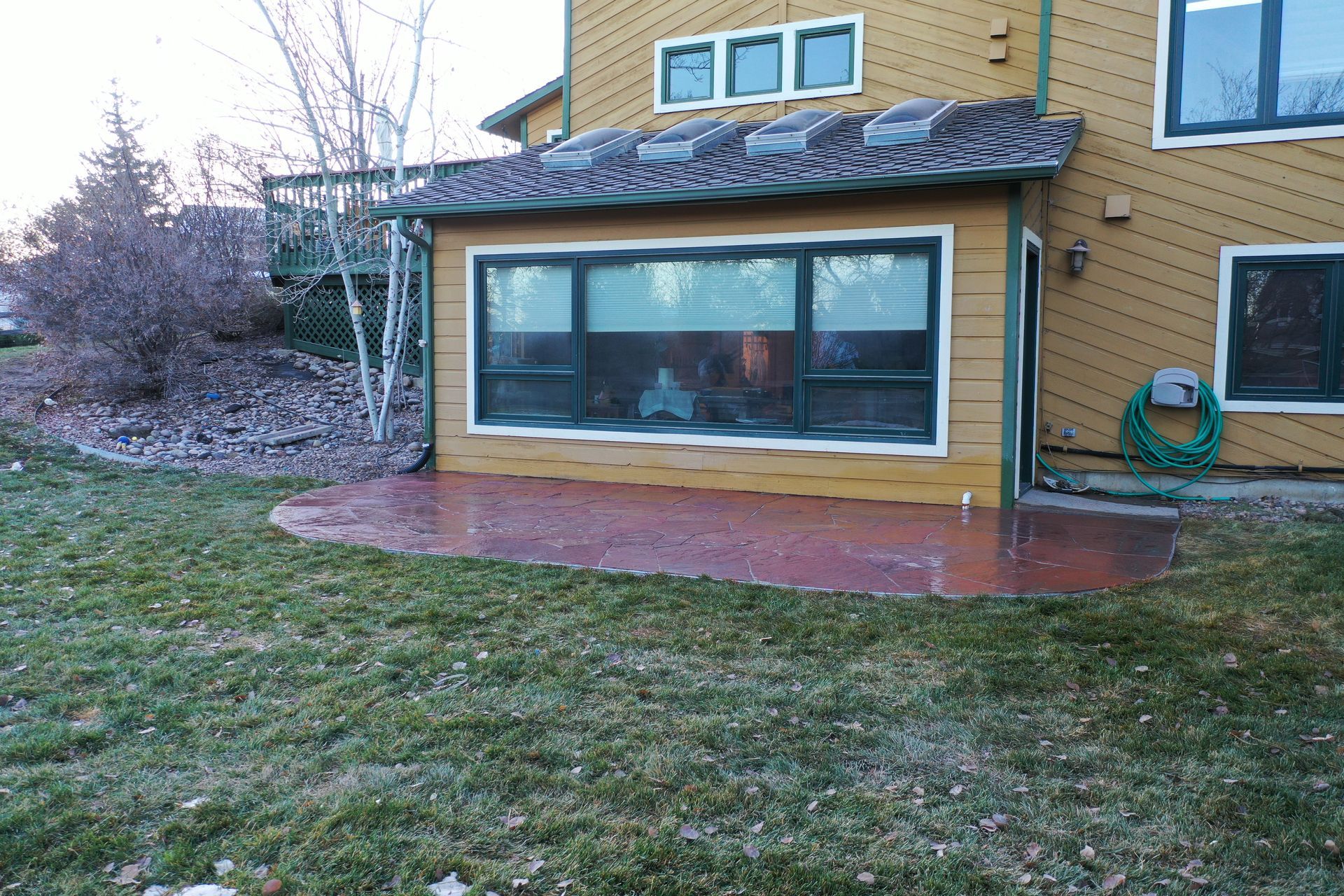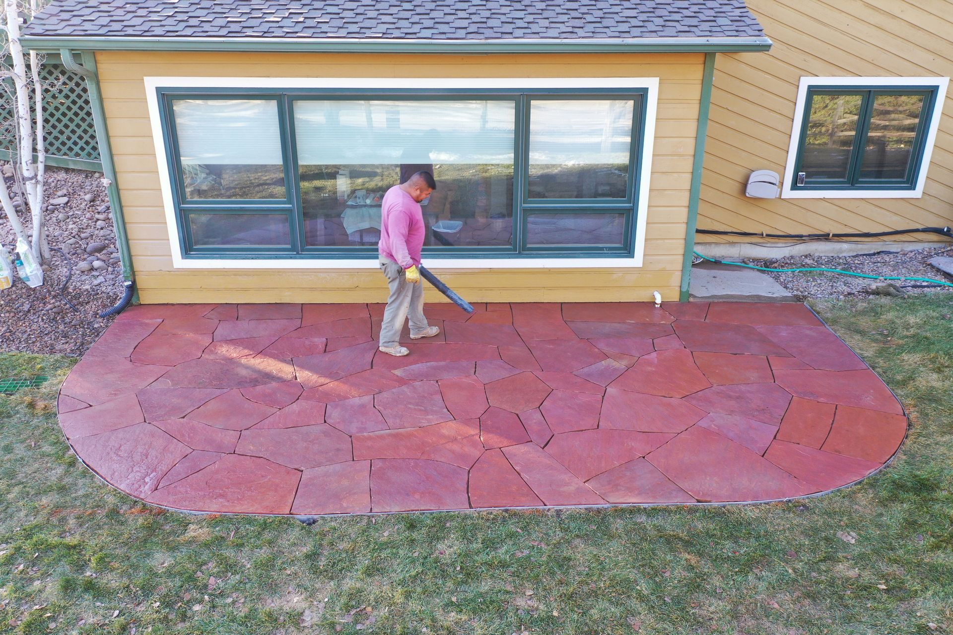 New Colorado red flagstone patio in backyard for gatherings. Niwot, CO 2019