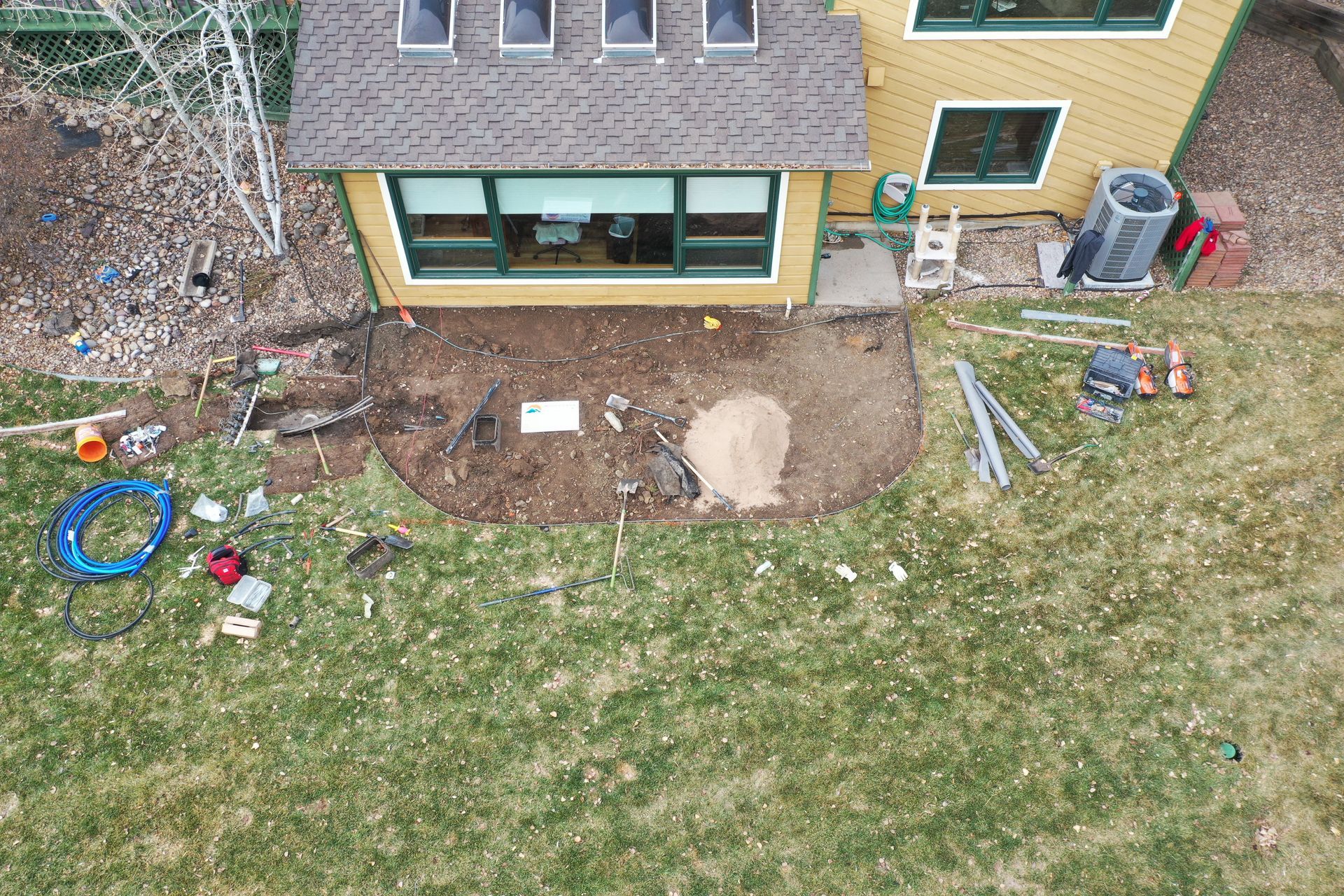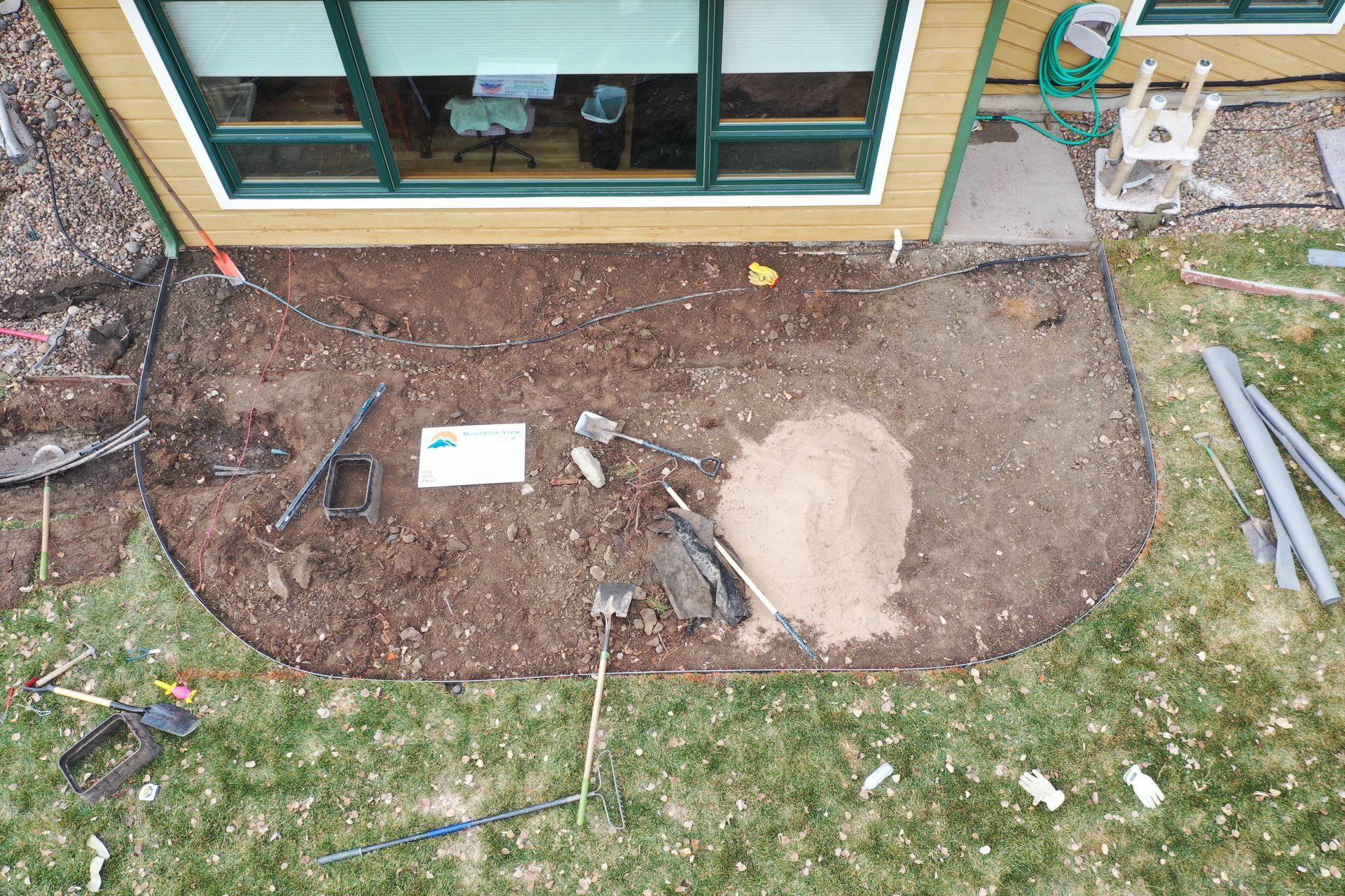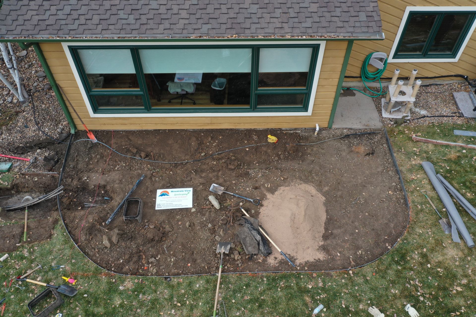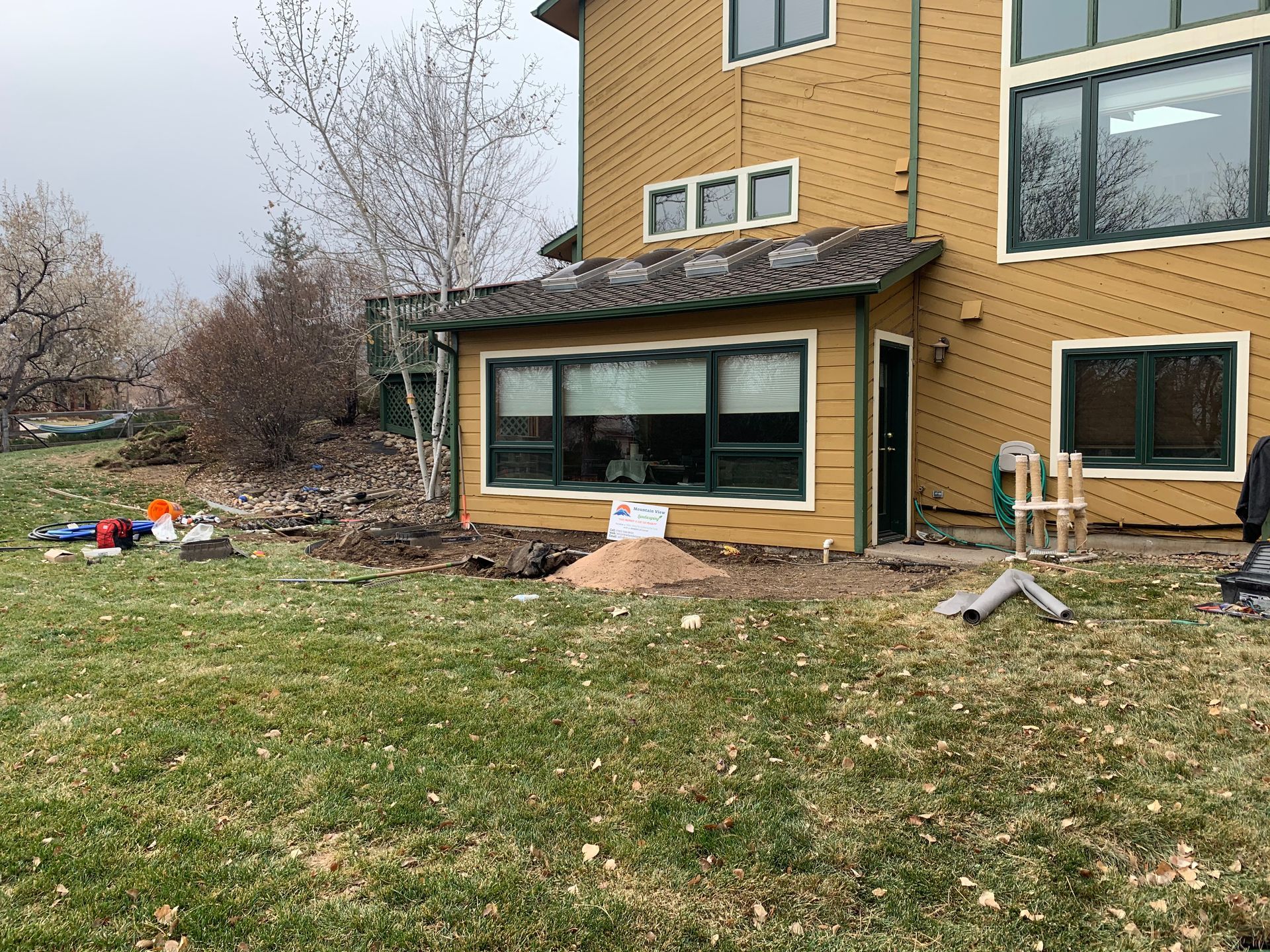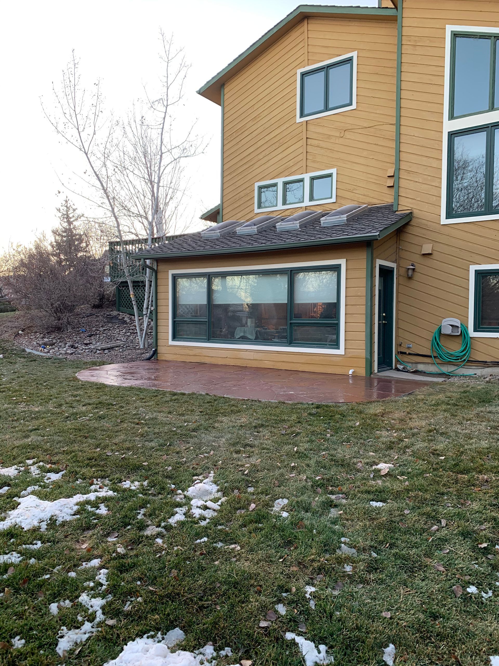 New Colorado red flagstone patio in backyard for gatherings. Niwot, CO 2019