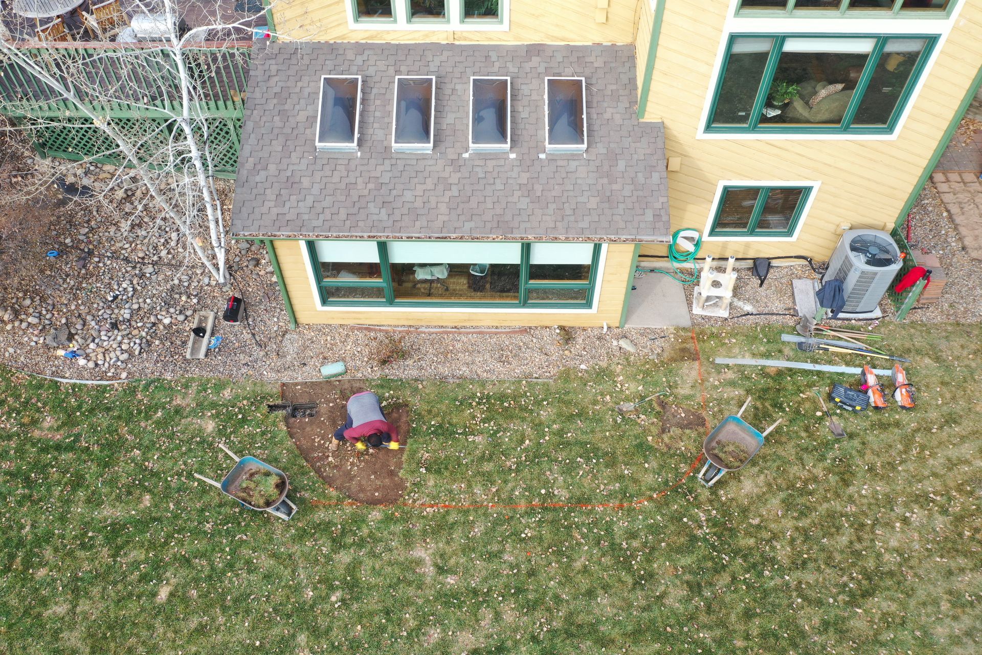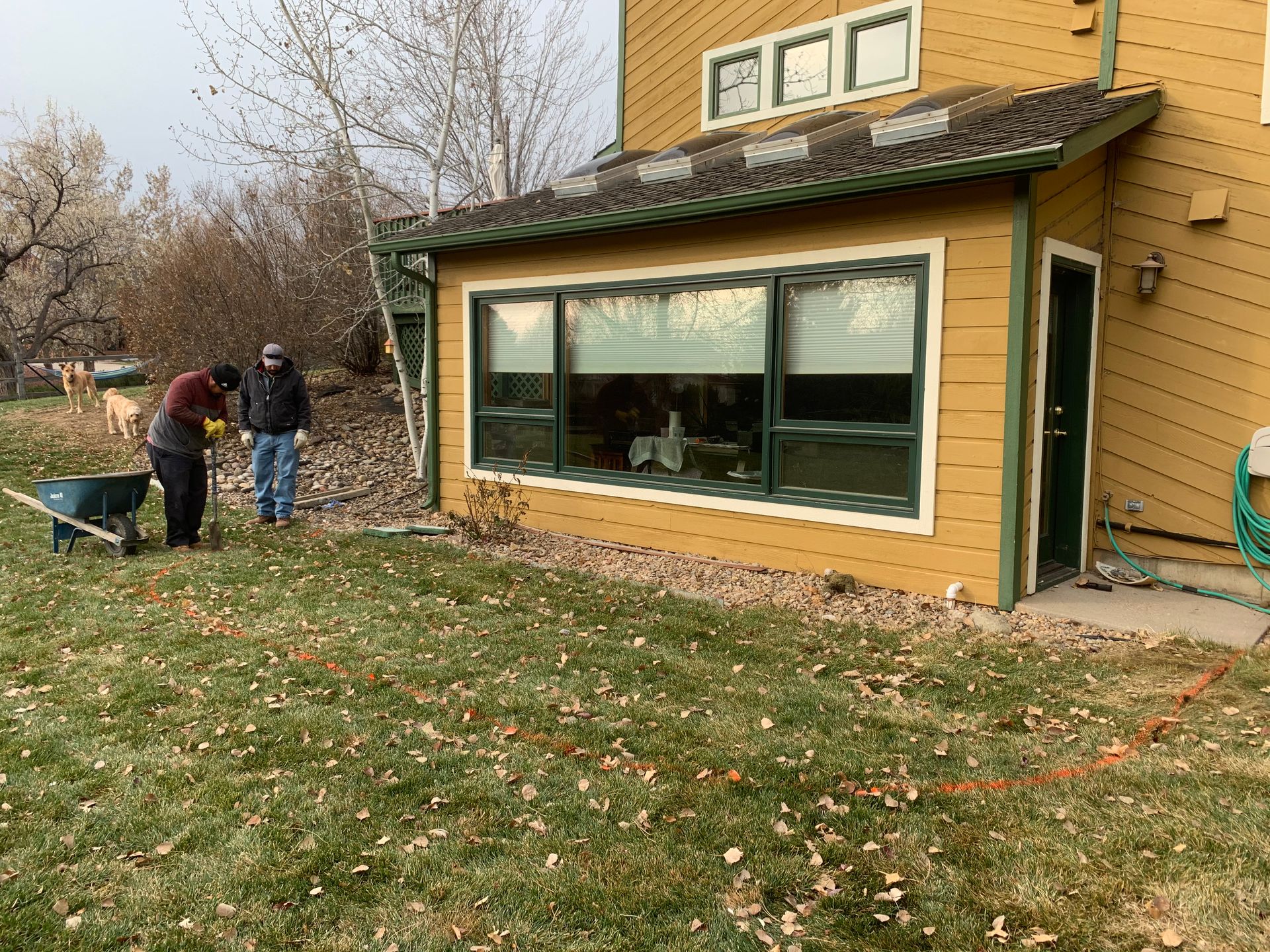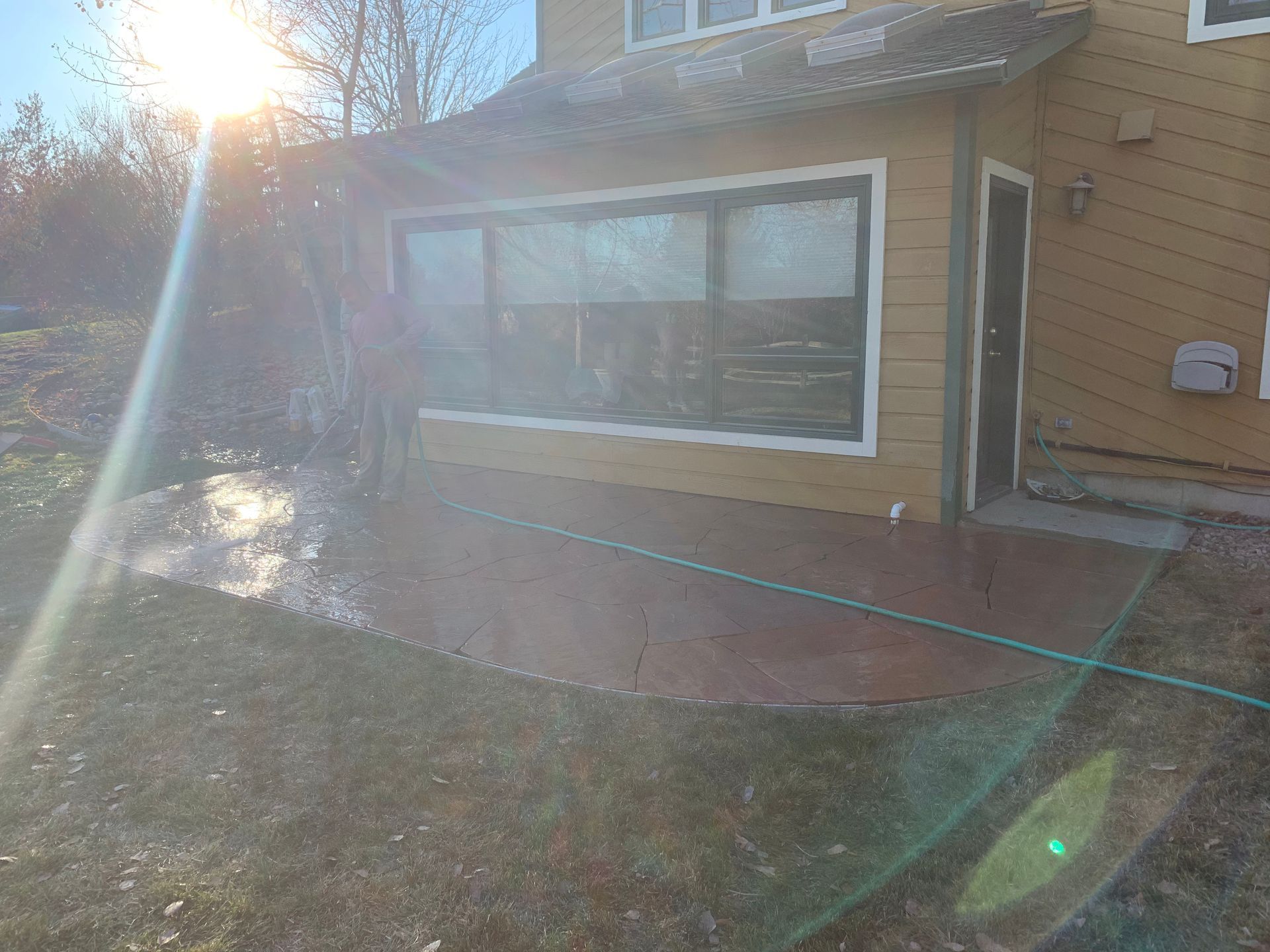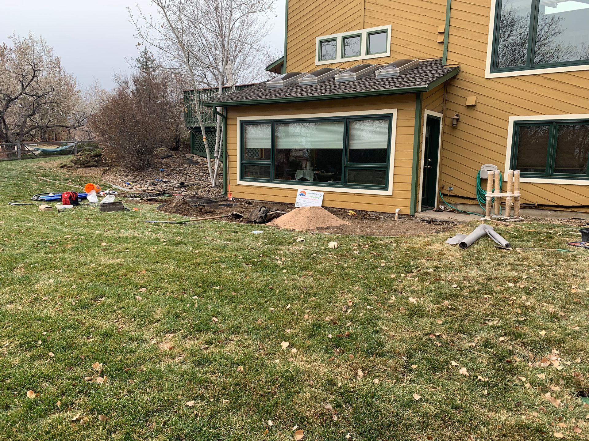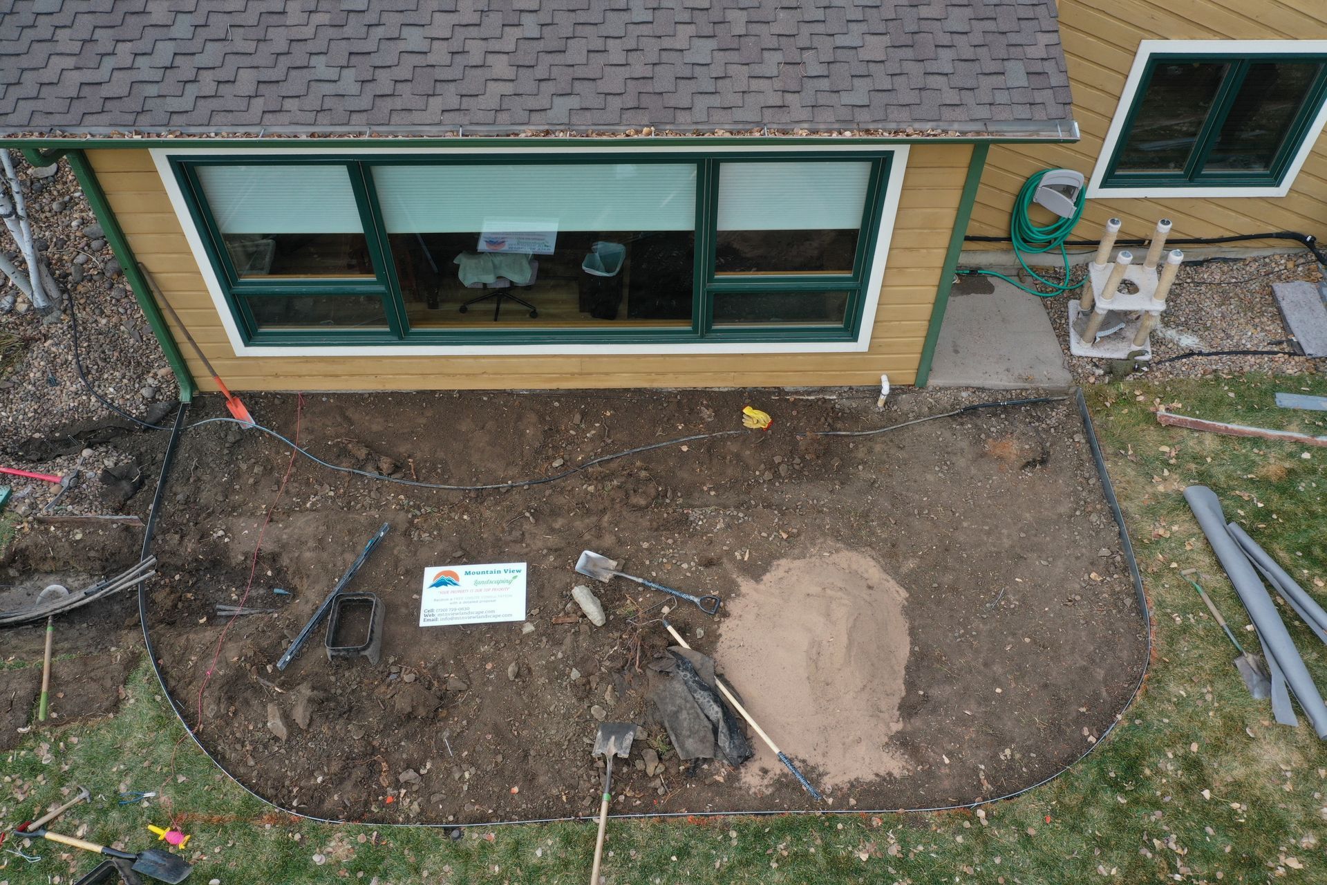 New Colorado red flagstone patio in backyard for gatherings. Niwot, CO 2019