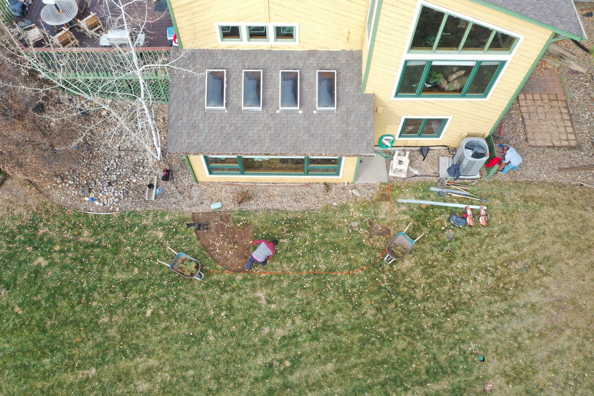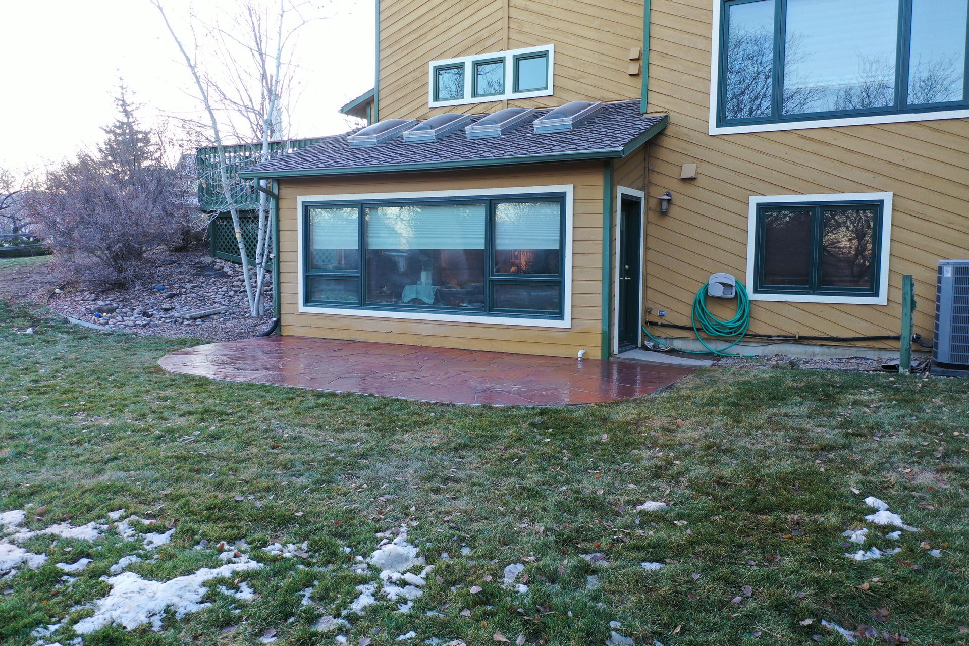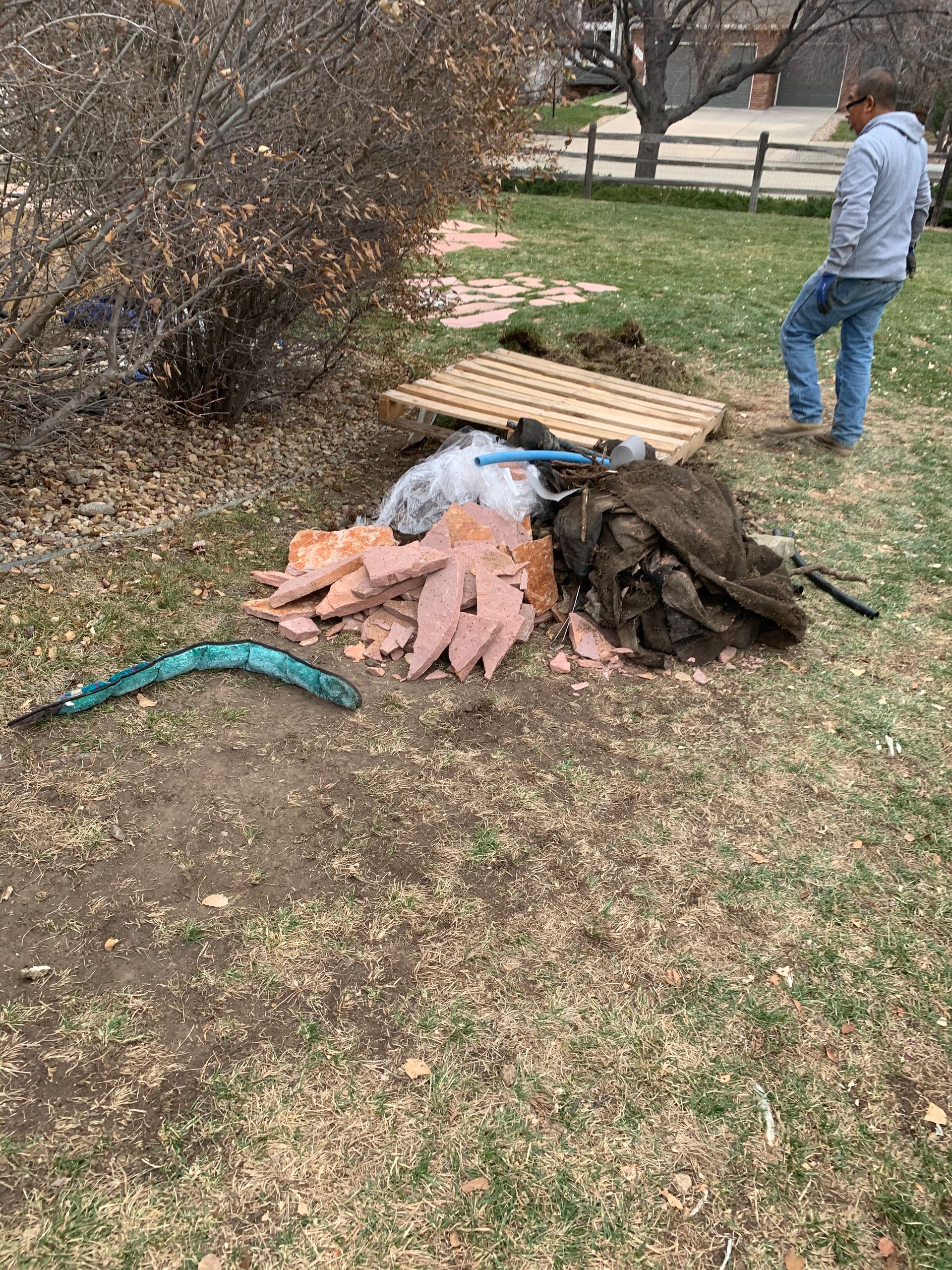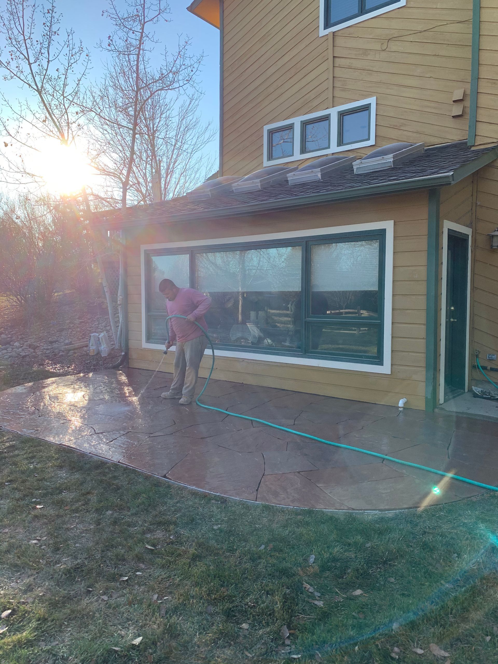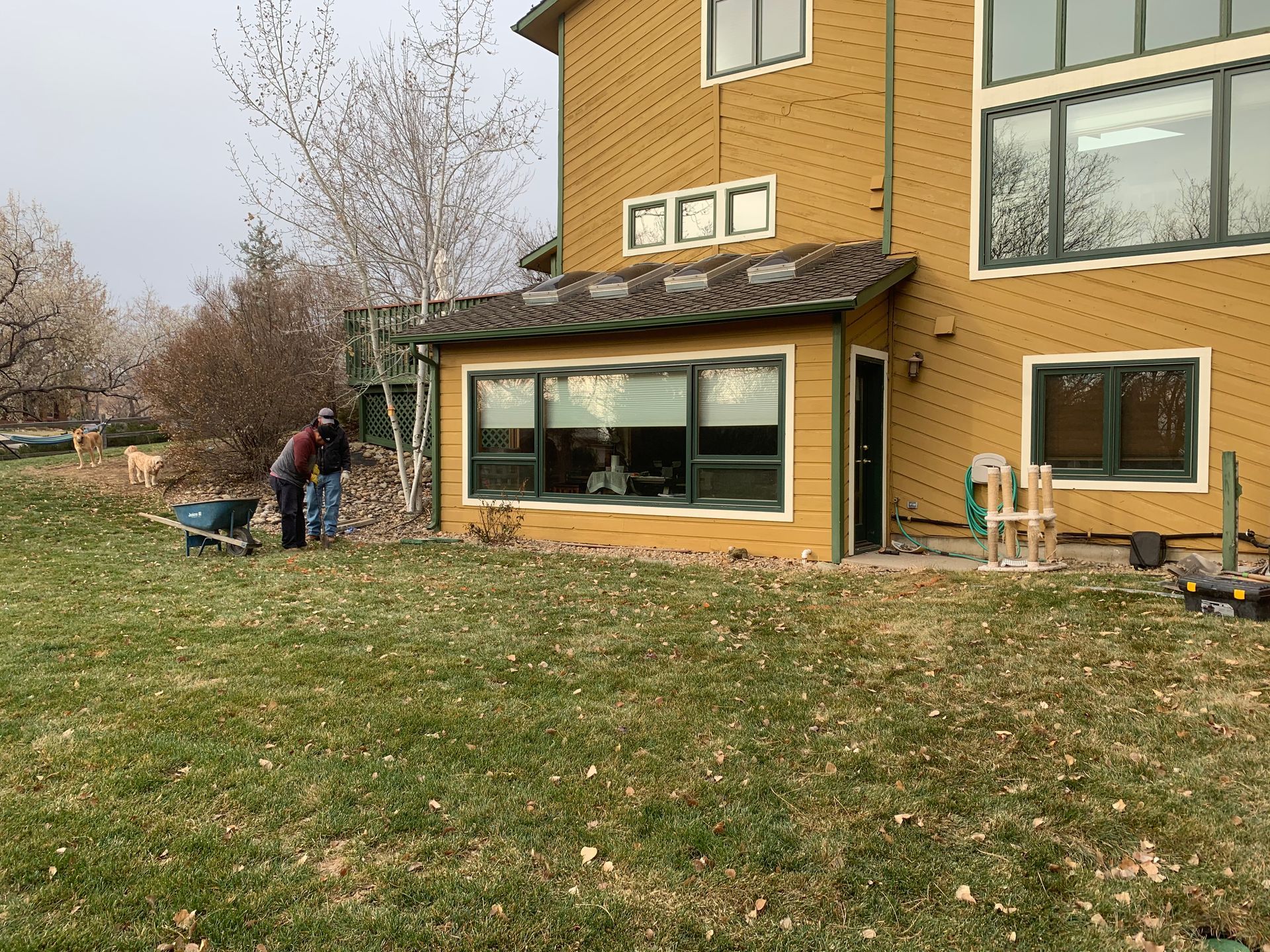 New Colorado red flagstone patio in backyard for gatherings. Niwot, CO 2019