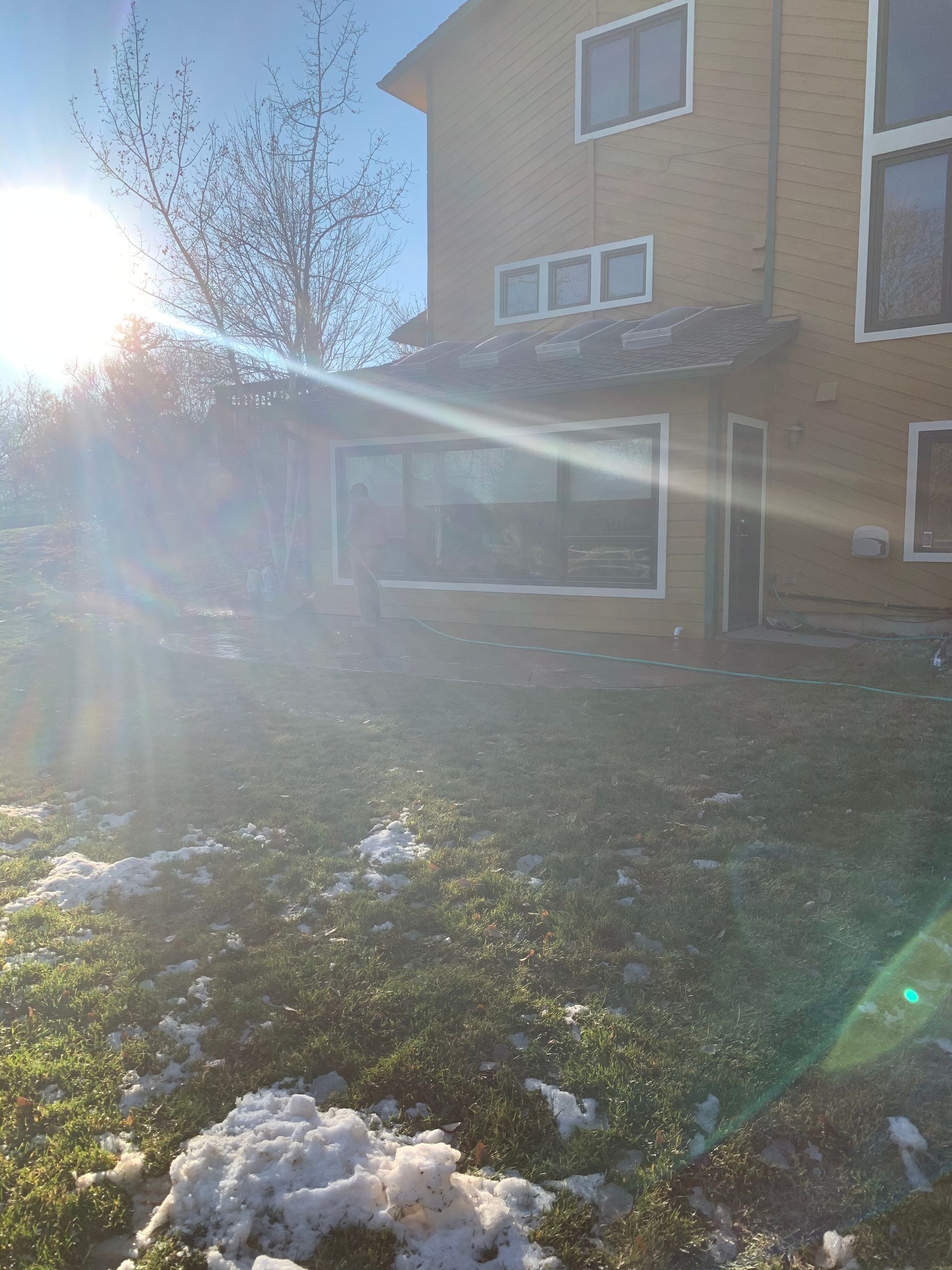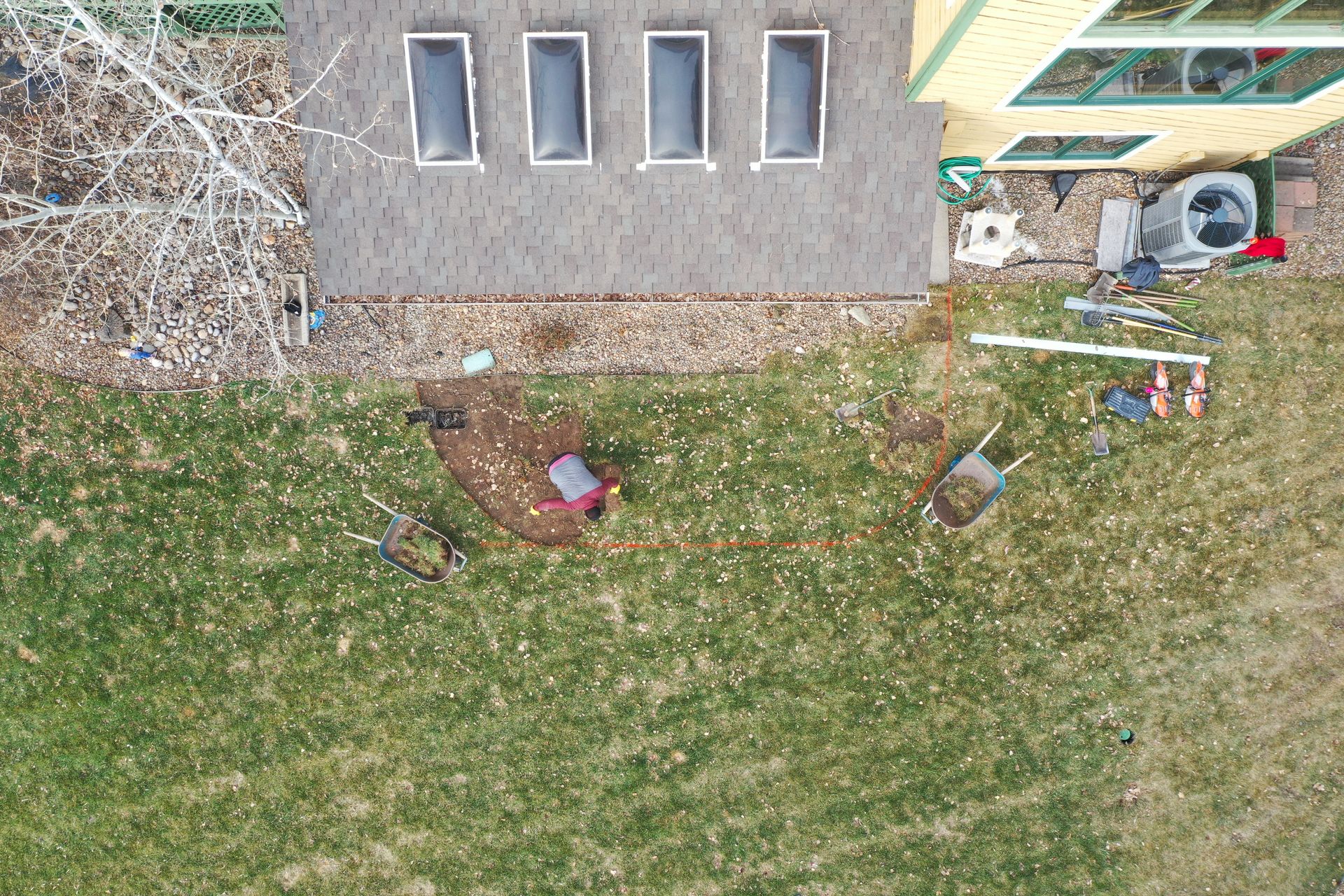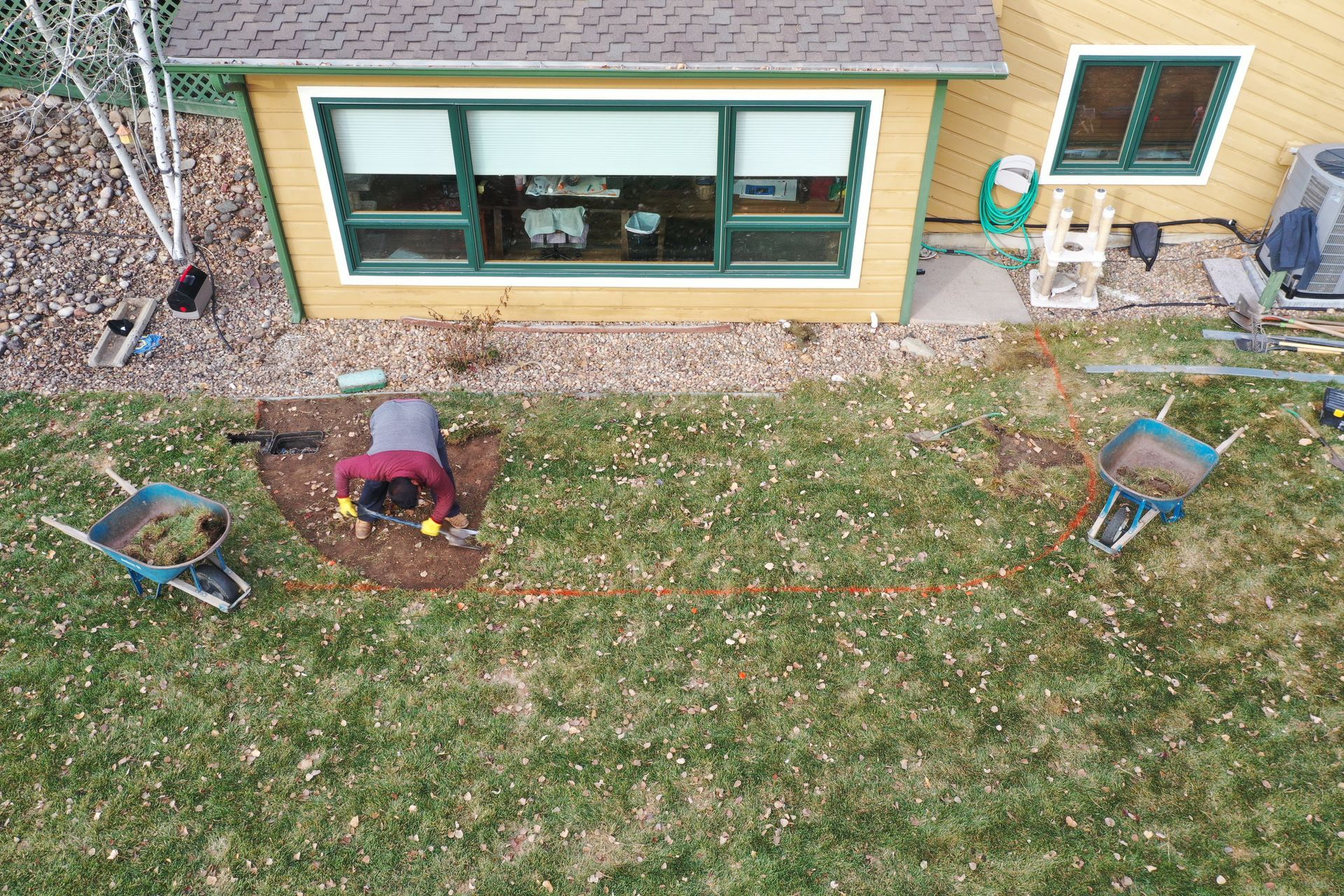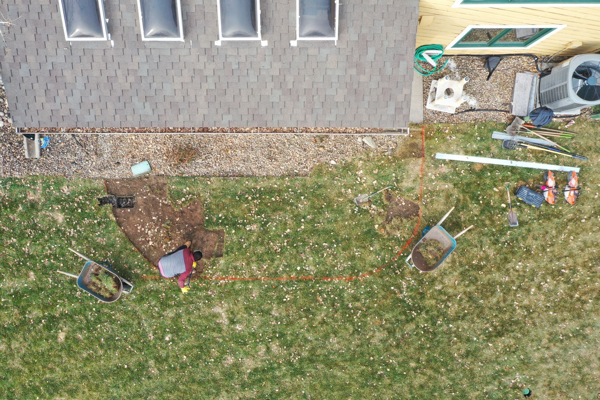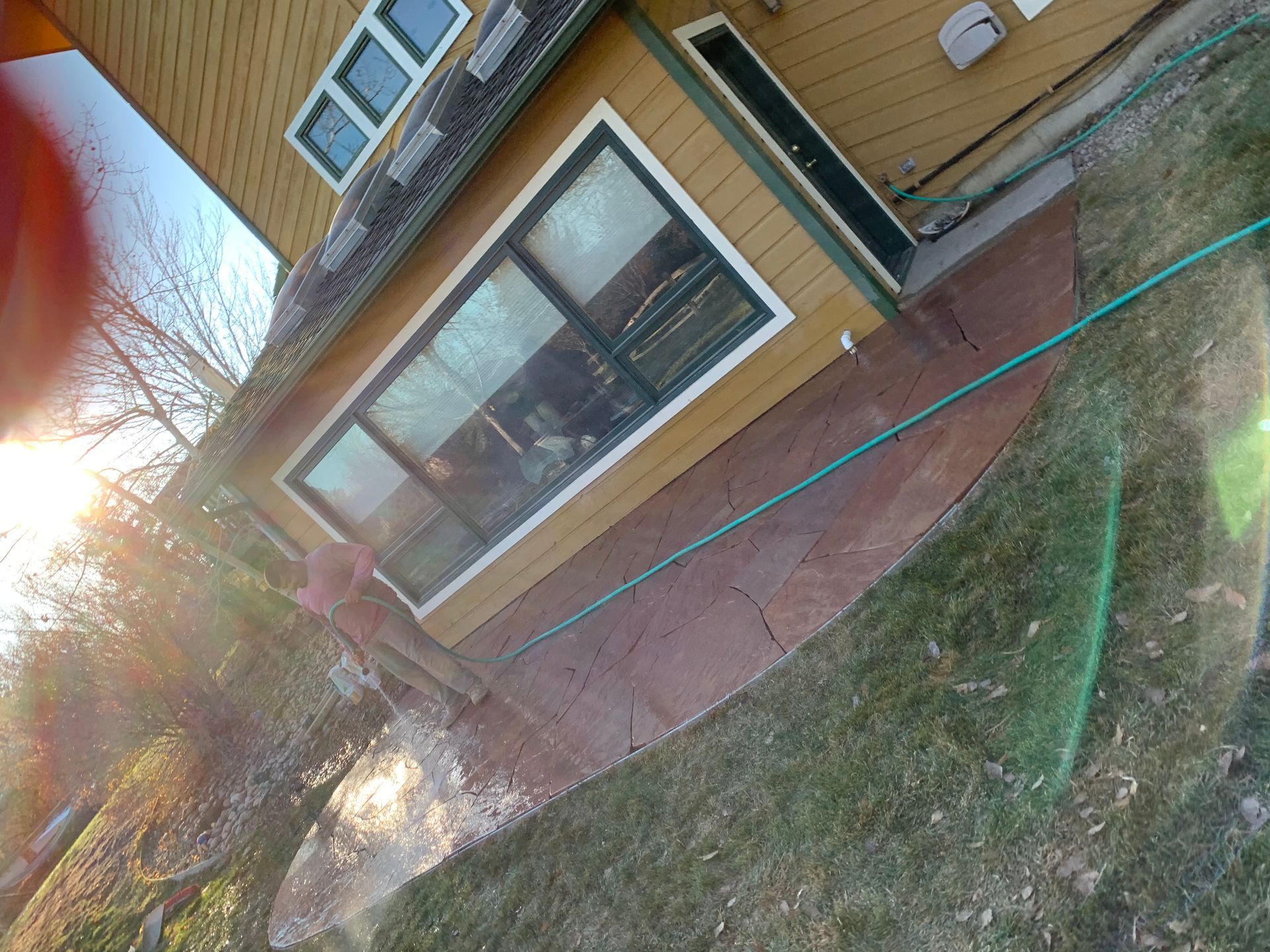 New Colorado red flagstone patio in backyard for gatherings. Niwot, CO 2019