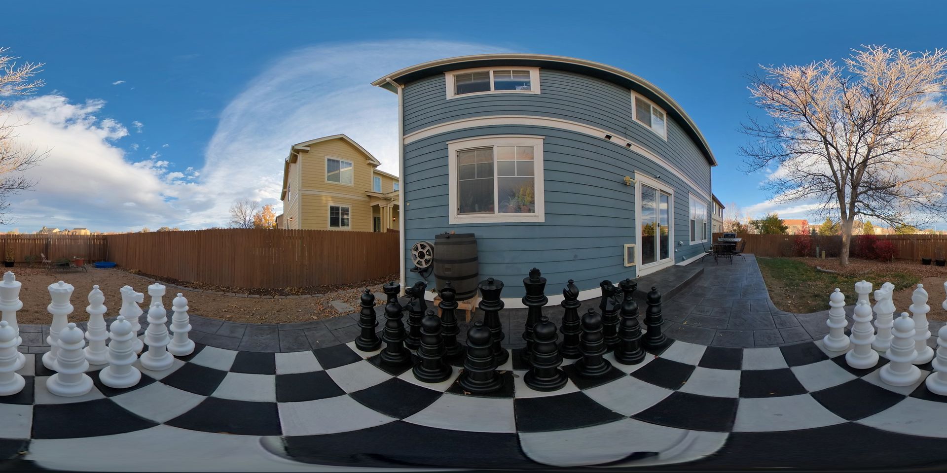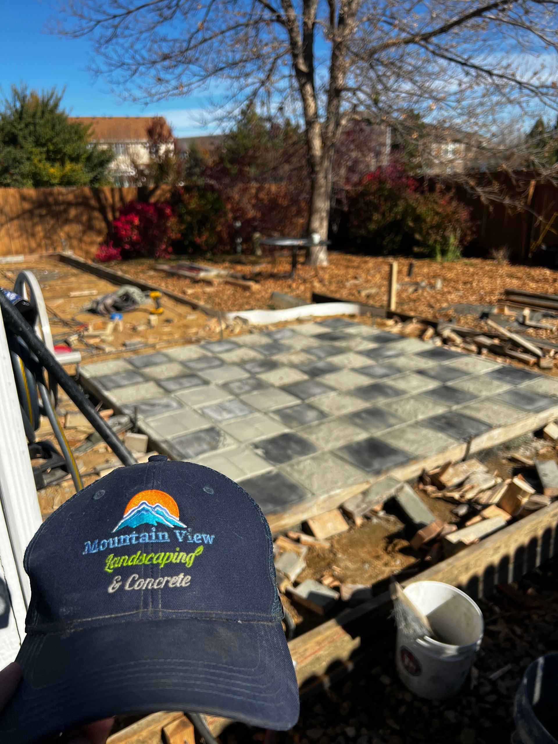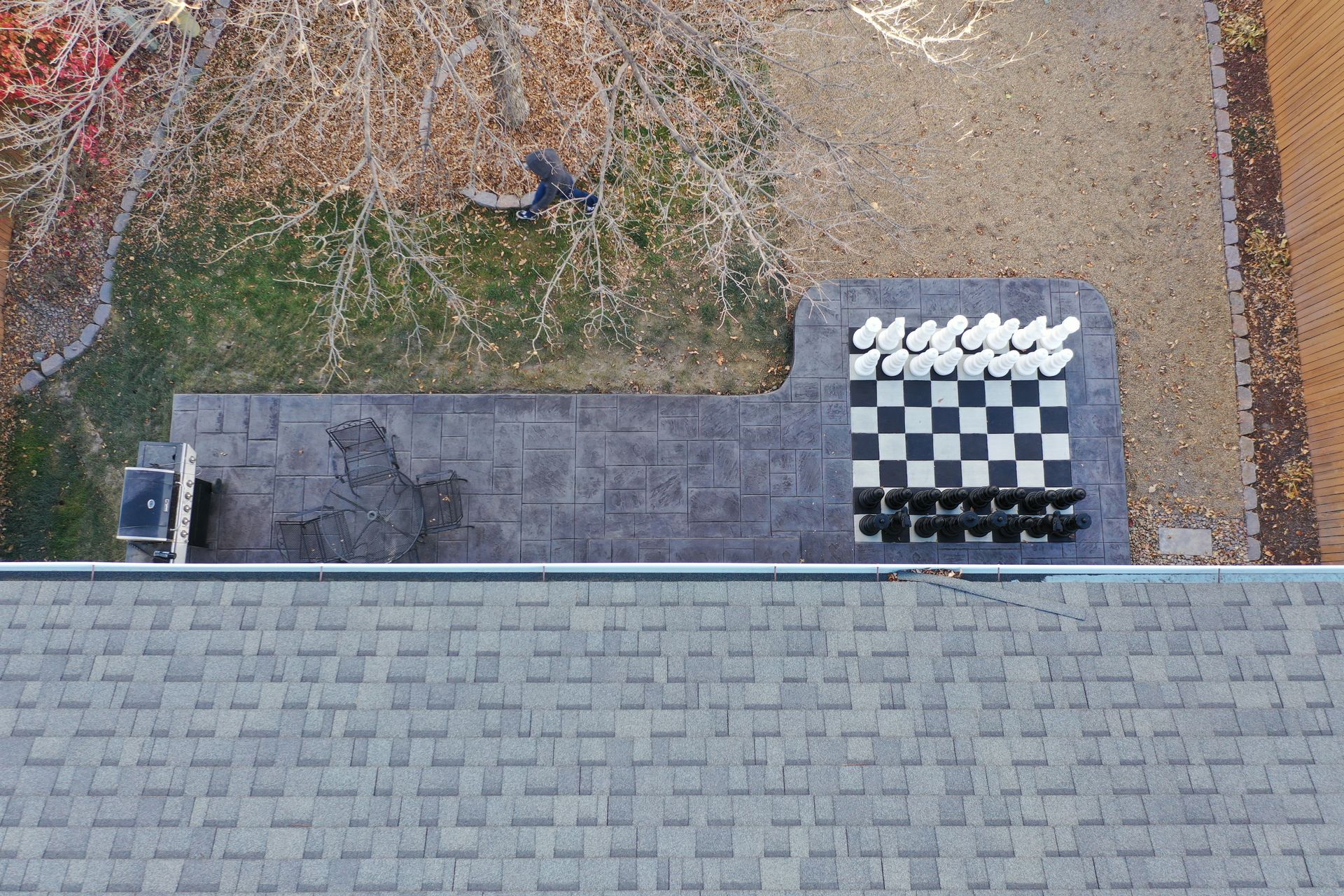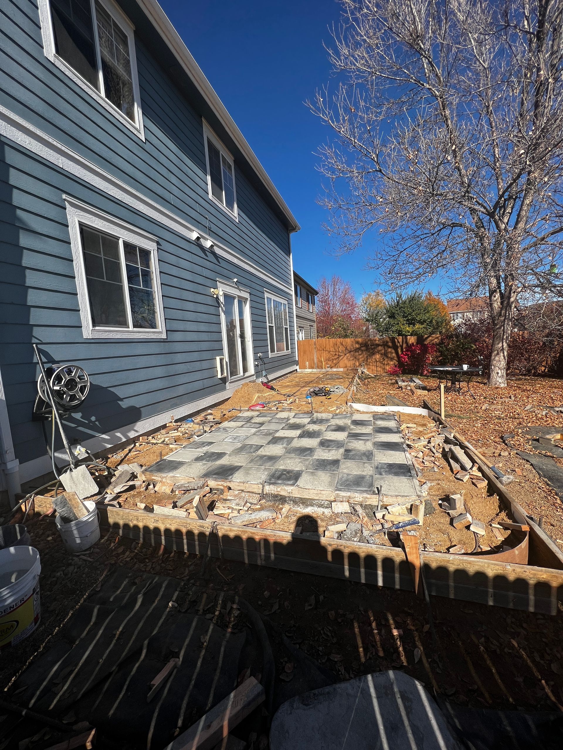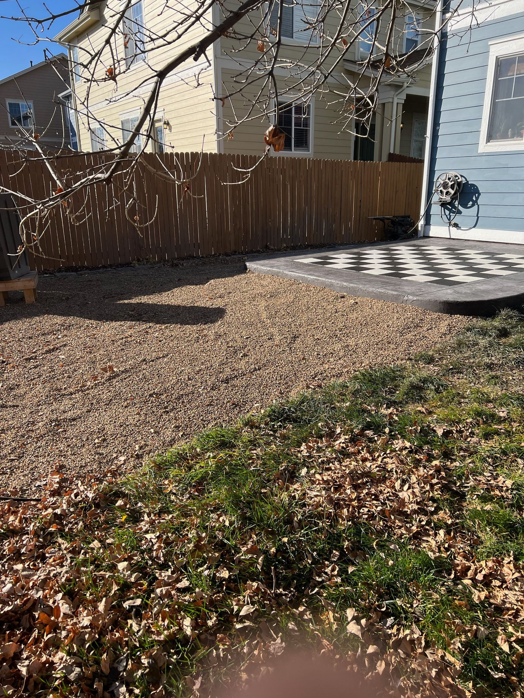 Beautiful stamped concrete patio with a fully usable life-size chessboard. All built to last with rebar, road base, and high quality concrete with fiber.