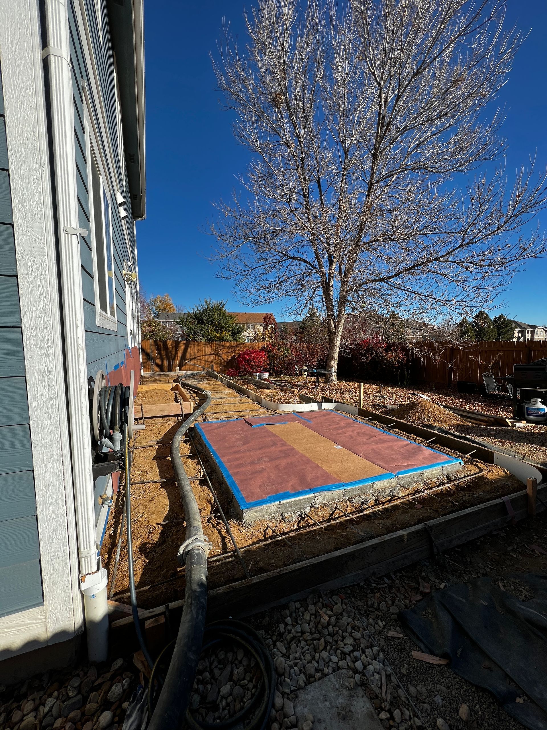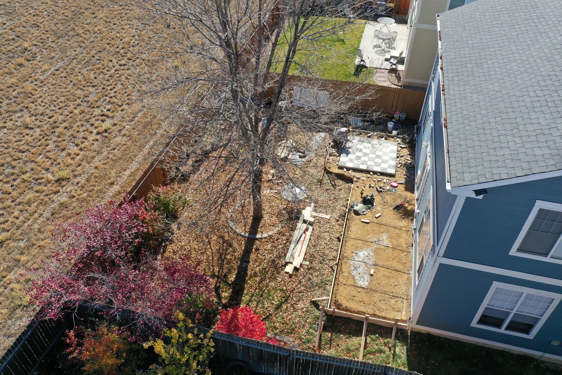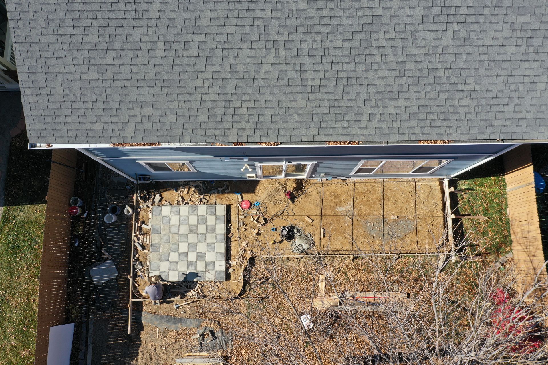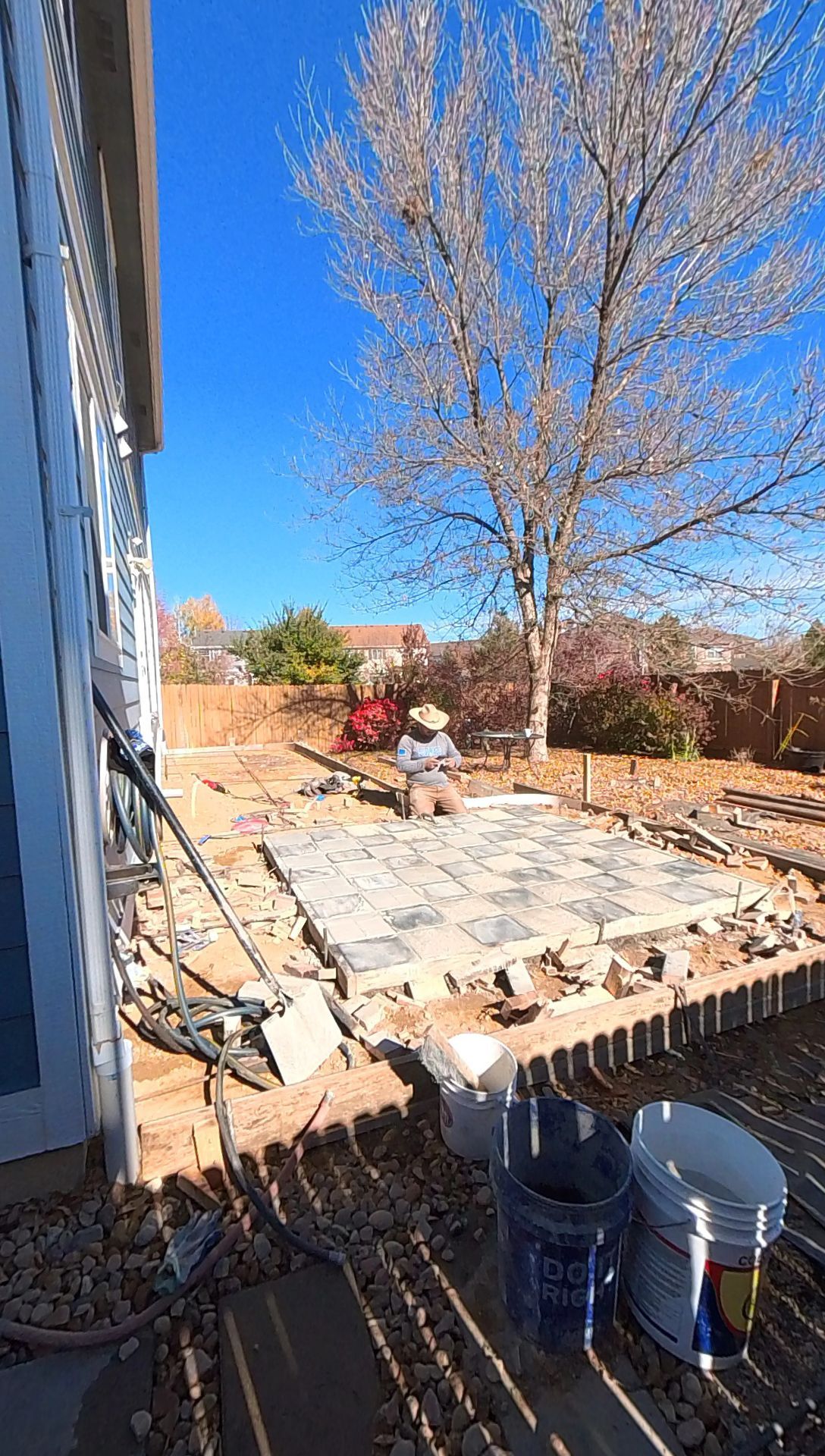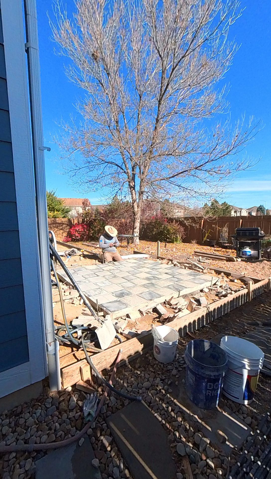 Beautiful stamped concrete patio with a fully usable life-size chessboard. All built to last with rebar, road base, and high quality concrete with fiber.