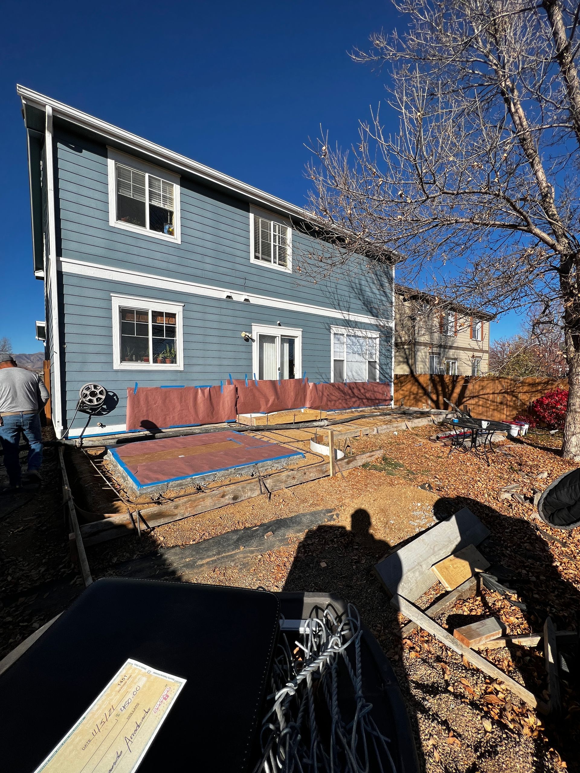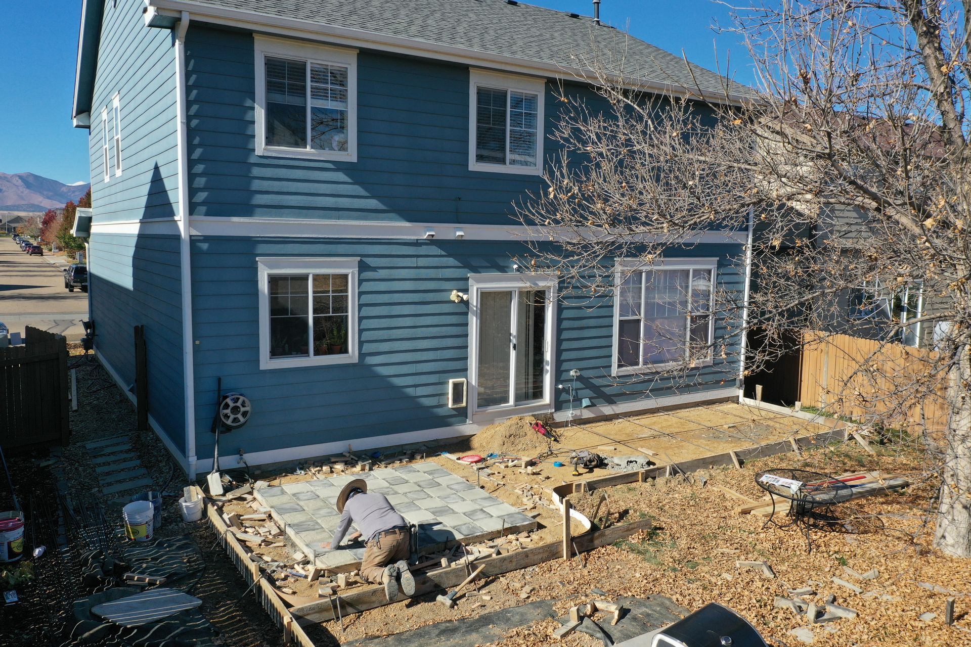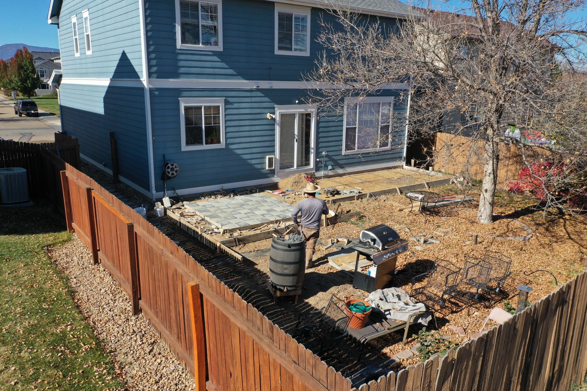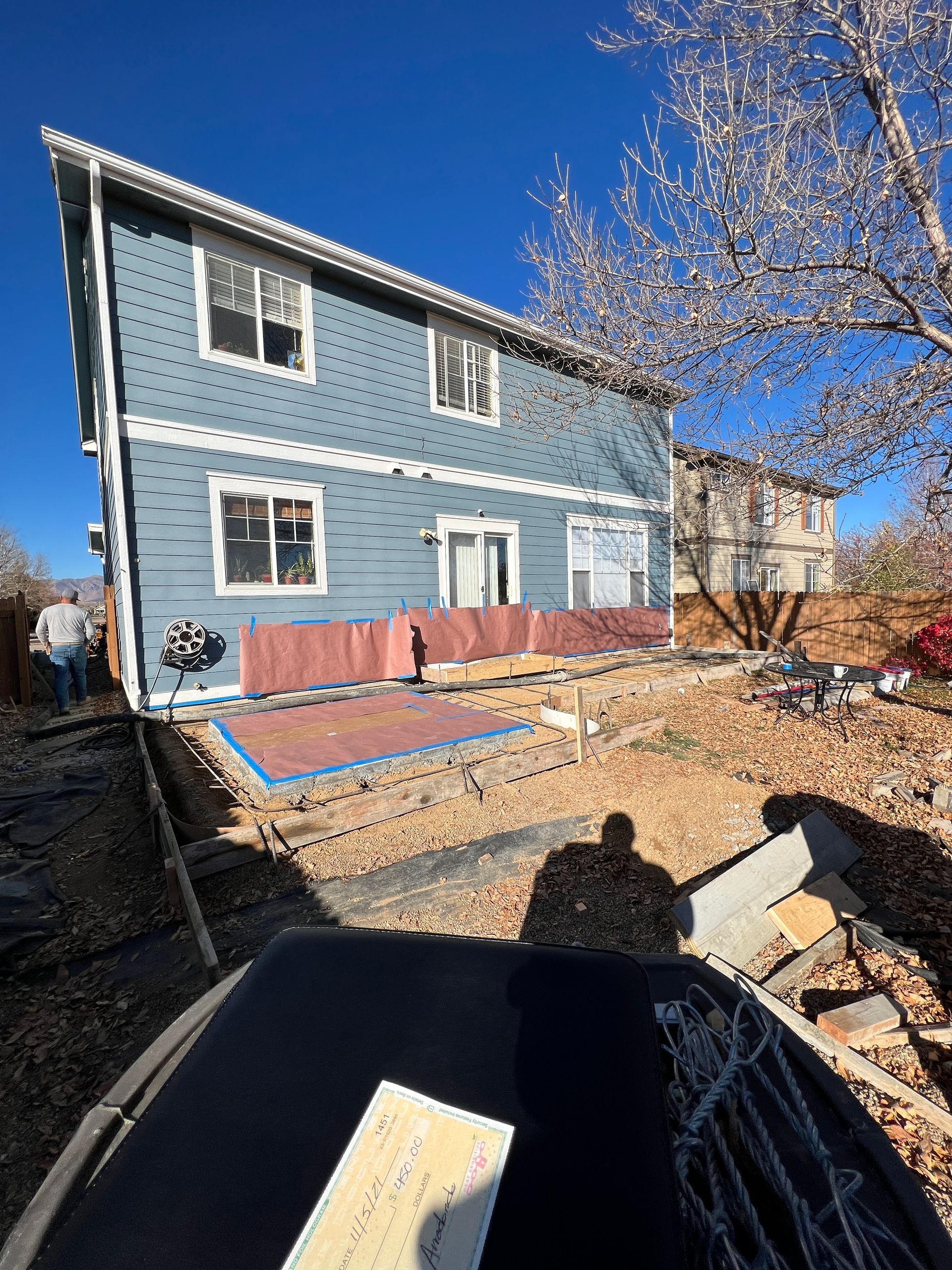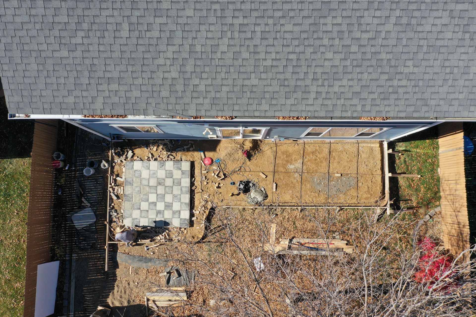 Beautiful stamped concrete patio with a fully usable life-size chessboard. All built to last with rebar, road base, and high quality concrete with fiber.