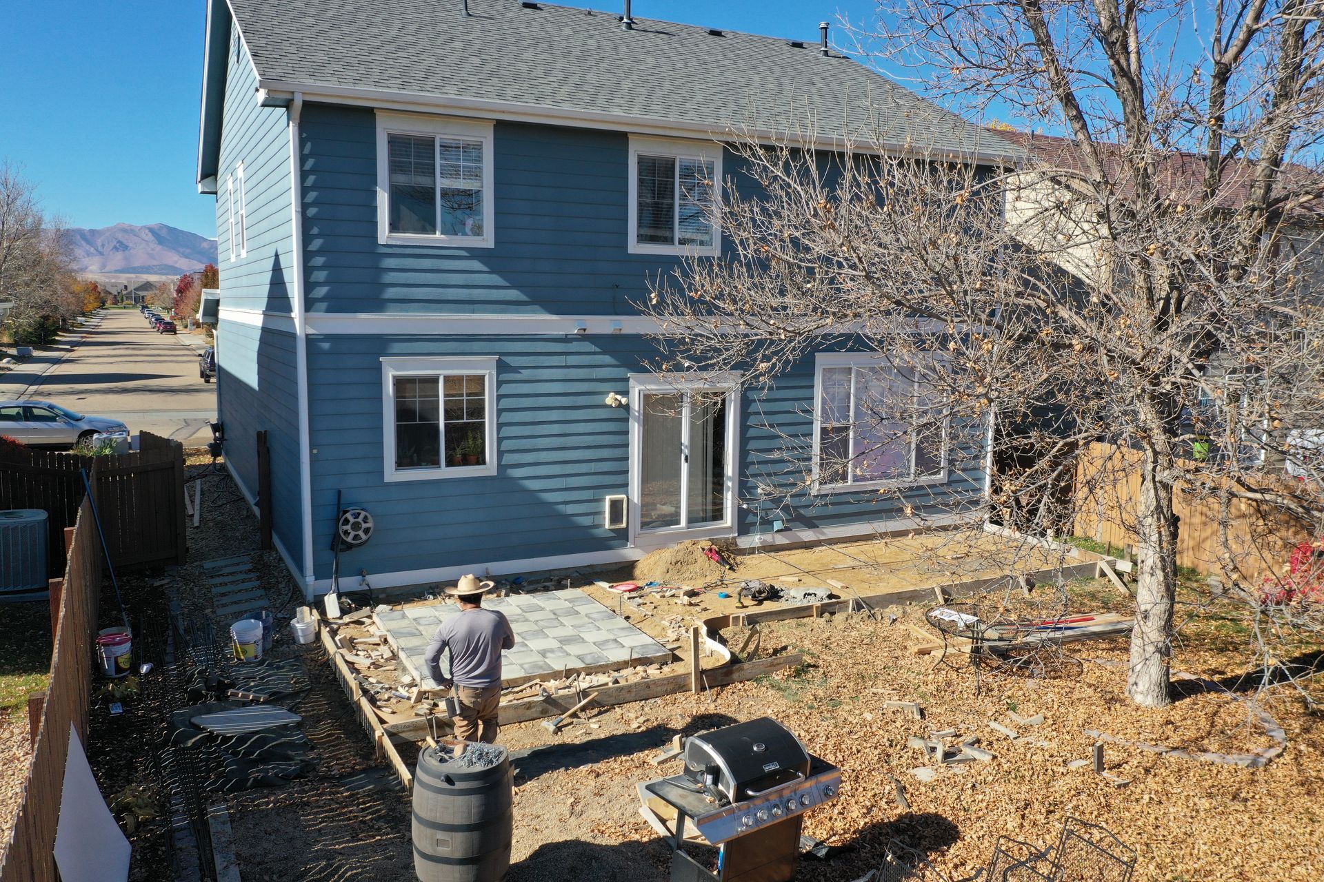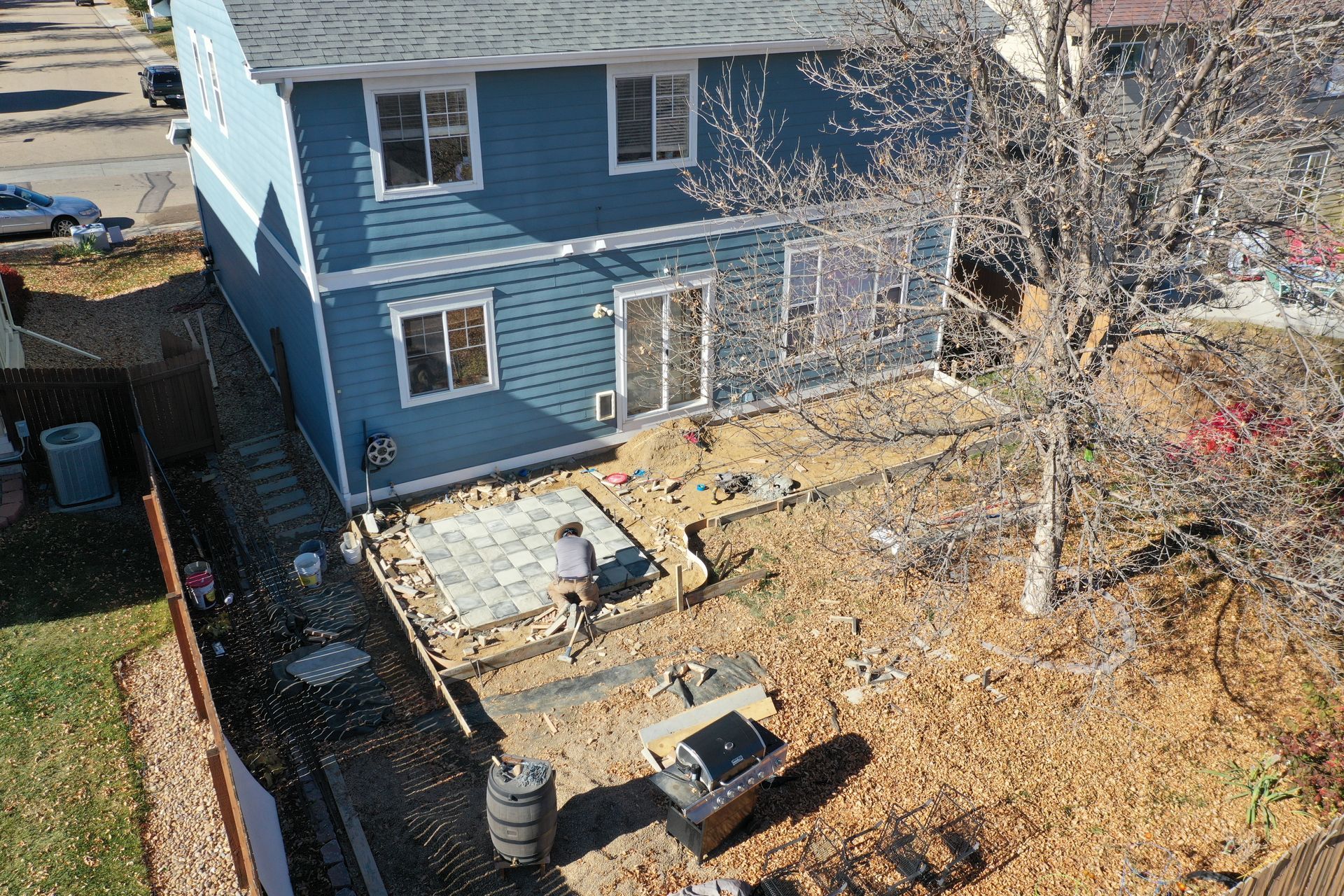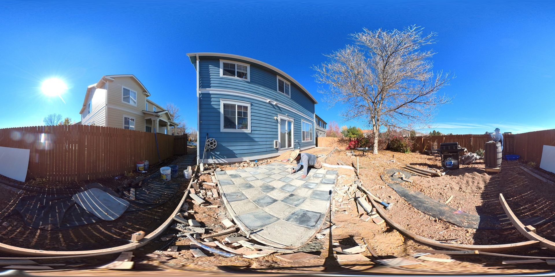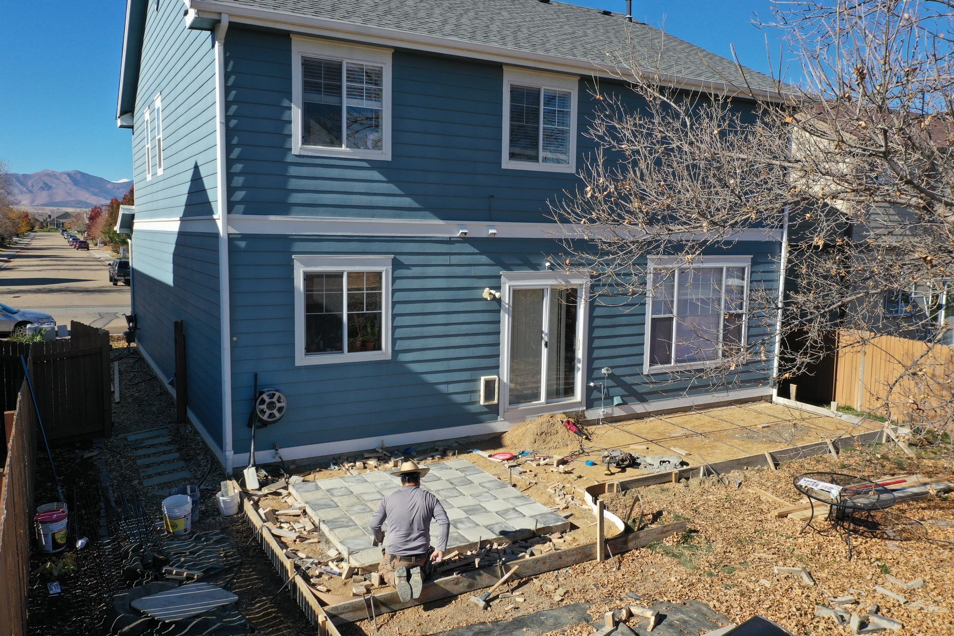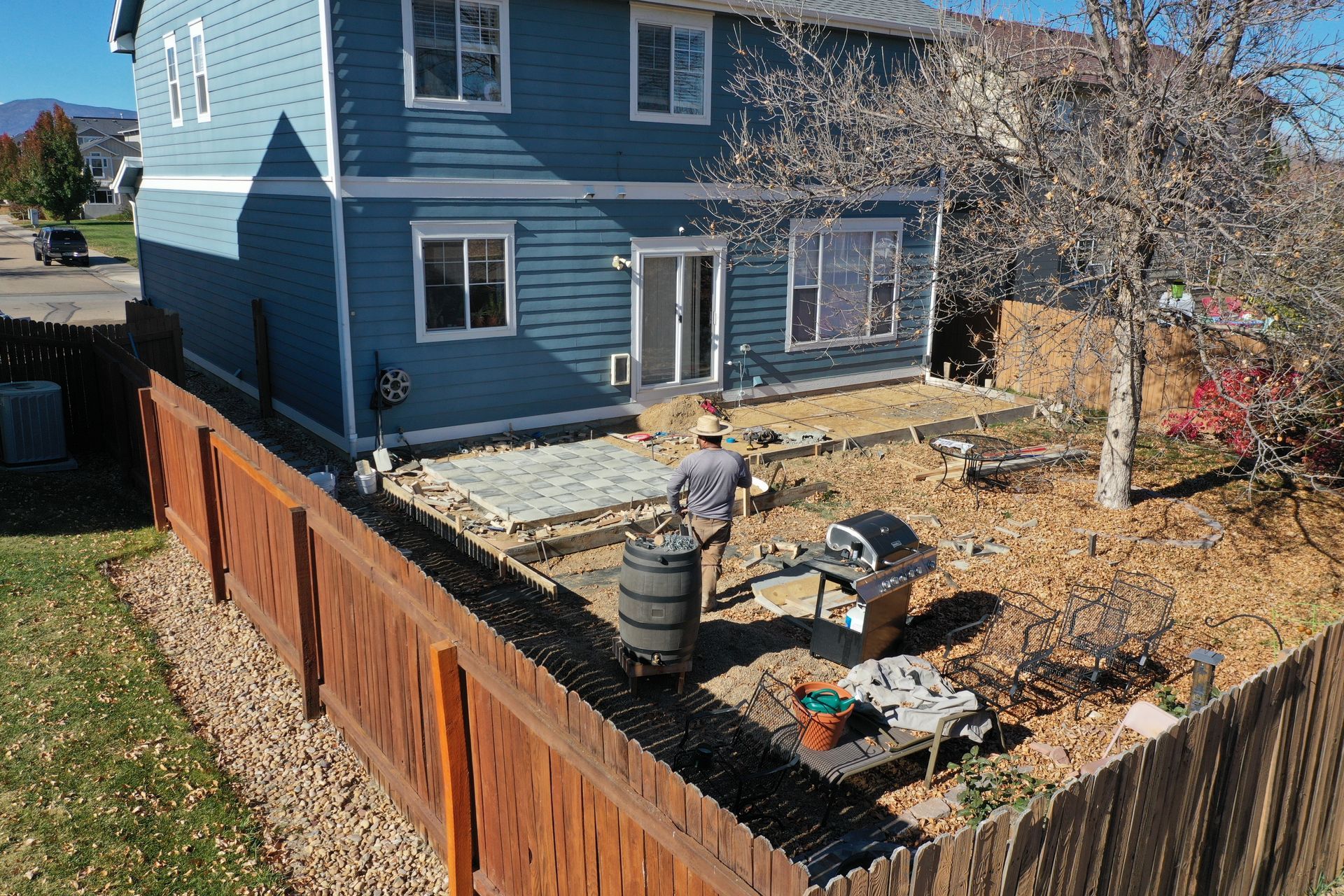 Beautiful stamped concrete patio with a fully usable life-size chessboard. All built to last with rebar, road base, and high quality concrete with fiber.