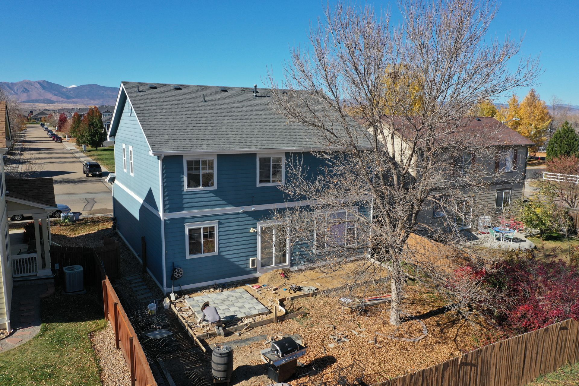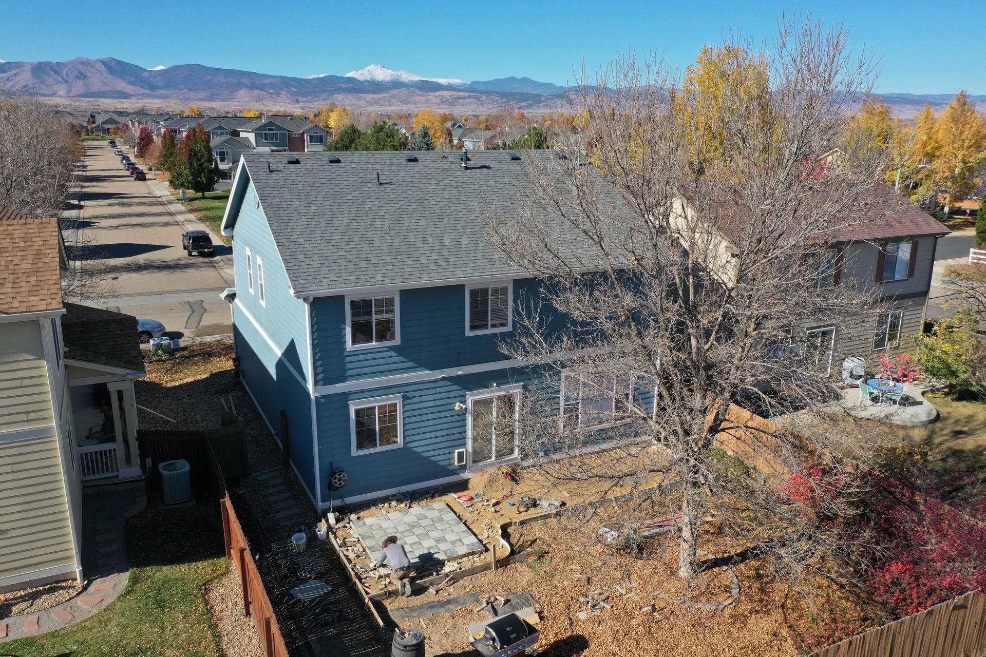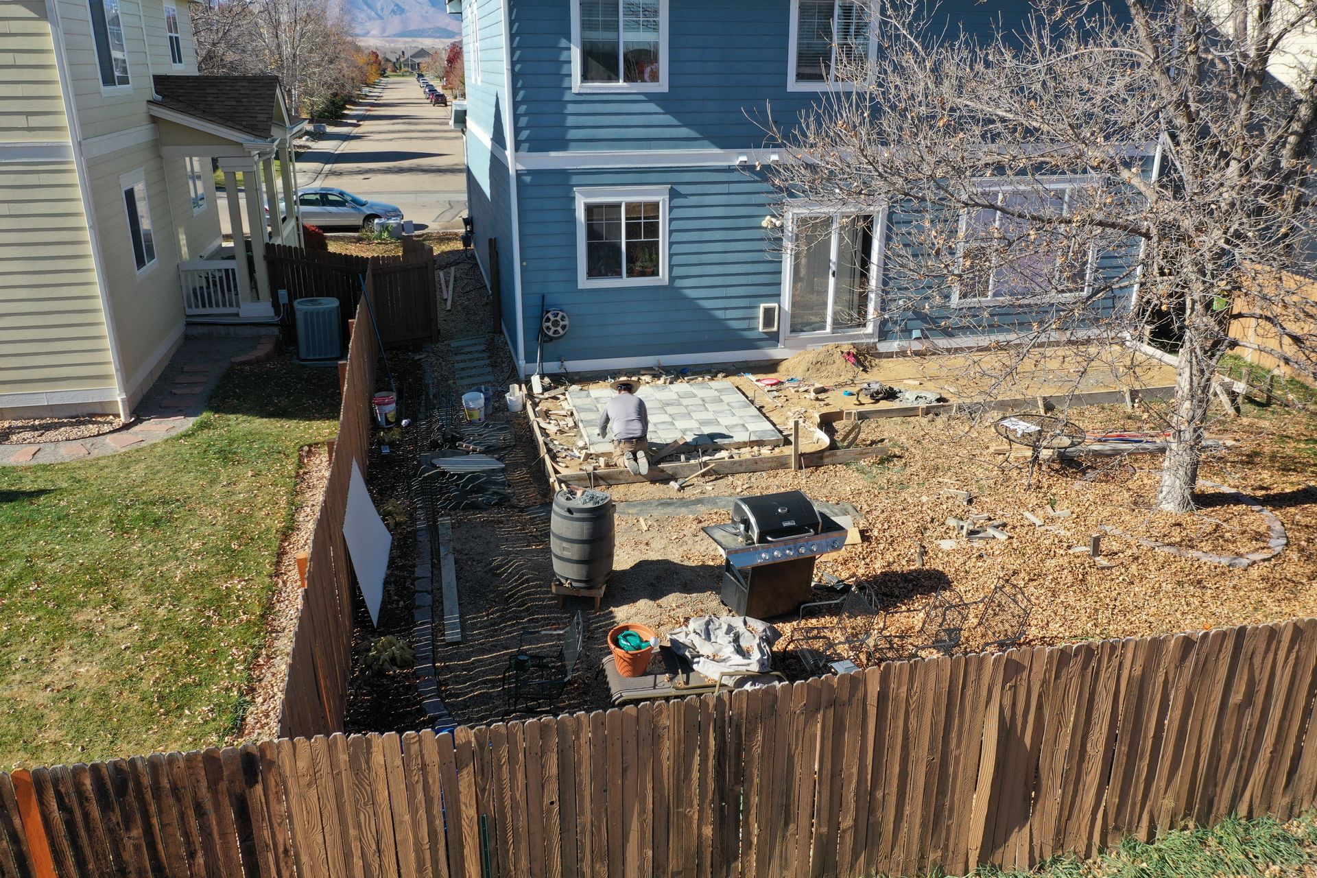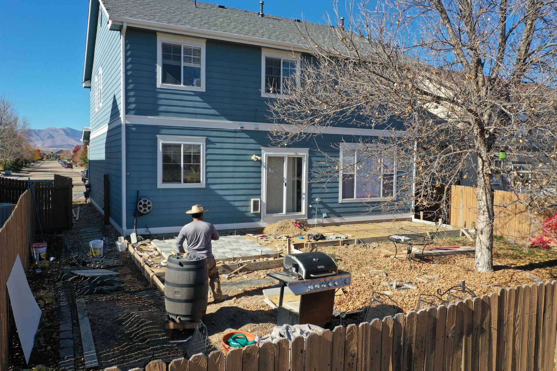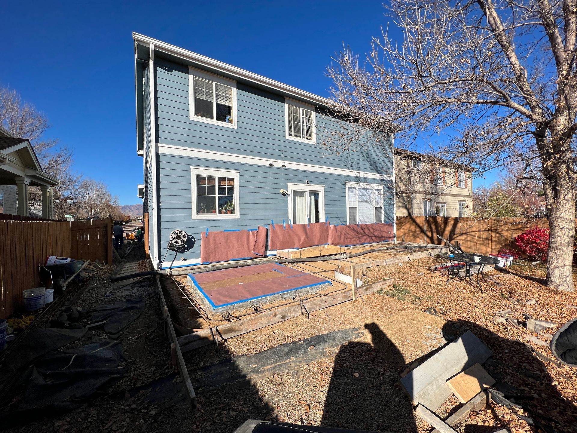 Beautiful stamped concrete patio with a fully usable life-size chessboard. All built to last with rebar, road base, and high quality concrete with fiber.
