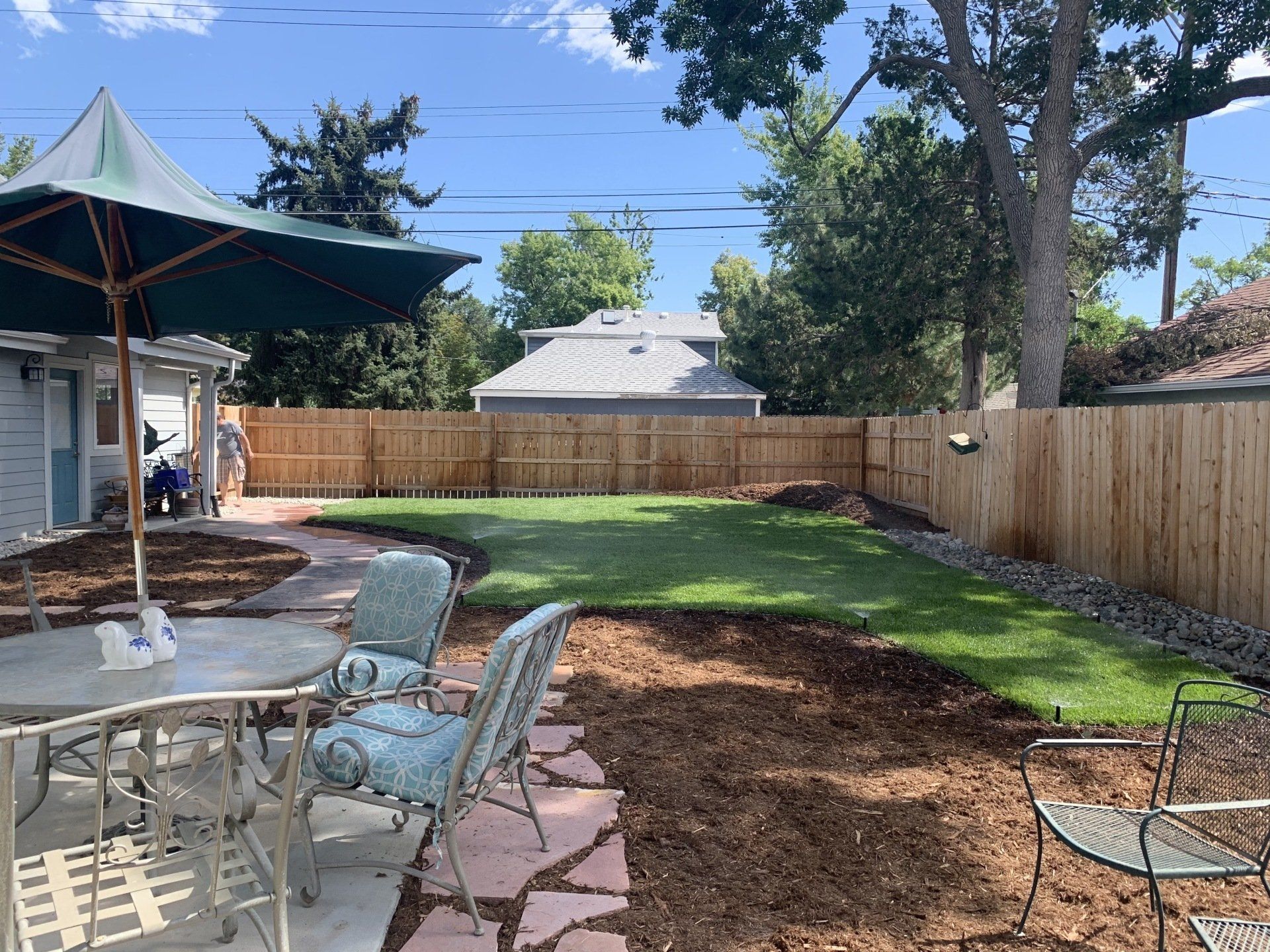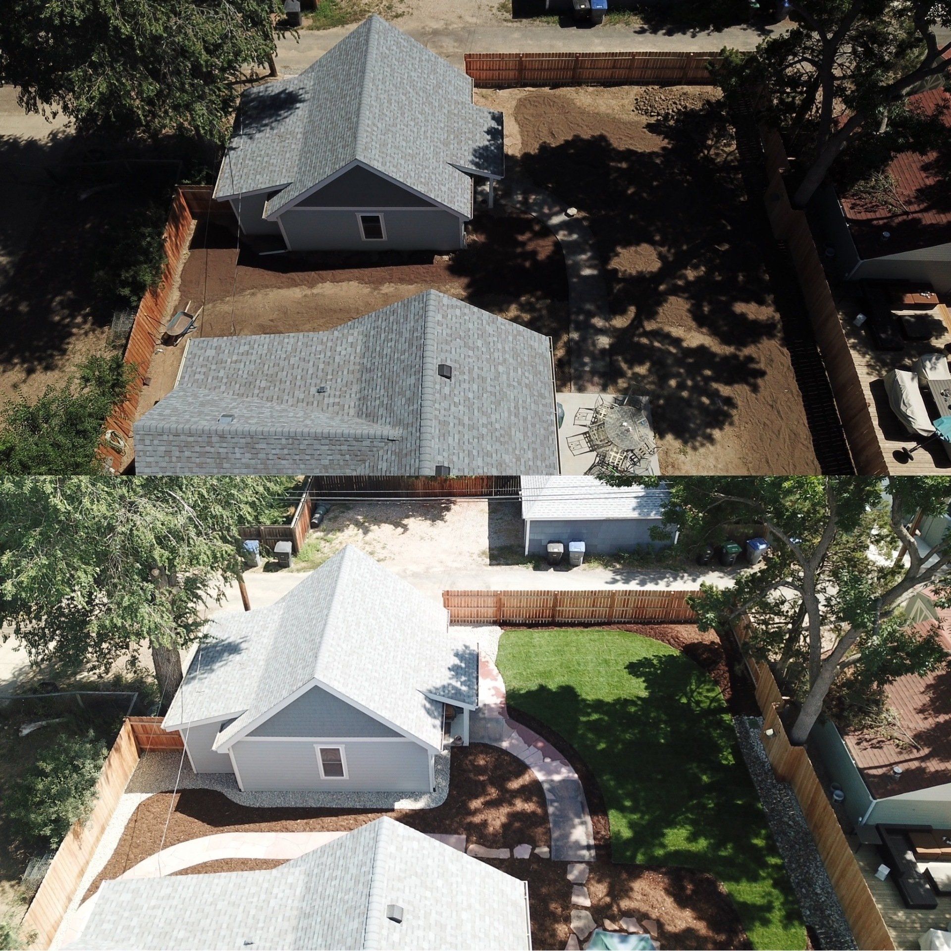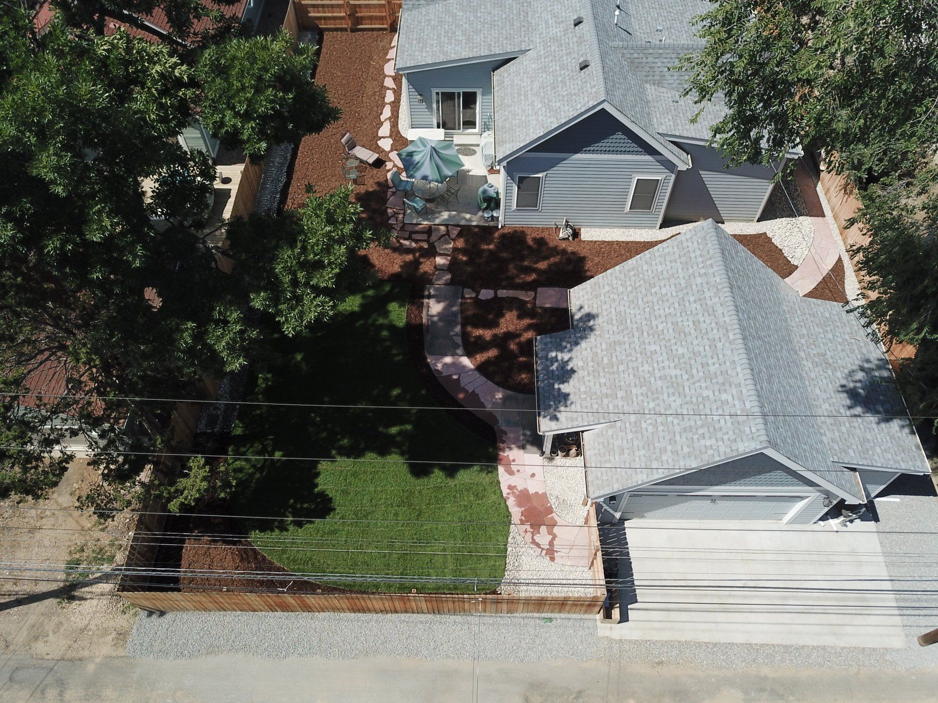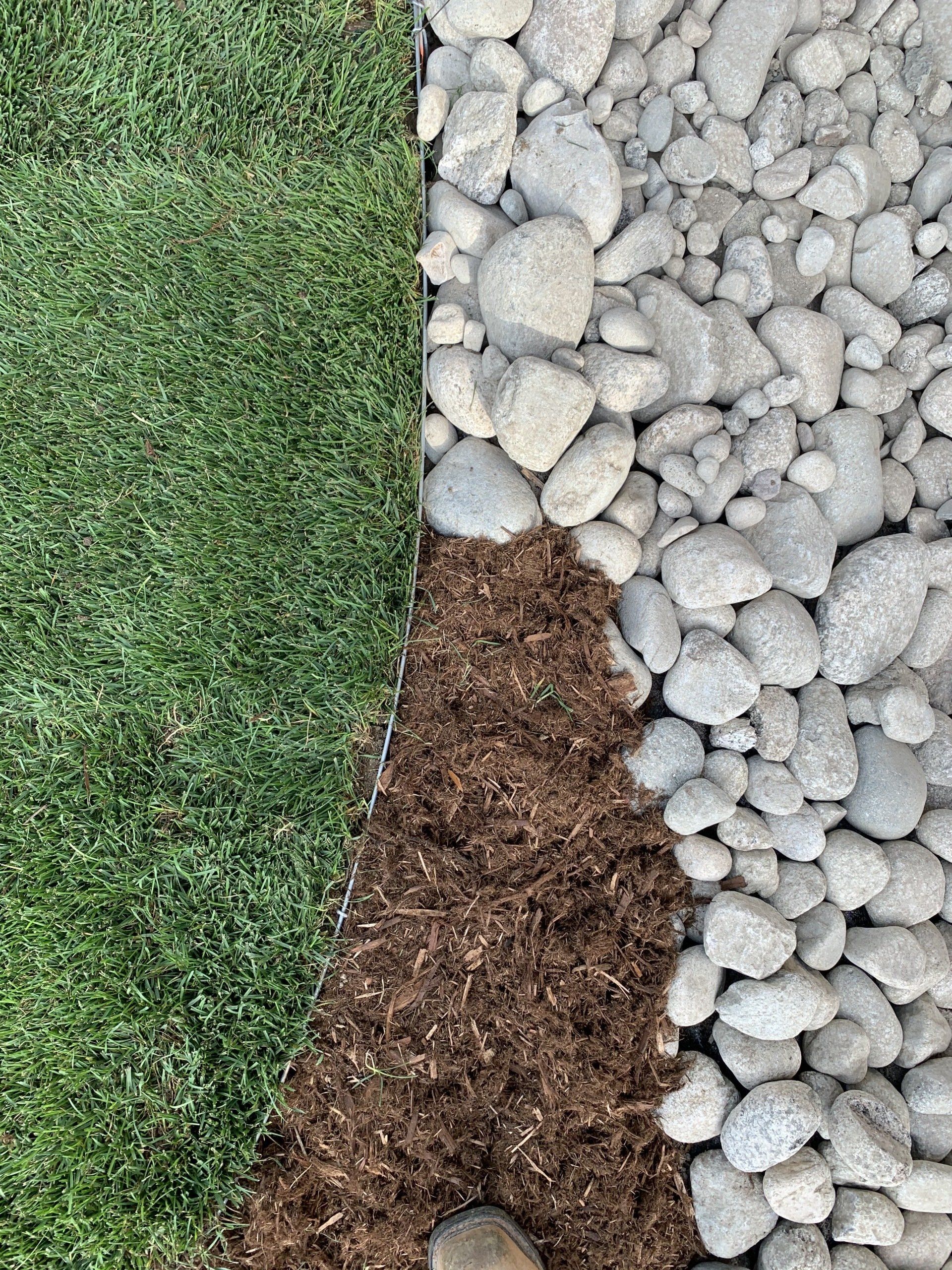 Newly remodeled home that had us install natural streams using cobble. Grass, mulch, and beautiful flagstone walkways built to ensure client enjoys all backyard areas.