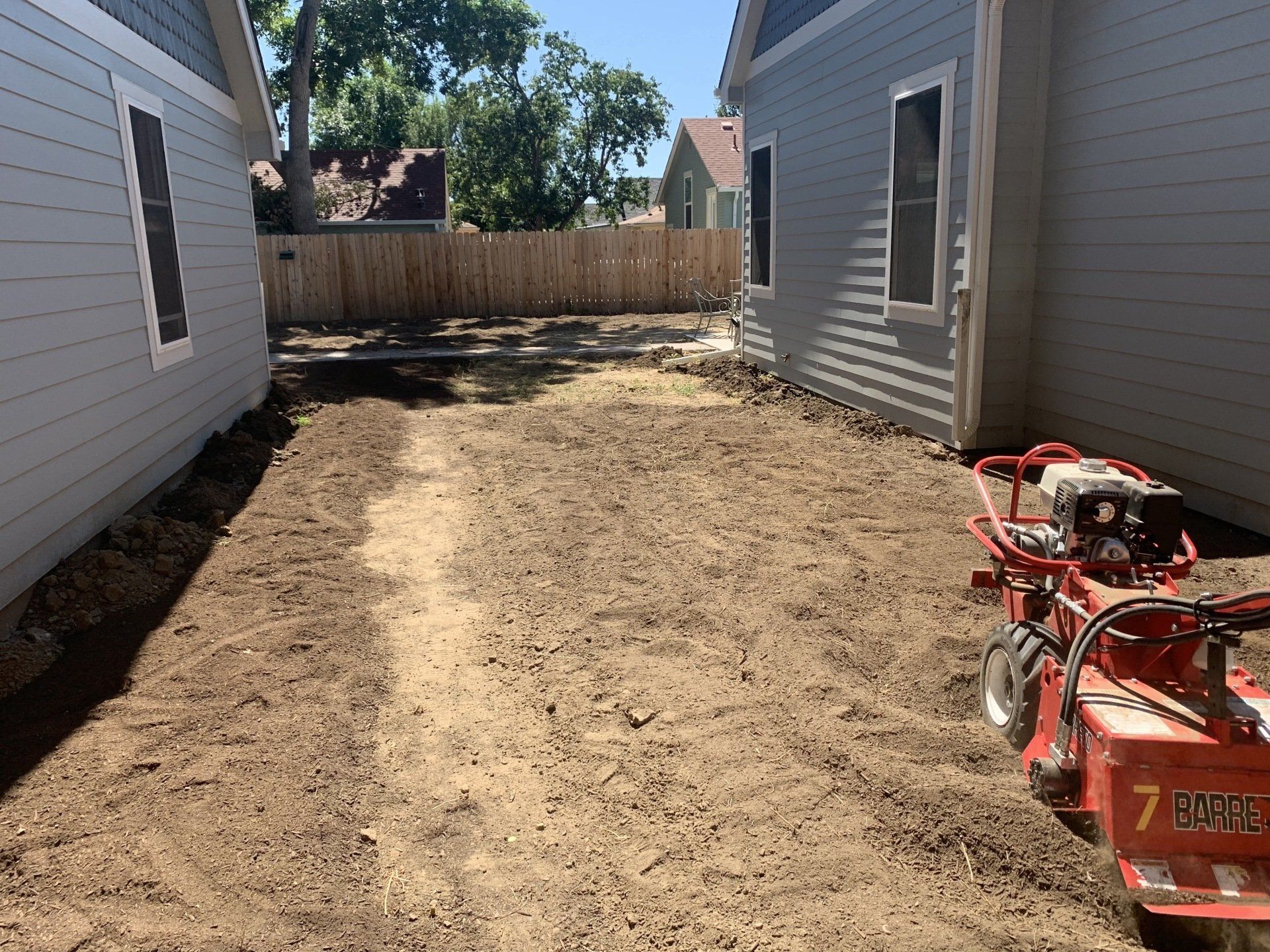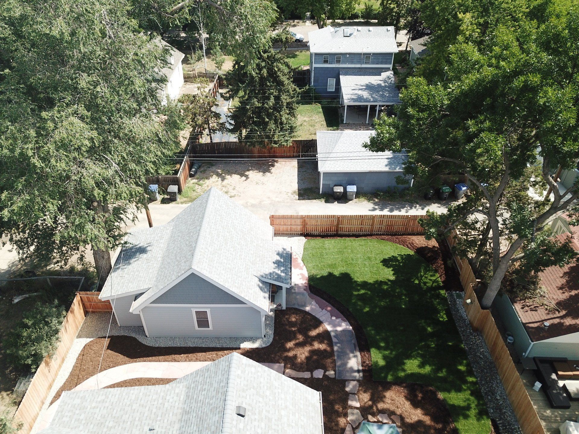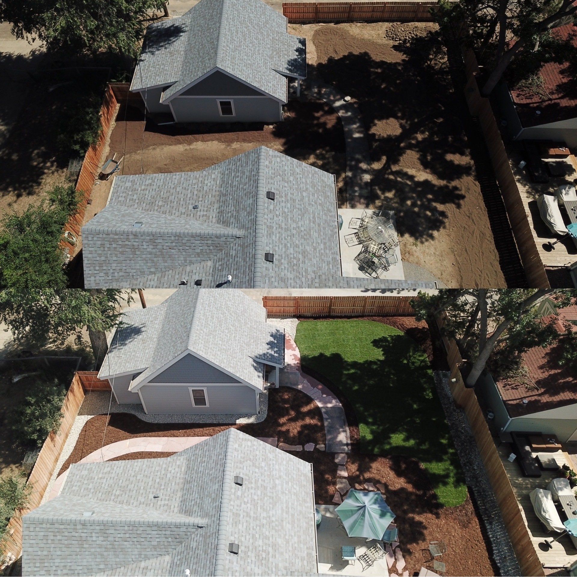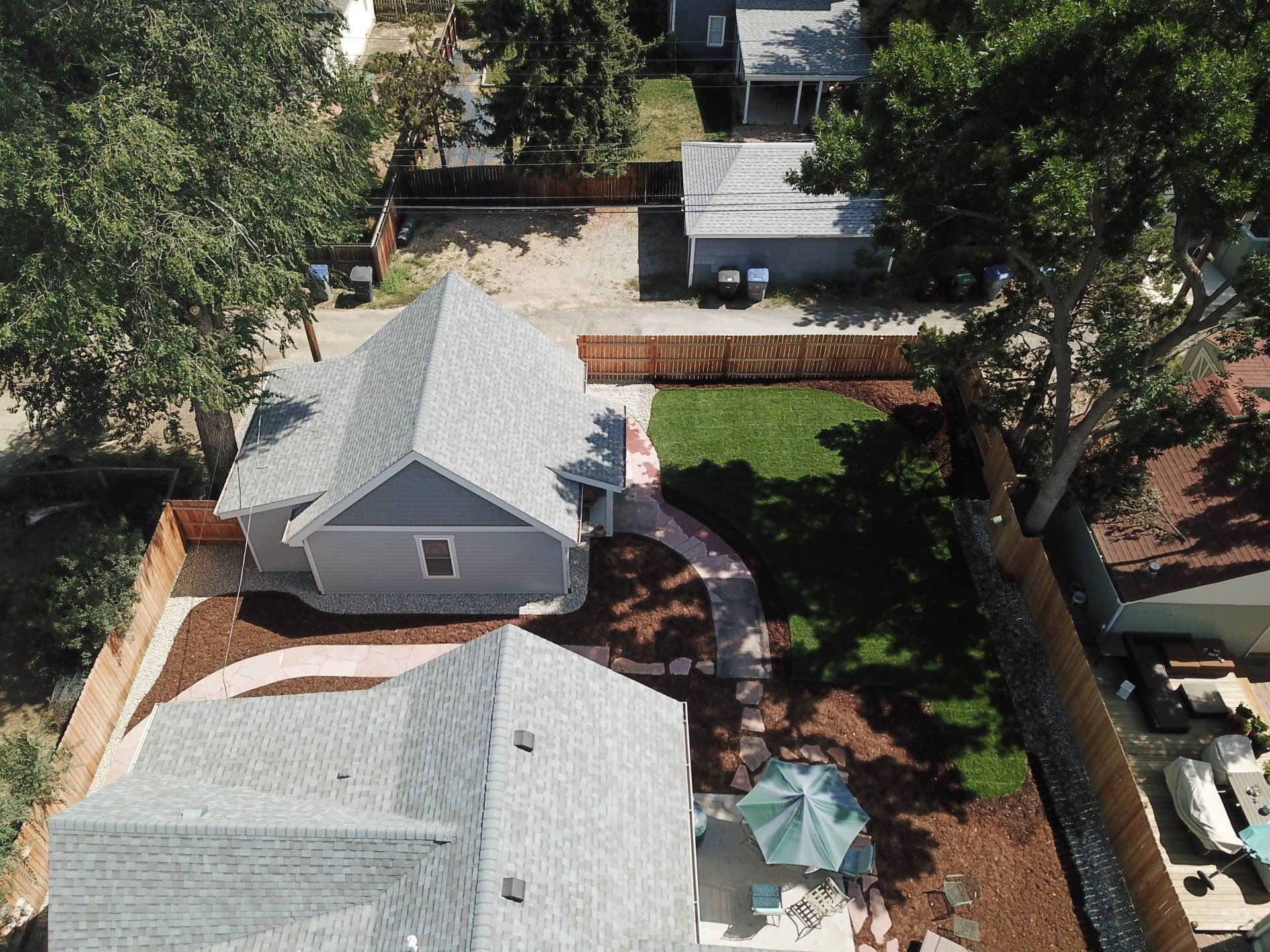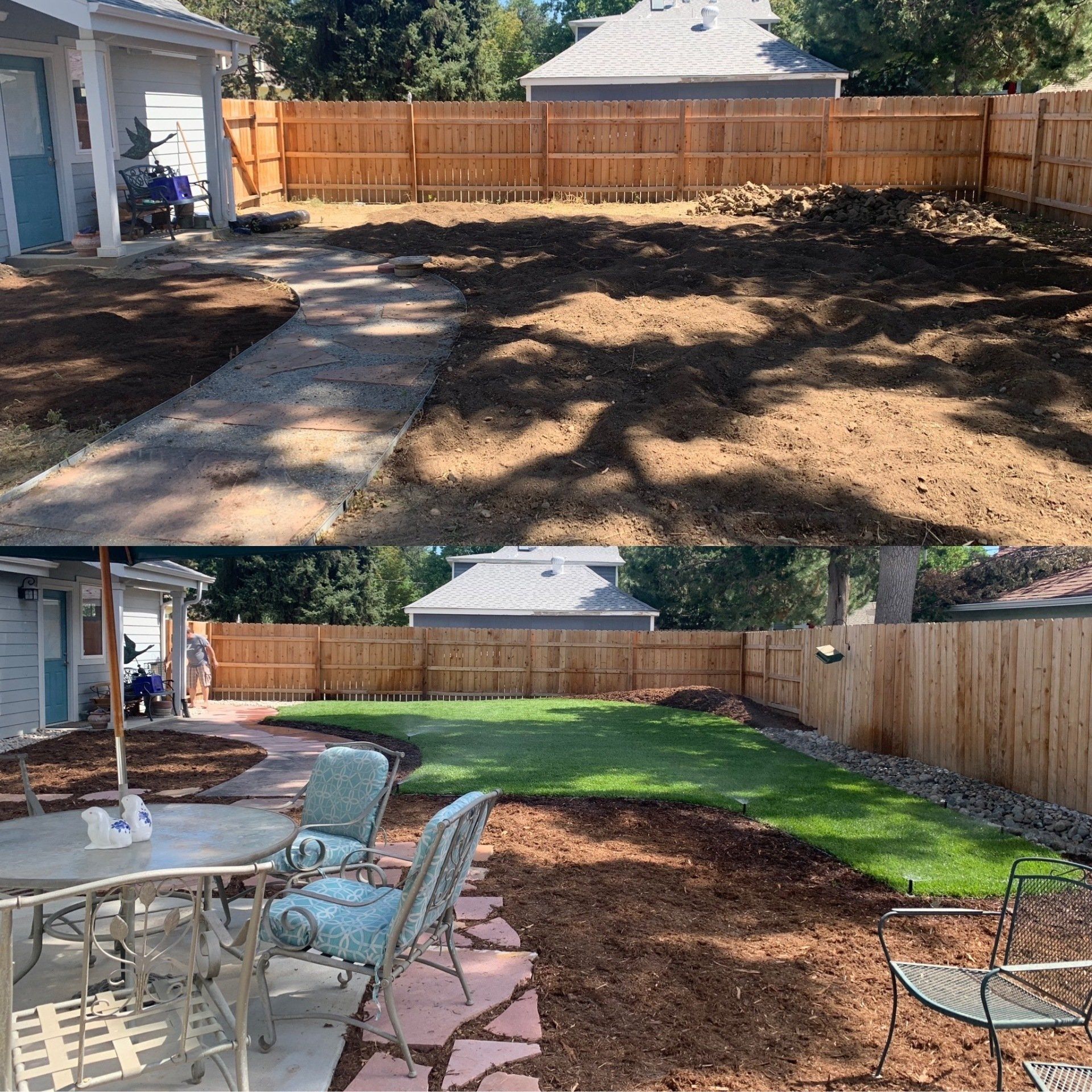 Newly remodeled home that had us install natural streams using cobble. Grass, mulch, and beautiful flagstone walkways built to ensure client enjoys all backyard areas.