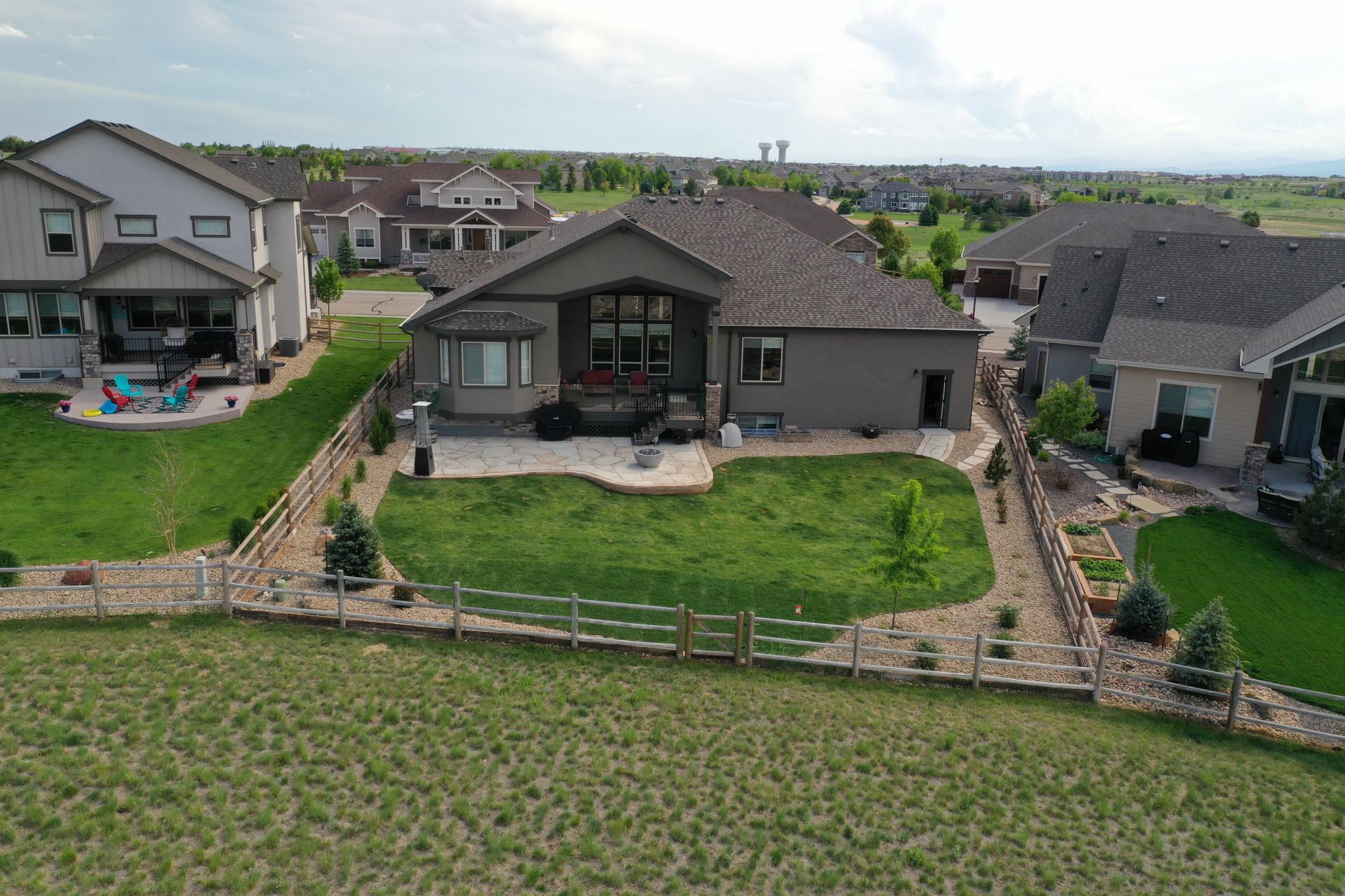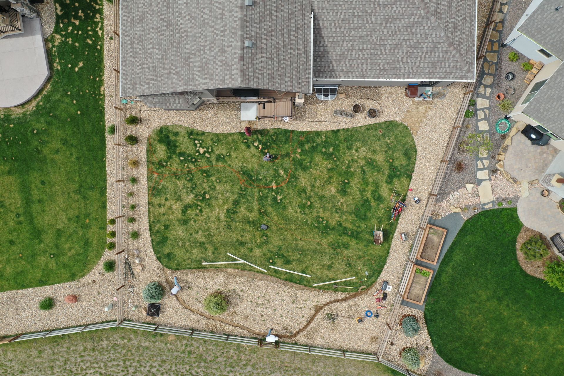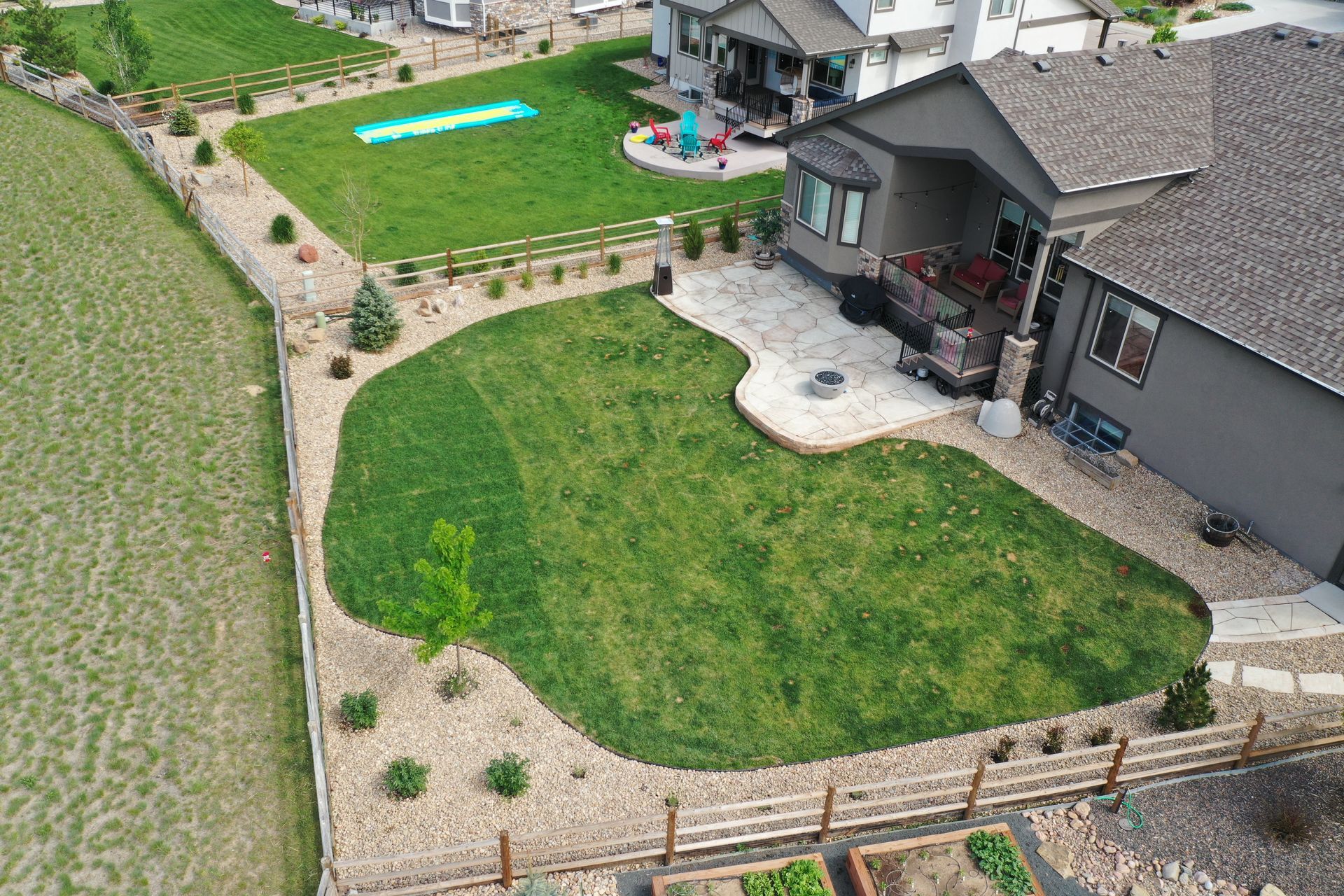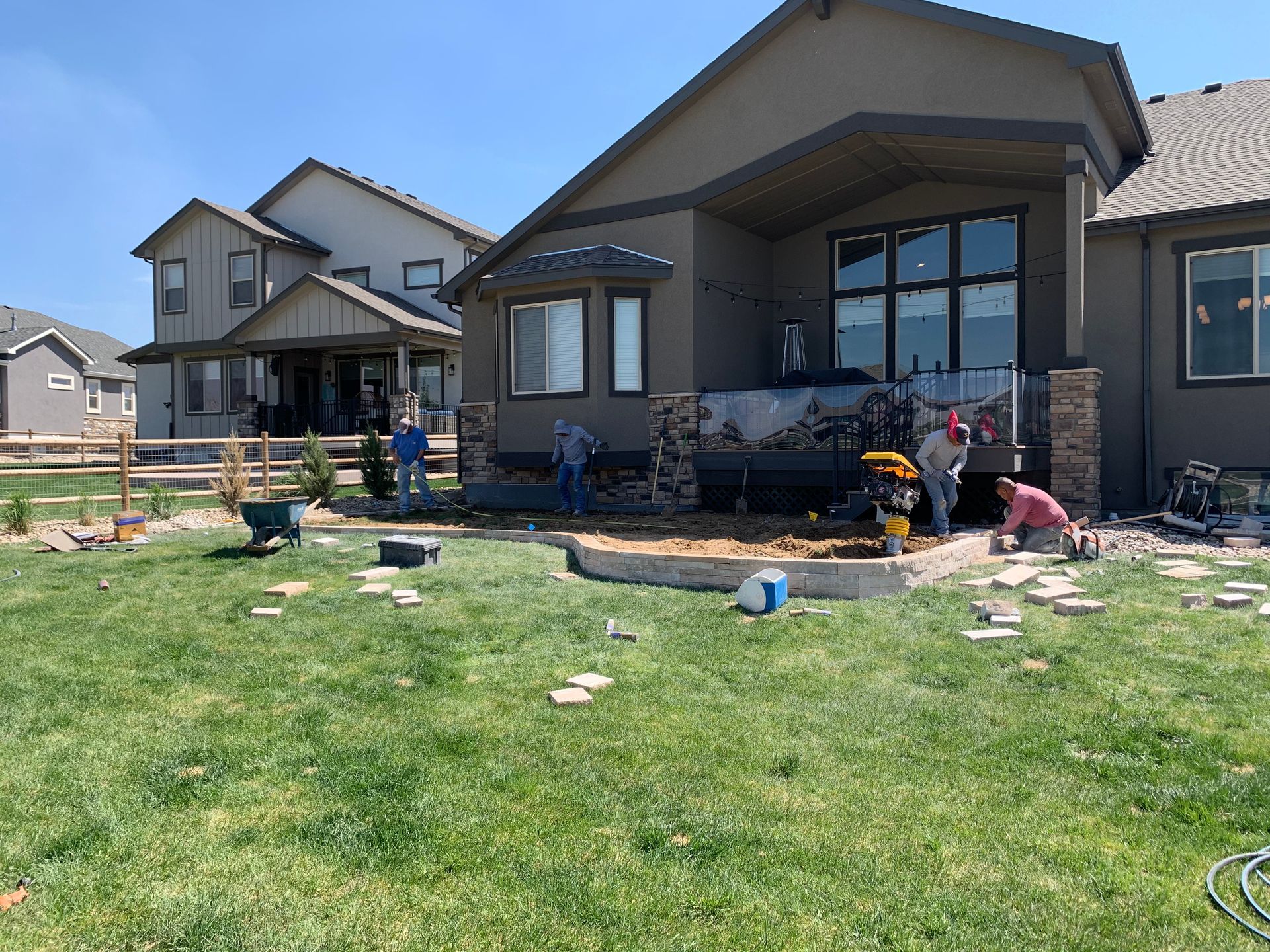 Arizona buff flagstone patio with Arizona buff strip stone dry stacked to create new gathering area at this beautiful home. Windsor, CO 2019