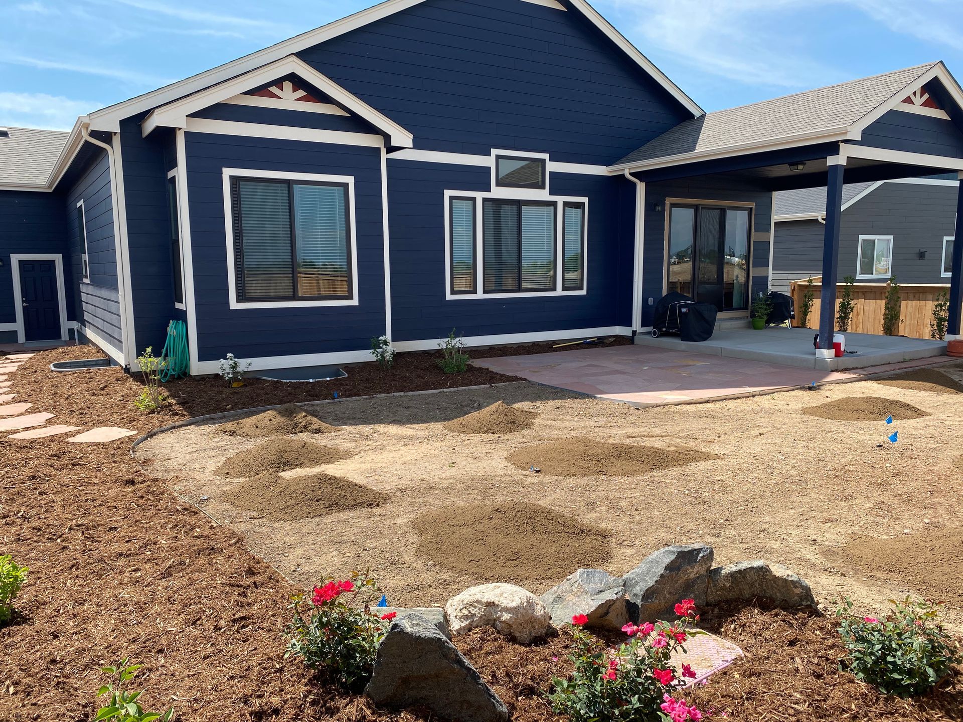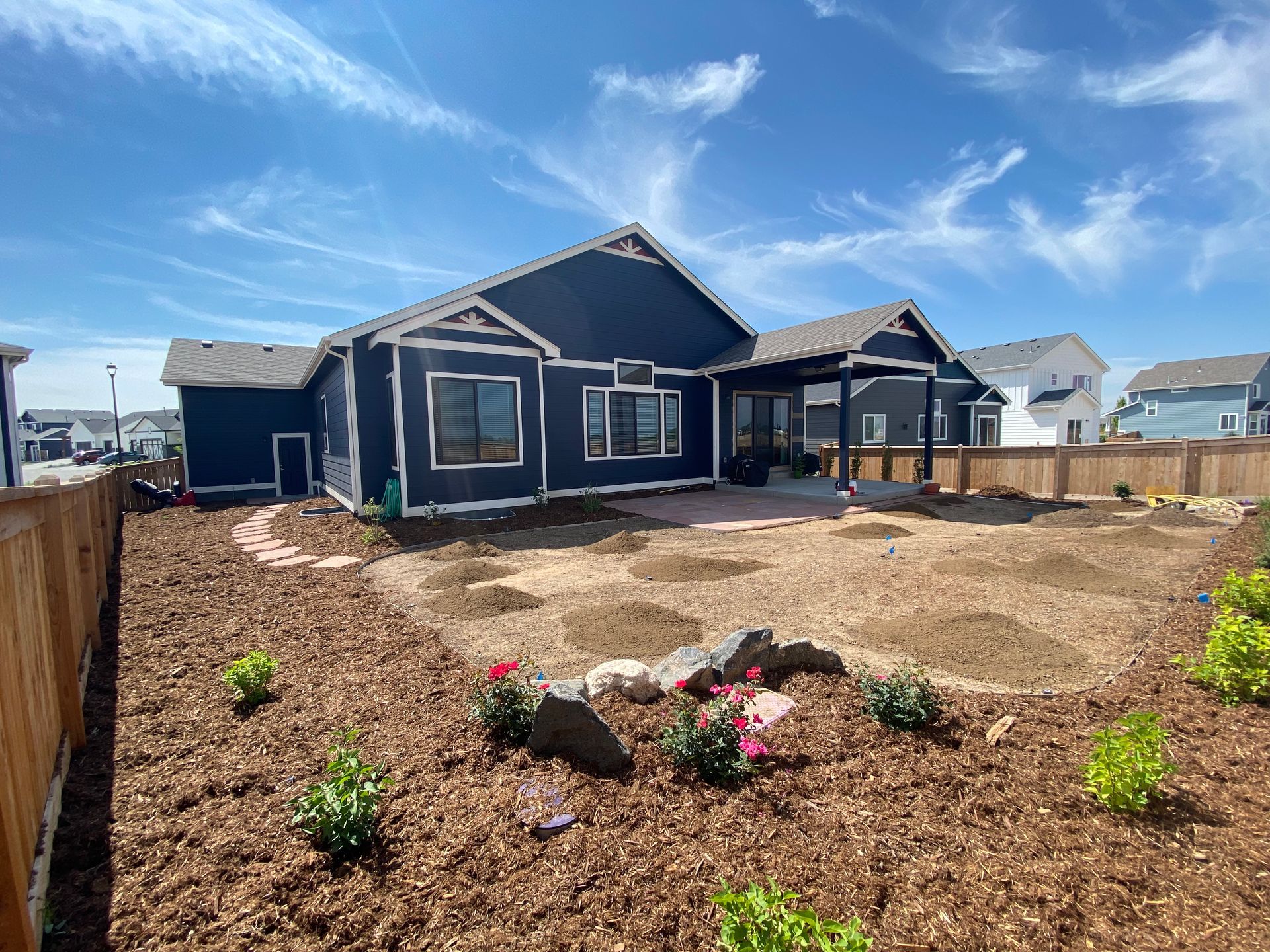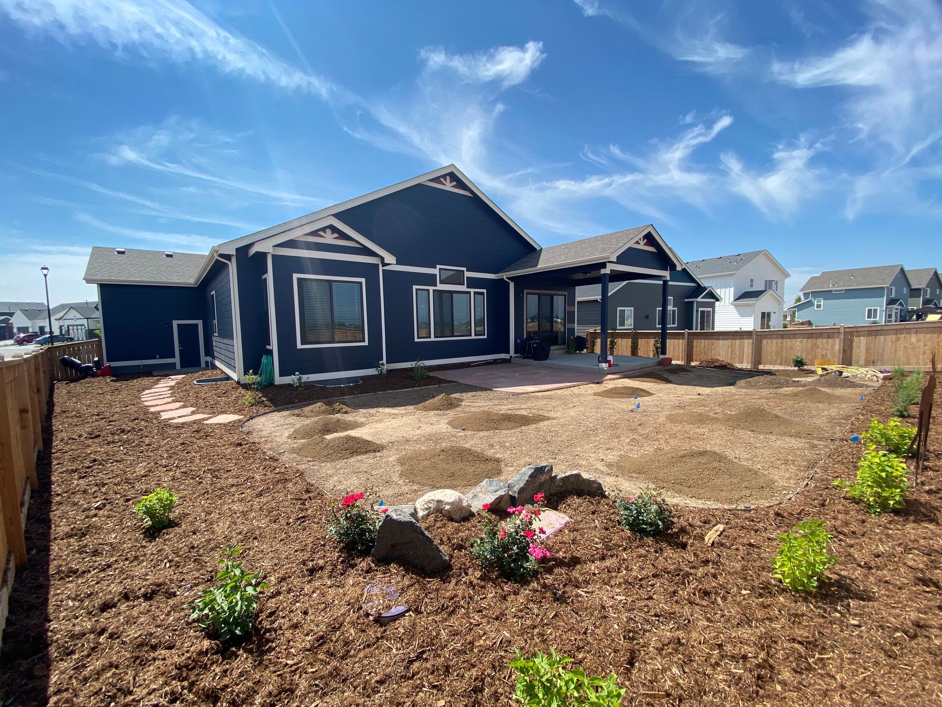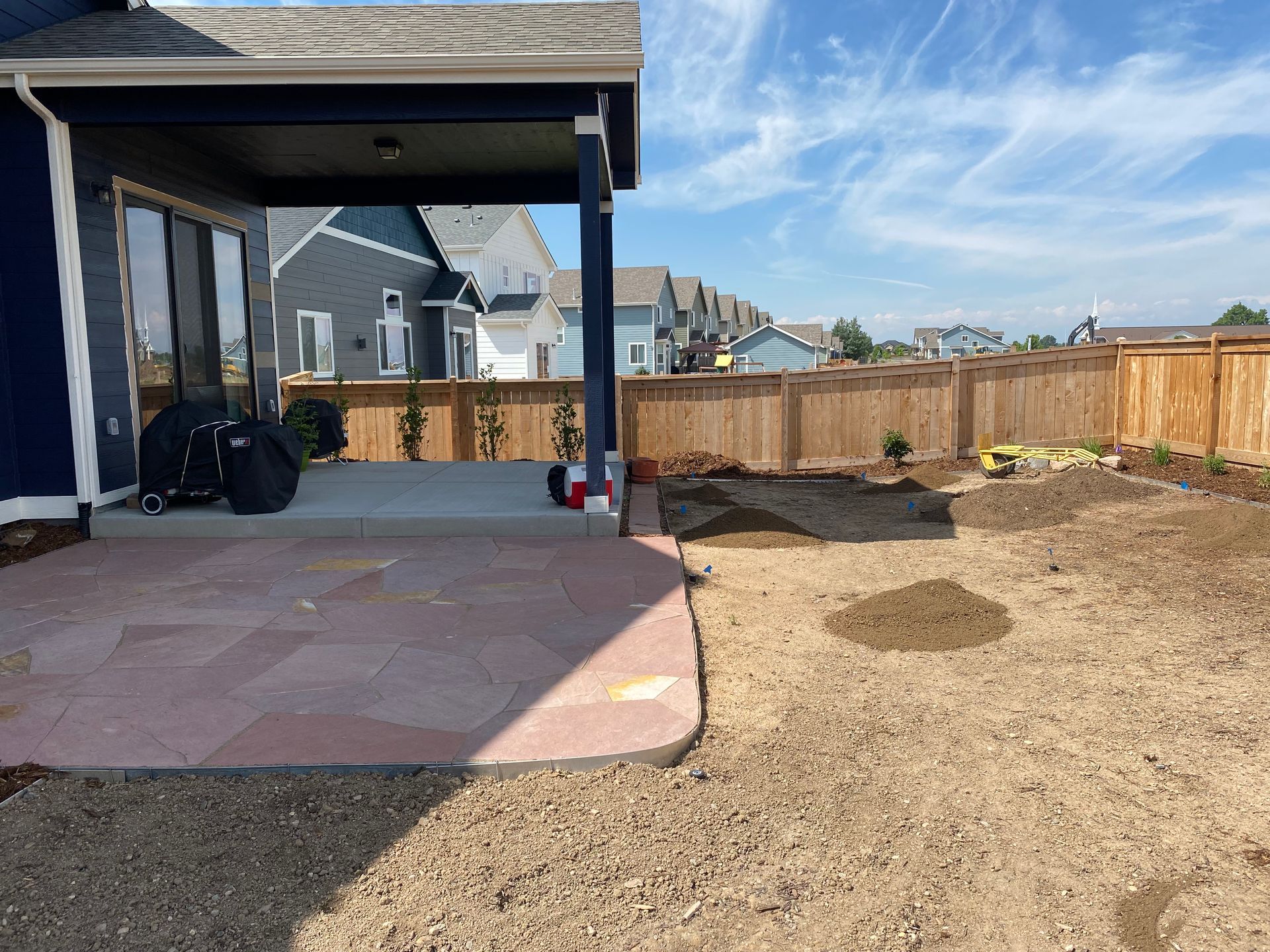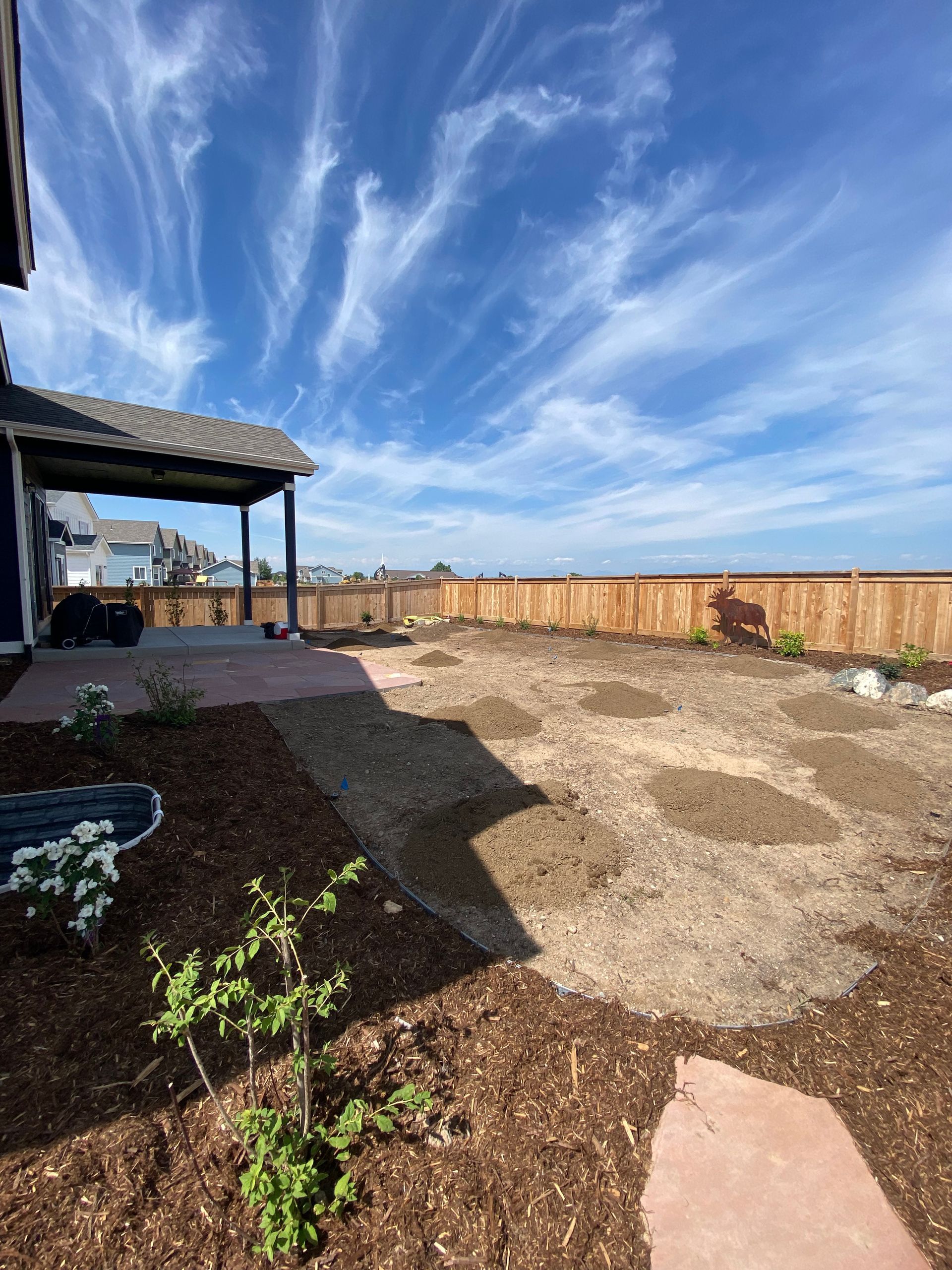 Full install in back yard of plantings, steppers, rock, mulch, plants, and grass but we forgot the final pictures. Windsor, CO 2021