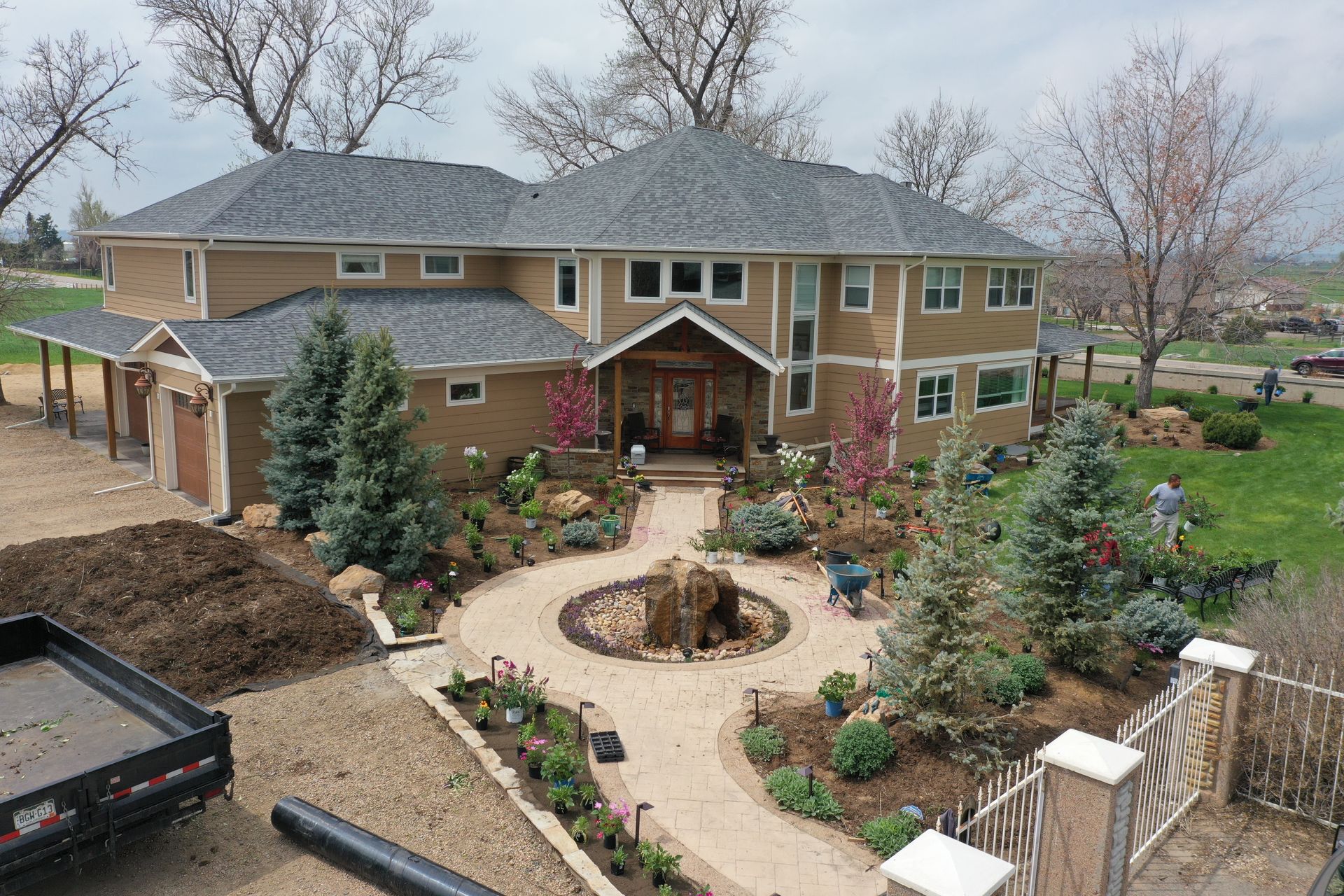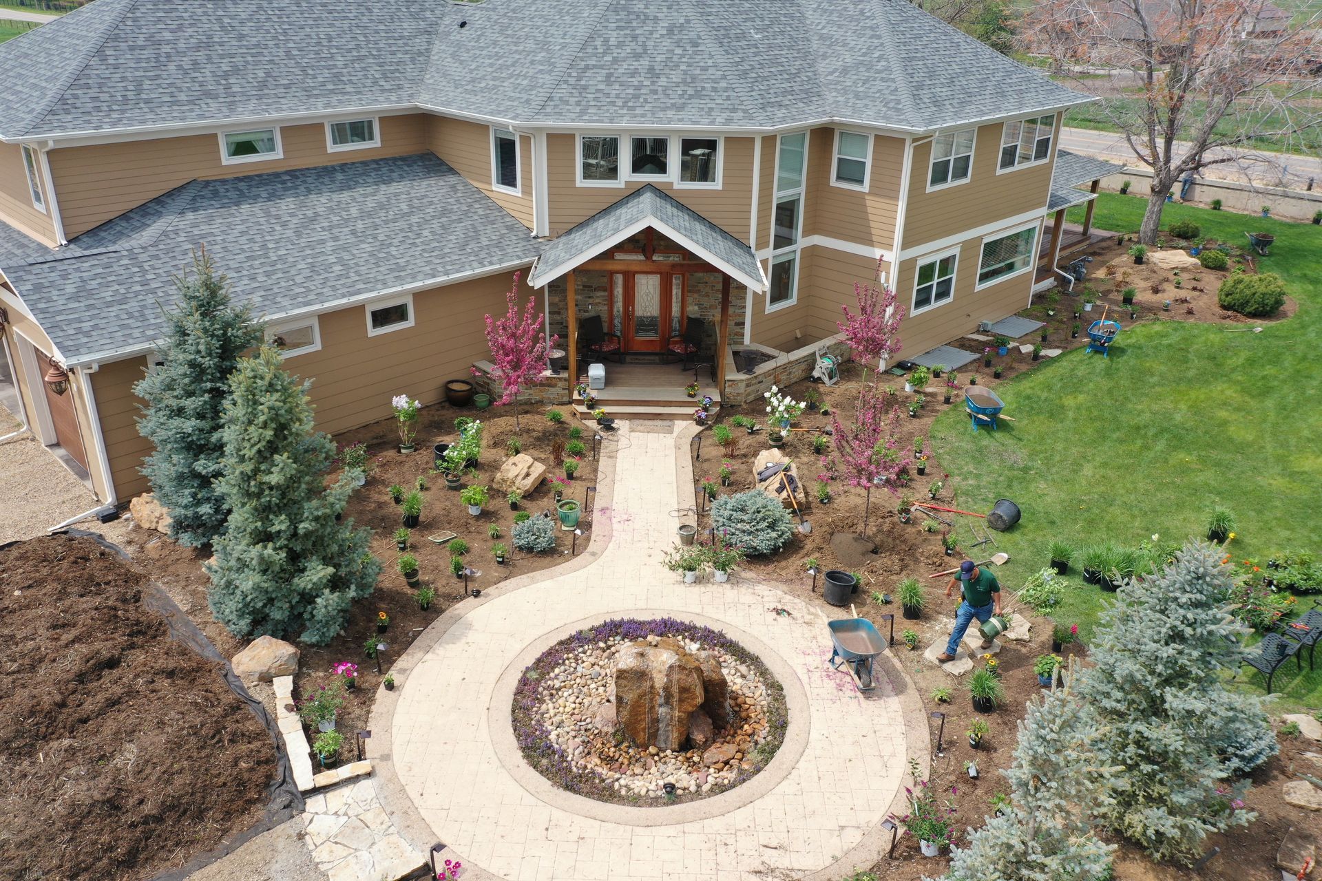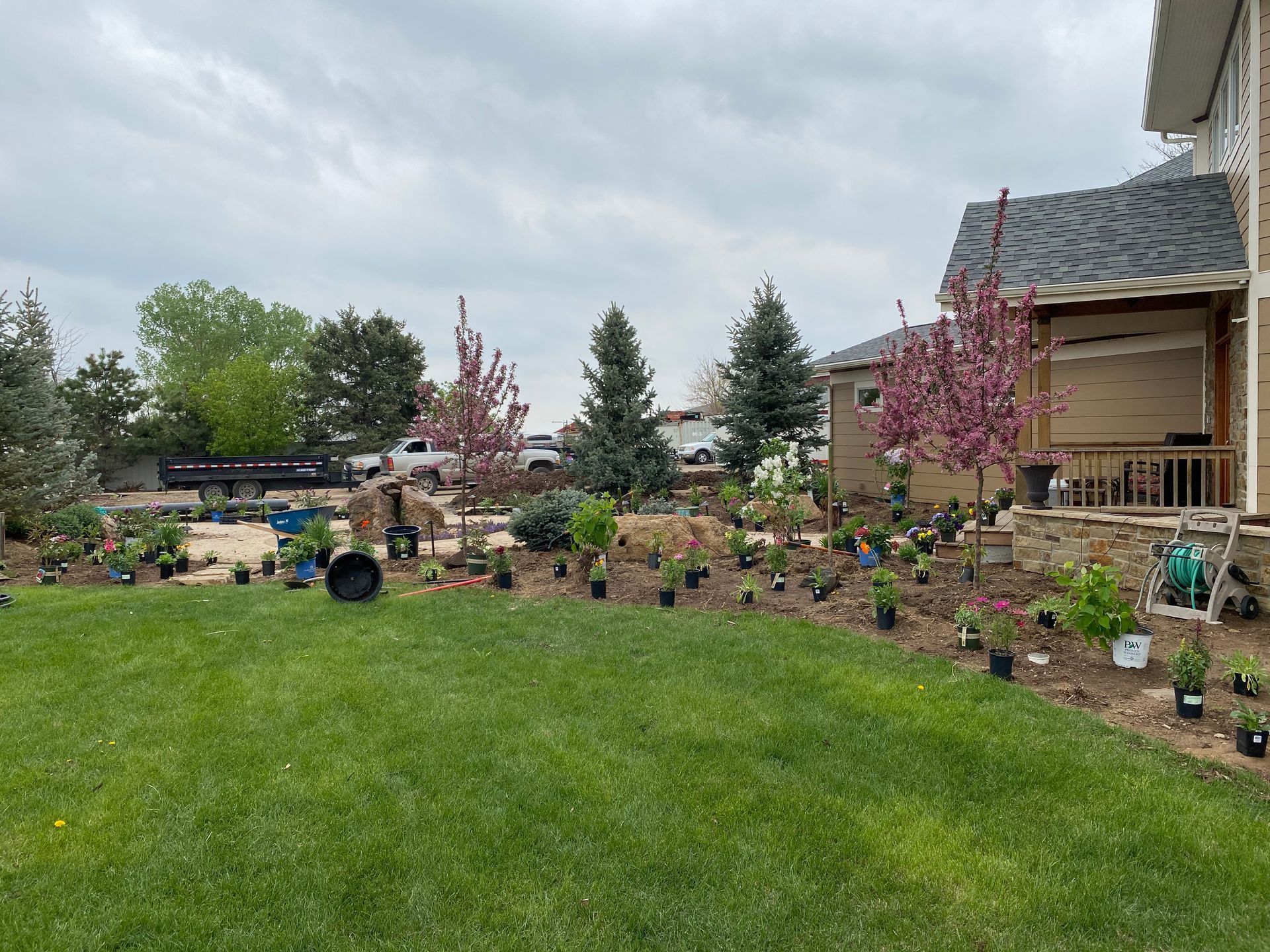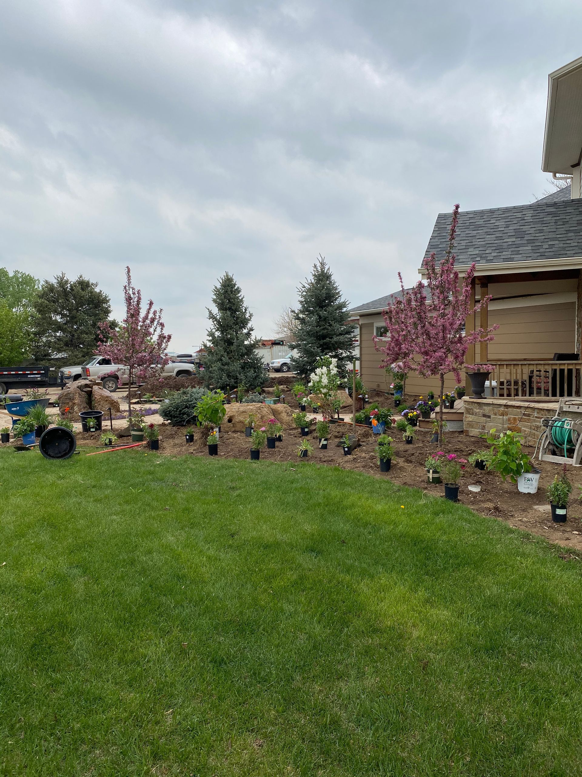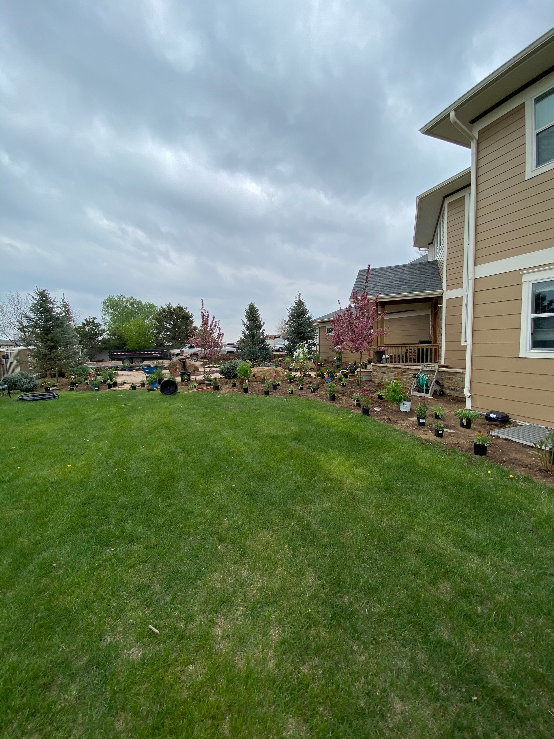 Lots of planting of perennials and annuals with mulch refresh and irrigation audit repairs. Erie, CO 2021