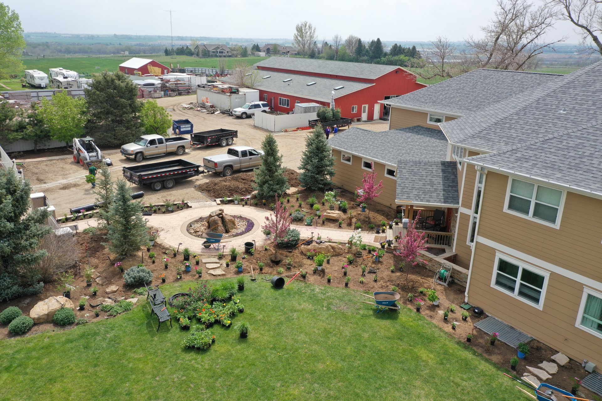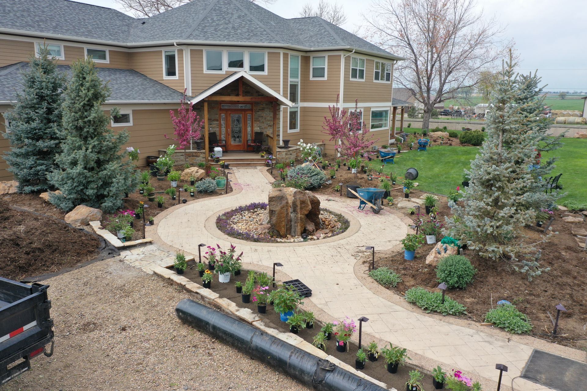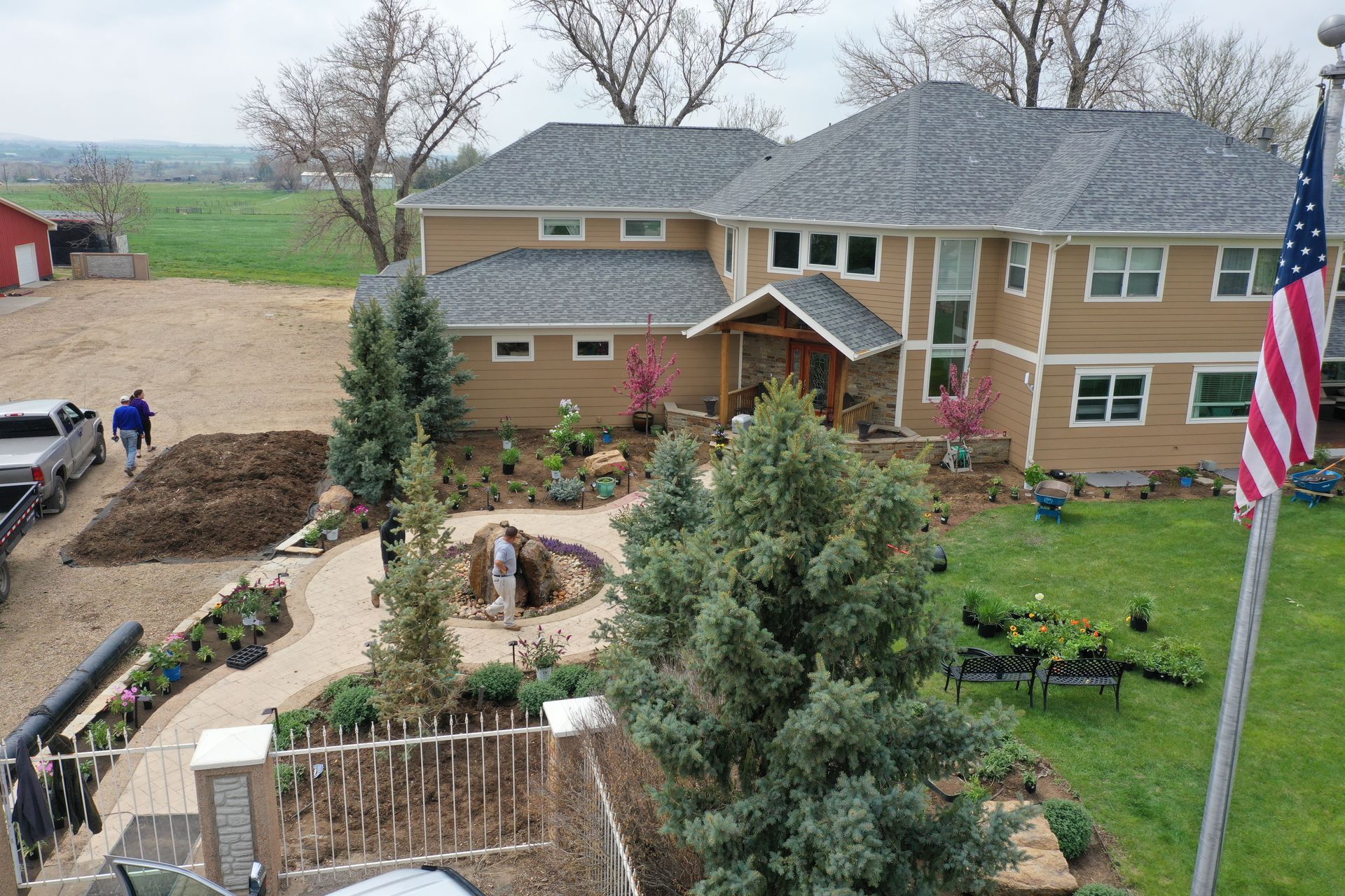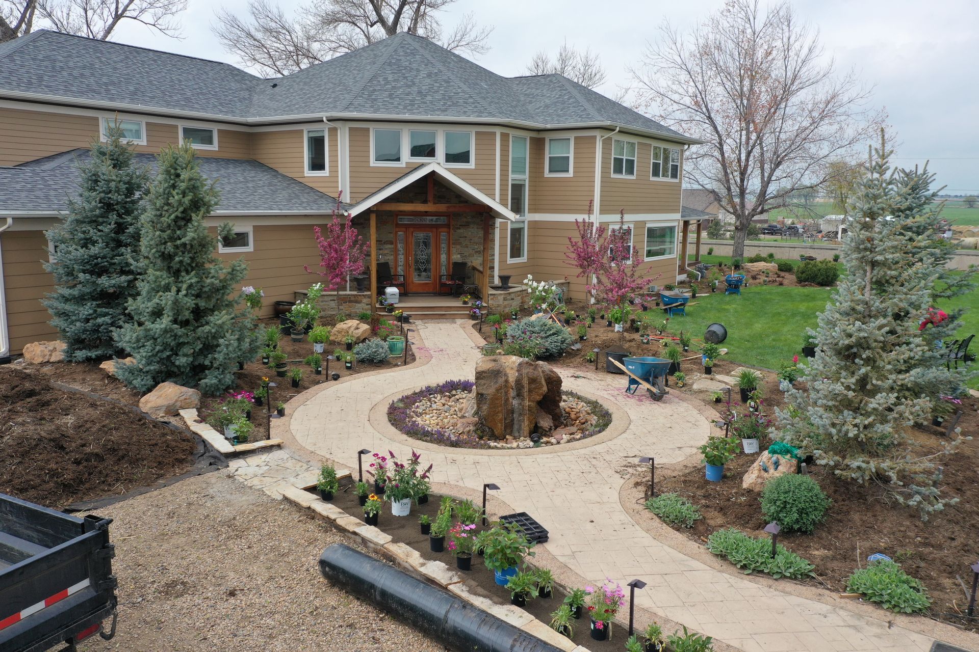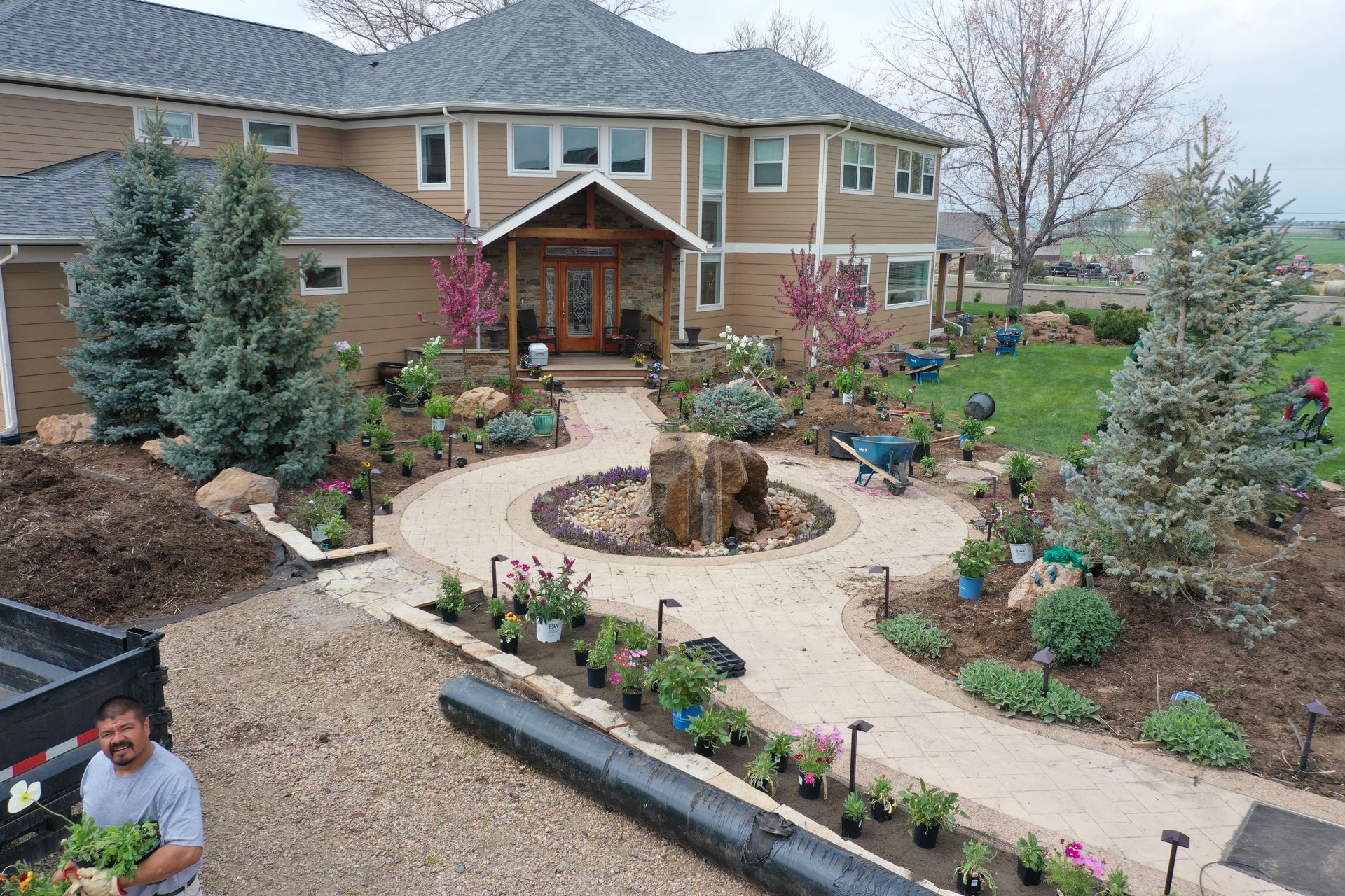 Lots of planting of perennials and annuals with mulch refresh and irrigation audit repairs. Erie, CO 2021