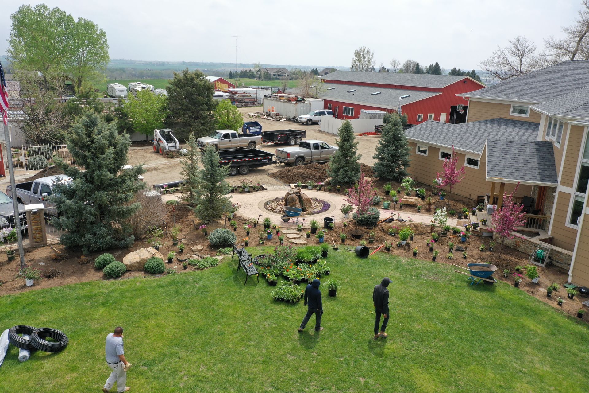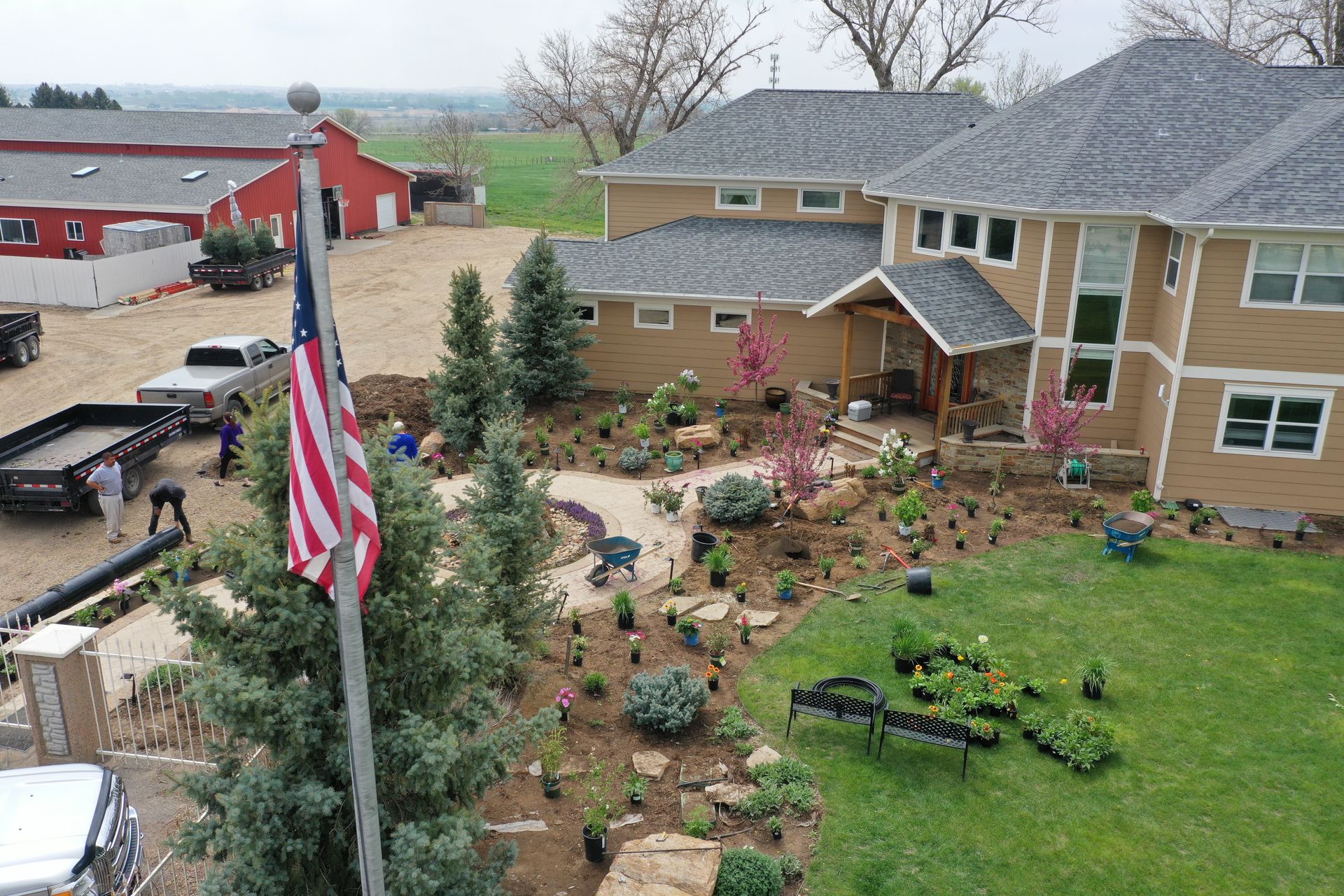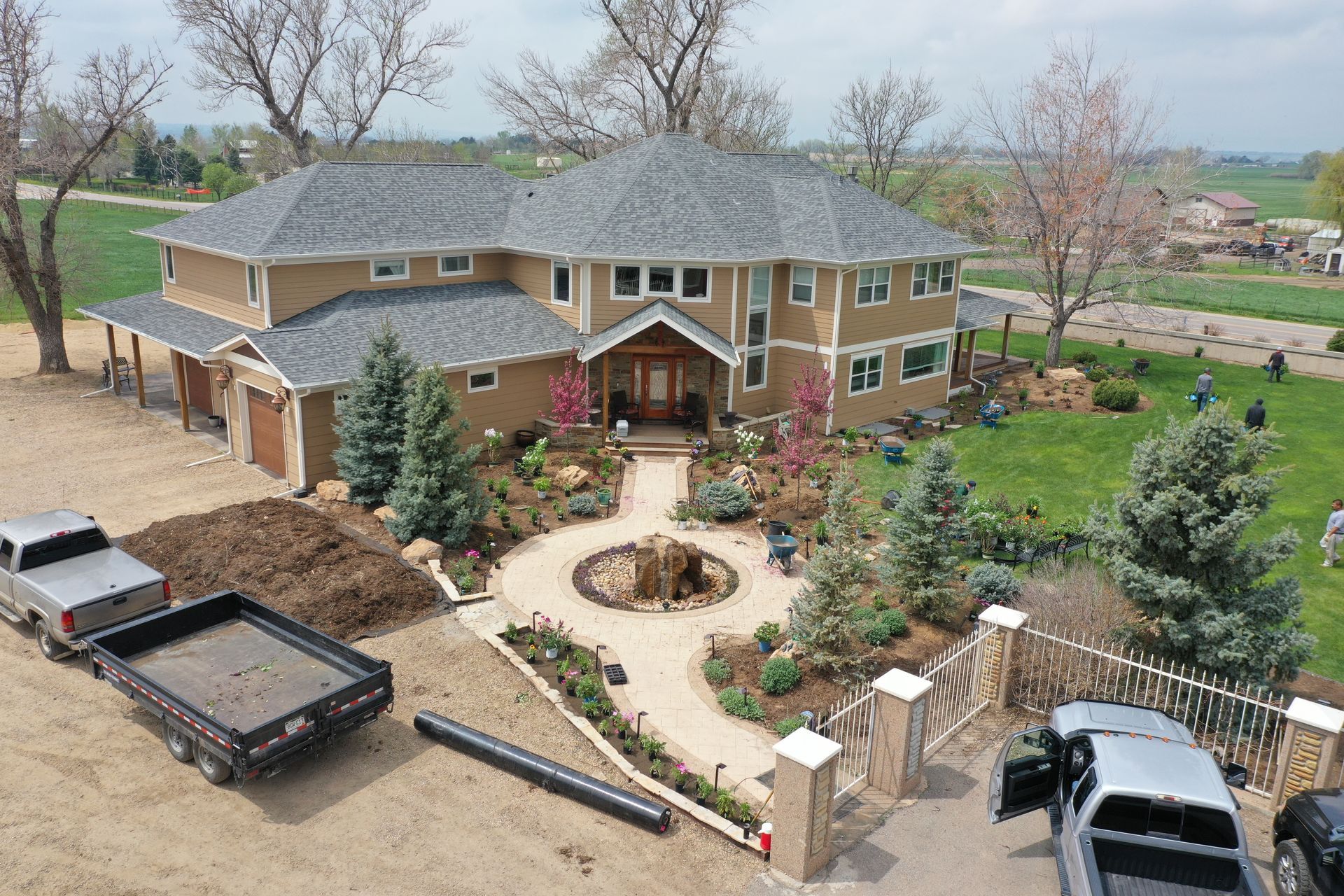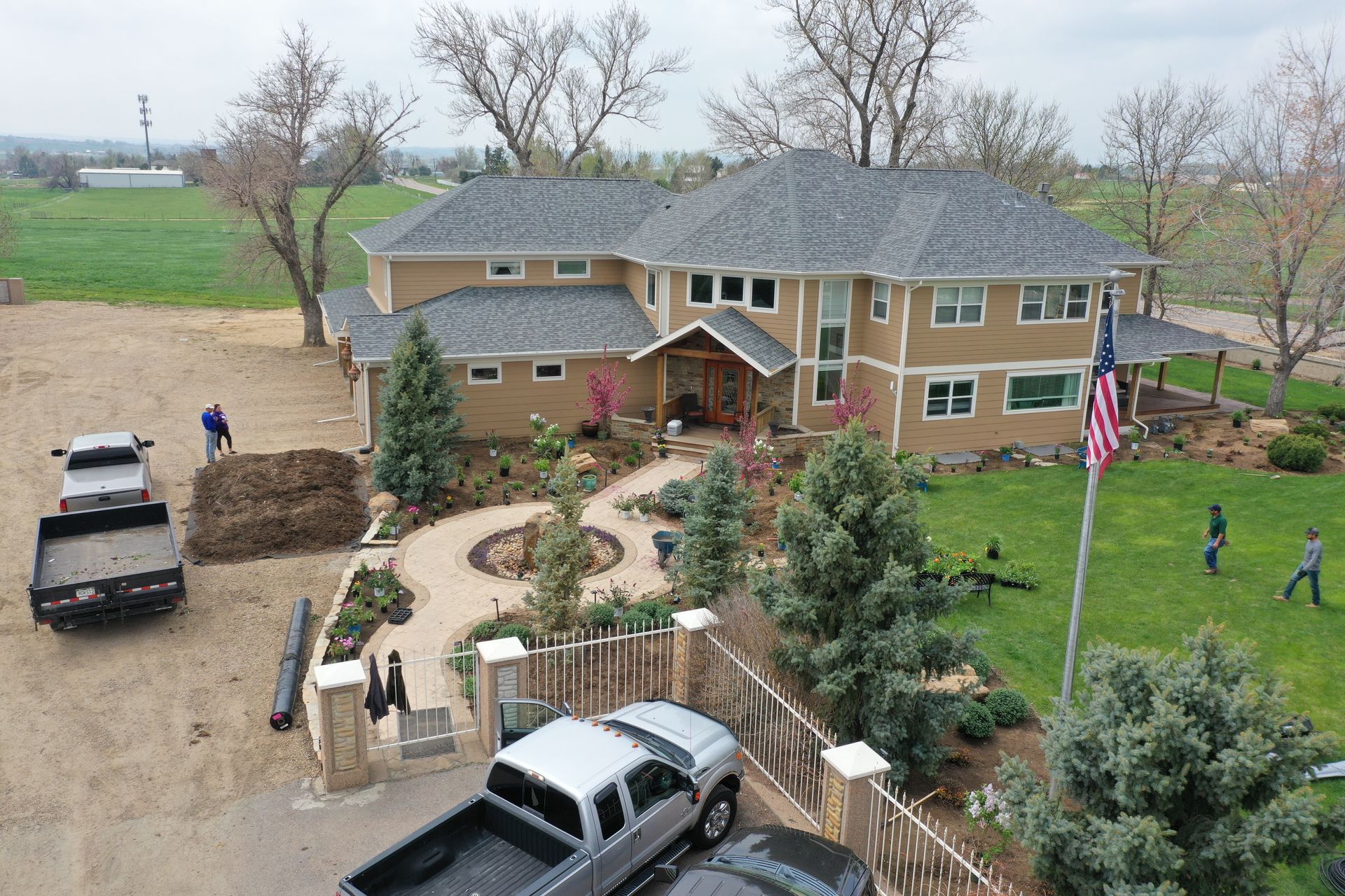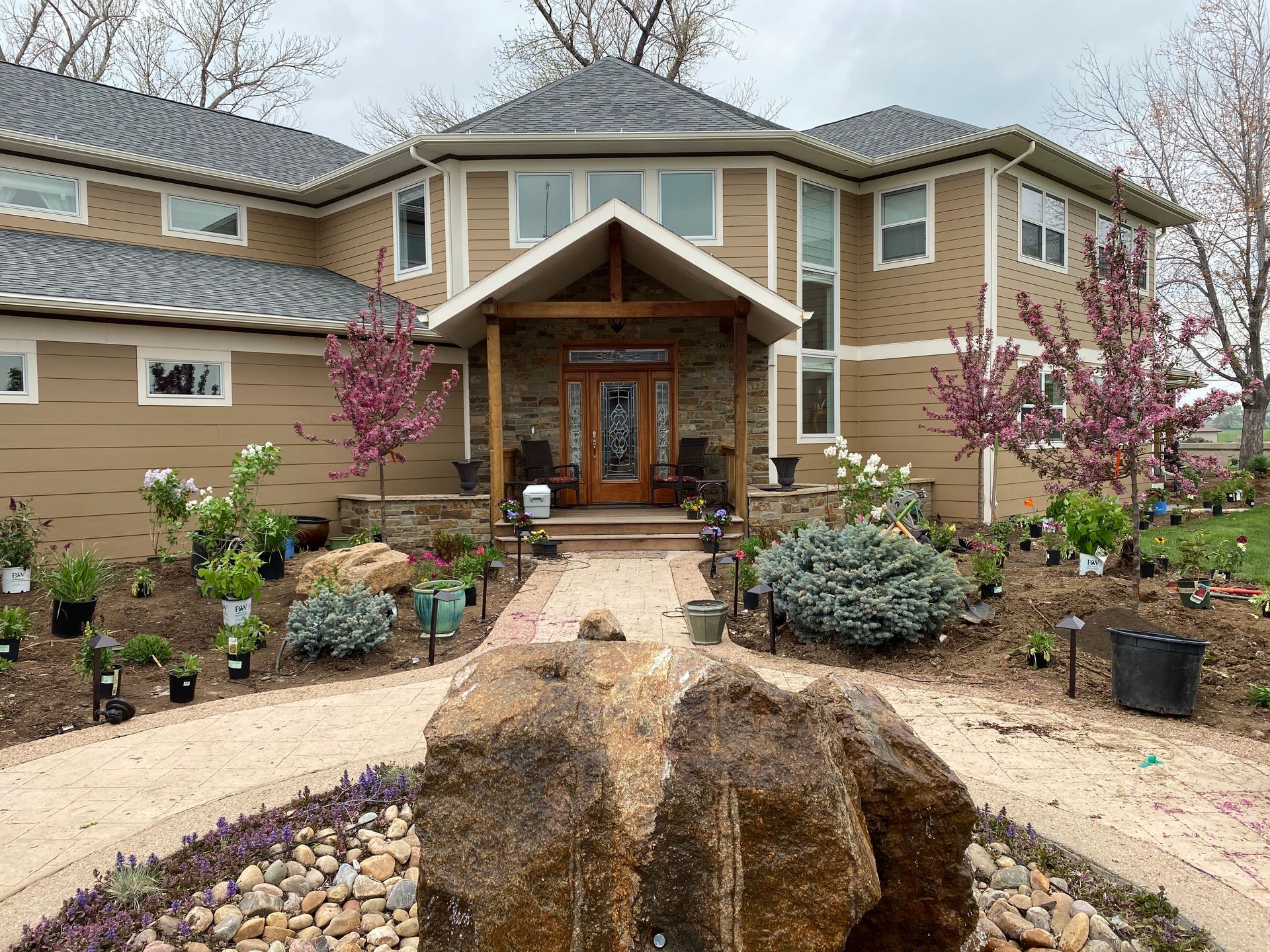 Lots of planting of perennials and annuals with mulch refresh and irrigation audit repairs. Erie, CO 2021