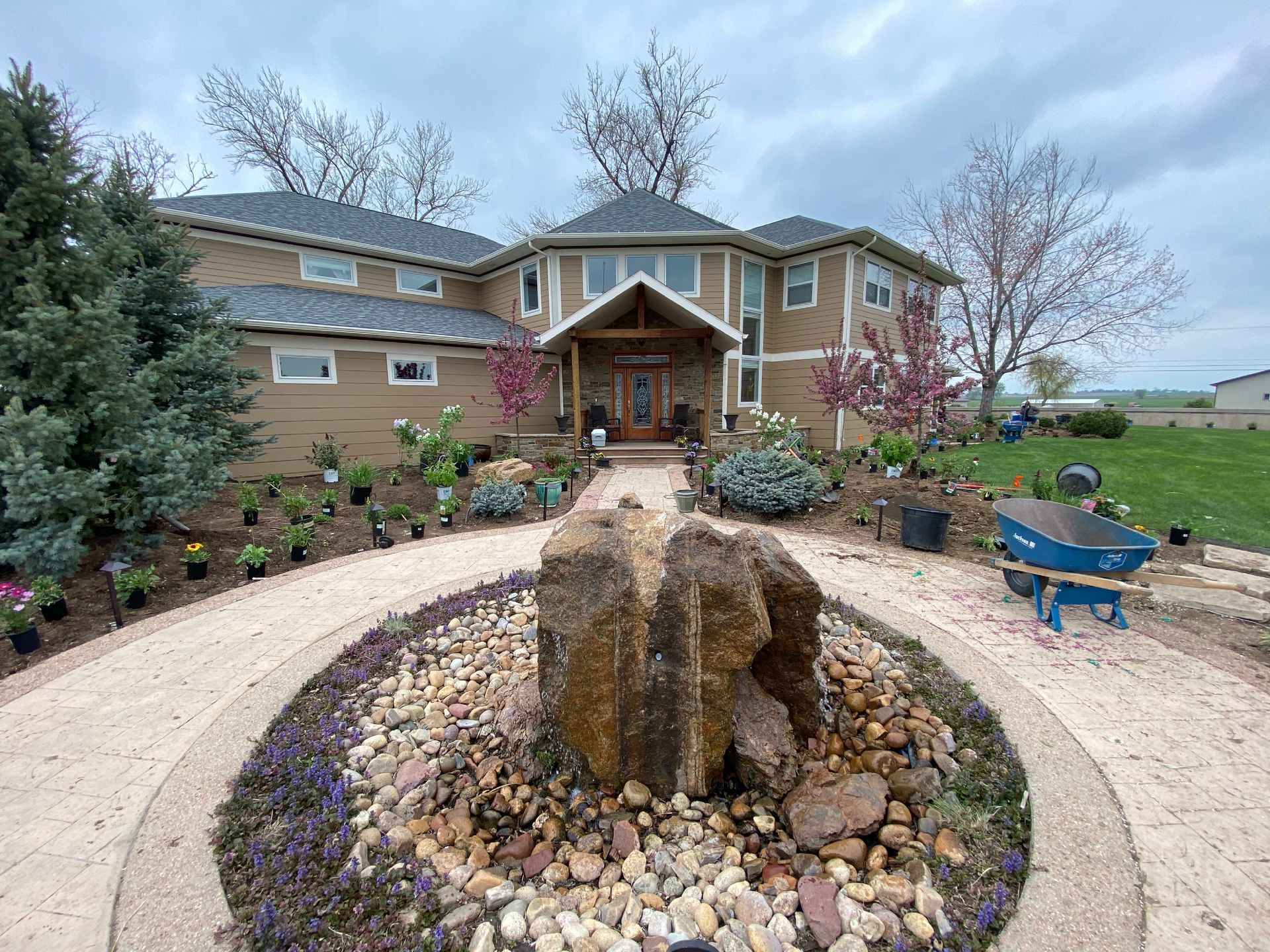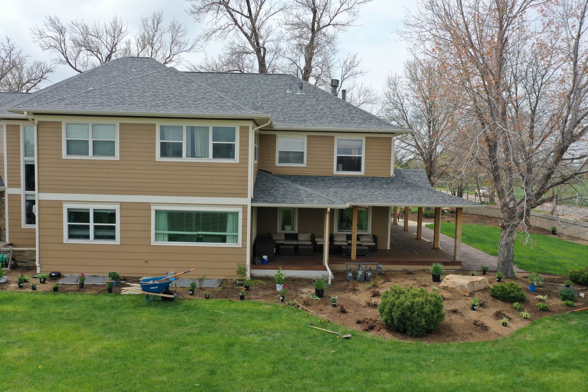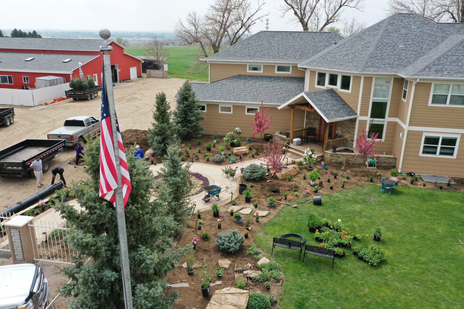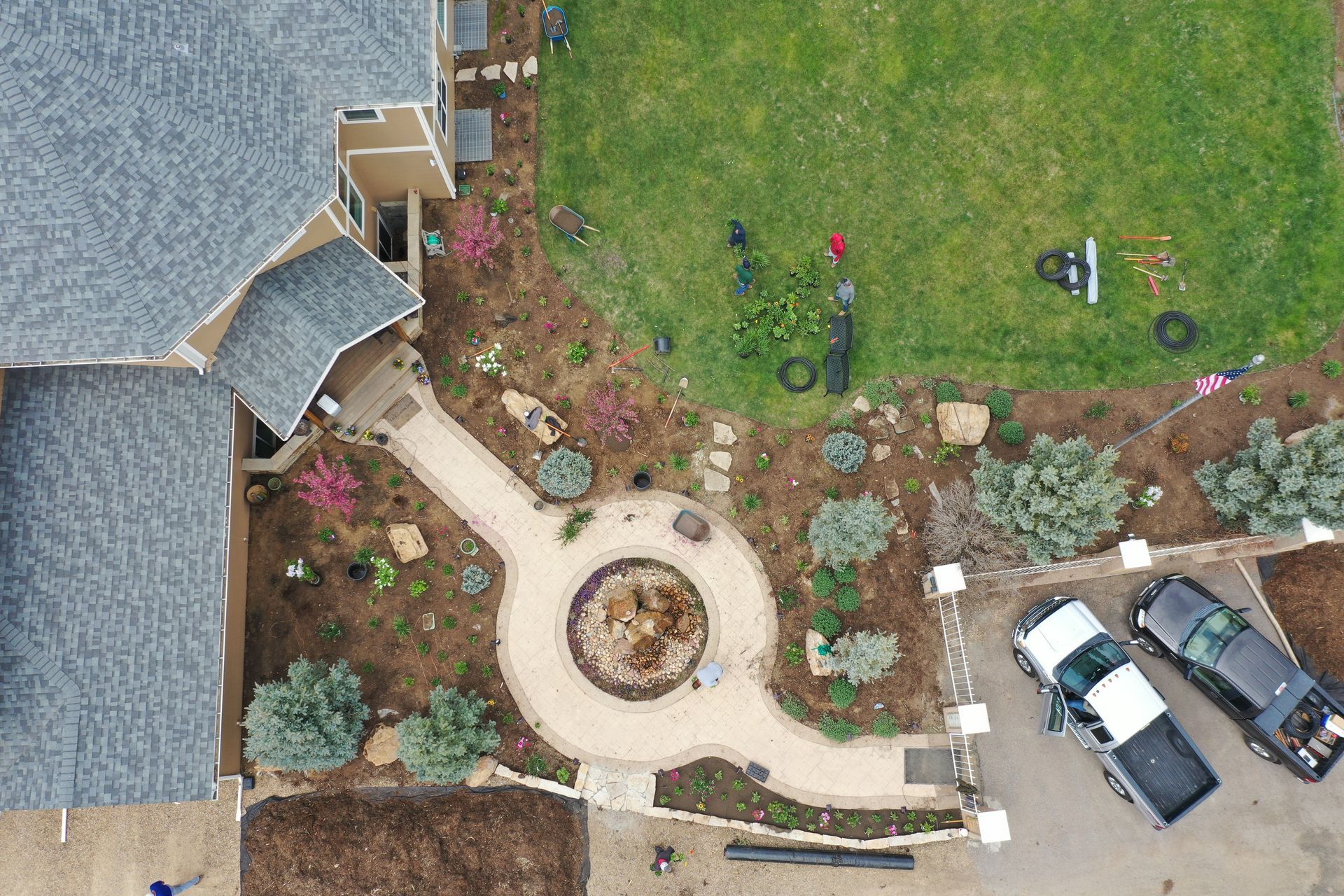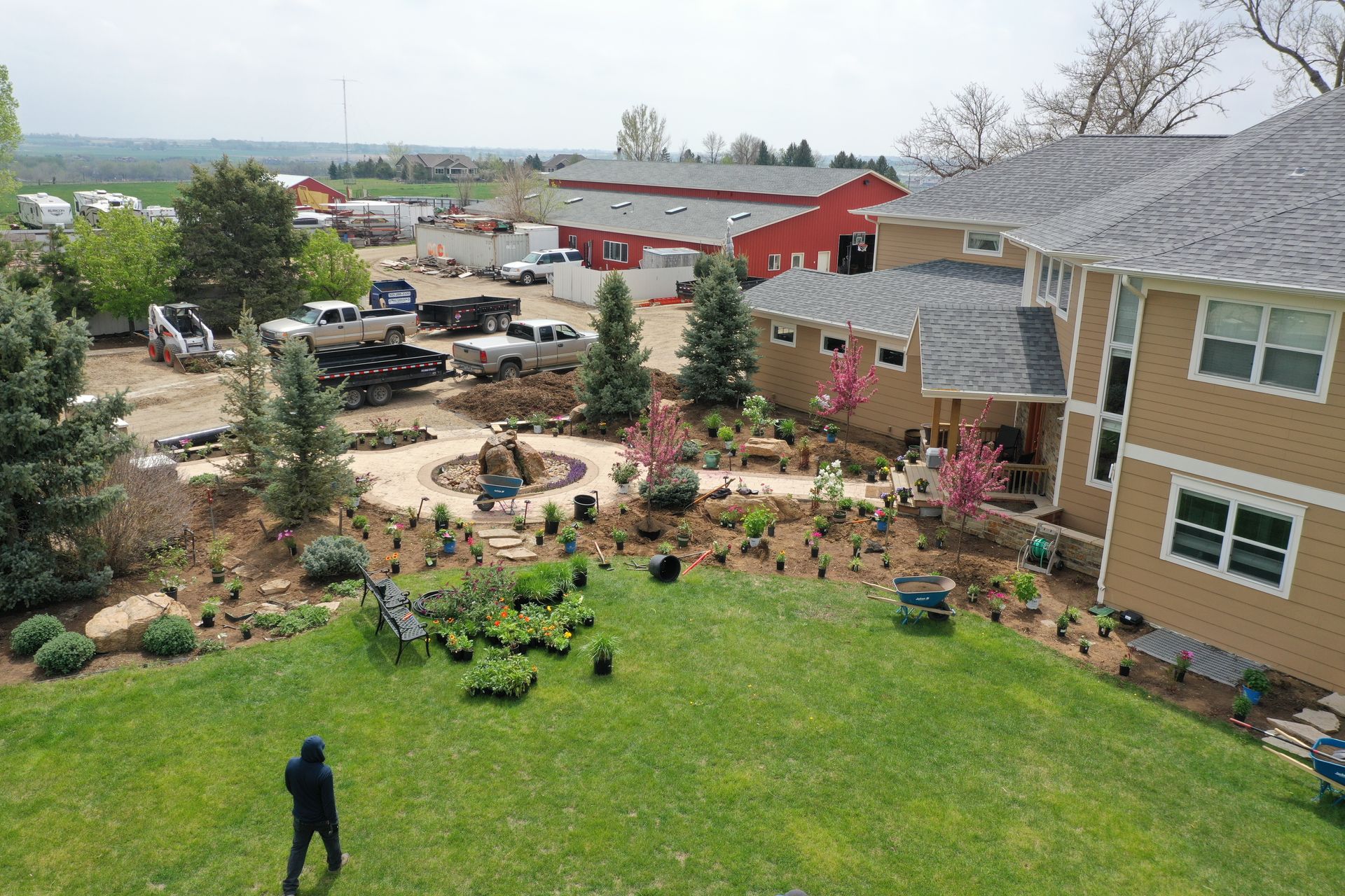 Lots of planting of perennials and annuals with mulch refresh and irrigation audit repairs. Erie, CO 2021