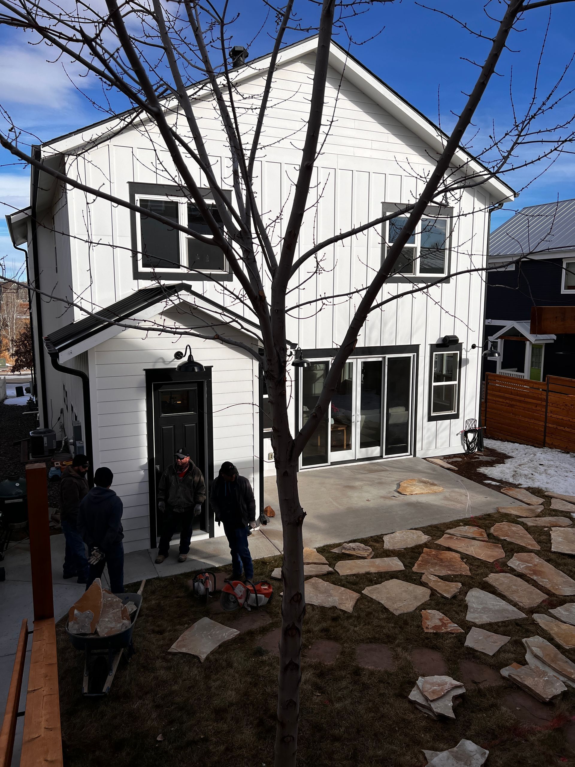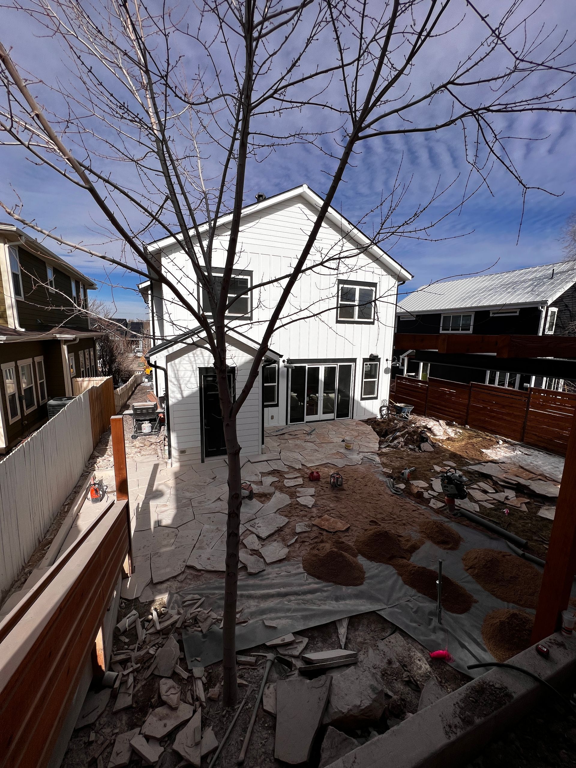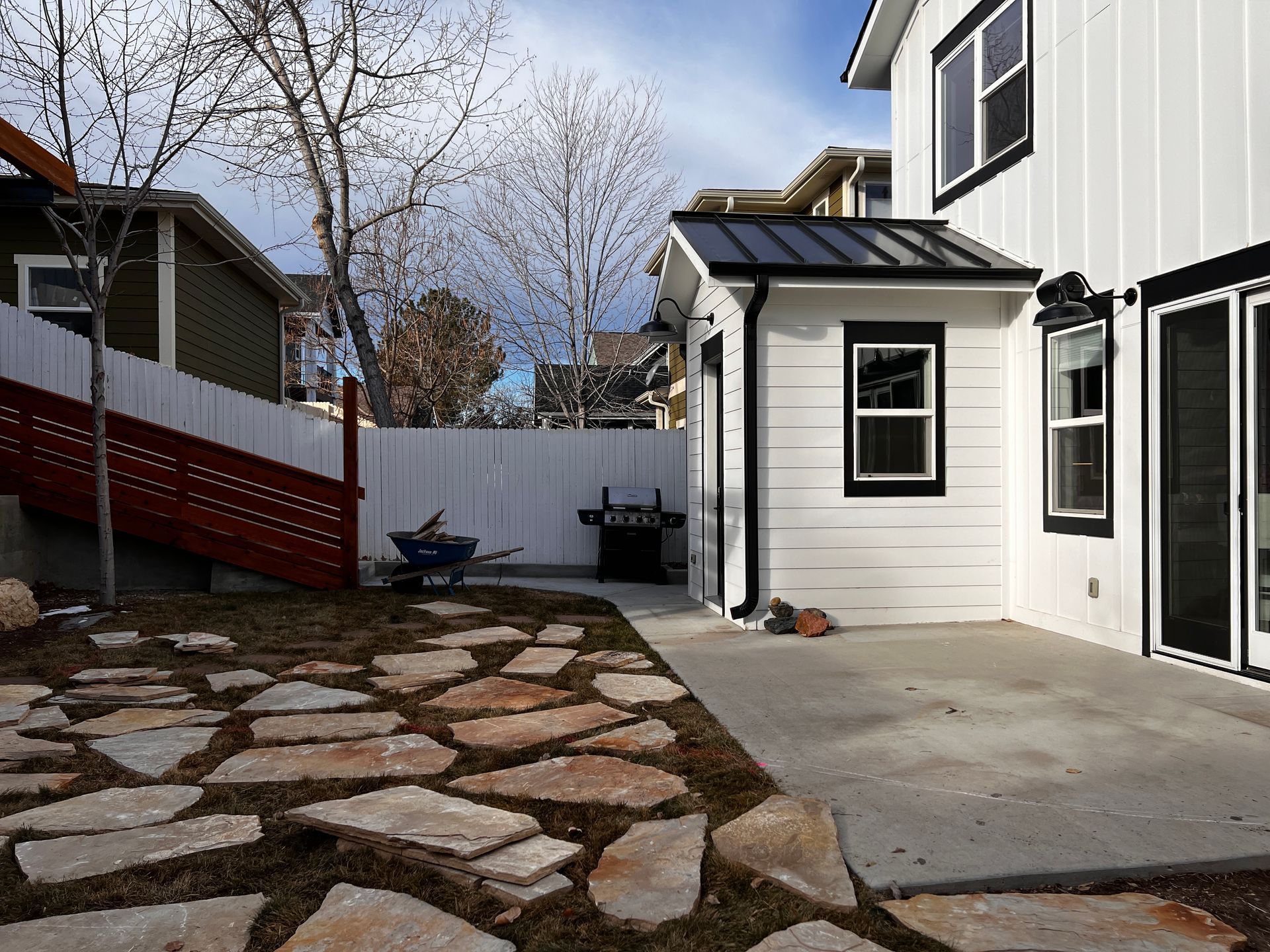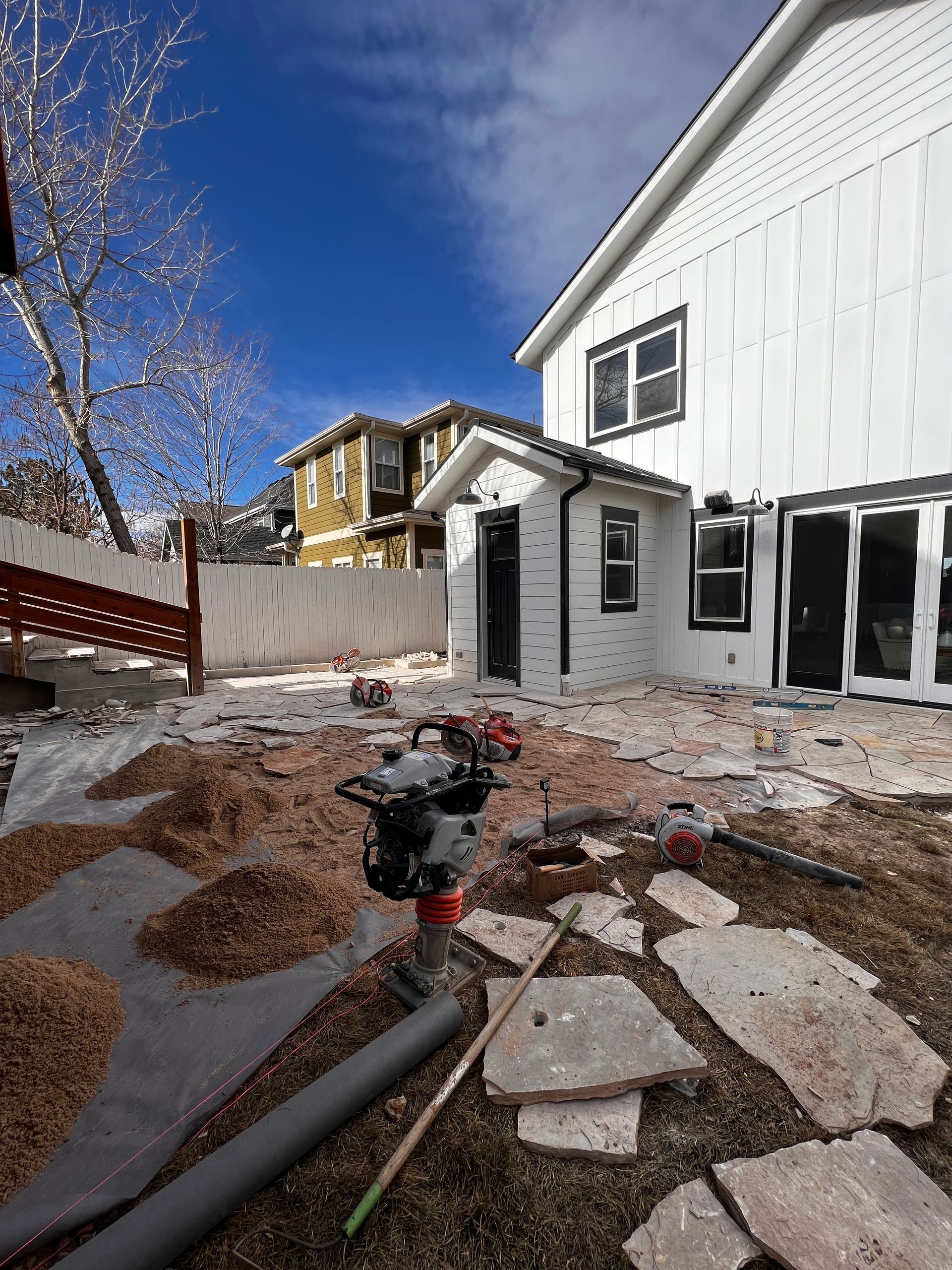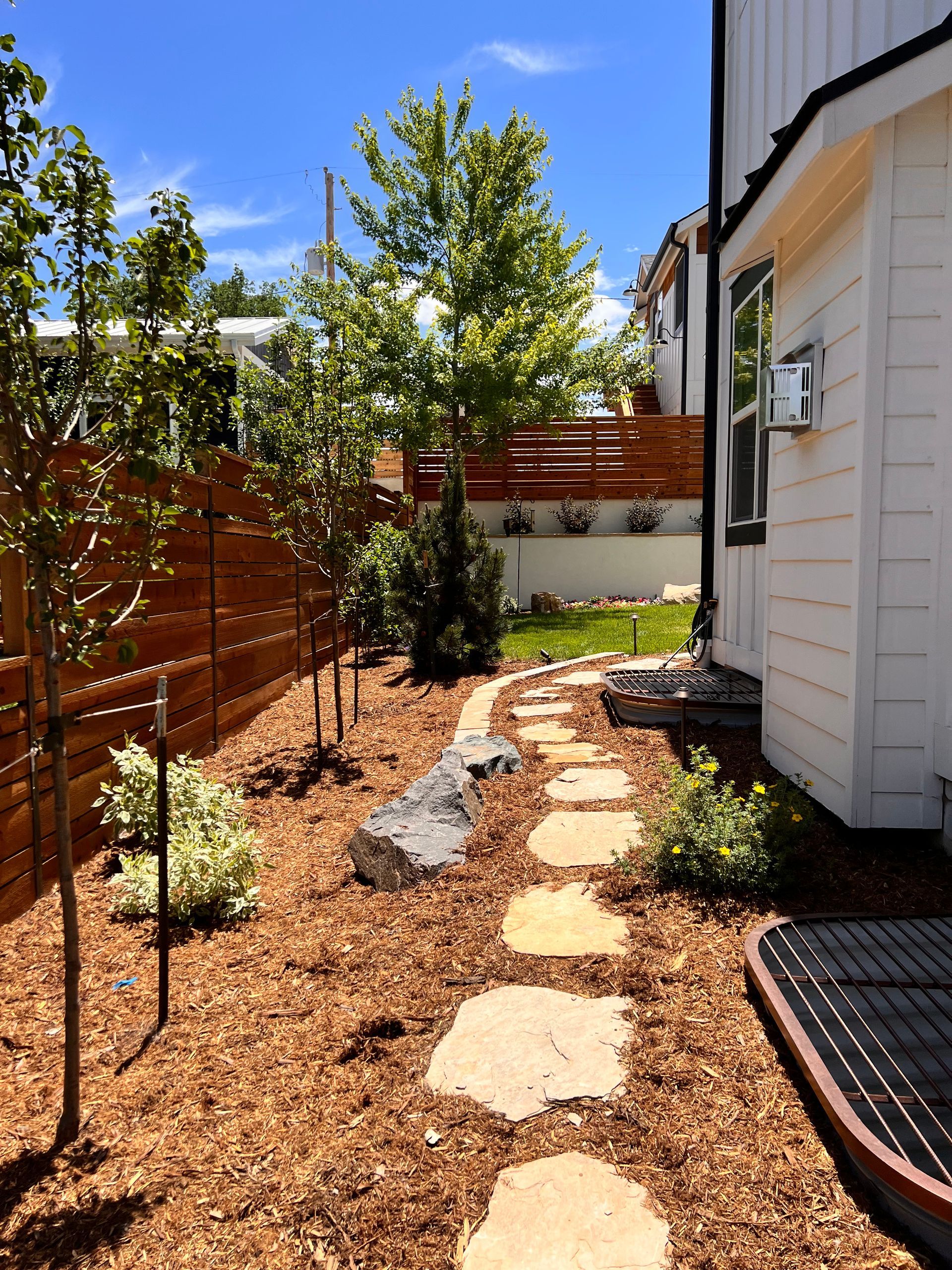 Full remodel of front and back yard building on home design. New Colorado buff flagstone and stripstone, plants, trees, sprinklers, and grass. Lafayette, CO 2019-2022
