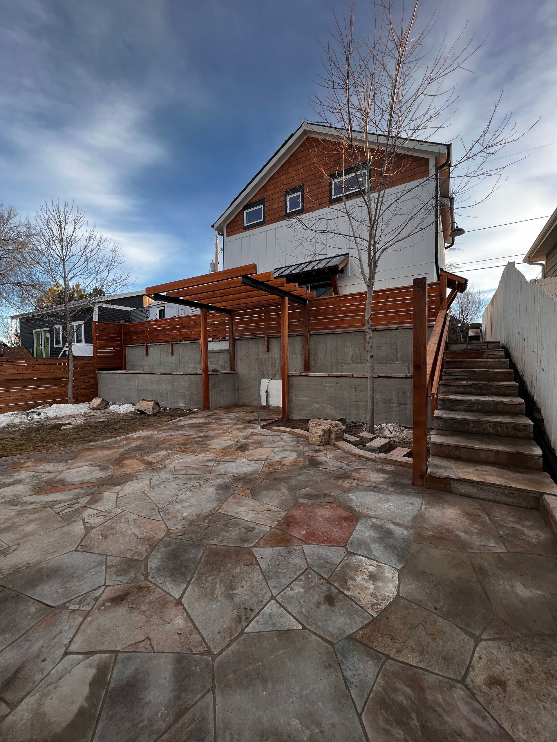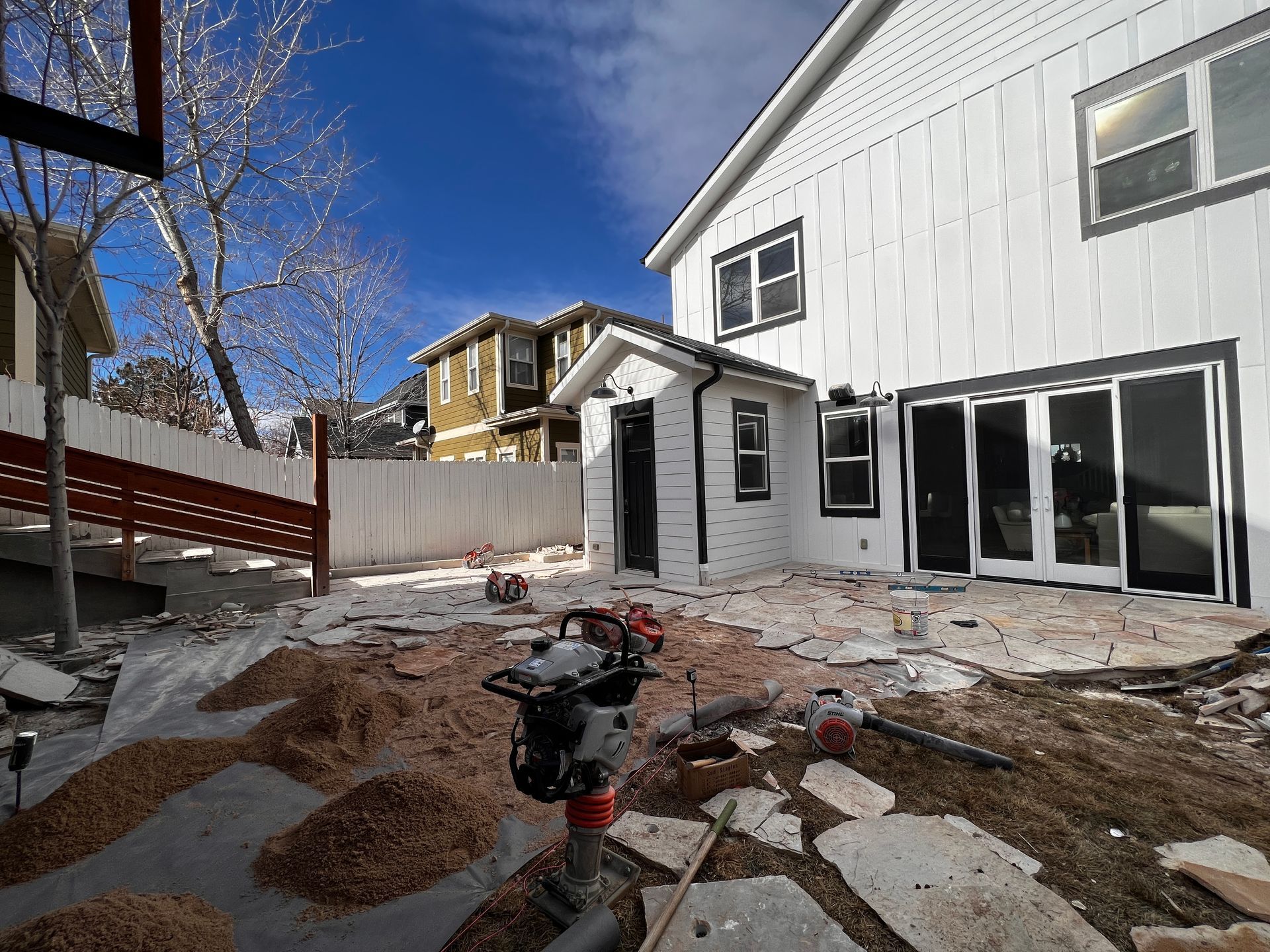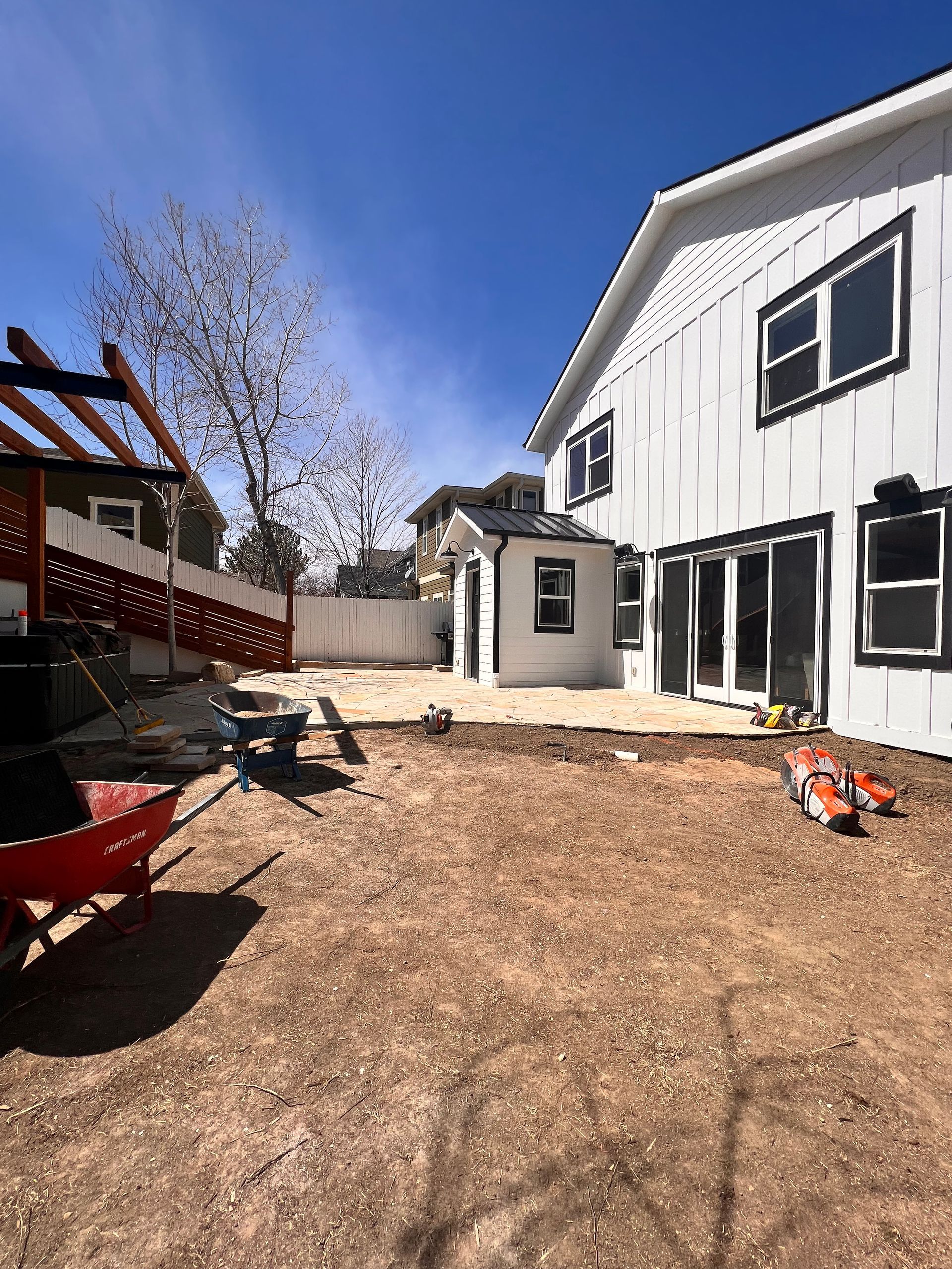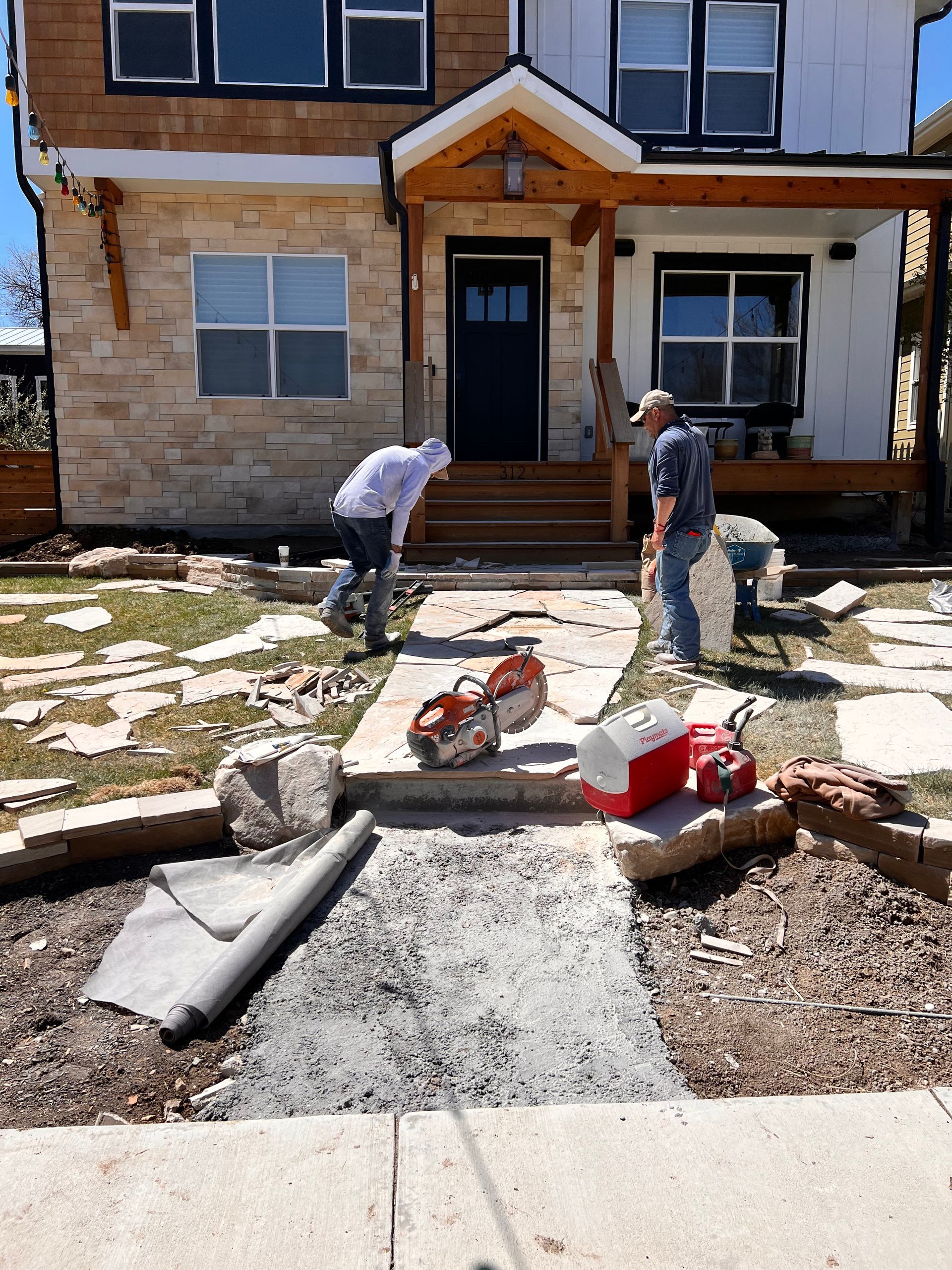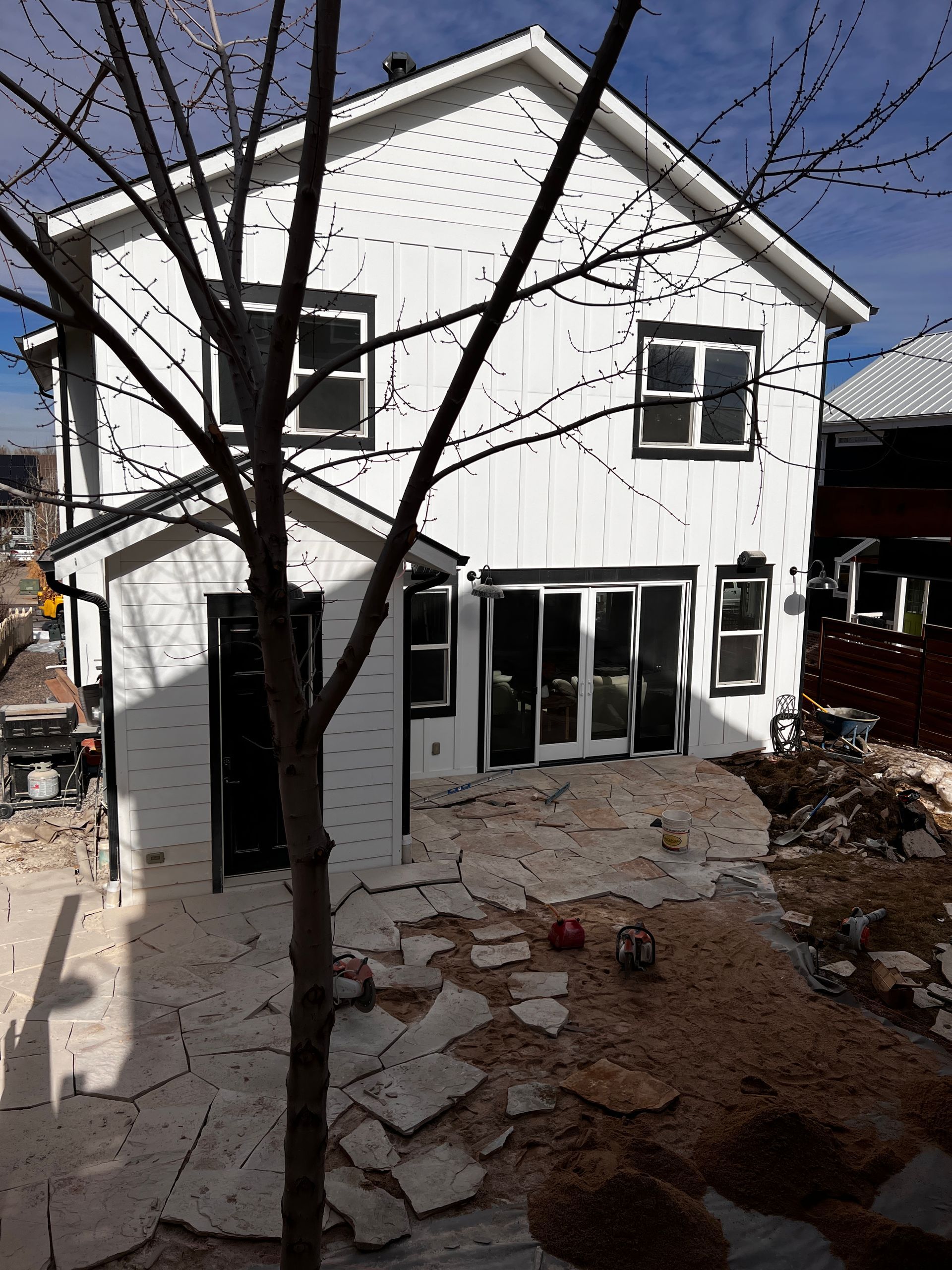 Full remodel of front and back yard building on home design. New Colorado buff flagstone and stripstone, plants, trees, sprinklers, and grass. Lafayette, CO 2019-2022
