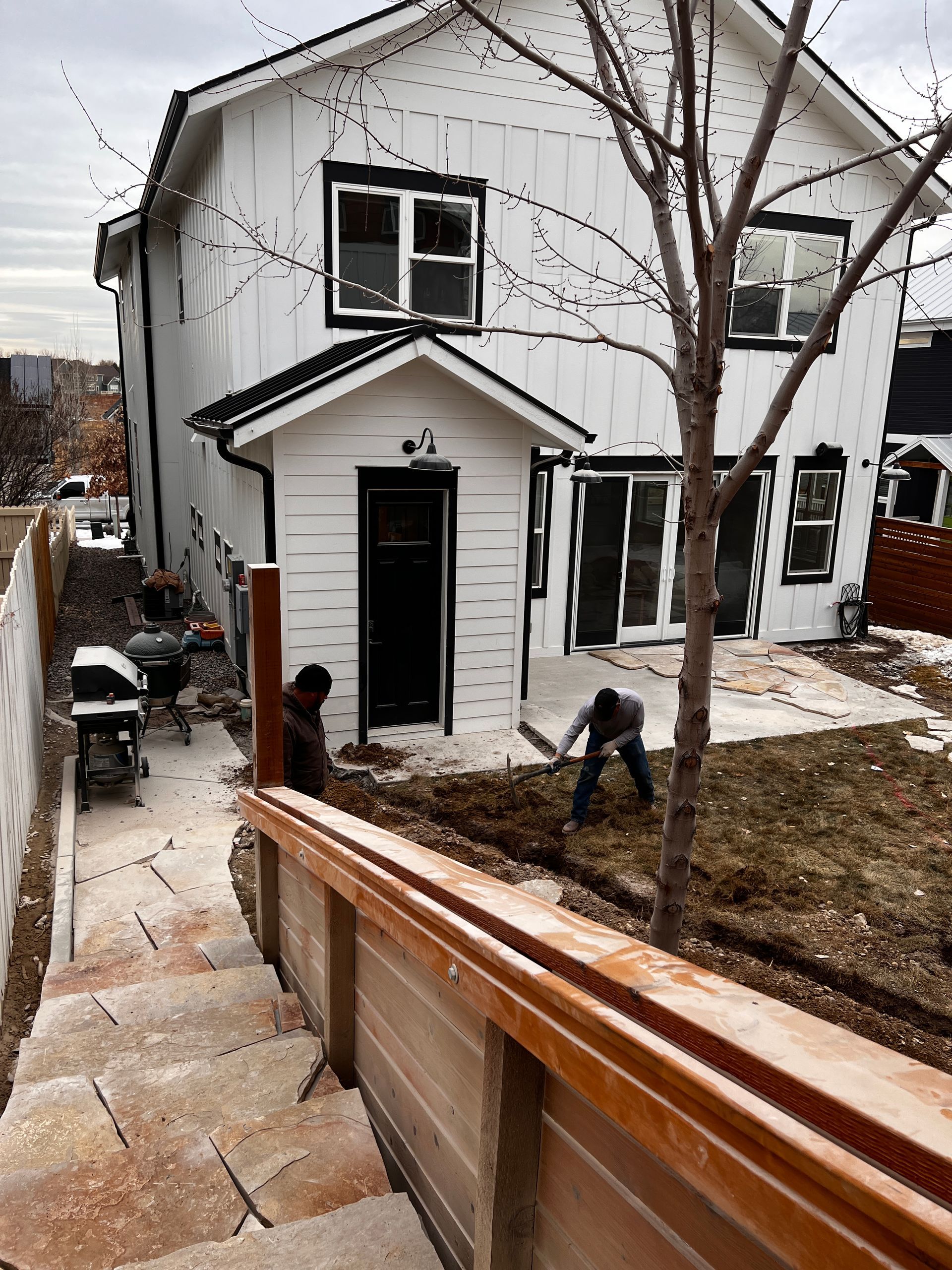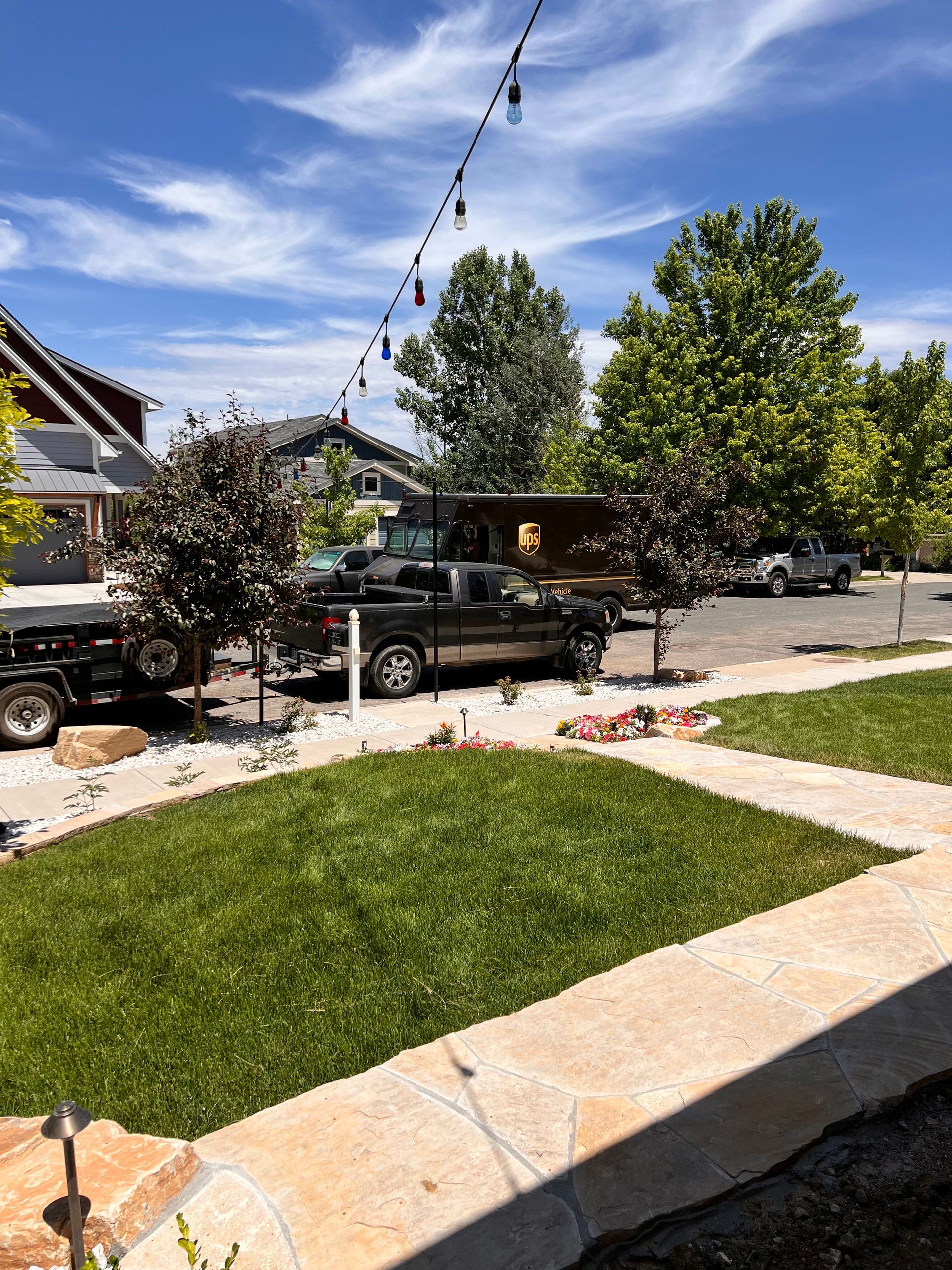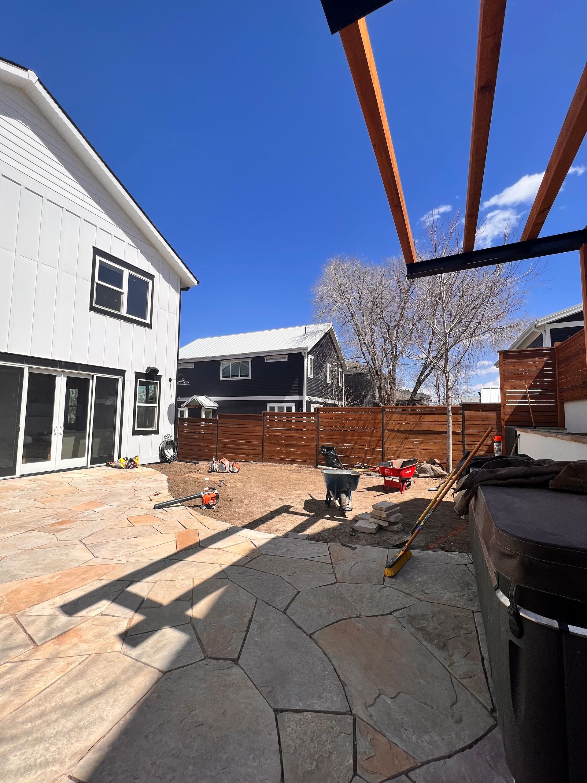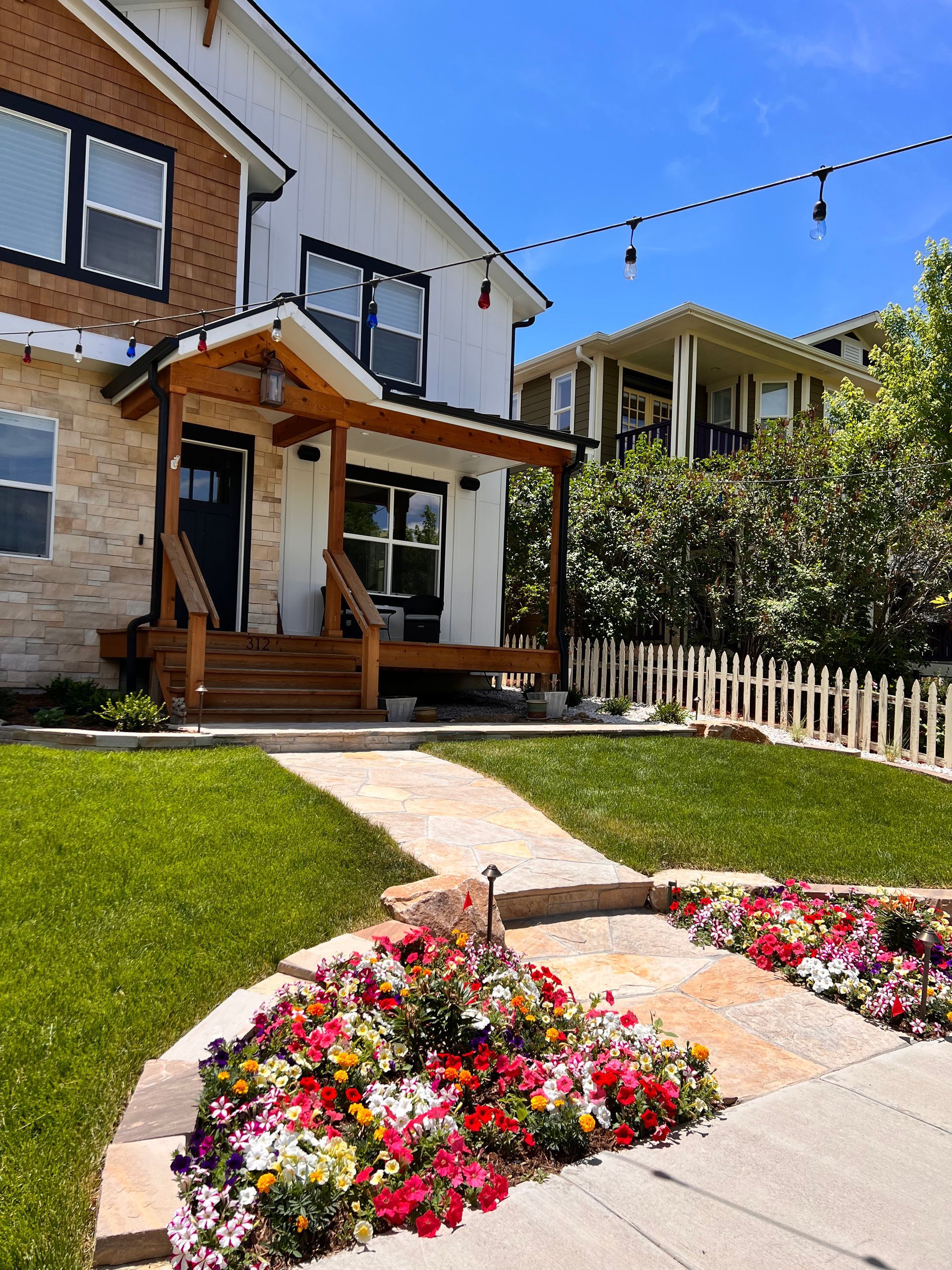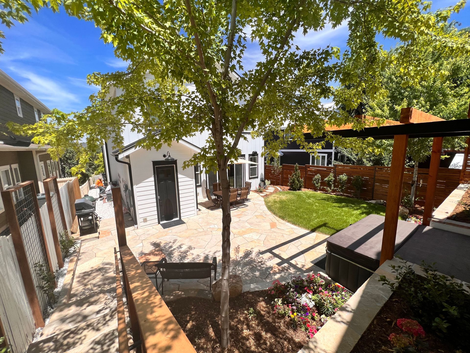 Full remodel of front and back yard building on home design. New Colorado buff flagstone and stripstone, plants, trees, sprinklers, and grass. Lafayette, CO 2019-2022
