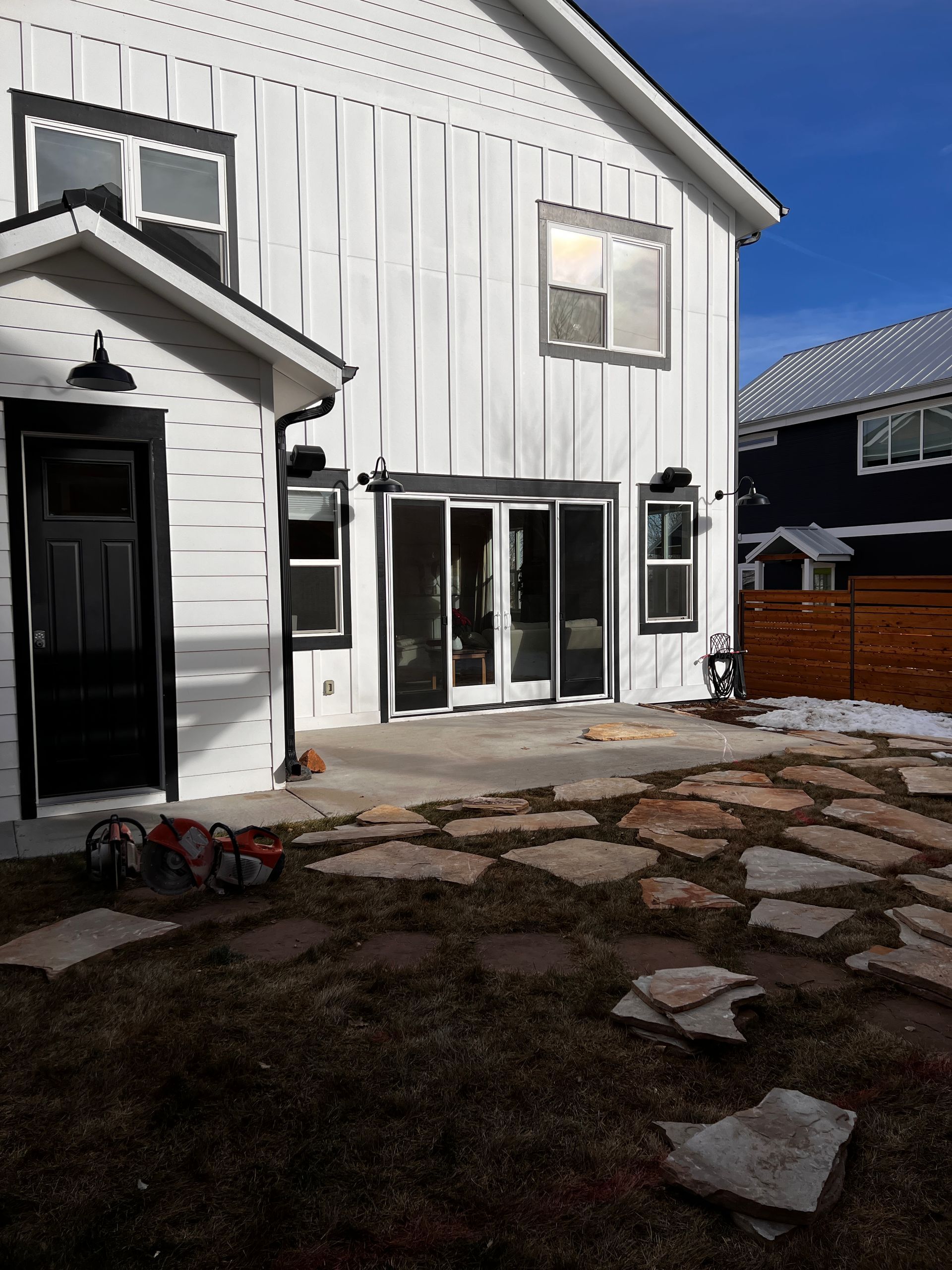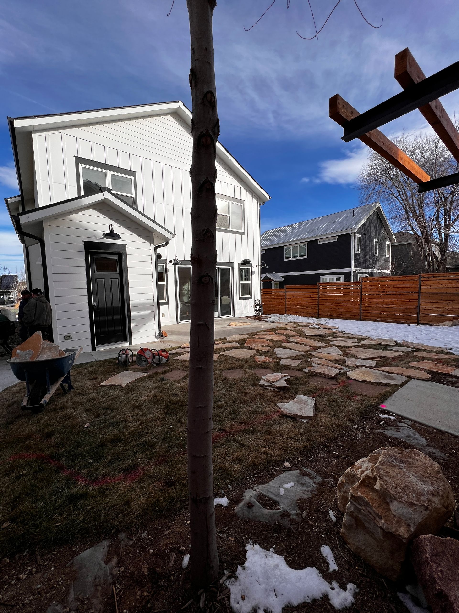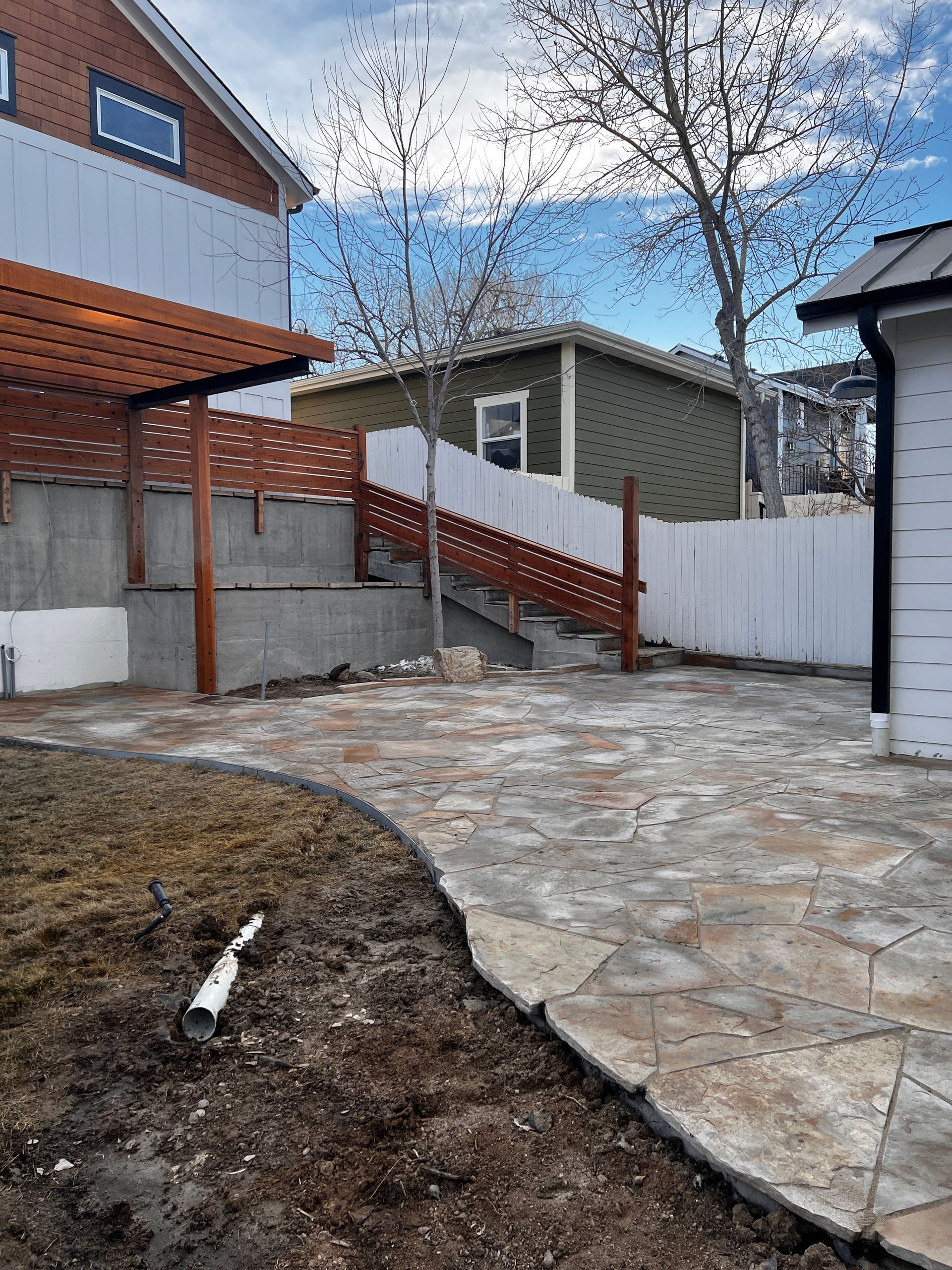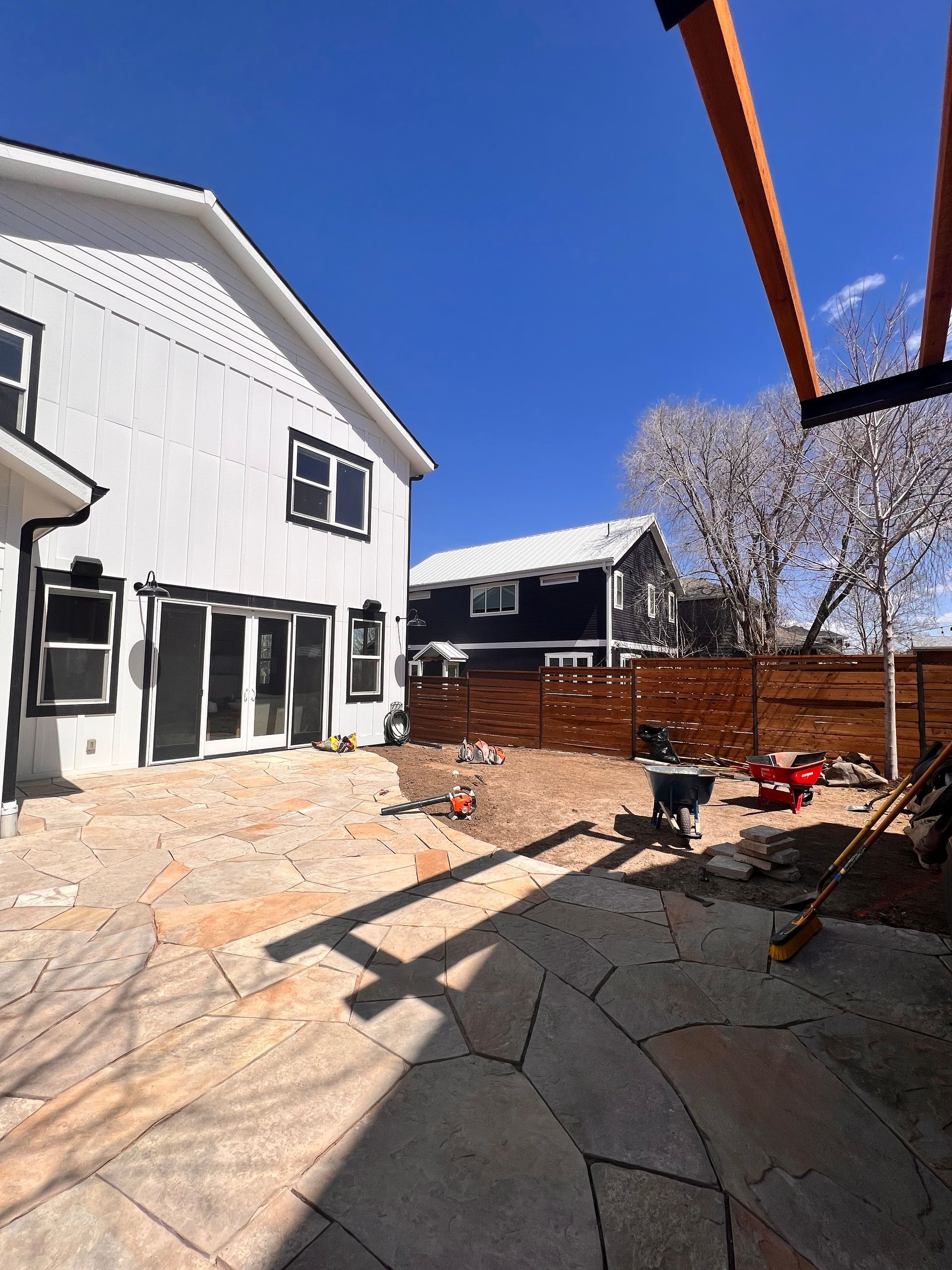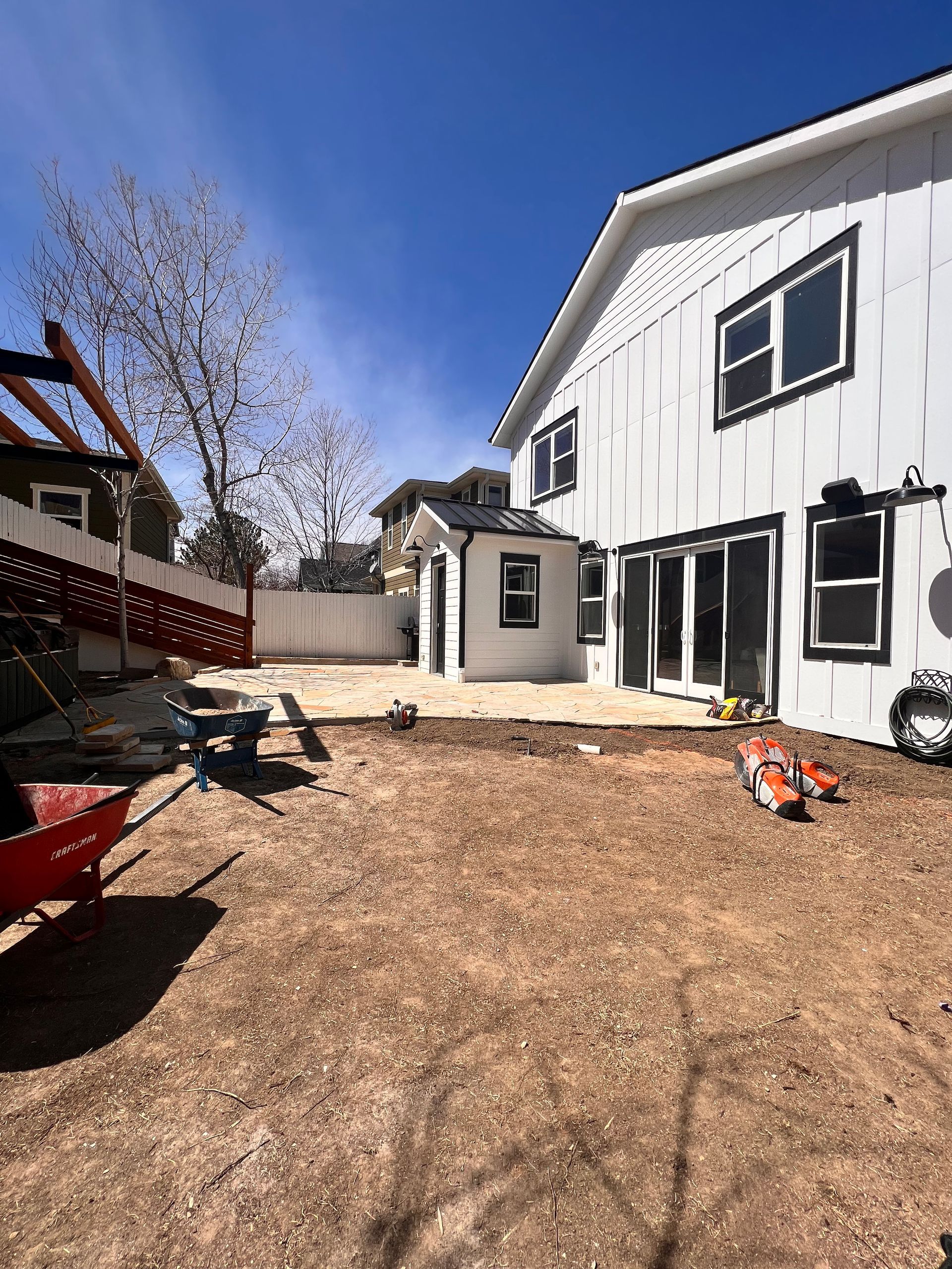 Full remodel of front and back yard building on home design. New Colorado buff flagstone and stripstone, plants, trees, sprinklers, and grass. Lafayette, CO 2019-2022