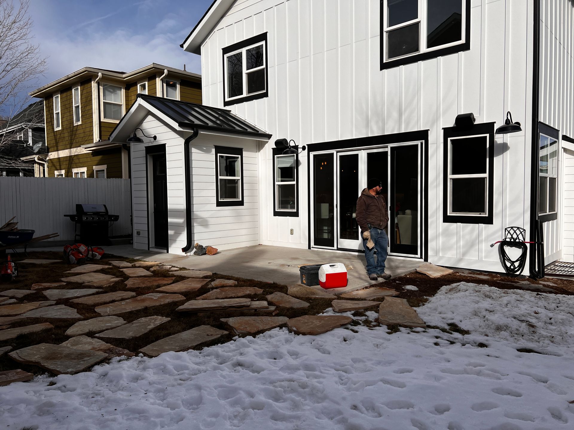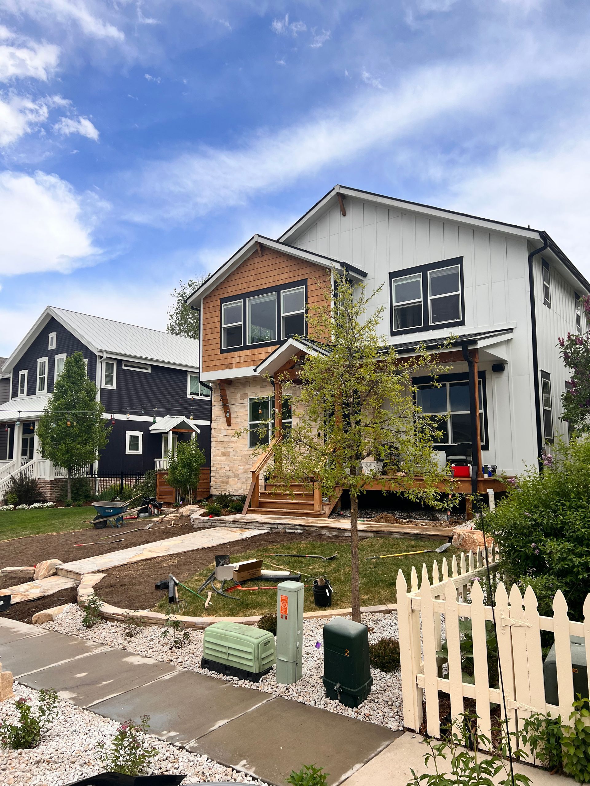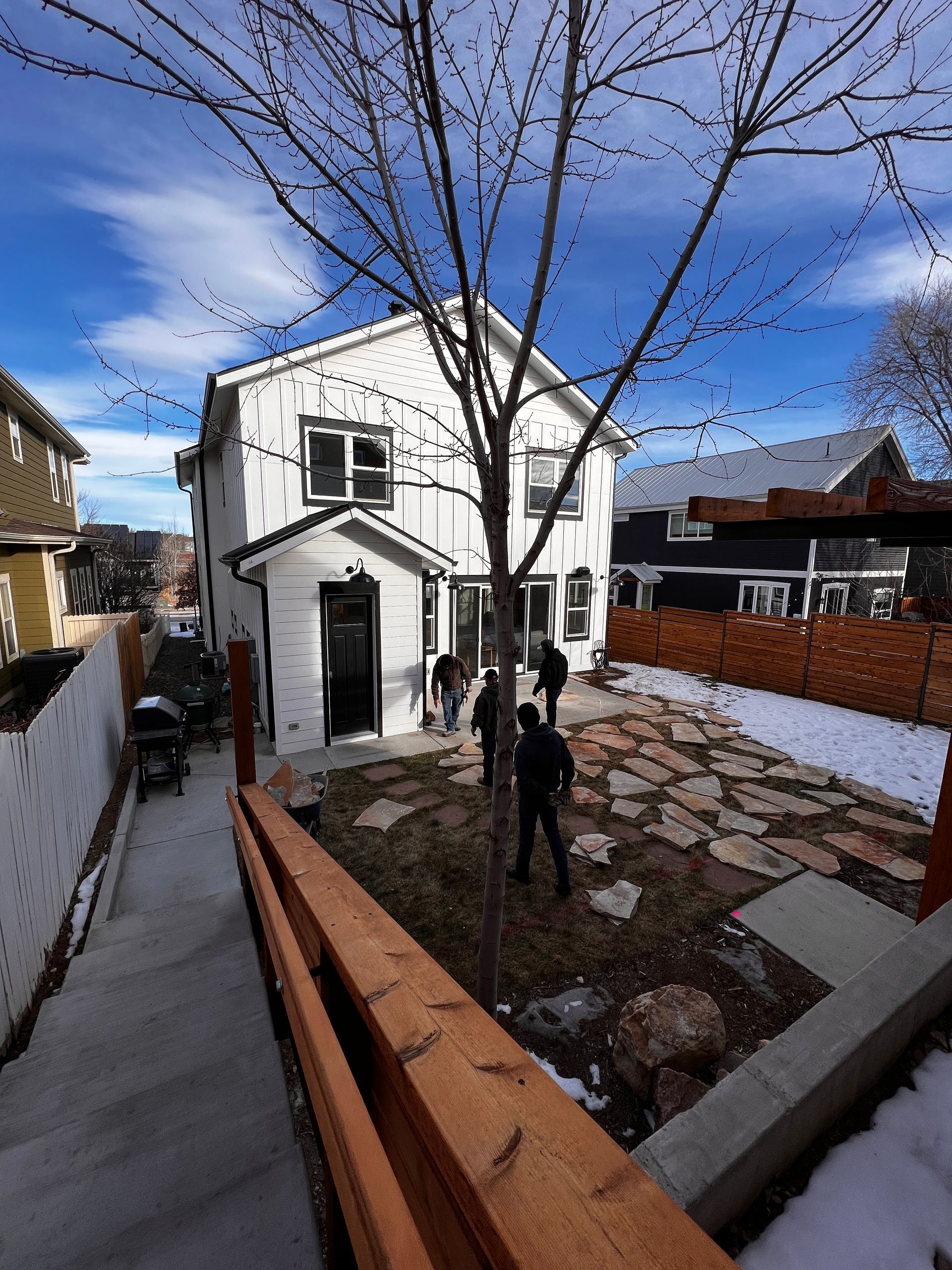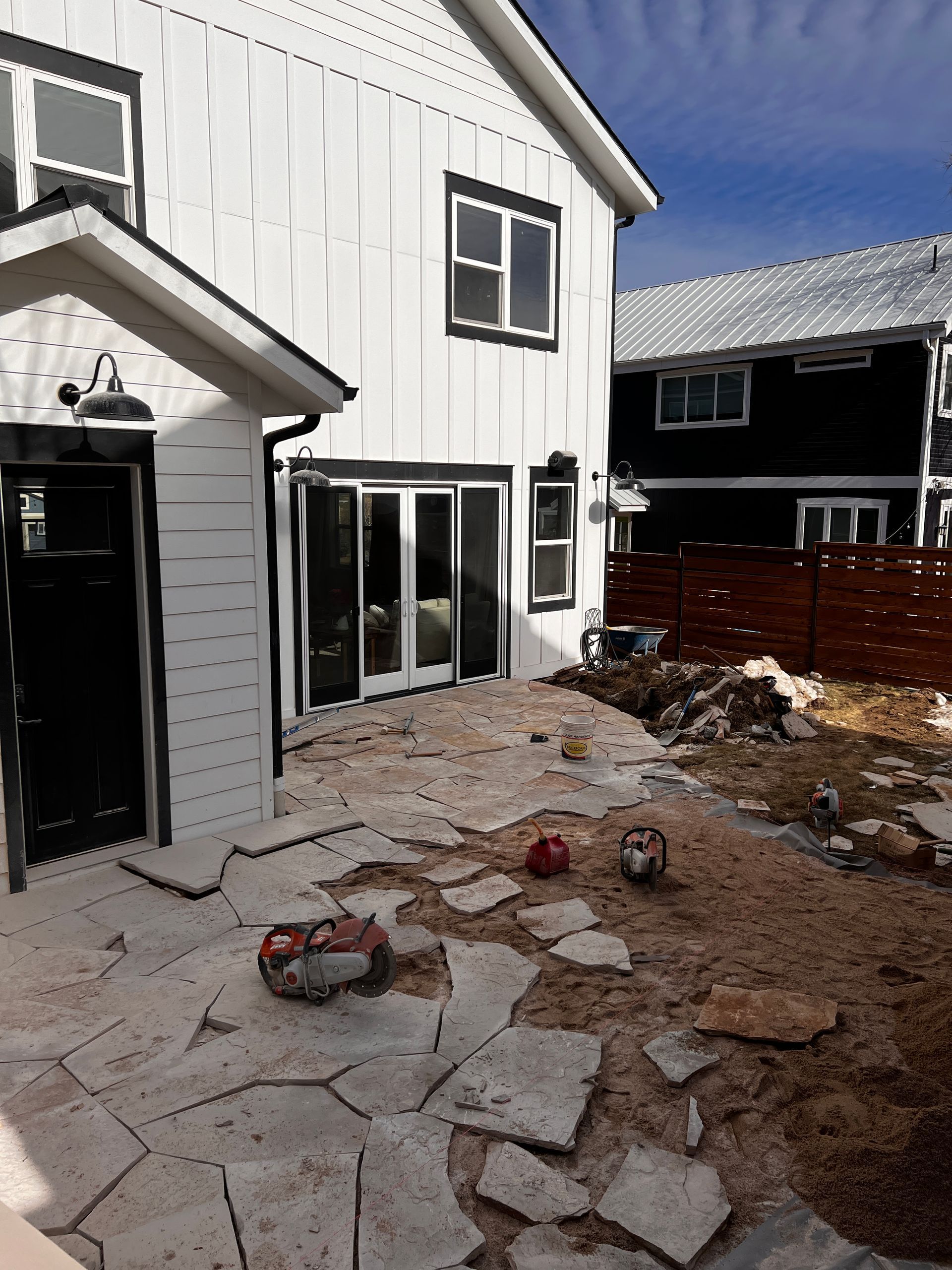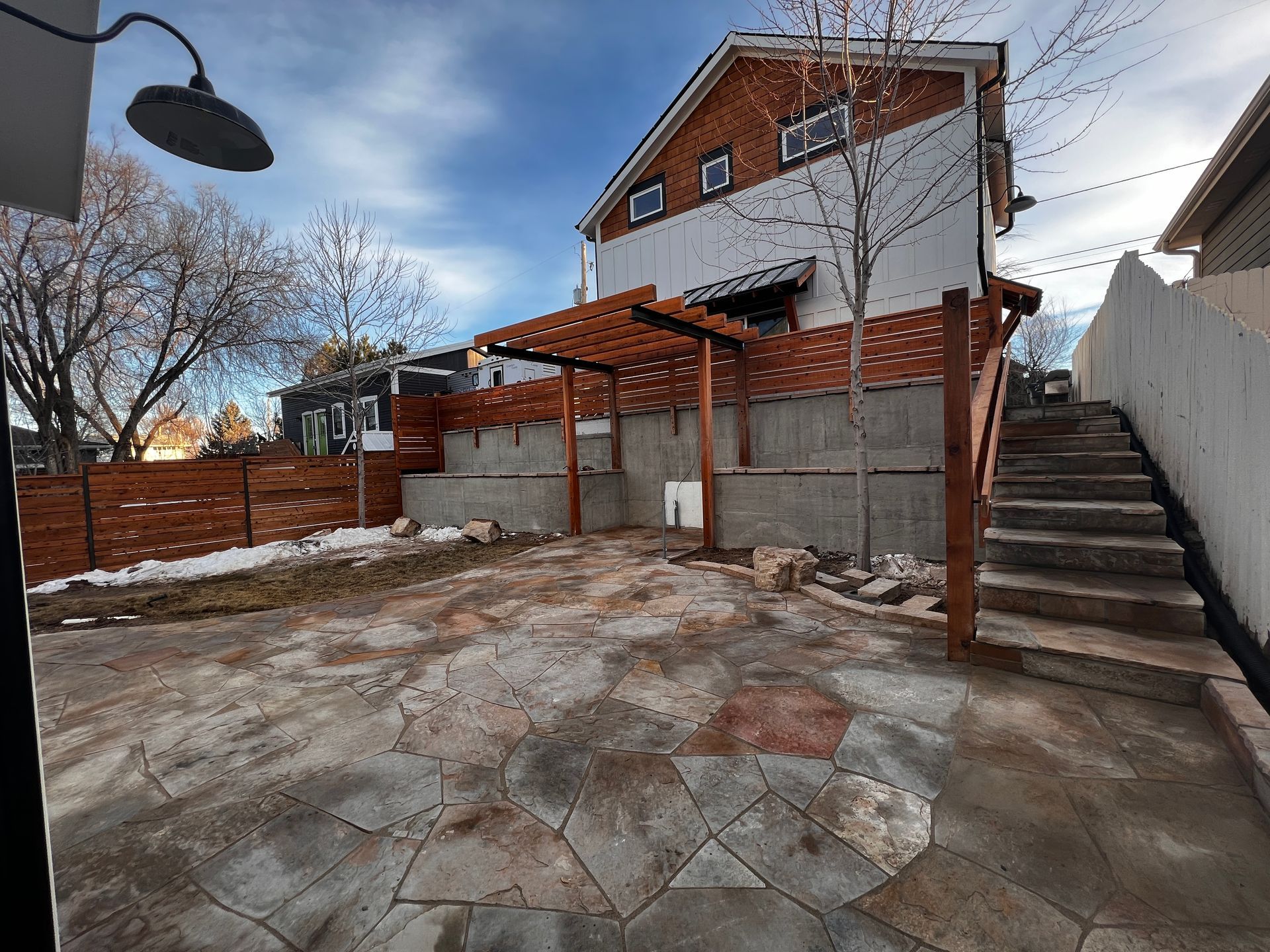 Full remodel of front and back yard building on home design. New Colorado buff flagstone and stripstone, plants, trees, sprinklers, and grass. Lafayette, CO 2019-2022
