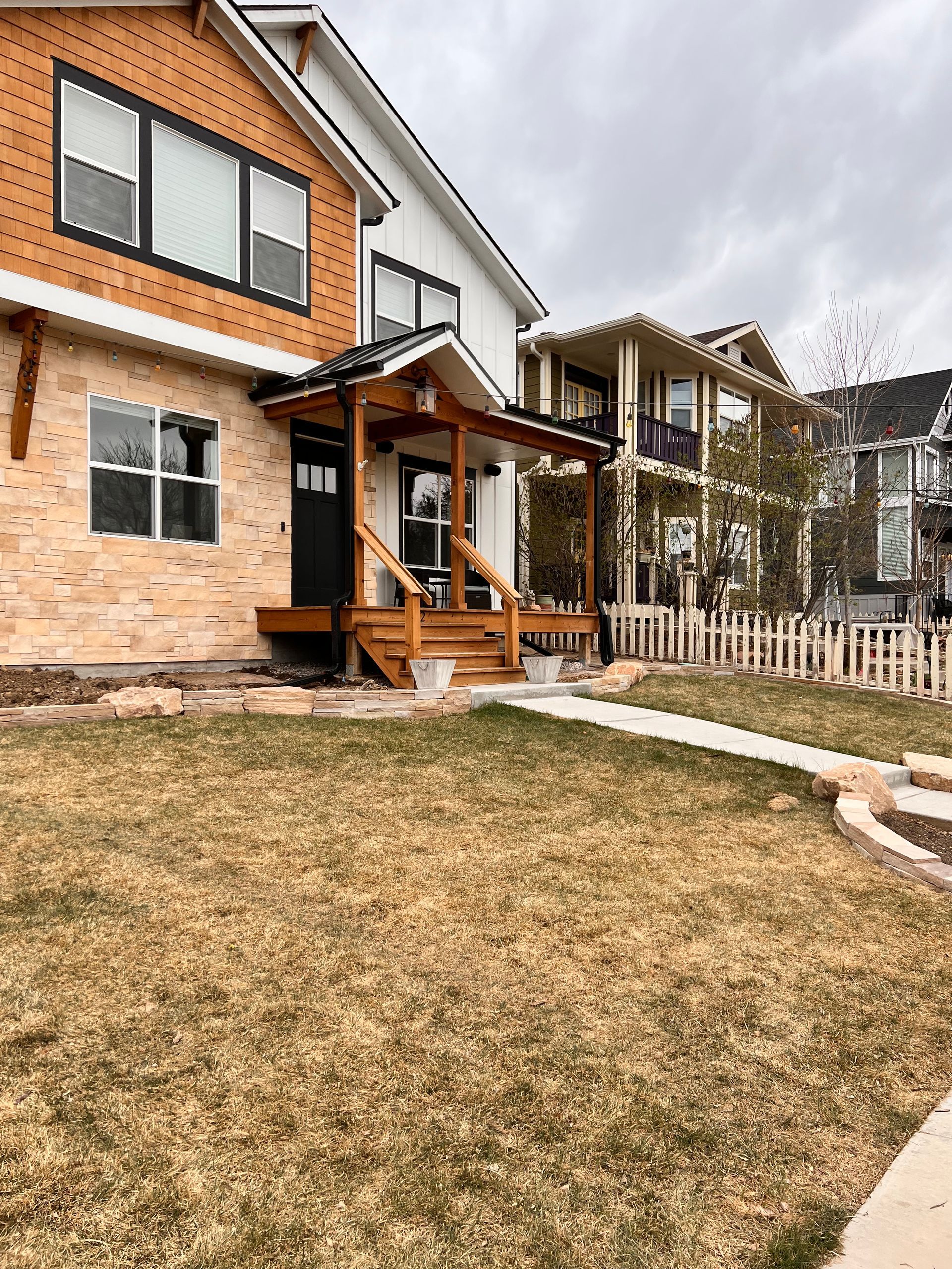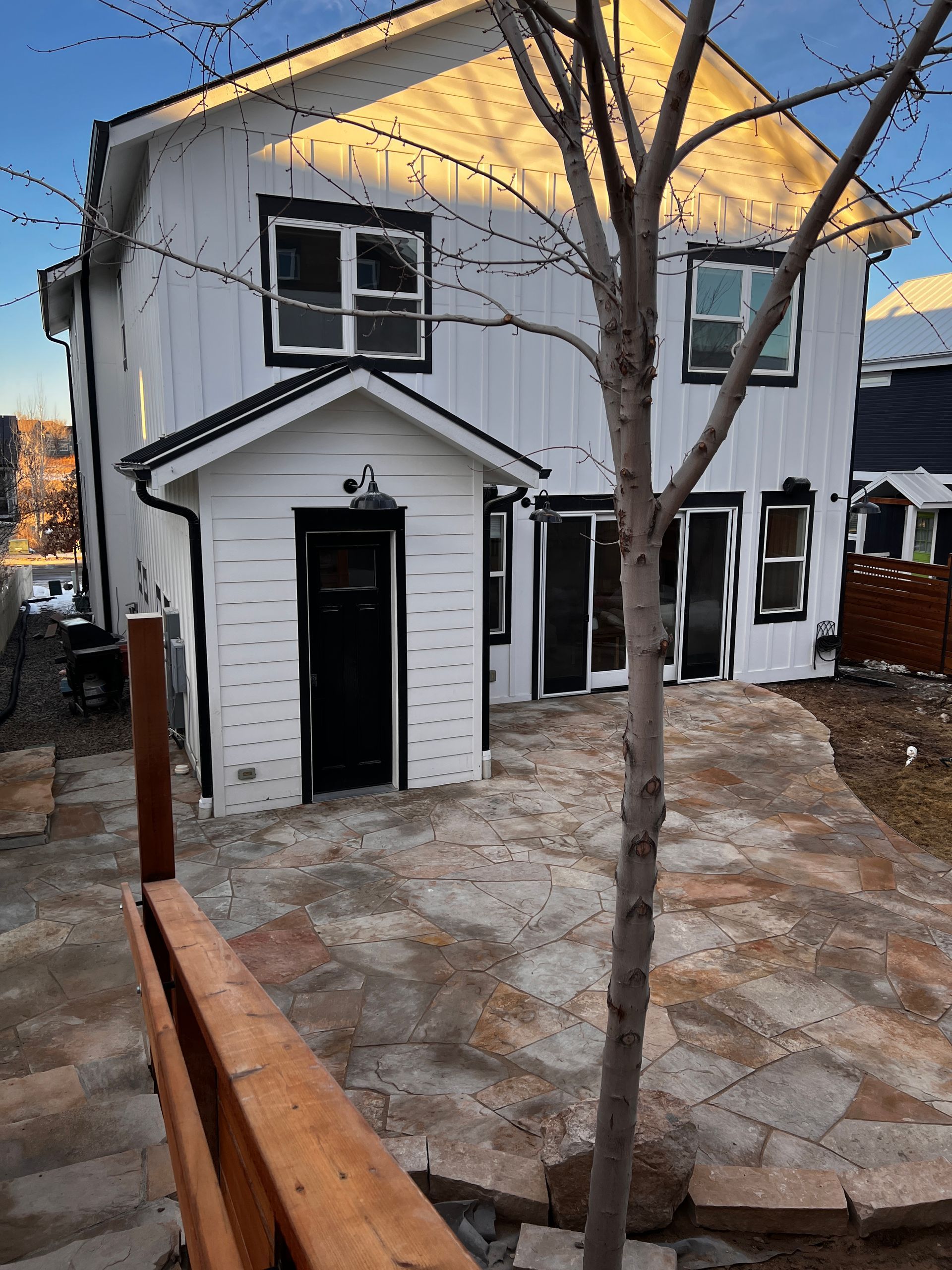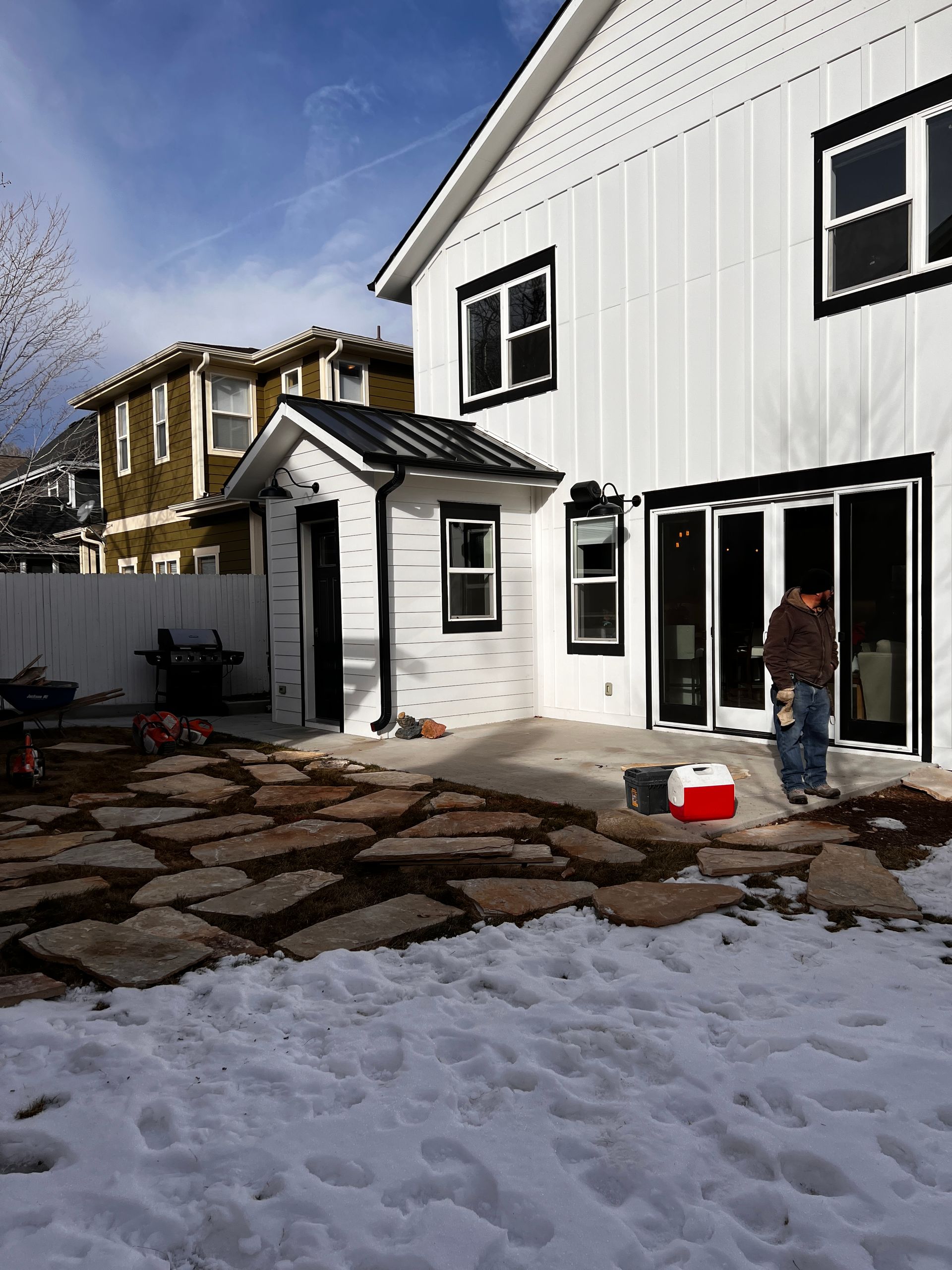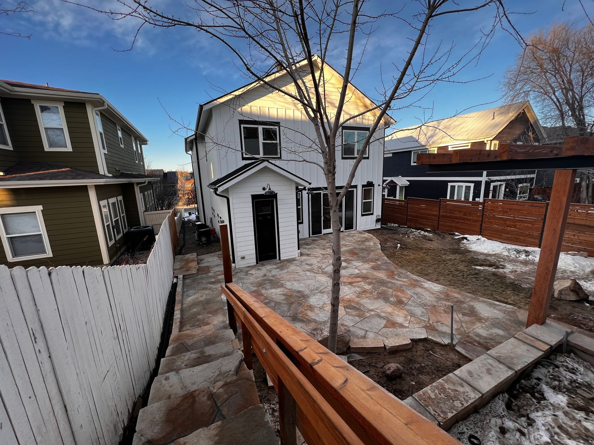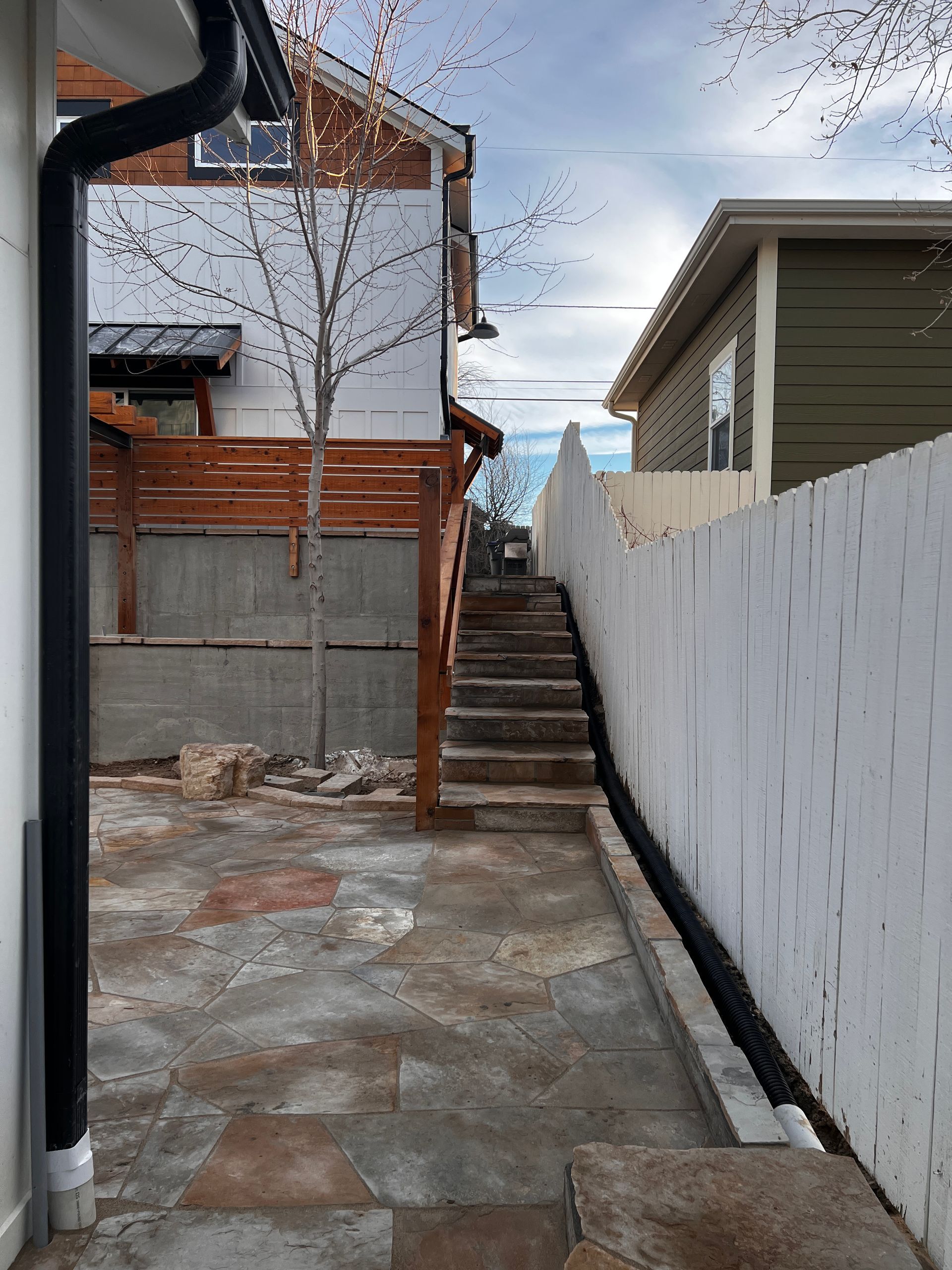 Full remodel of front and back yard building on home design. New Colorado buff flagstone and stripstone, plants, trees, sprinklers, and grass. Lafayette, CO 2019-2022