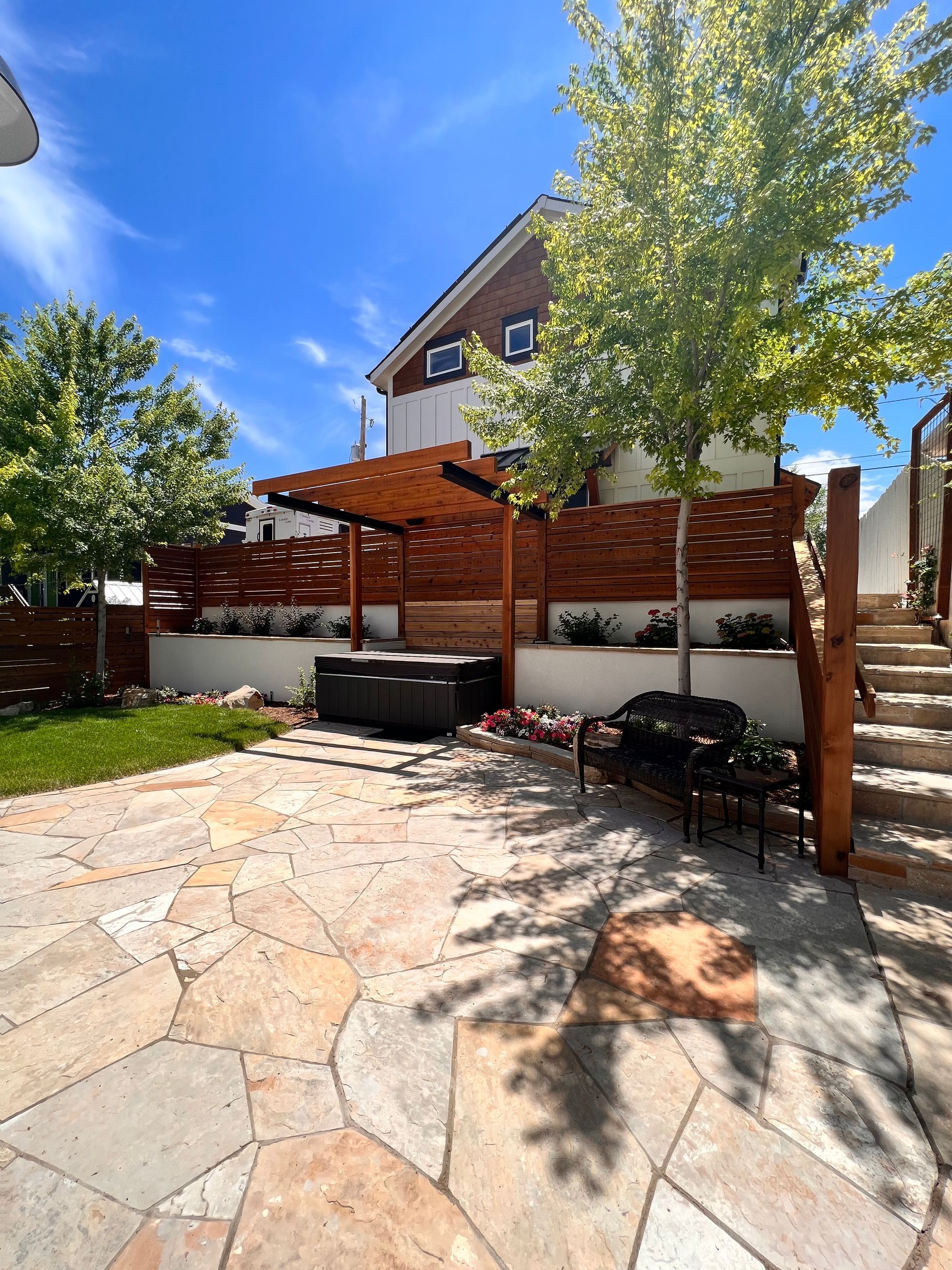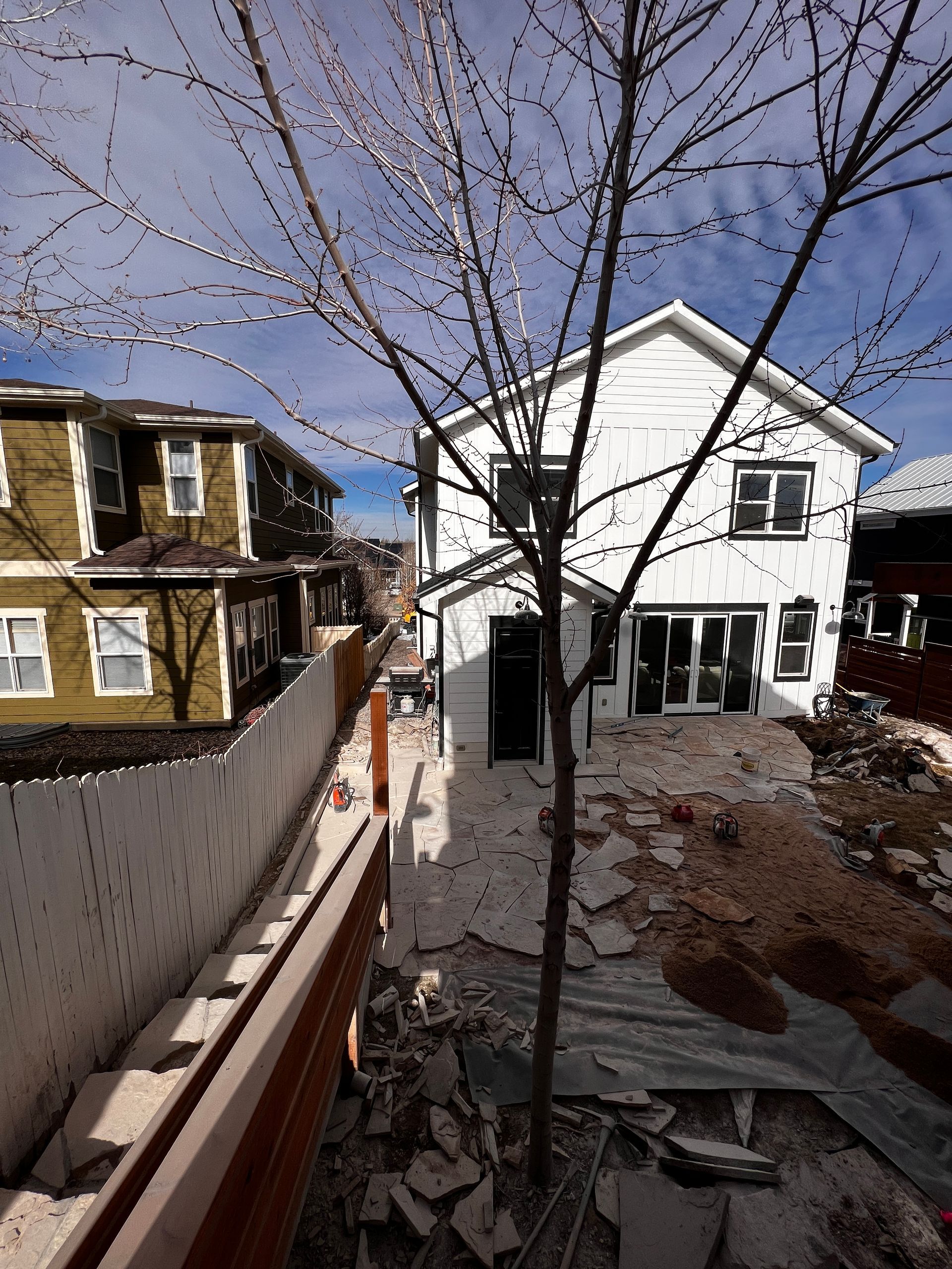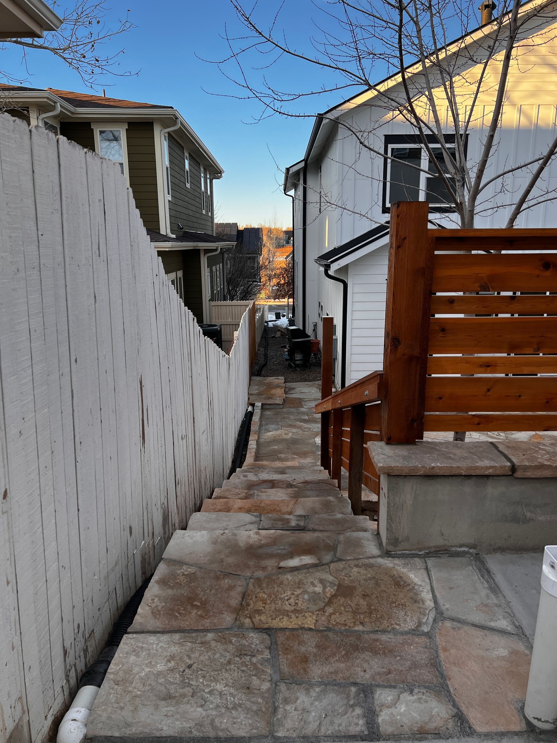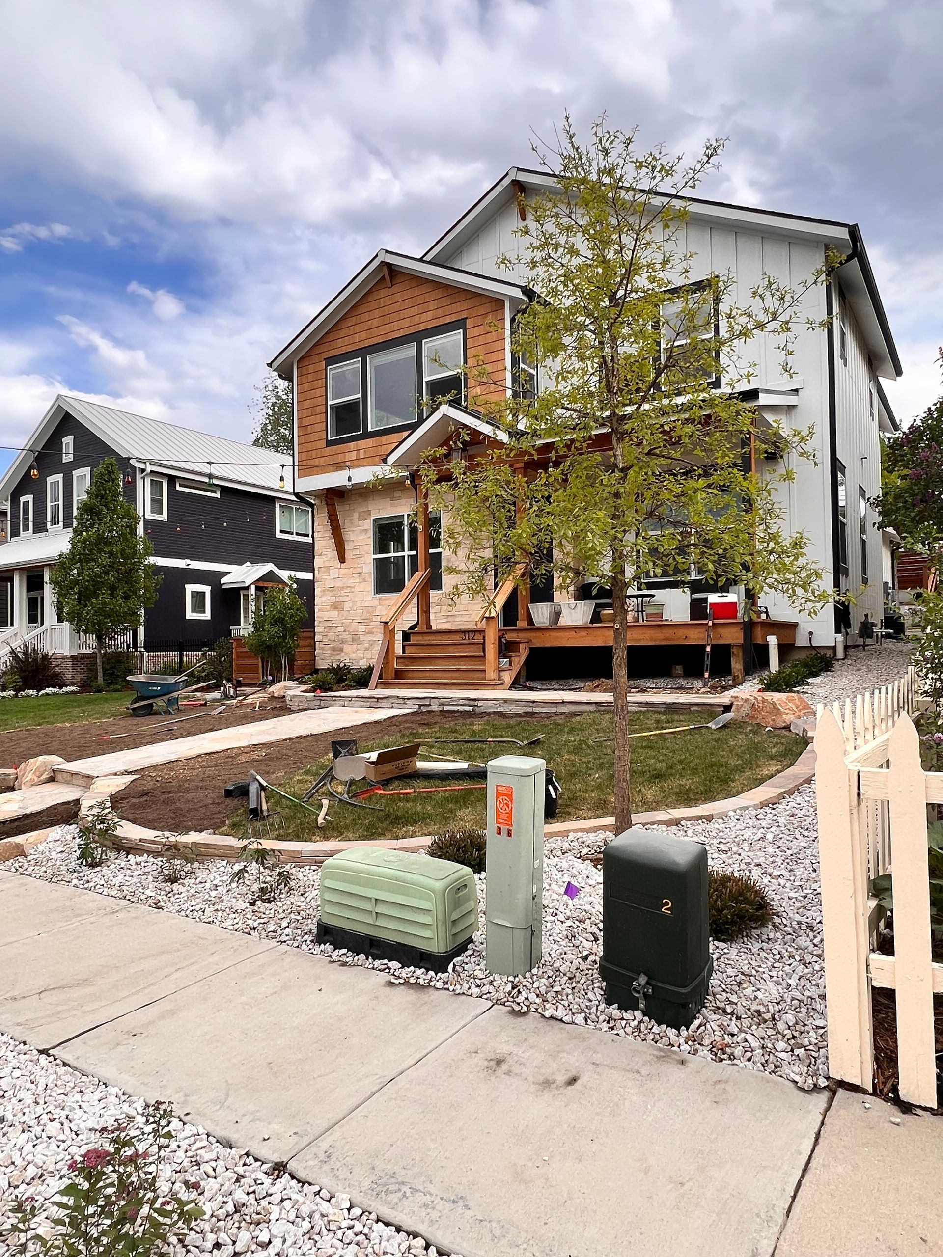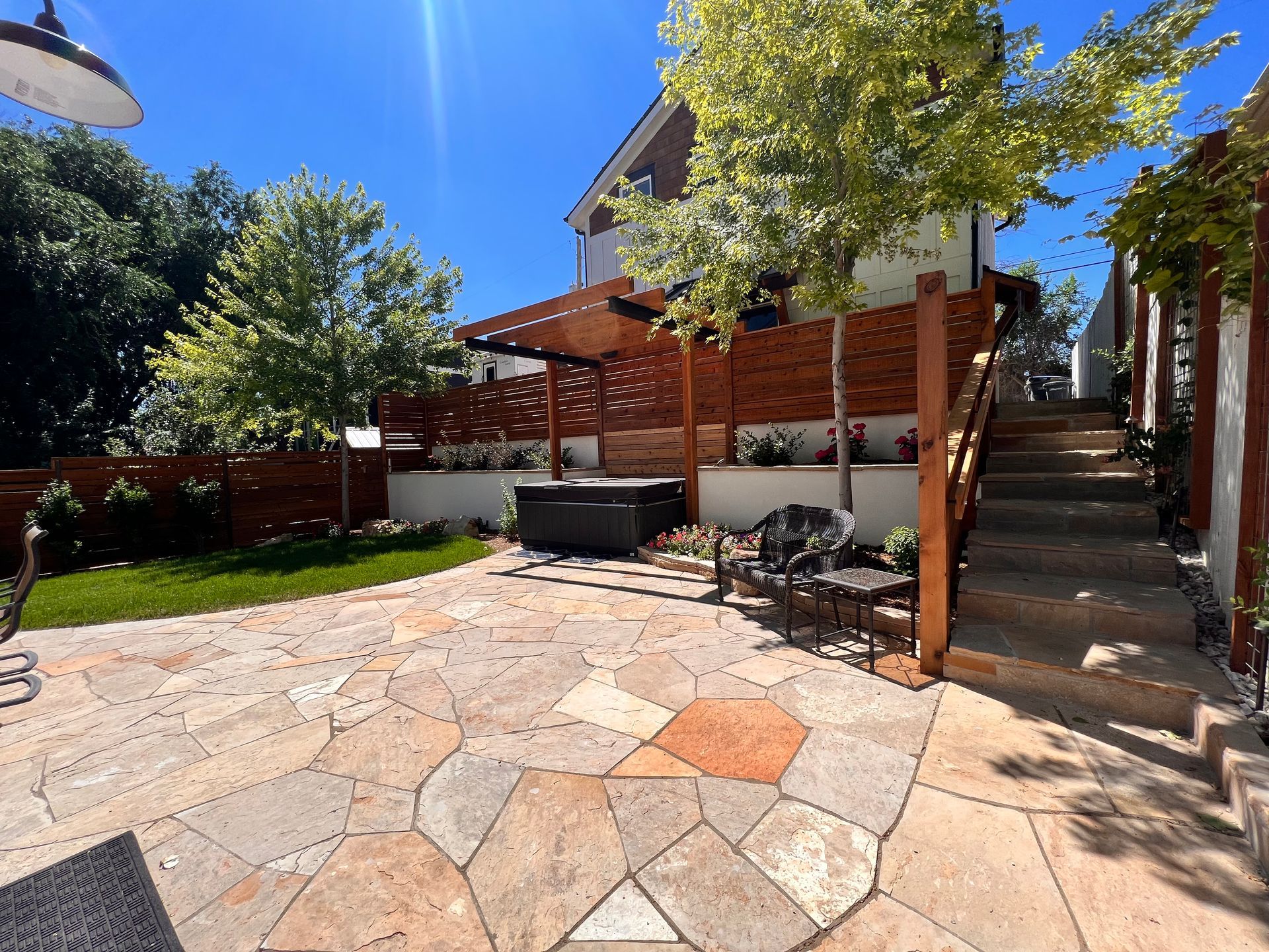 Full remodel of front and back yard building on home design. New Colorado buff flagstone and stripstone, plants, trees, sprinklers, and grass. Lafayette, CO 2019-2022