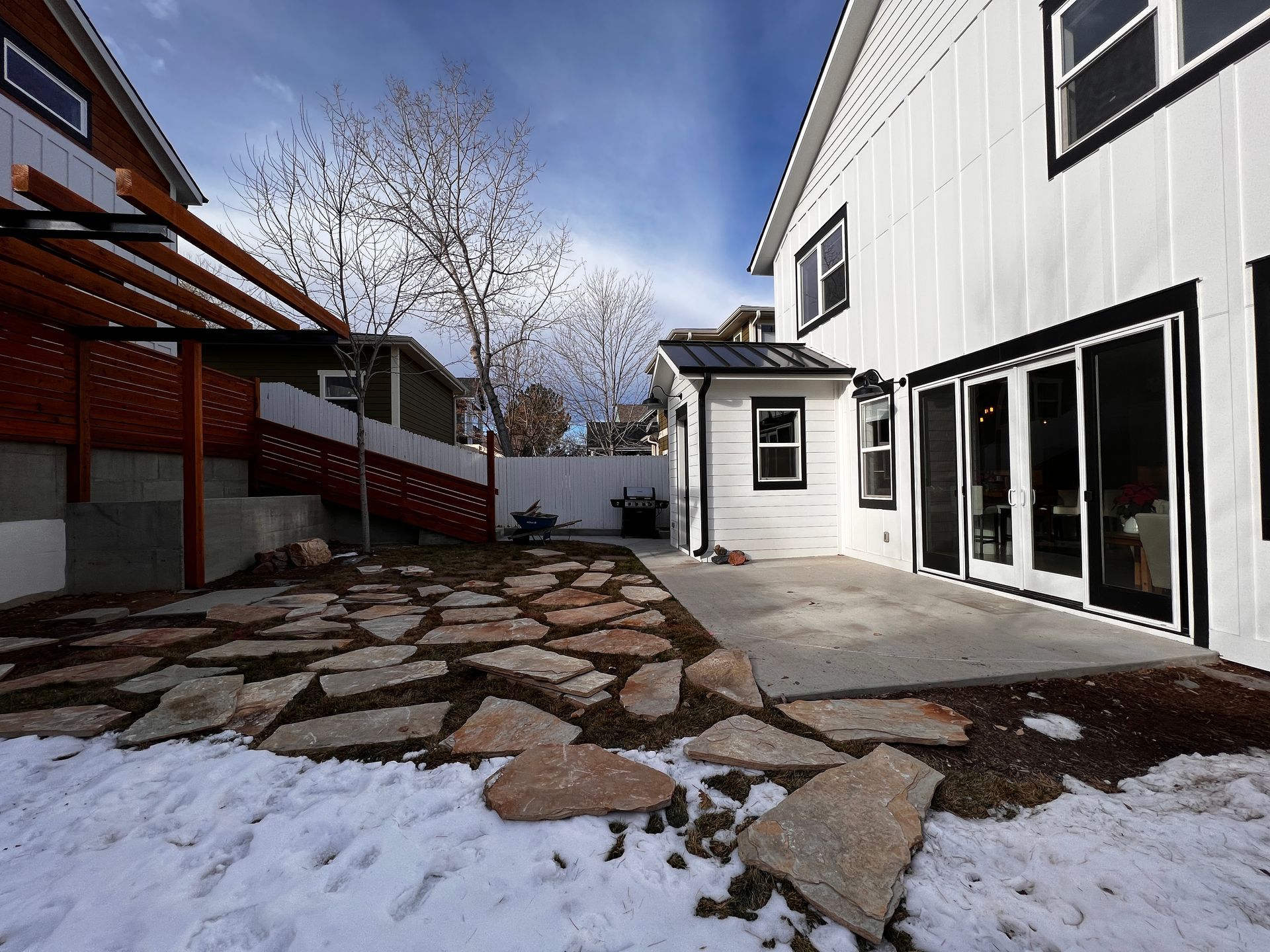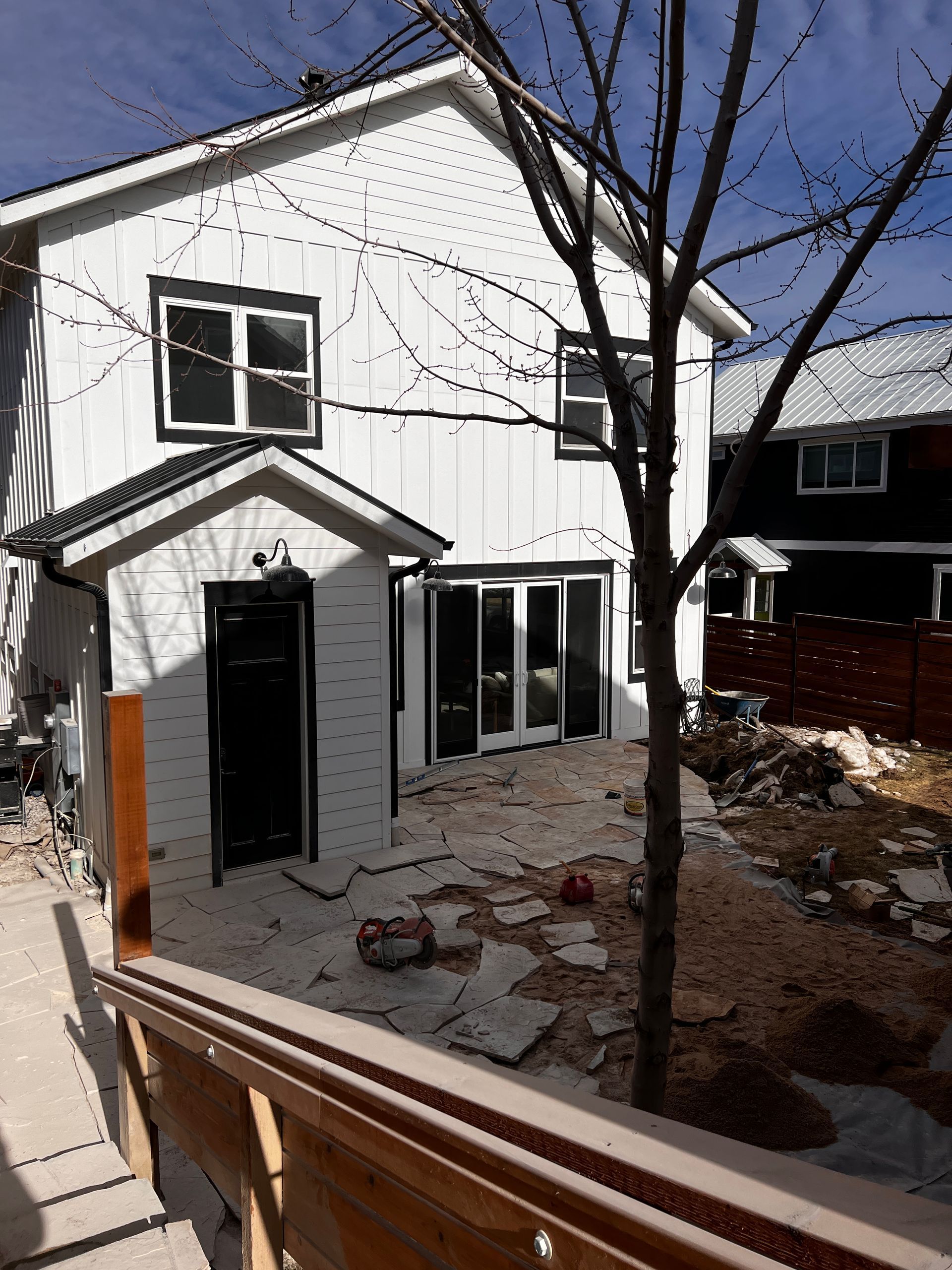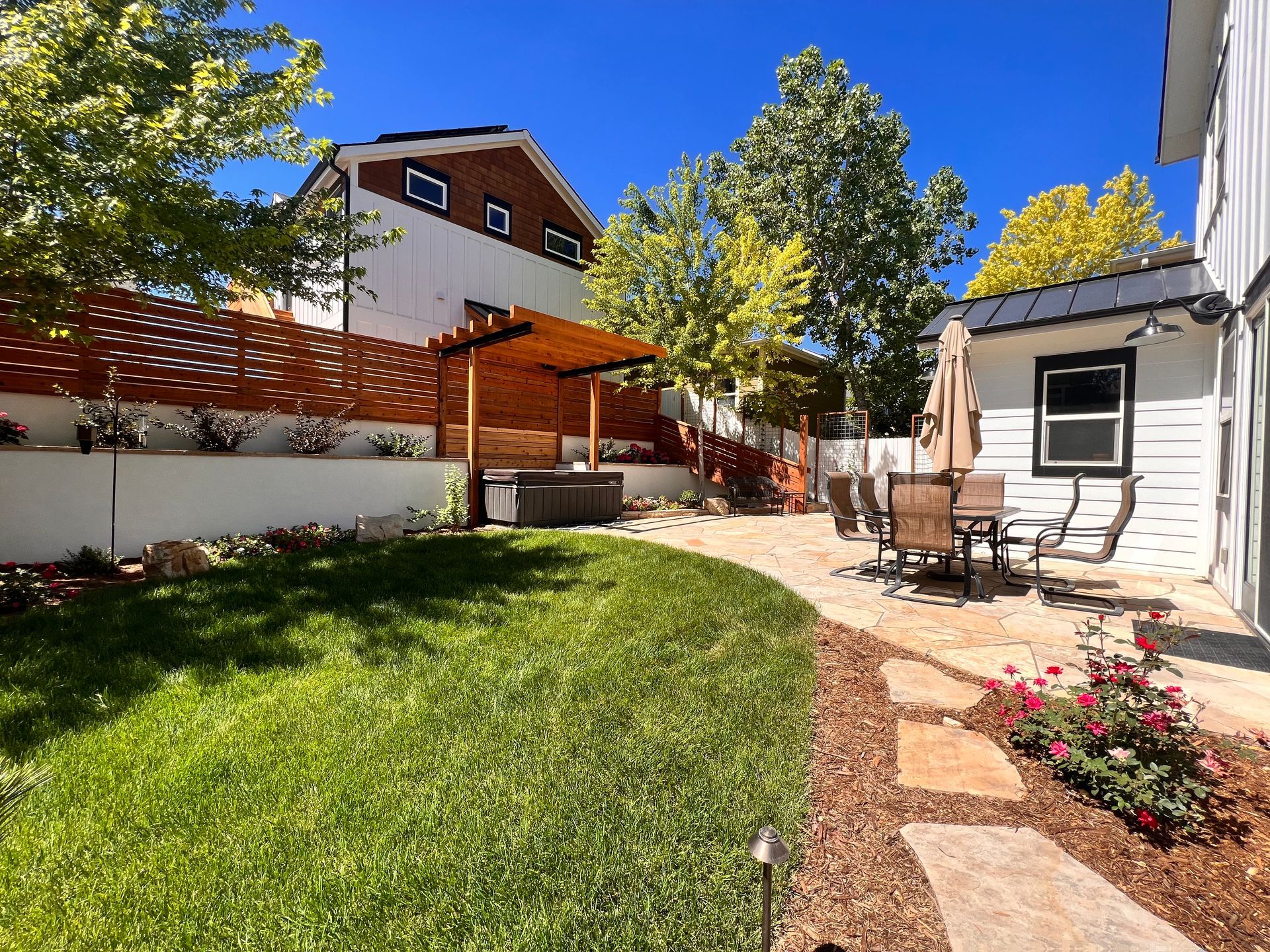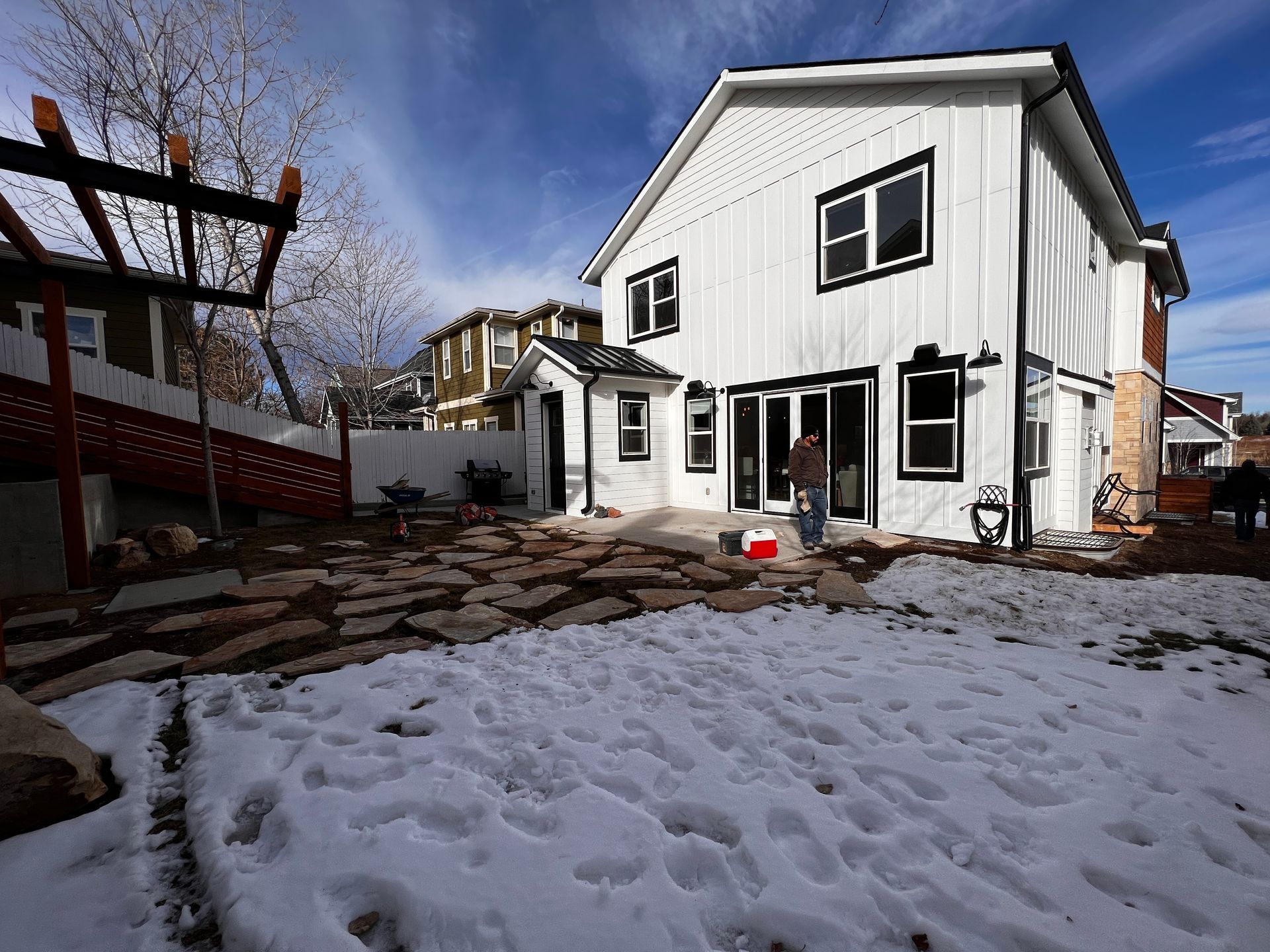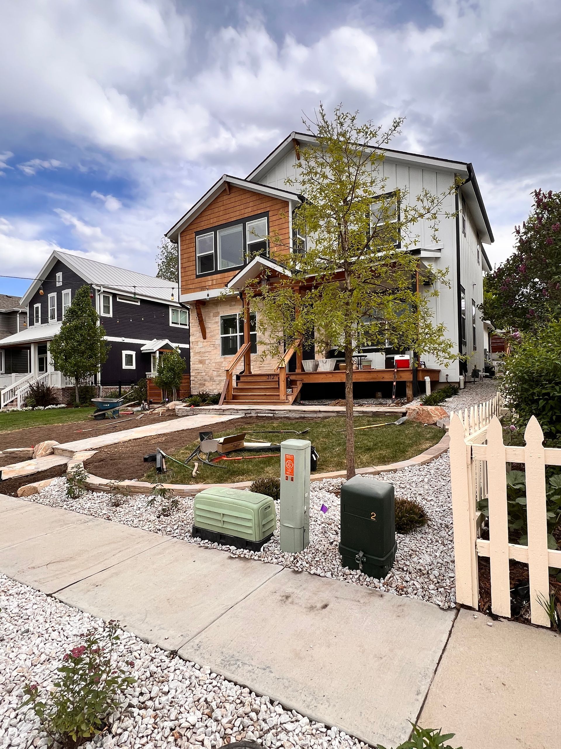 Full remodel of front and back yard building on home design. New Colorado buff flagstone and stripstone, plants, trees, sprinklers, and grass. Lafayette, CO 2019-2022