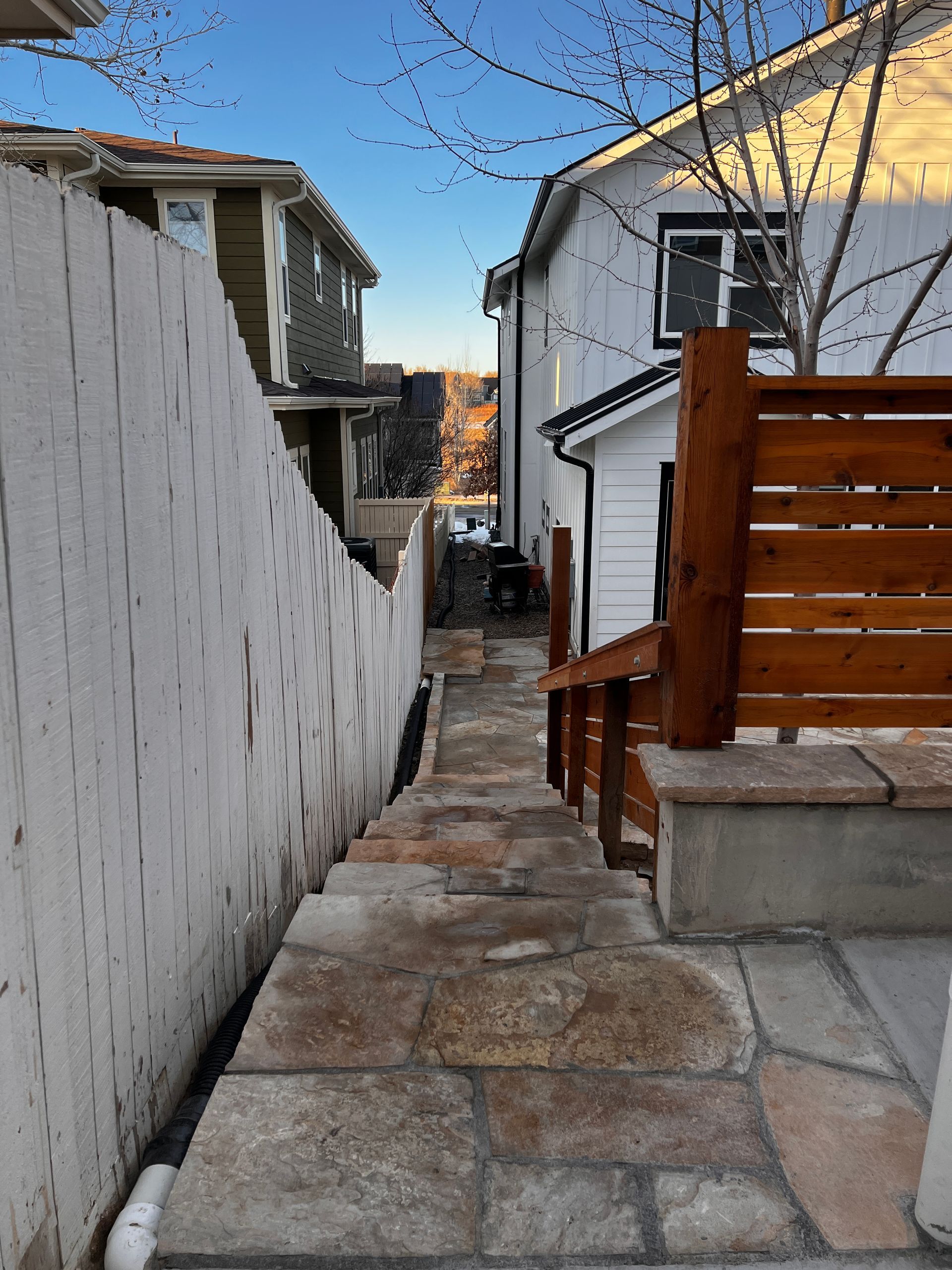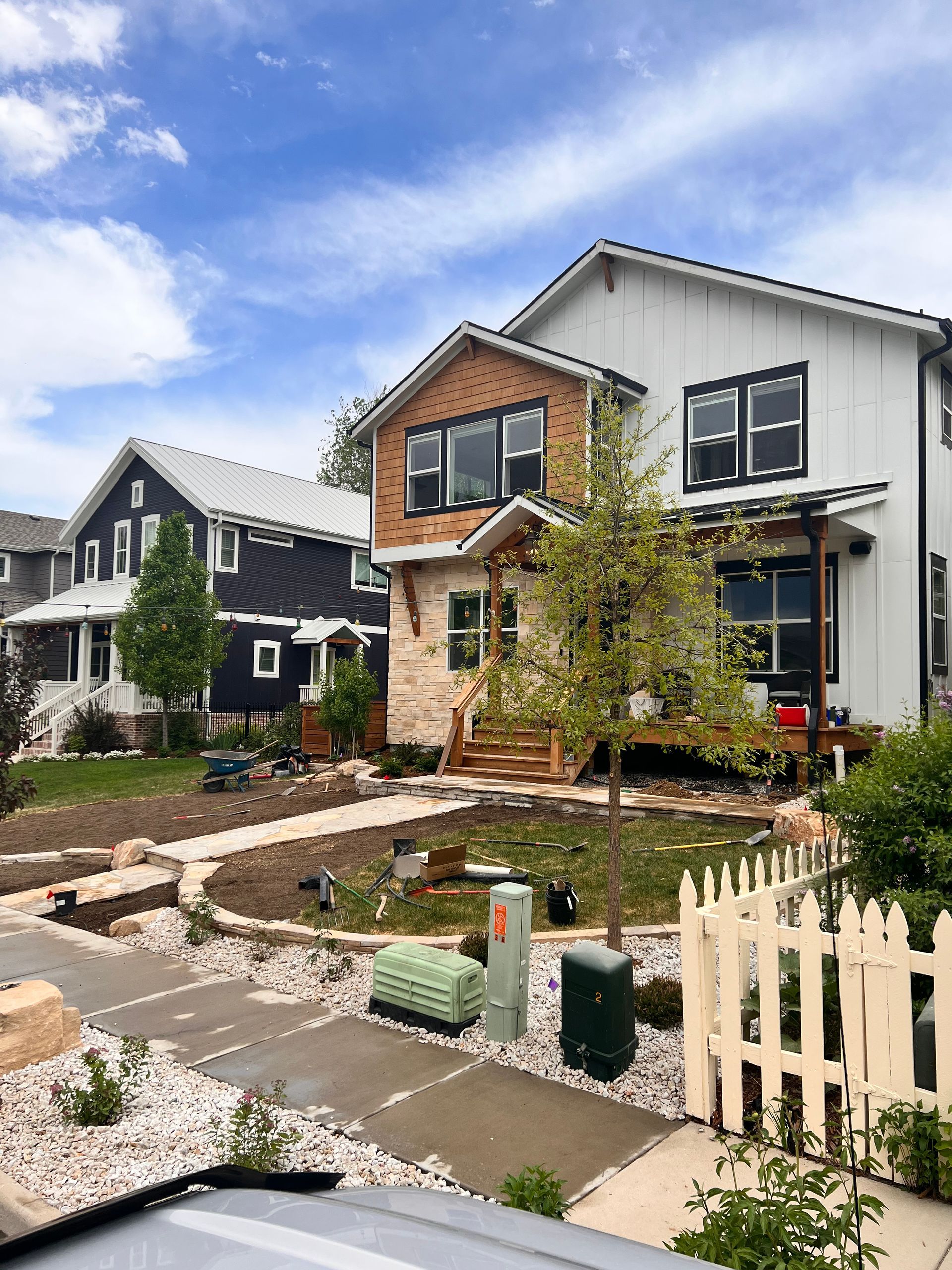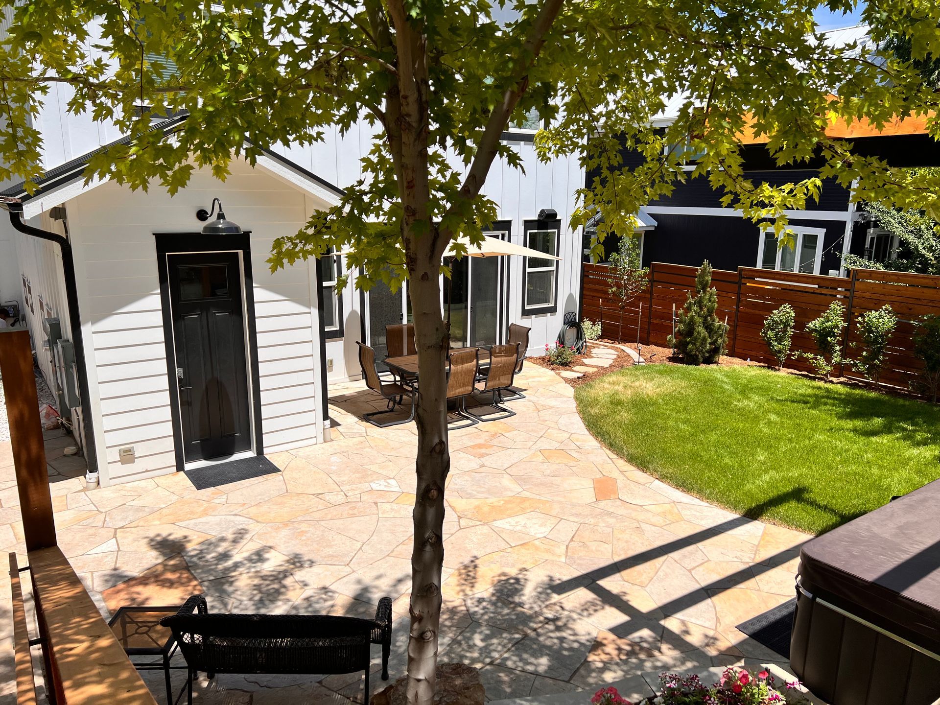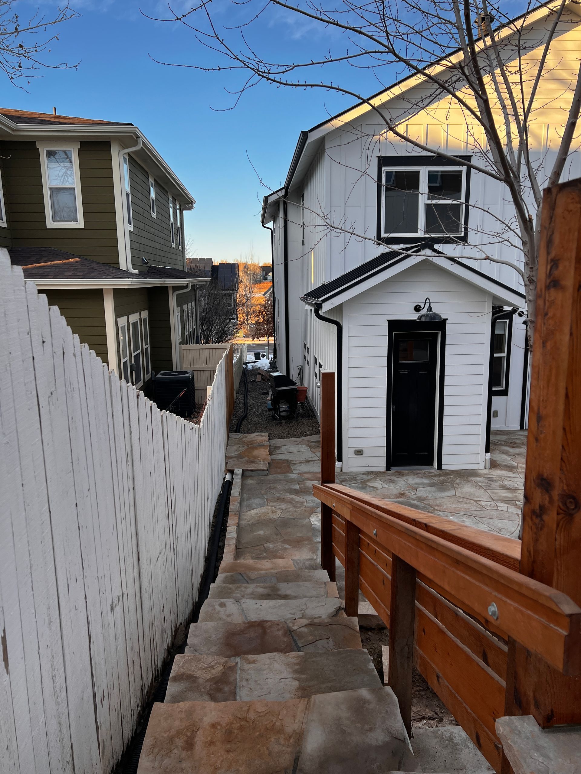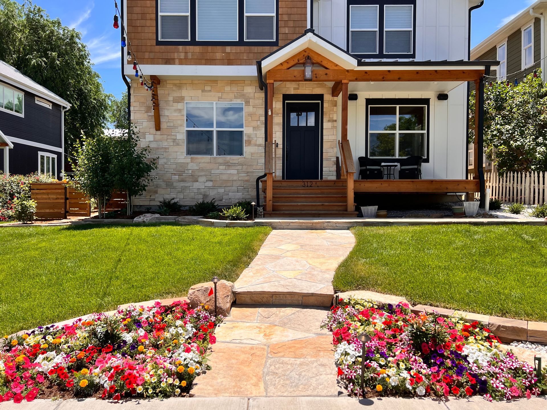 Full remodel of front and back yard building on home design. New Colorado buff flagstone and stripstone, plants, trees, sprinklers, and grass. Lafayette, CO 2019-2022