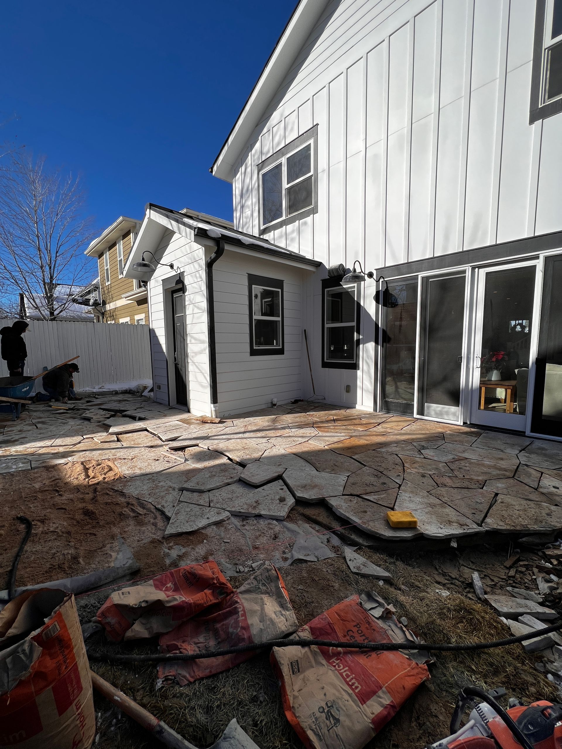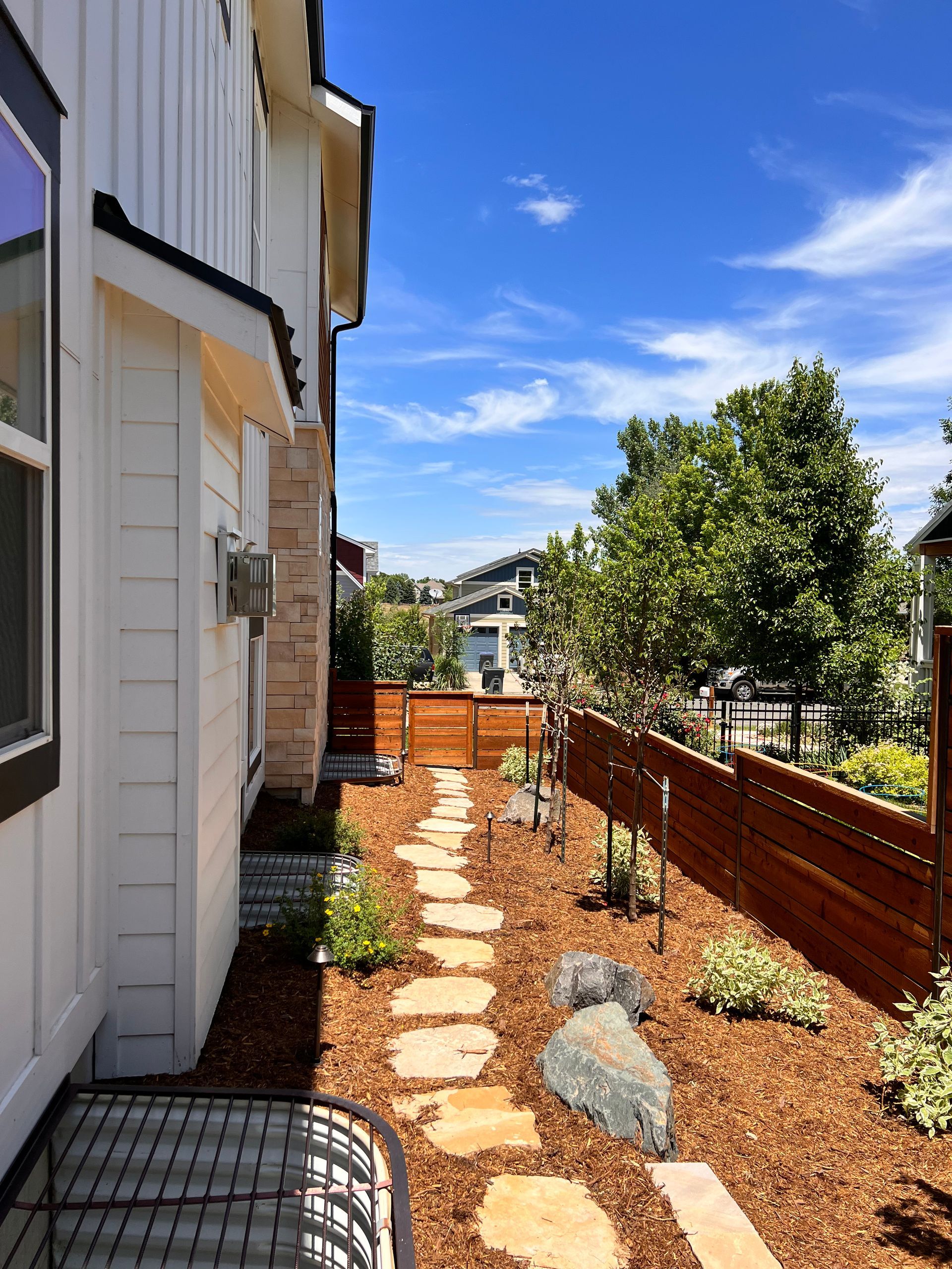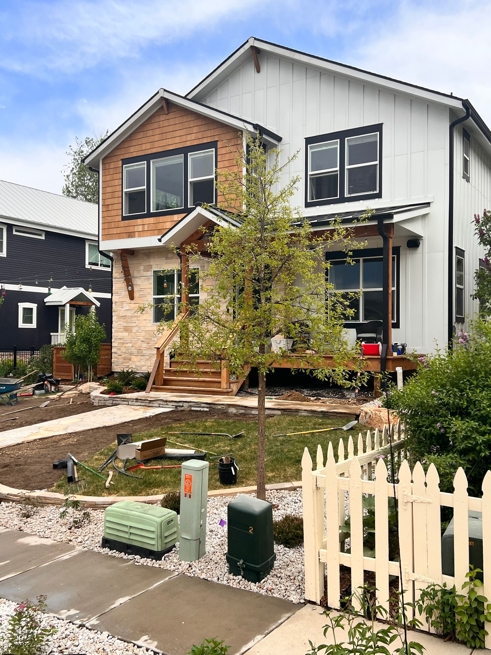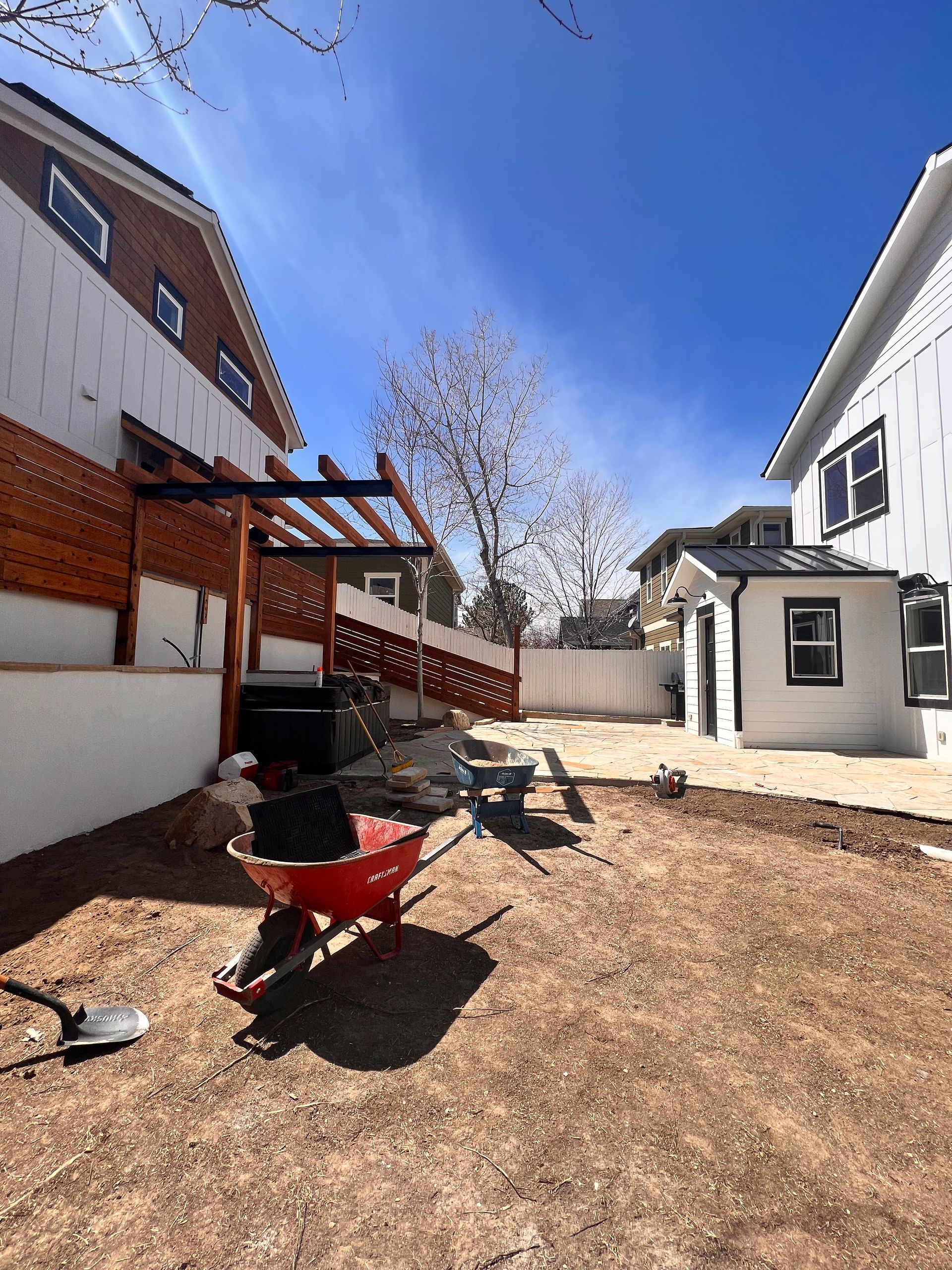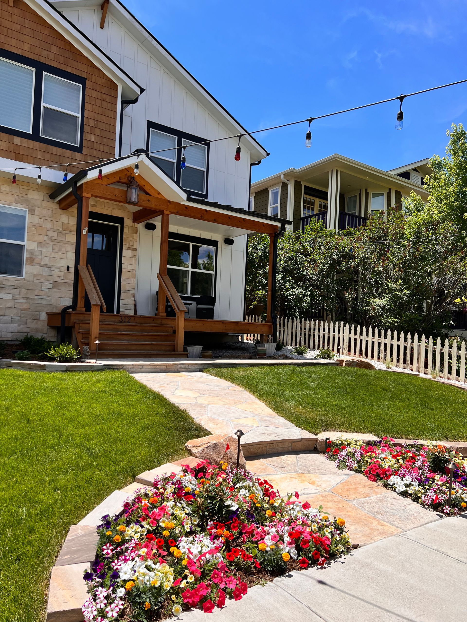 Full remodel of front and back yard building on home design. New Colorado buff flagstone and stripstone, plants, trees, sprinklers, and grass. Lafayette, CO 2019-2022