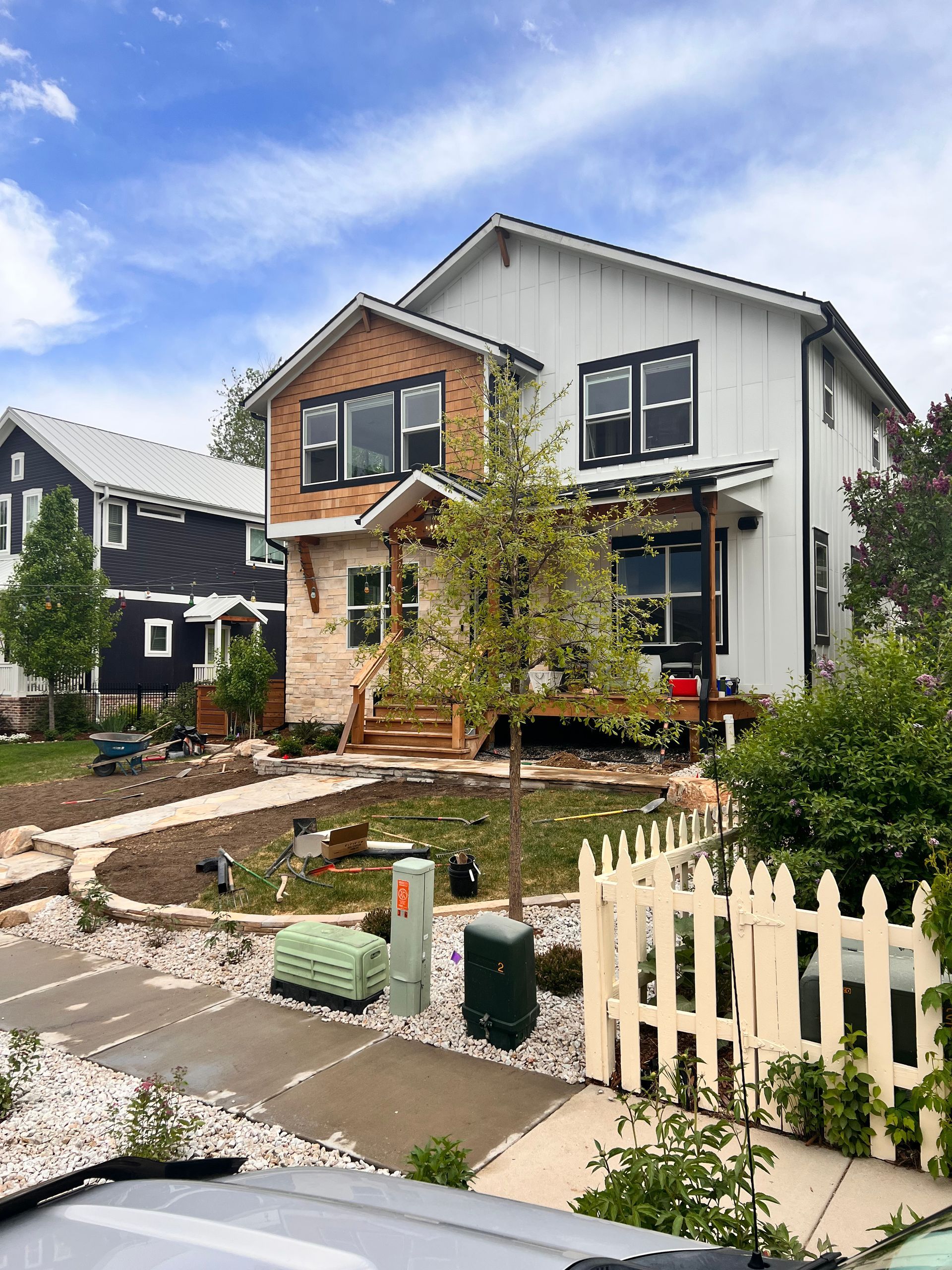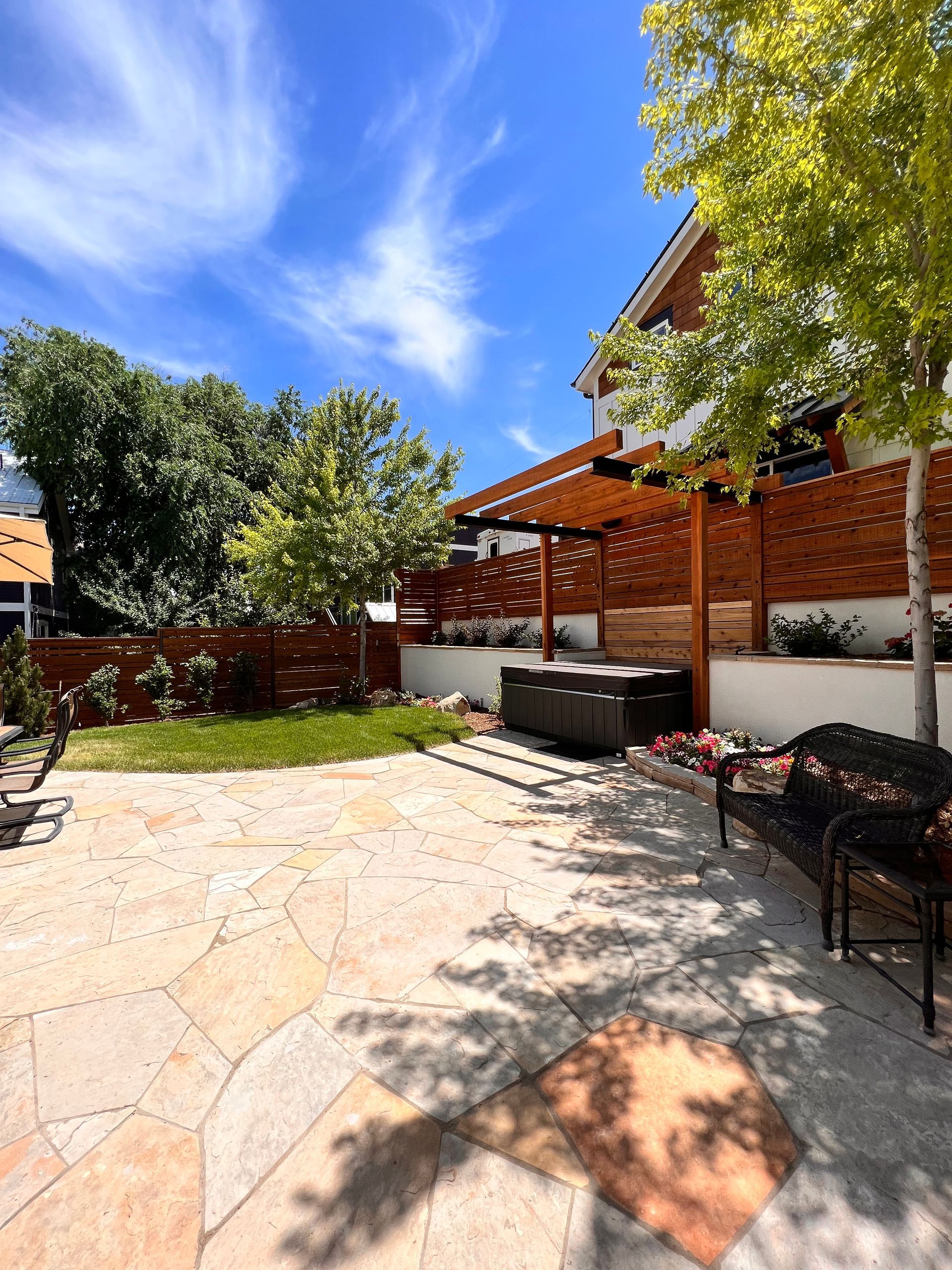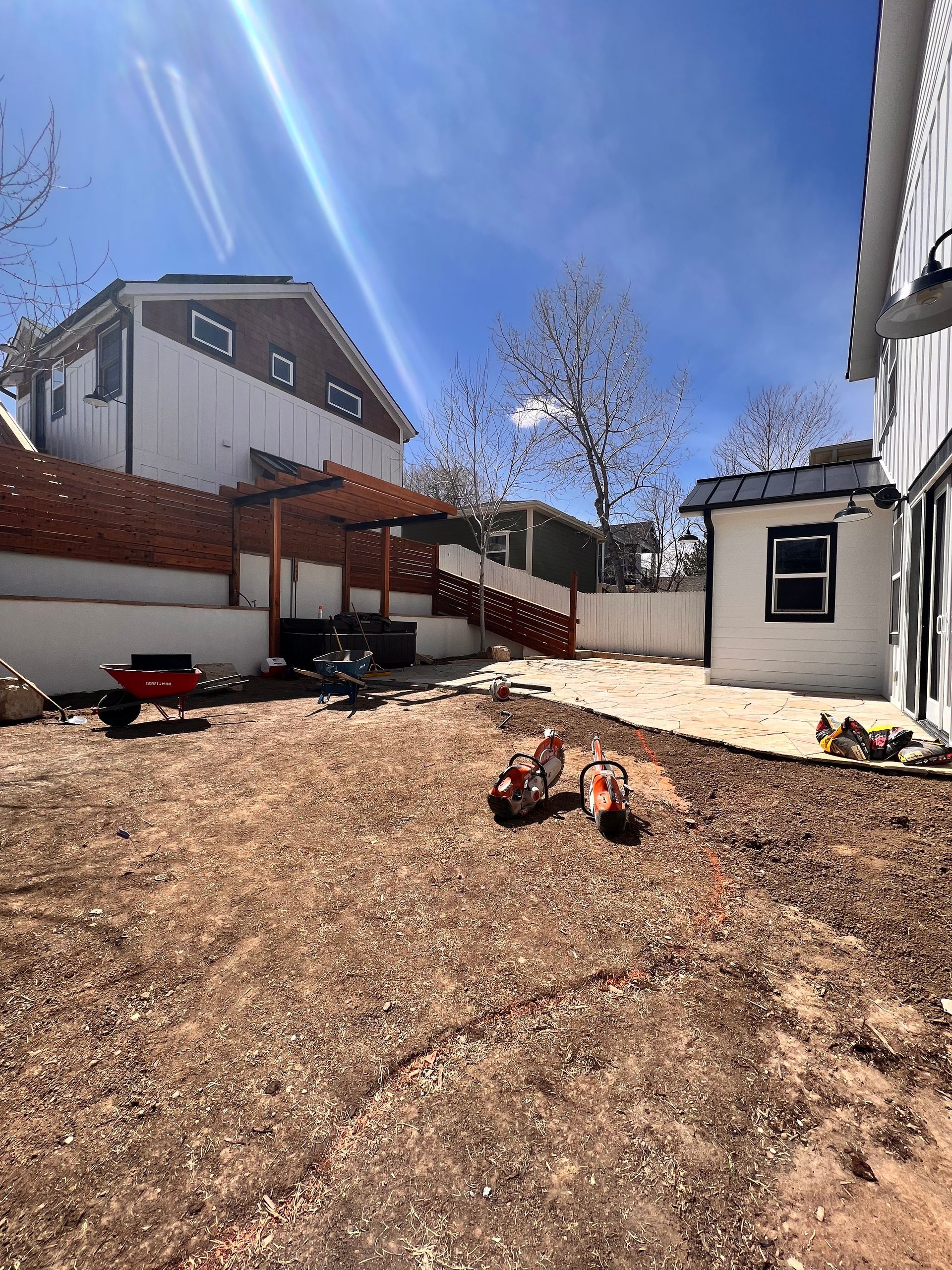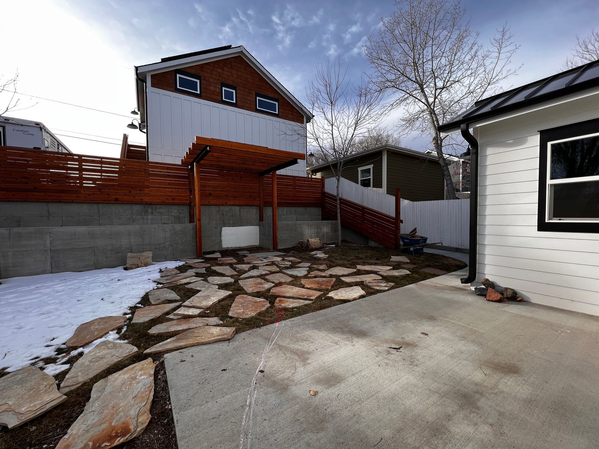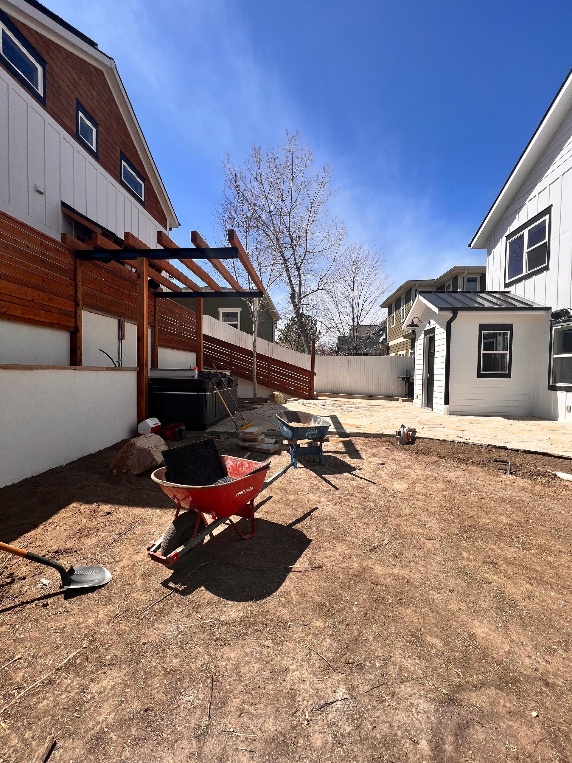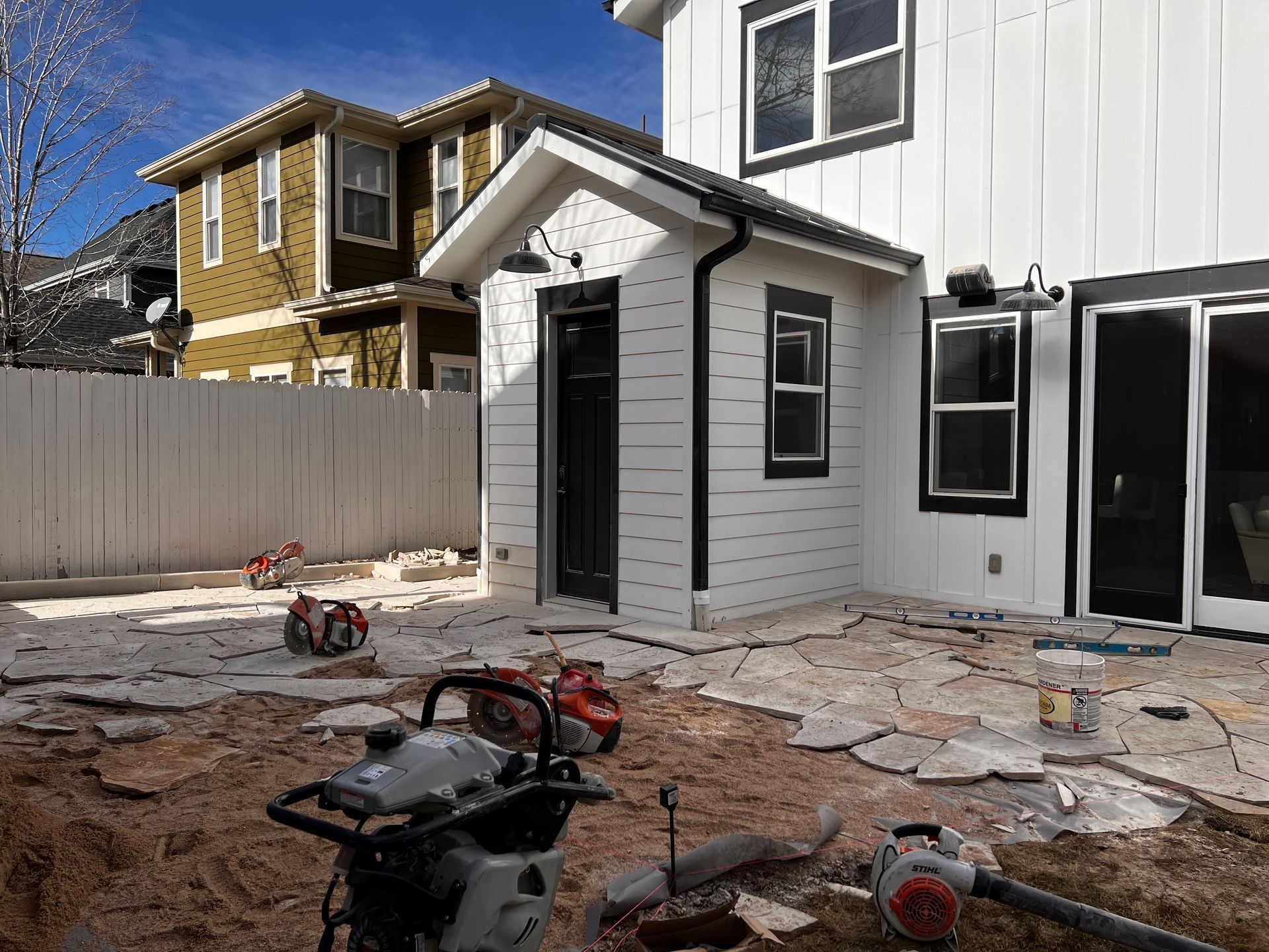 Full remodel of front and back yard building on home design. New Colorado buff flagstone and stripstone, plants, trees, sprinklers, and grass. Lafayette, CO 2019-2022