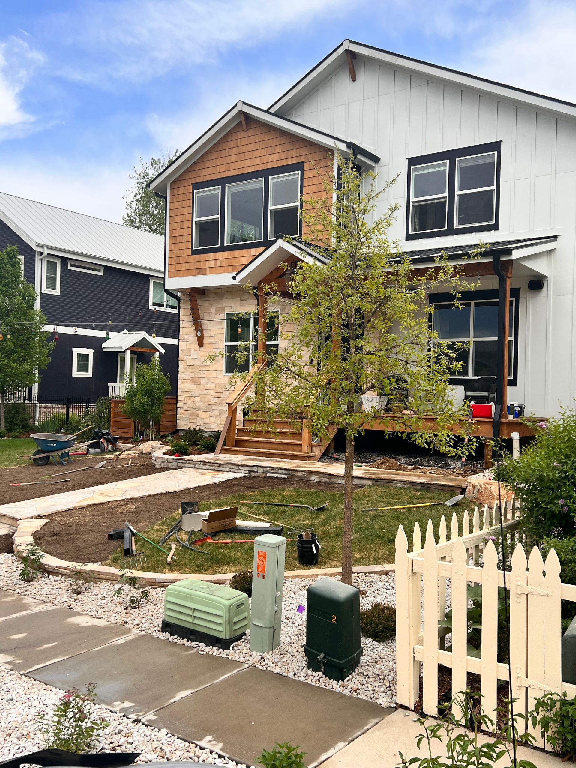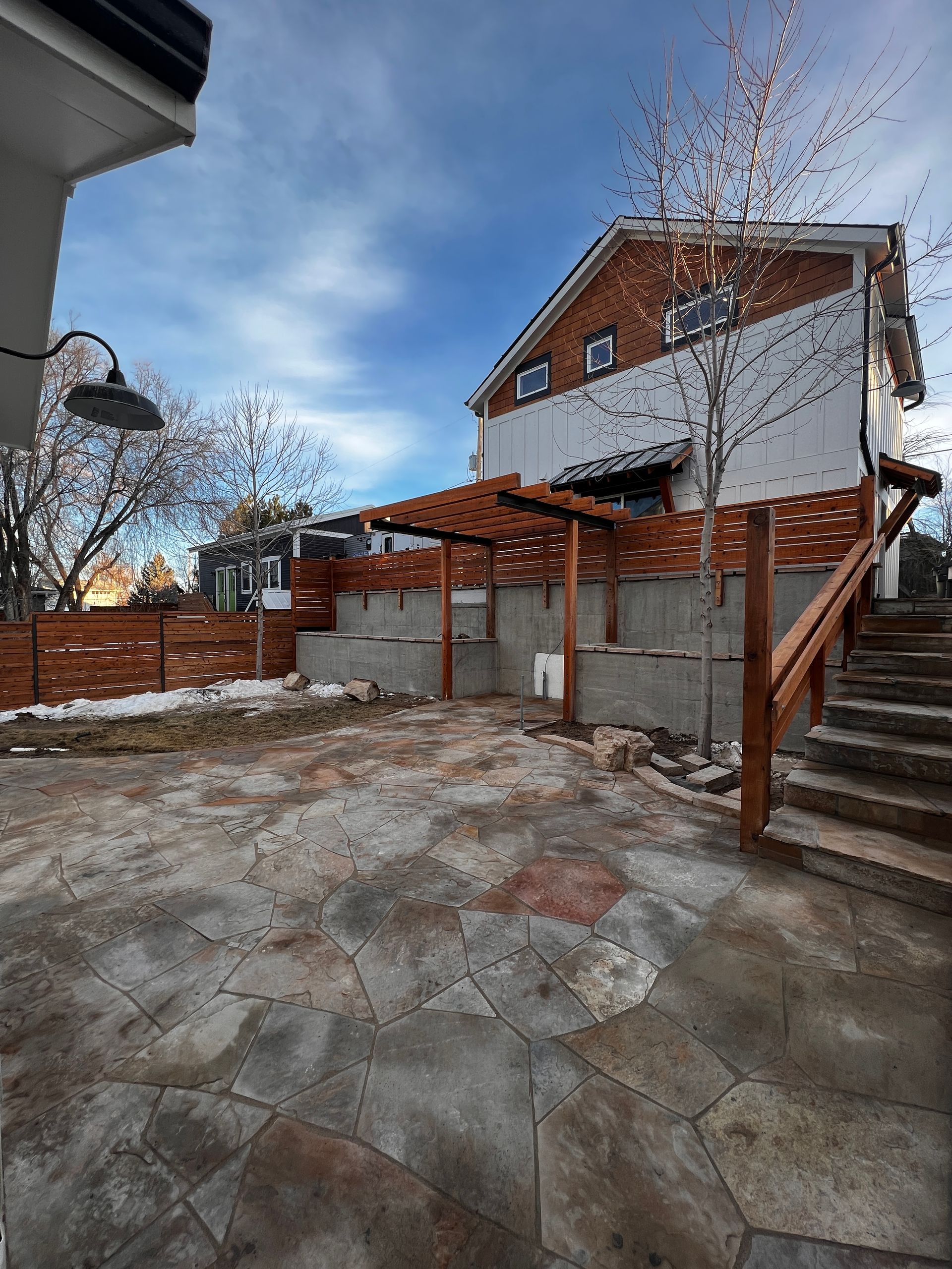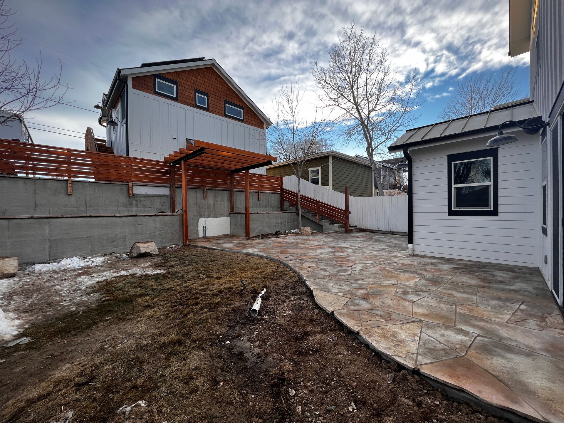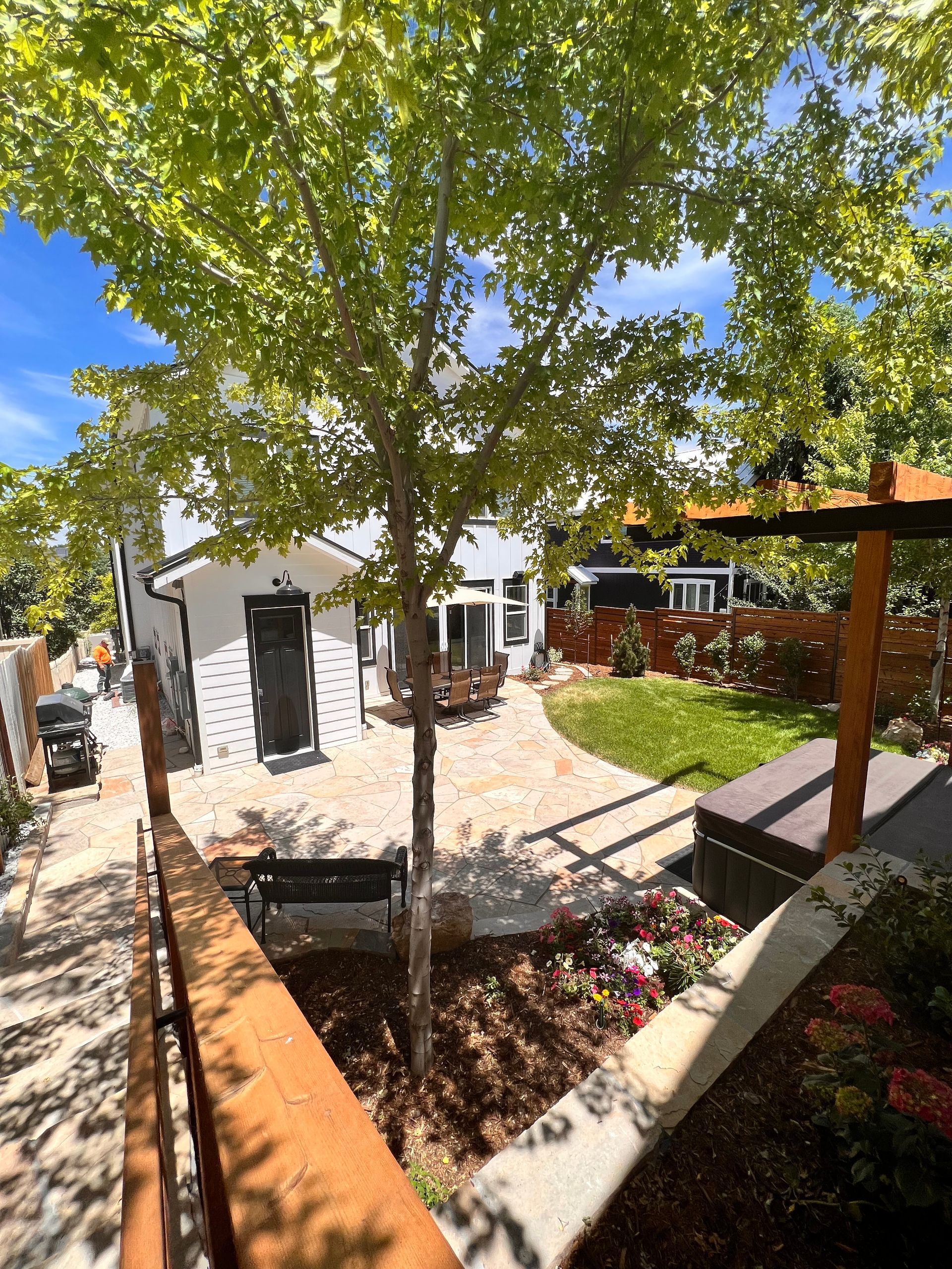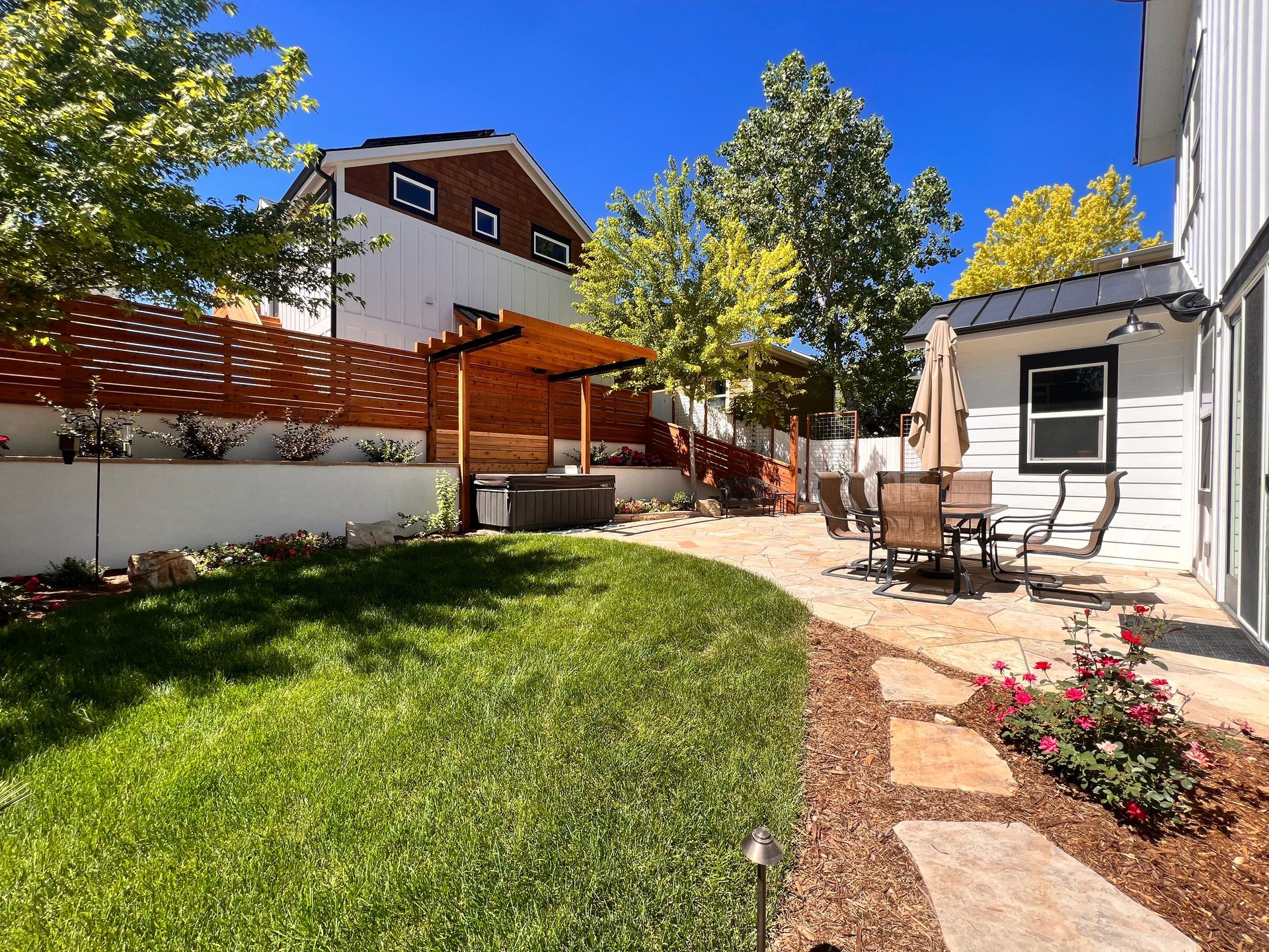 Full remodel of front and back yard building on home design. New Colorado buff flagstone and stripstone, plants, trees, sprinklers, and grass. Lafayette, CO 2019-2022