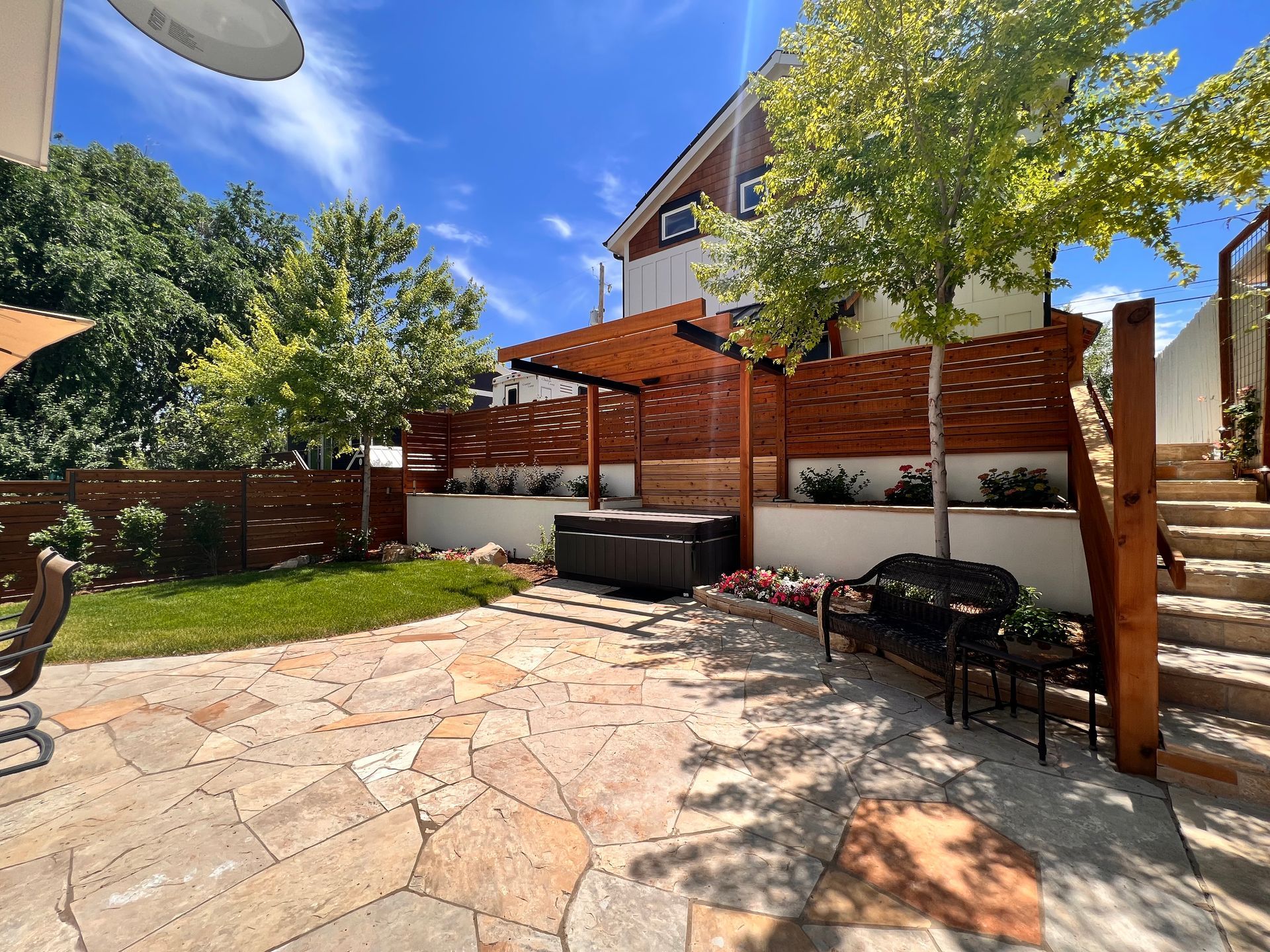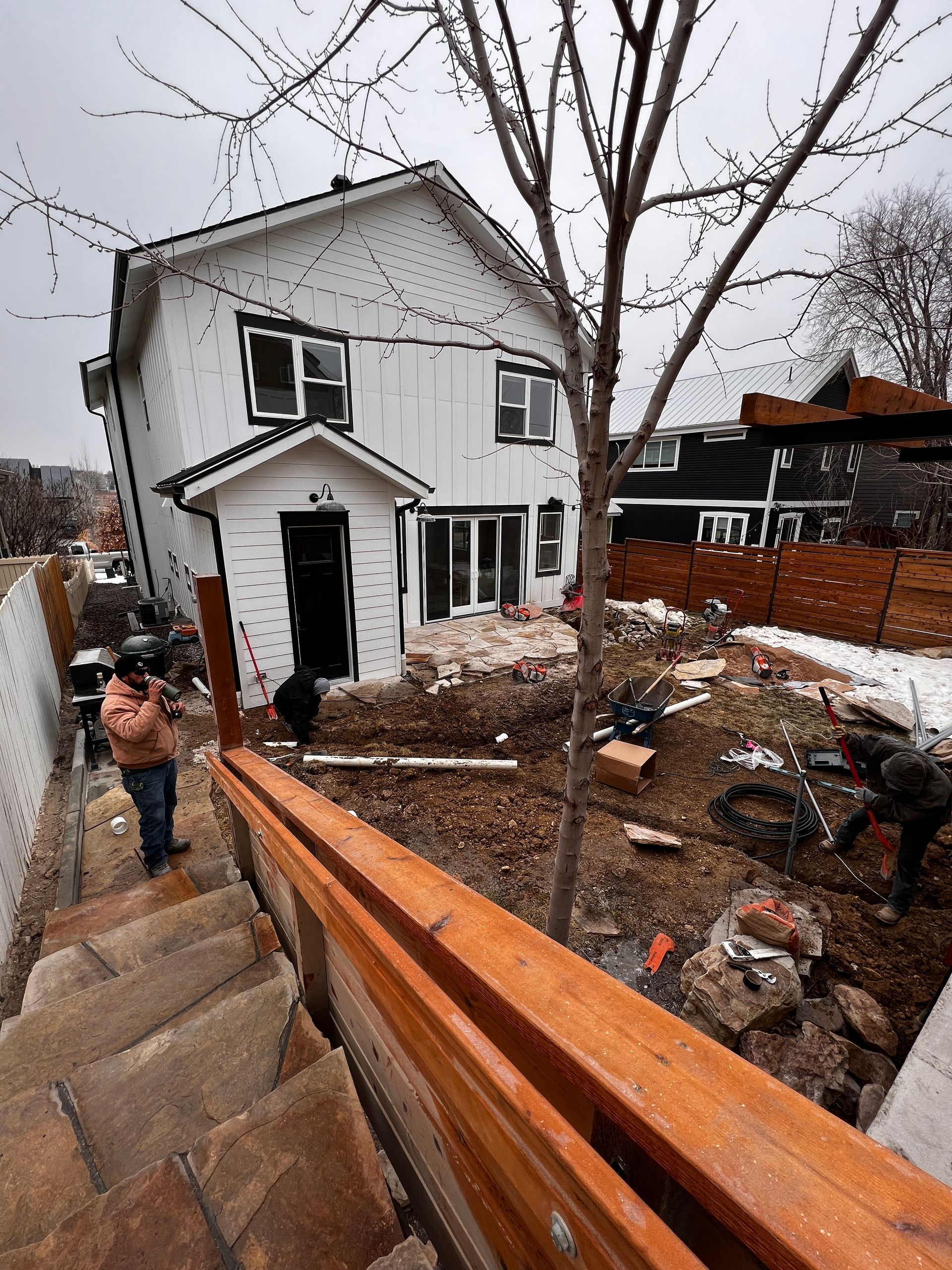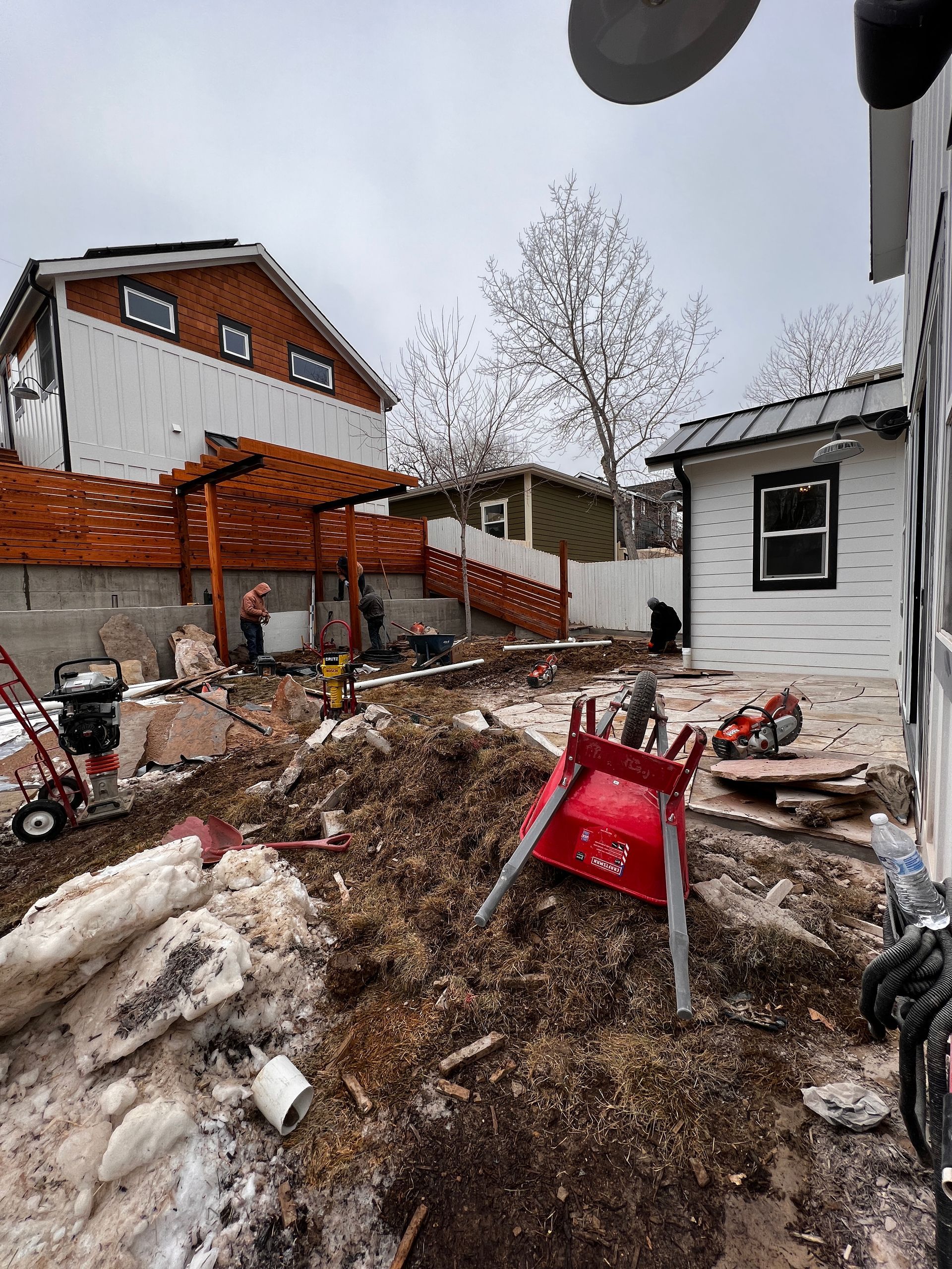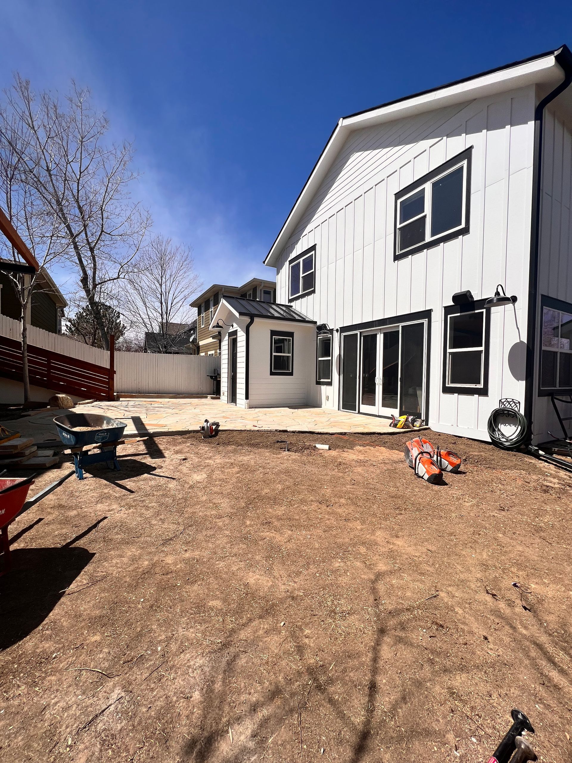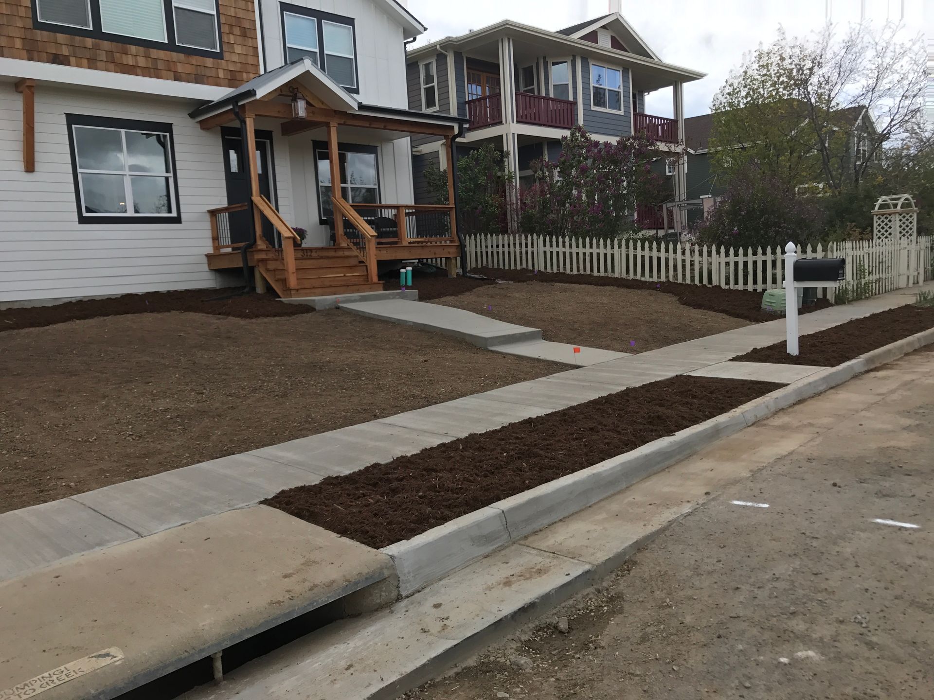 Full remodel of front and back yard building on home design. New Colorado buff flagstone and stripstone, plants, trees, sprinklers, and grass. Lafayette, CO 2019-2022