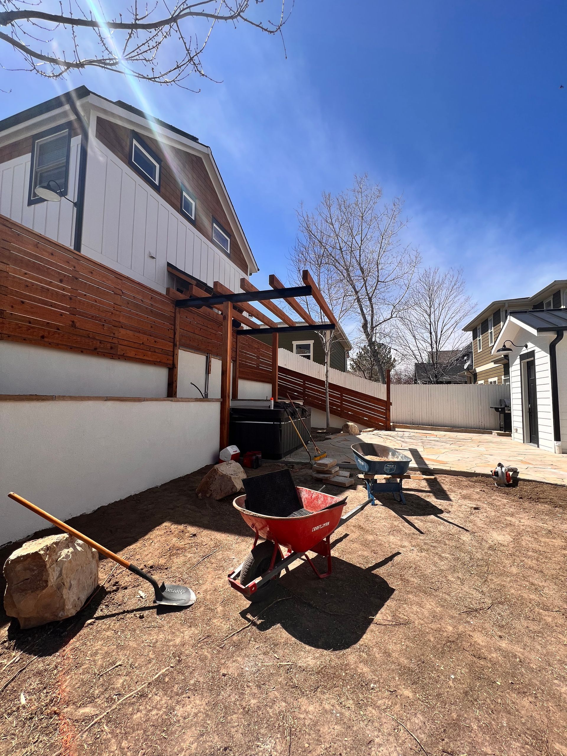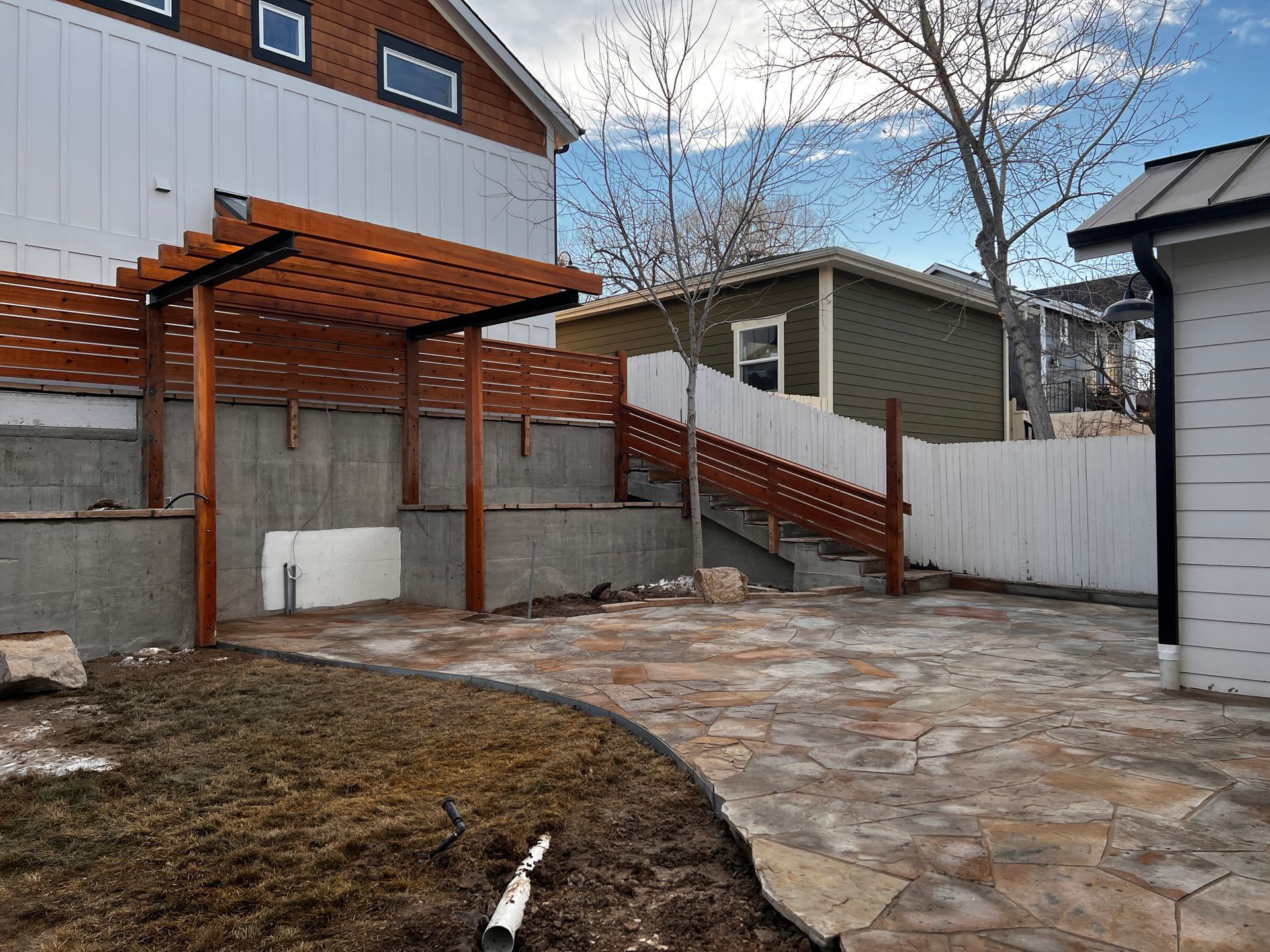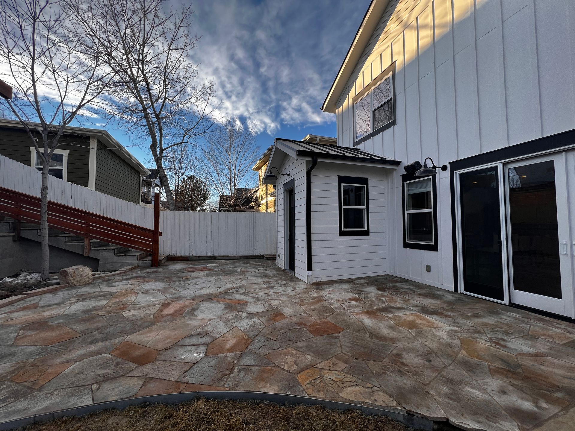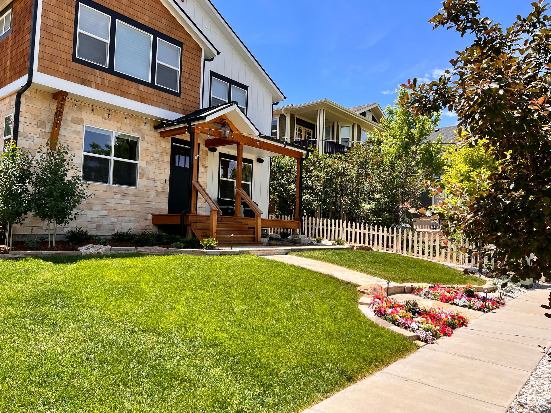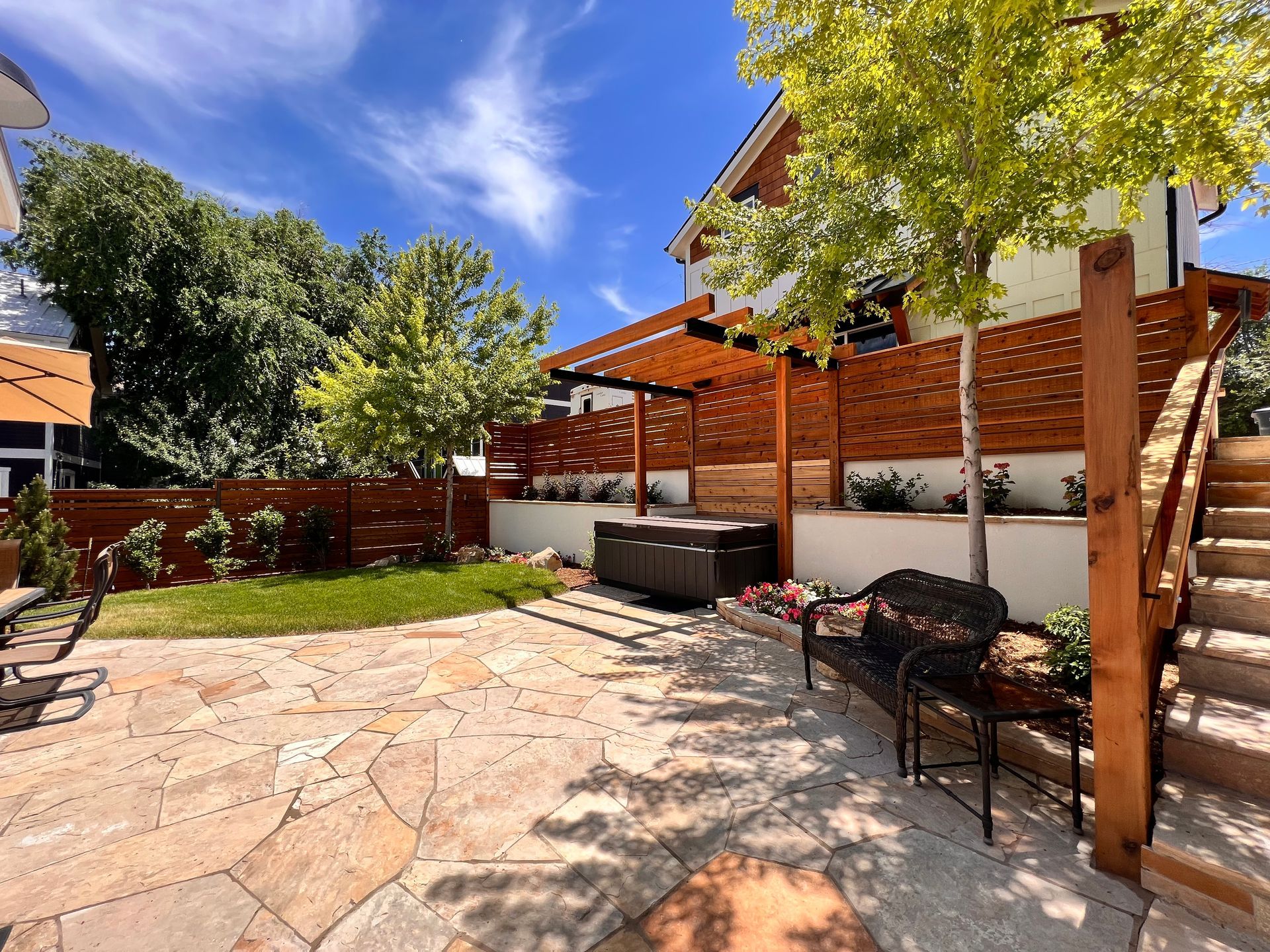 Full remodel of front and back yard building on home design. New Colorado buff flagstone and stripstone, plants, trees, sprinklers, and grass. Lafayette, CO 2019-2022