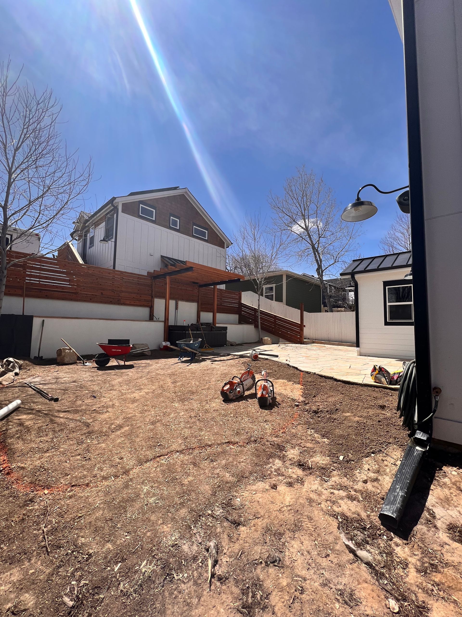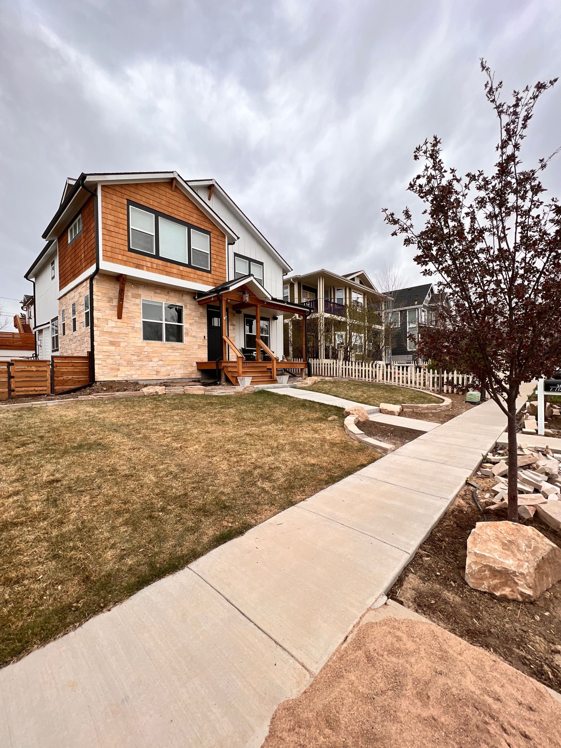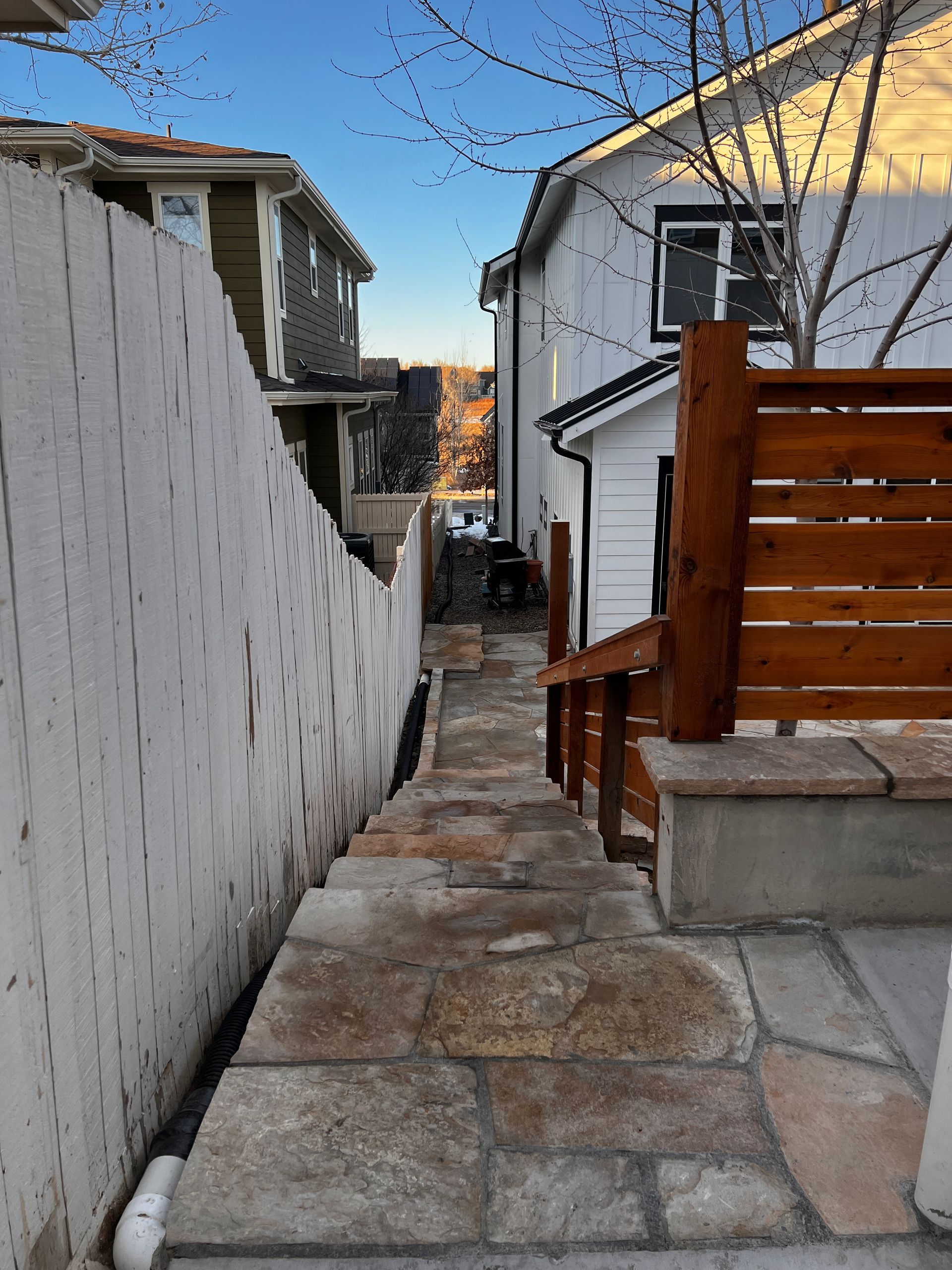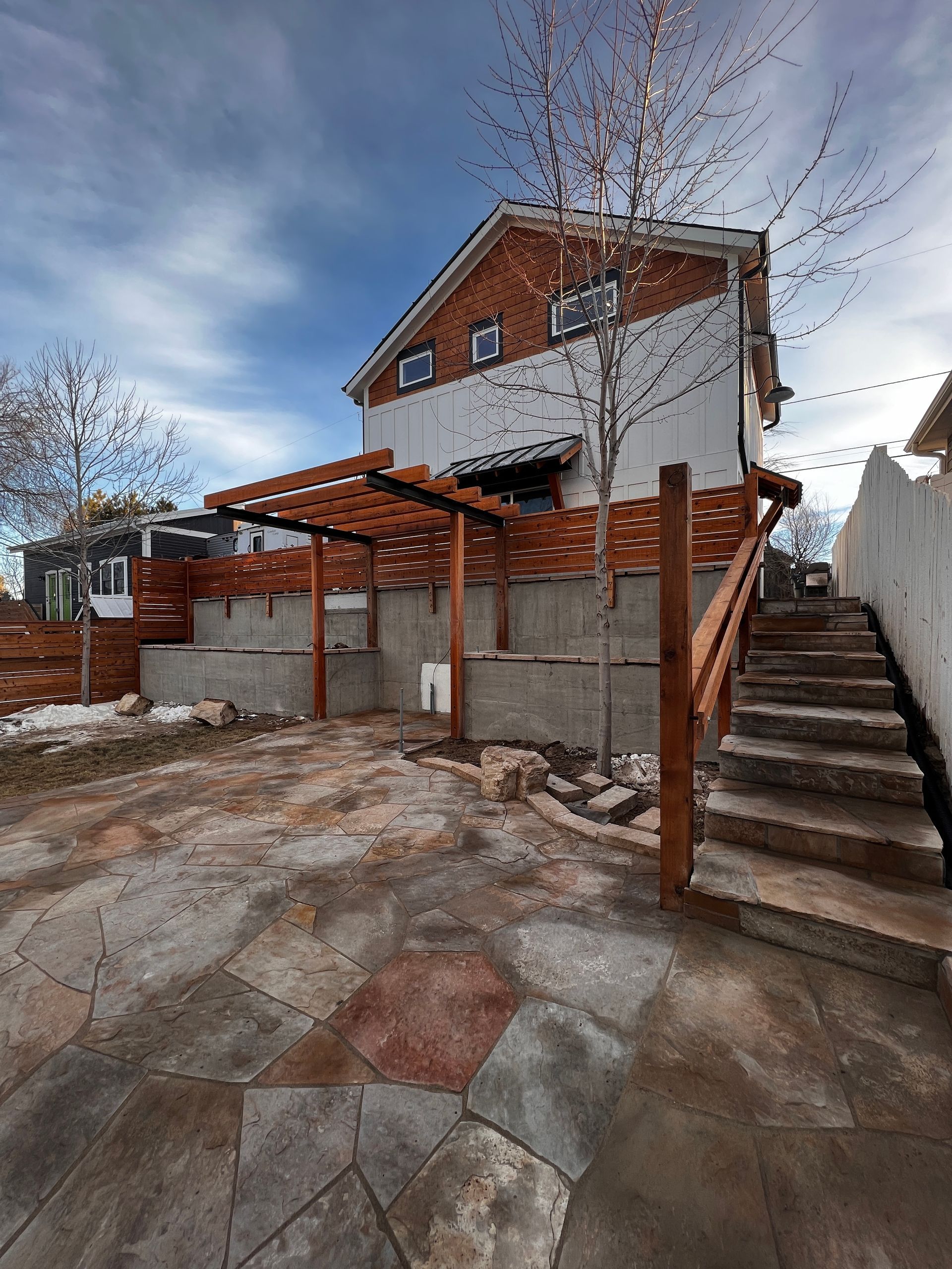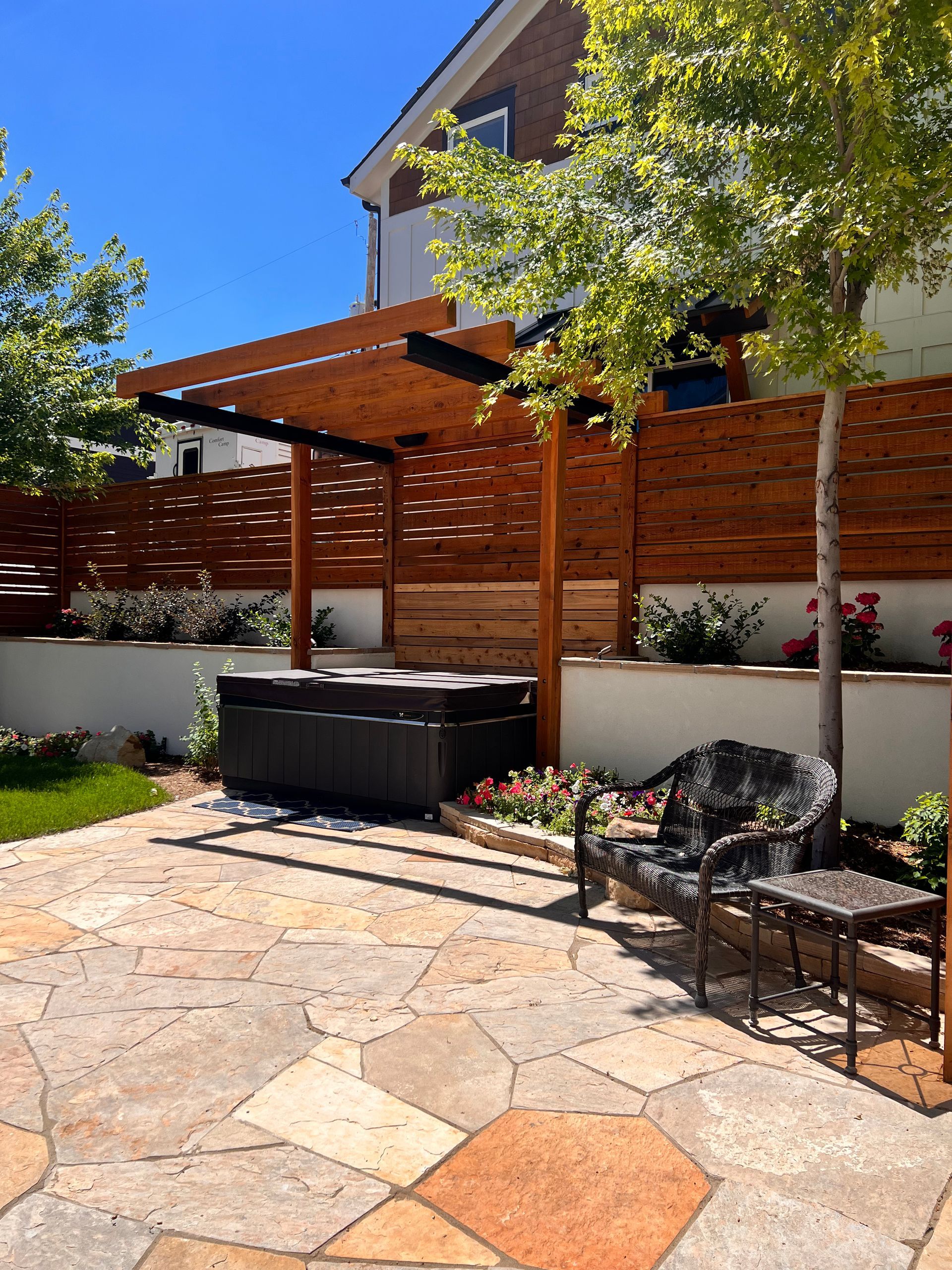 Full remodel of front and back yard building on home design. New Colorado buff flagstone and stripstone, plants, trees, sprinklers, and grass. Lafayette, CO 2019-2022