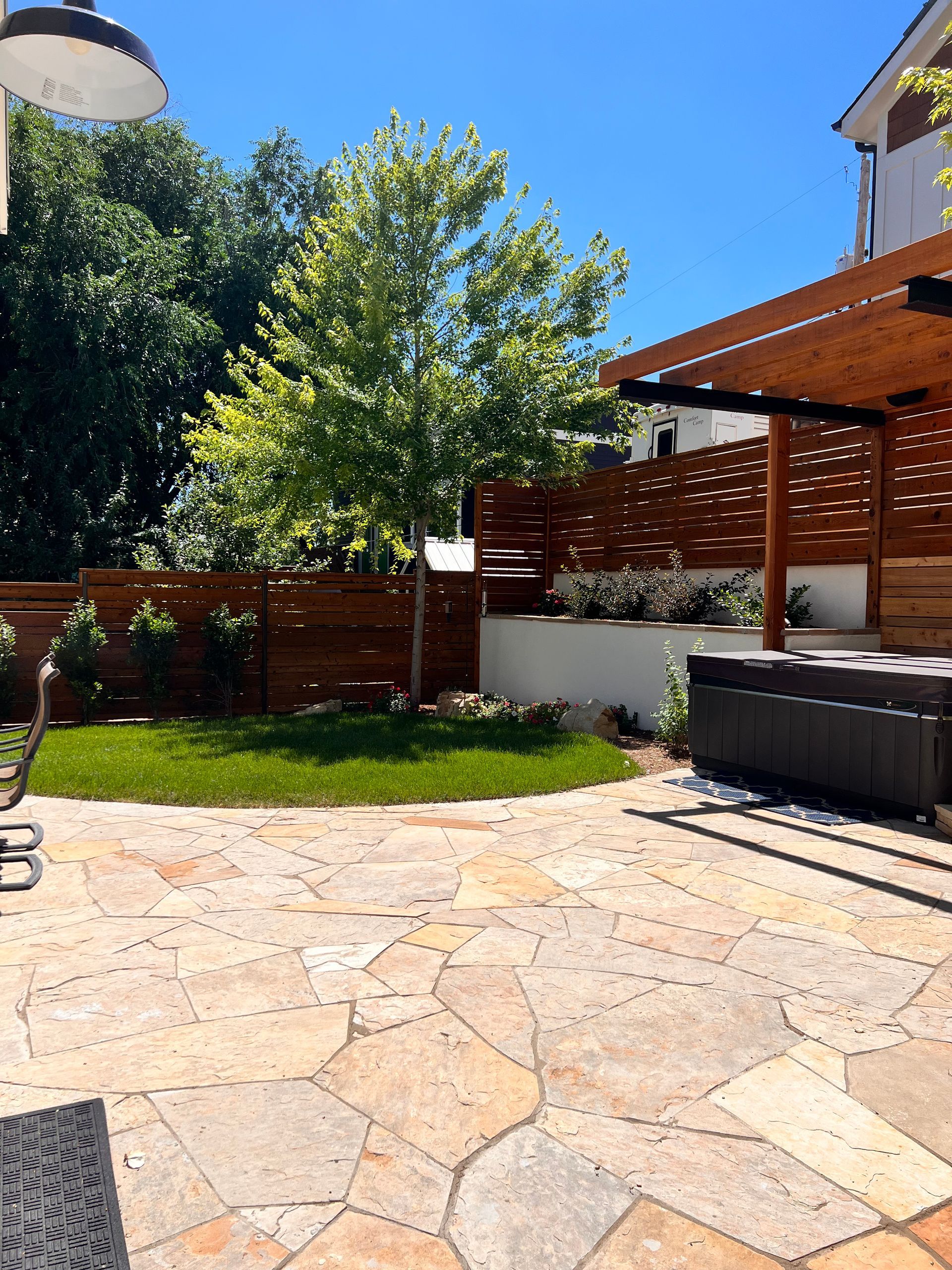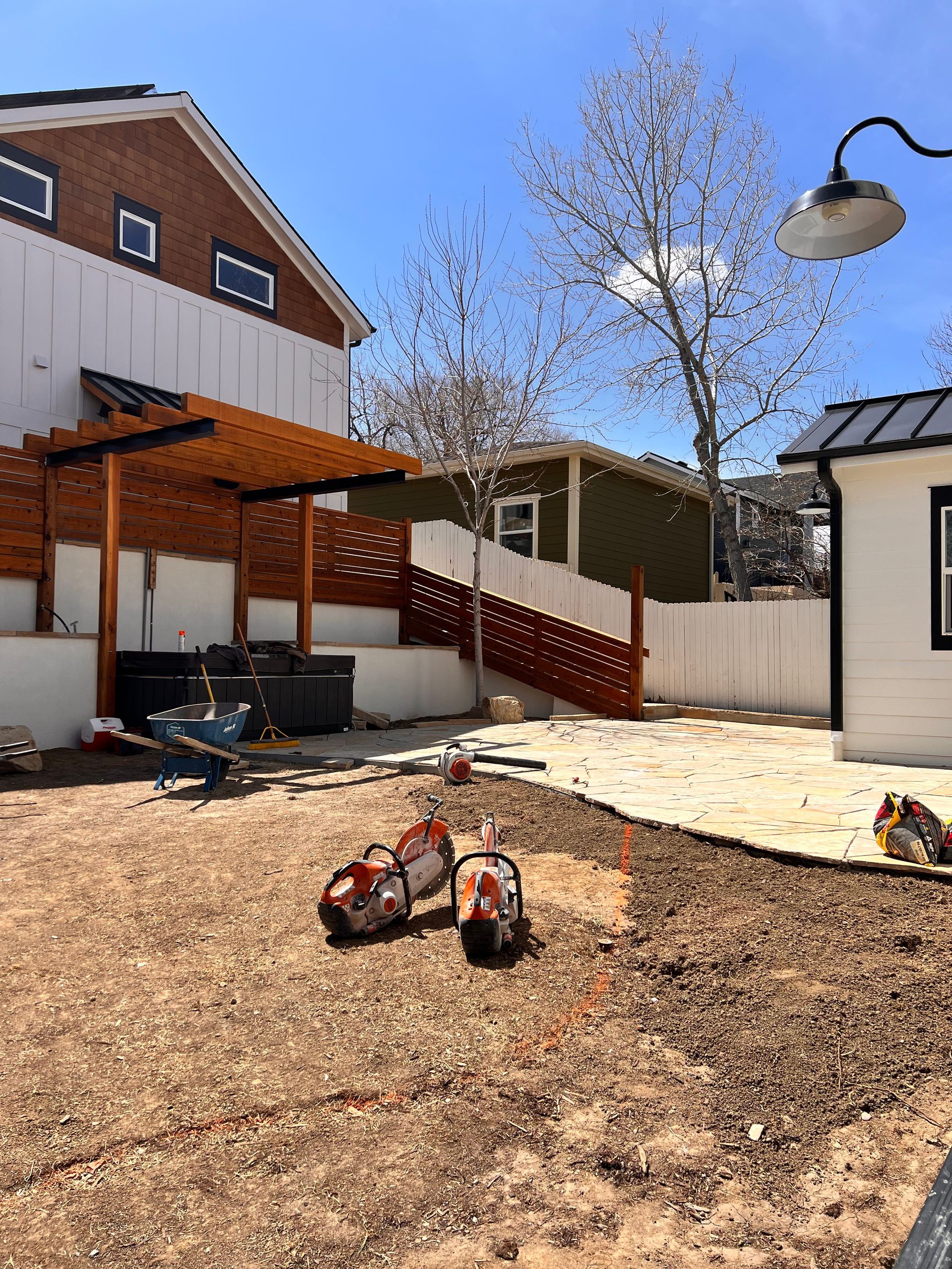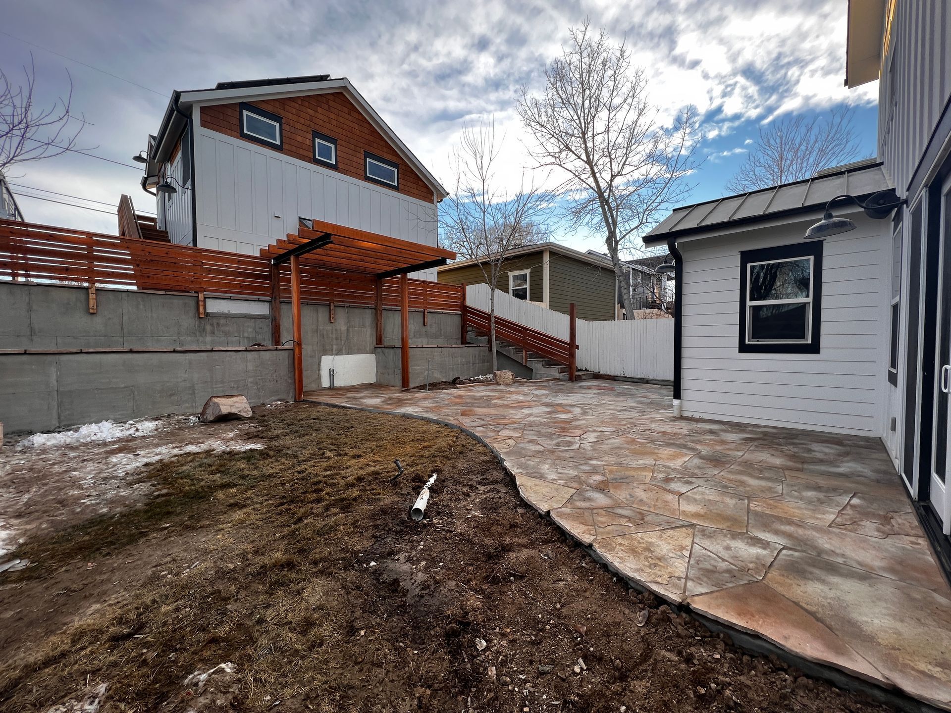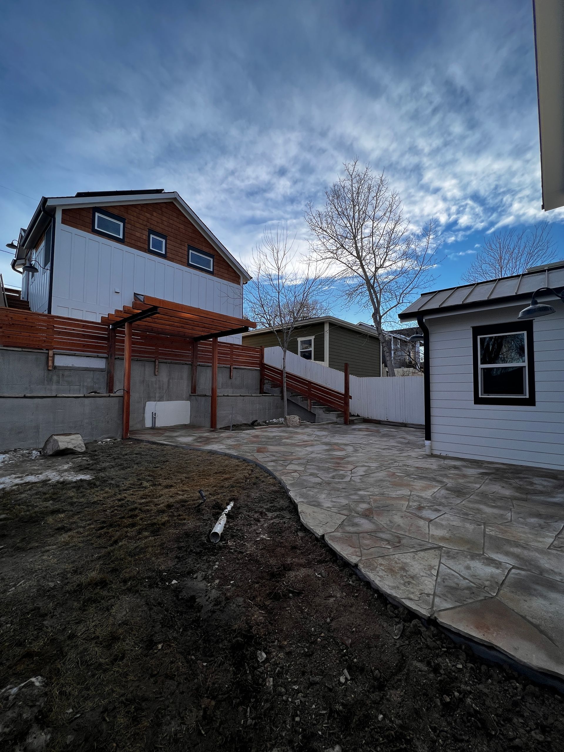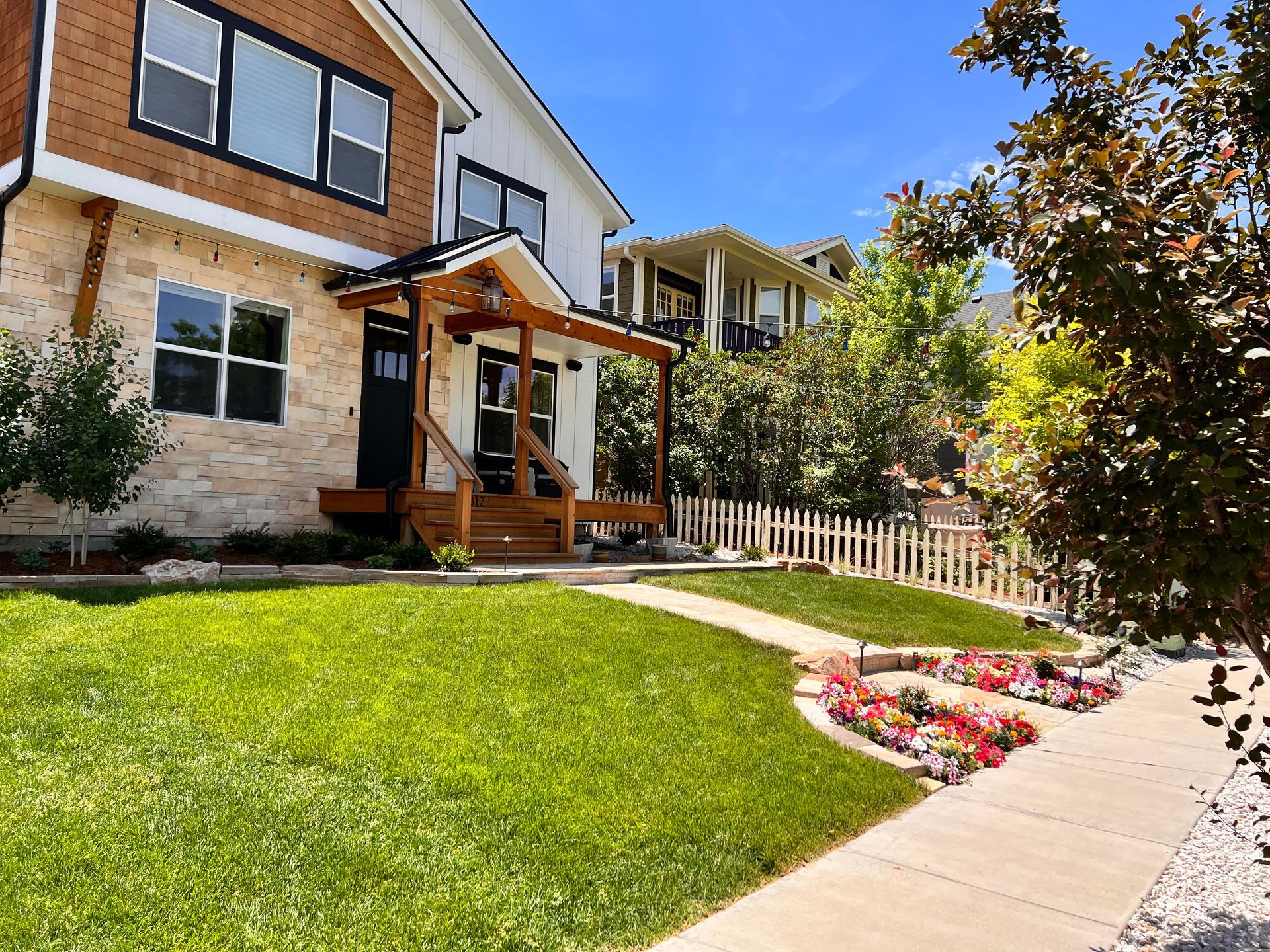 Full remodel of front and back yard building on home design. New Colorado buff flagstone and stripstone, plants, trees, sprinklers, and grass. Lafayette, CO 2019-2022