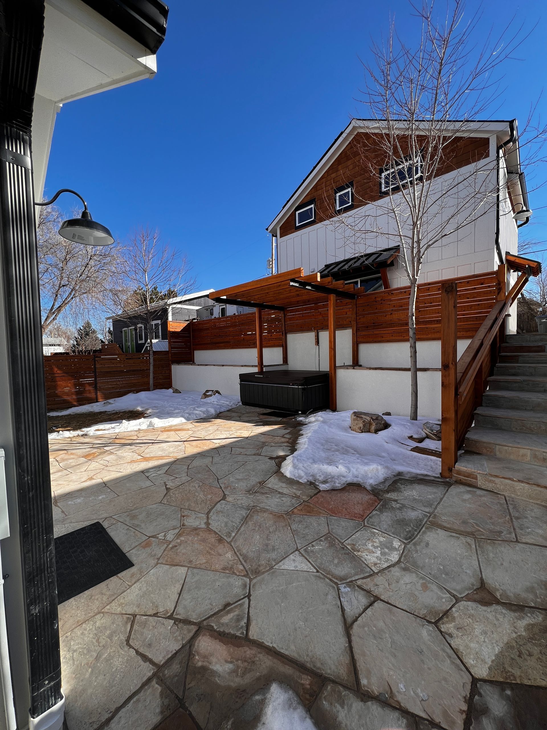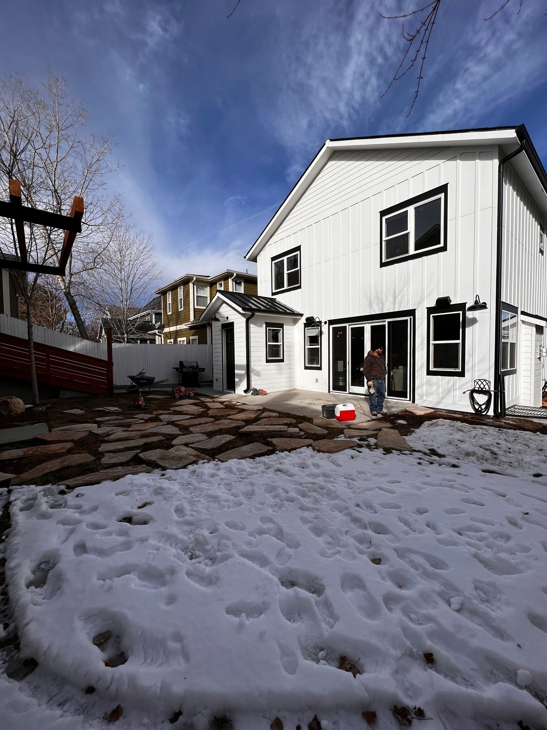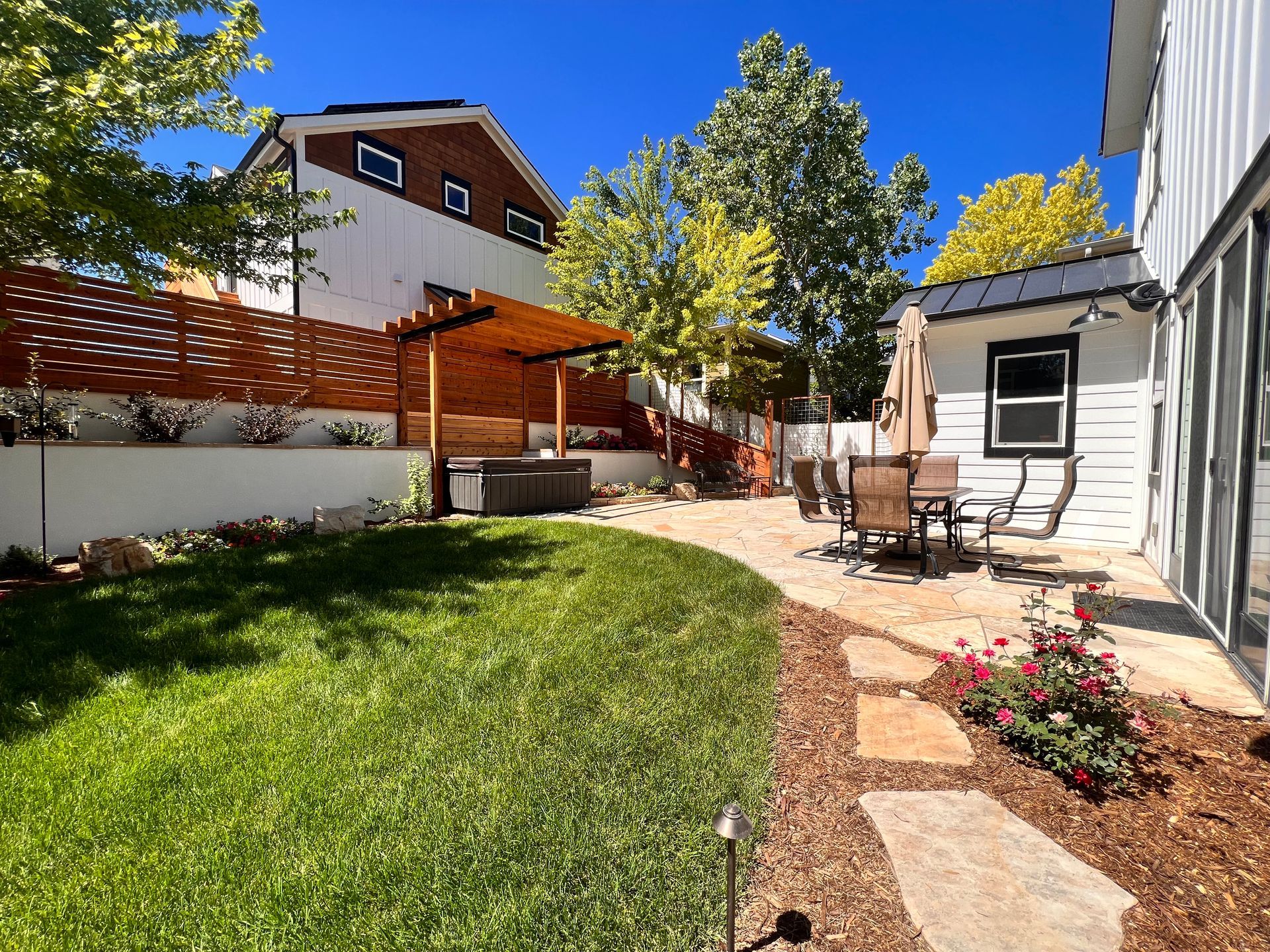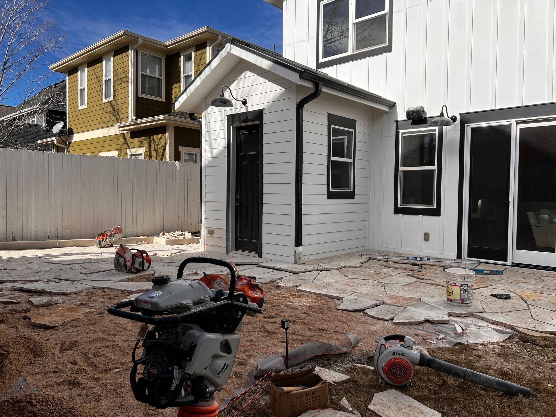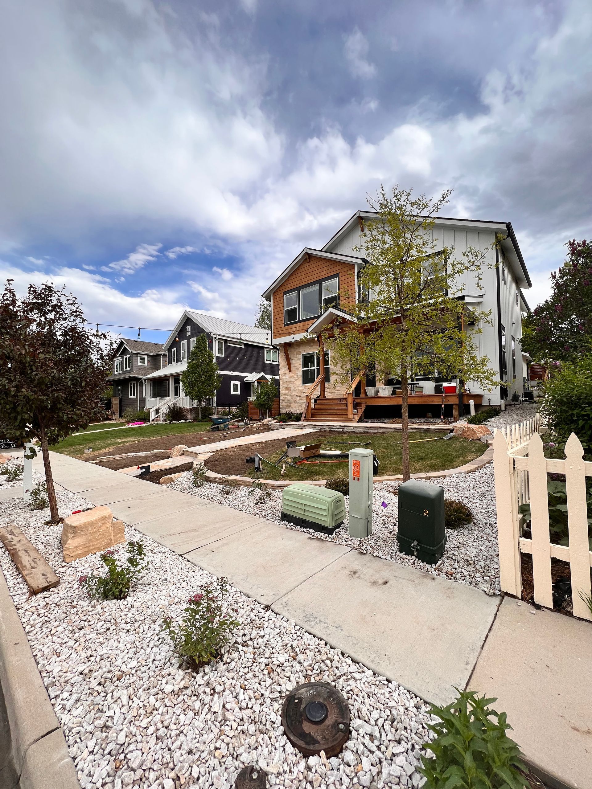 Full remodel of front and back yard building on home design. New Colorado buff flagstone and stripstone, plants, trees, sprinklers, and grass. Lafayette, CO 2019-2022