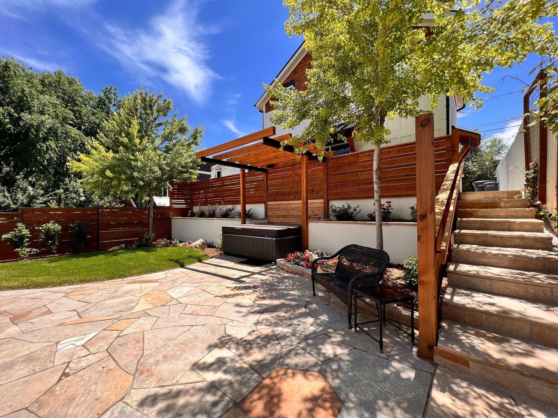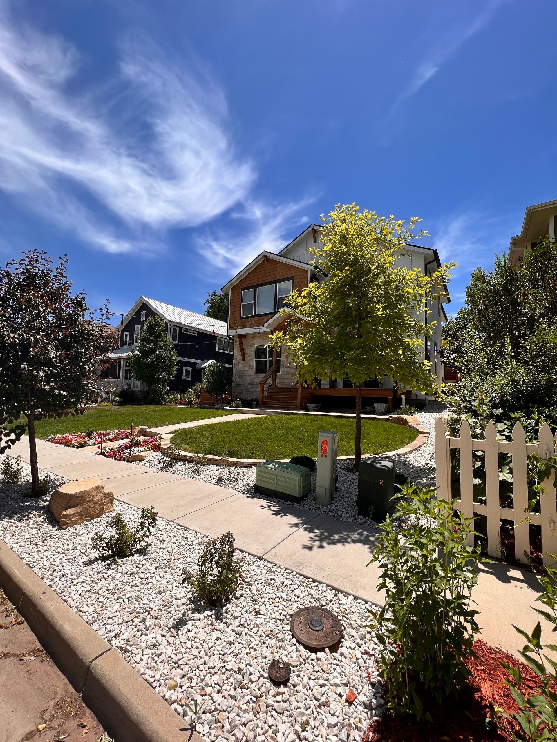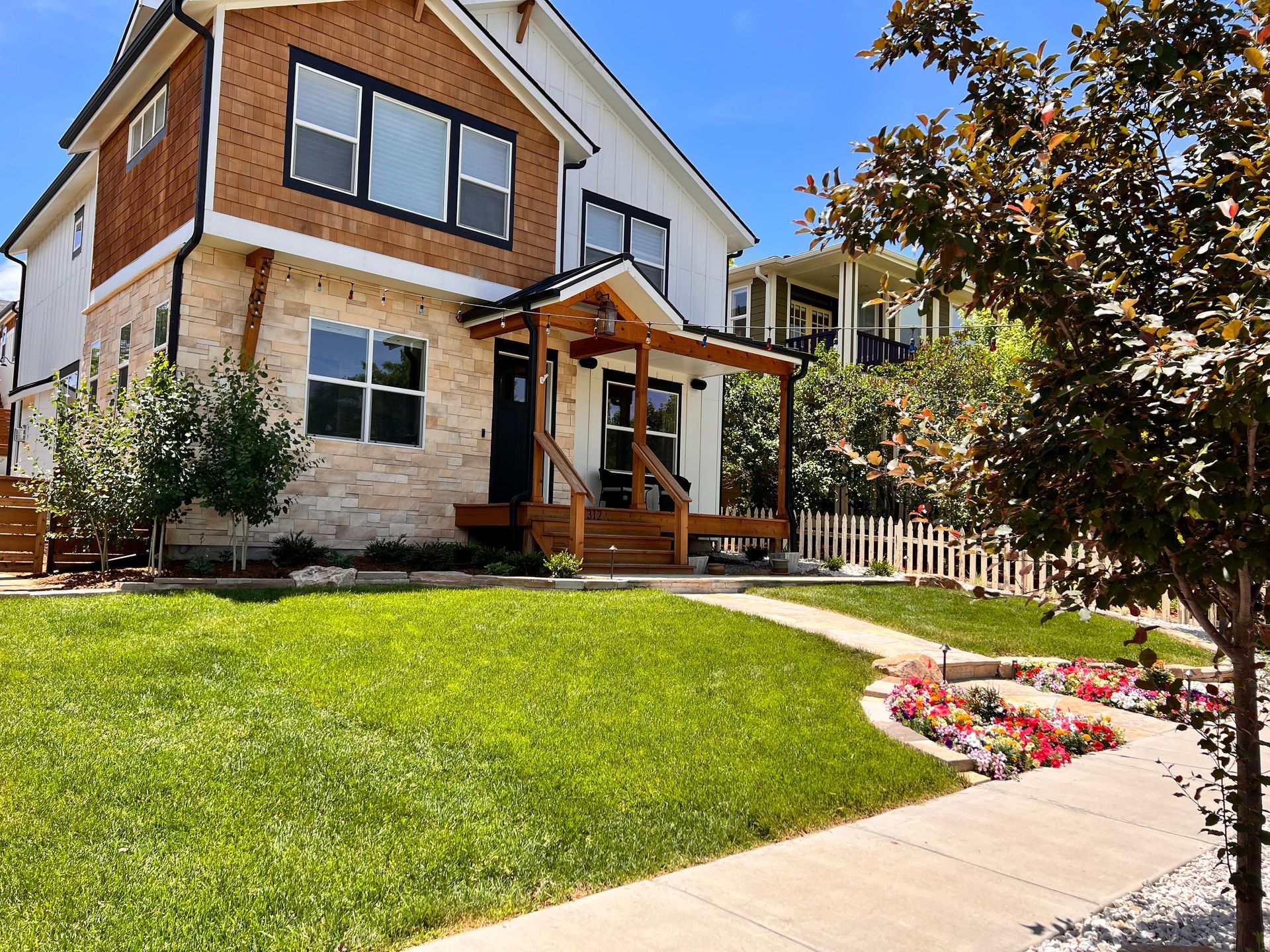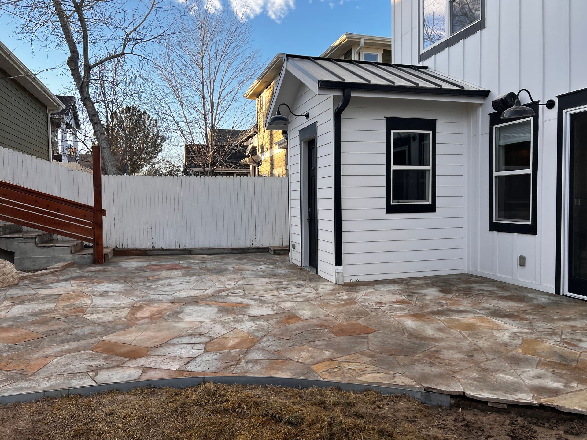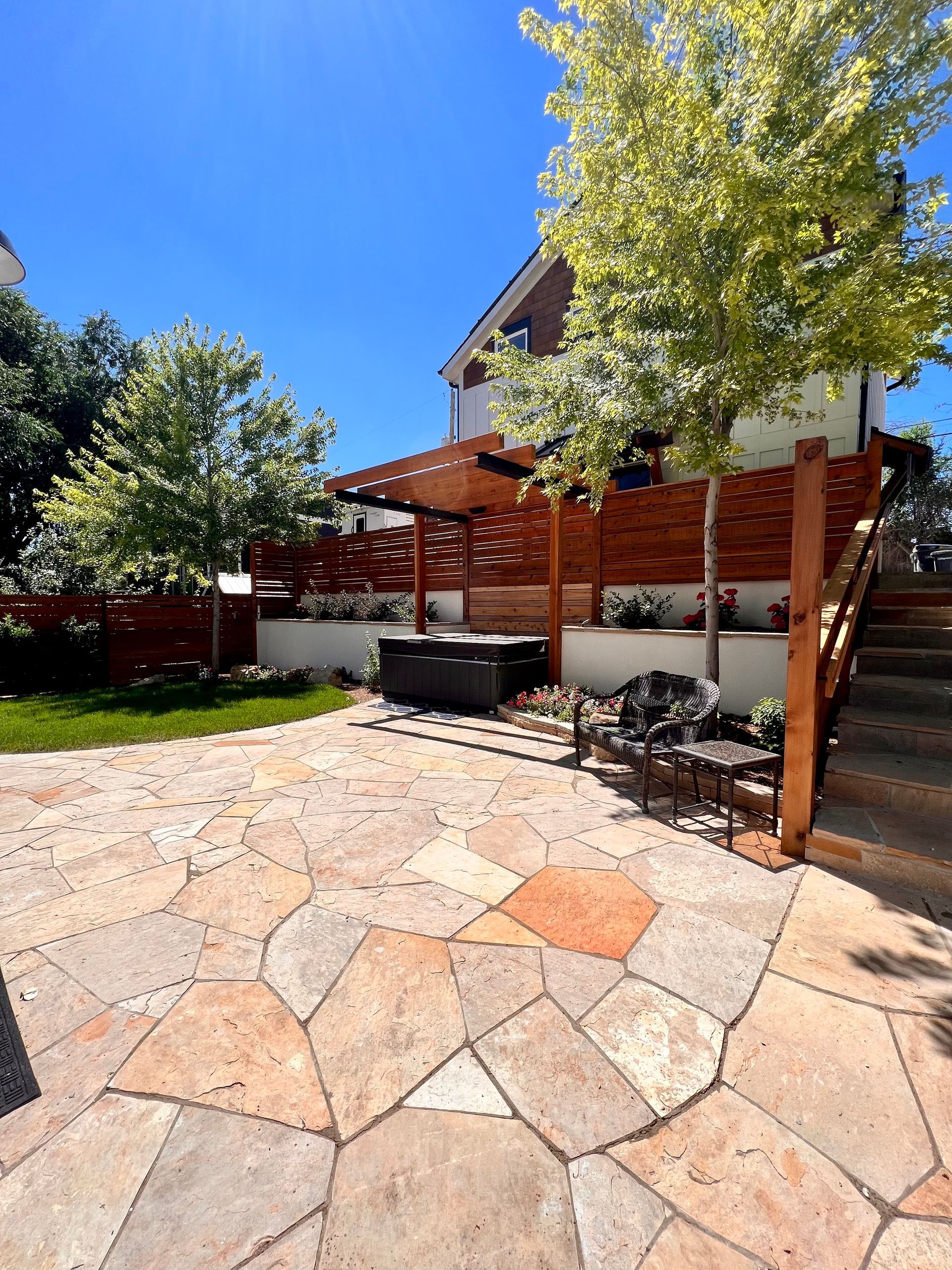 Full remodel of front and back yard building on home design. New Colorado buff flagstone and stripstone, plants, trees, sprinklers, and grass. Lafayette, CO 2019-2022