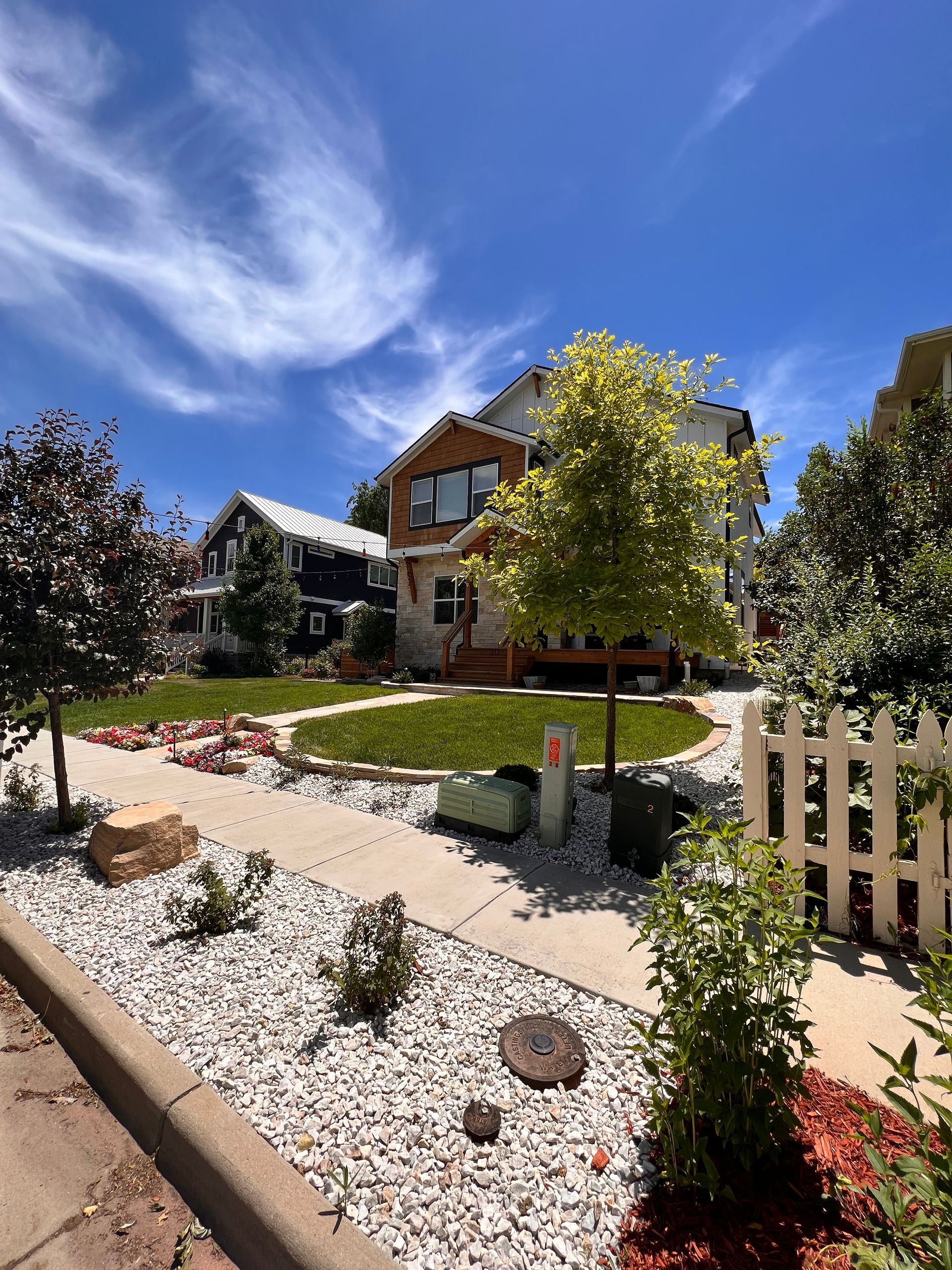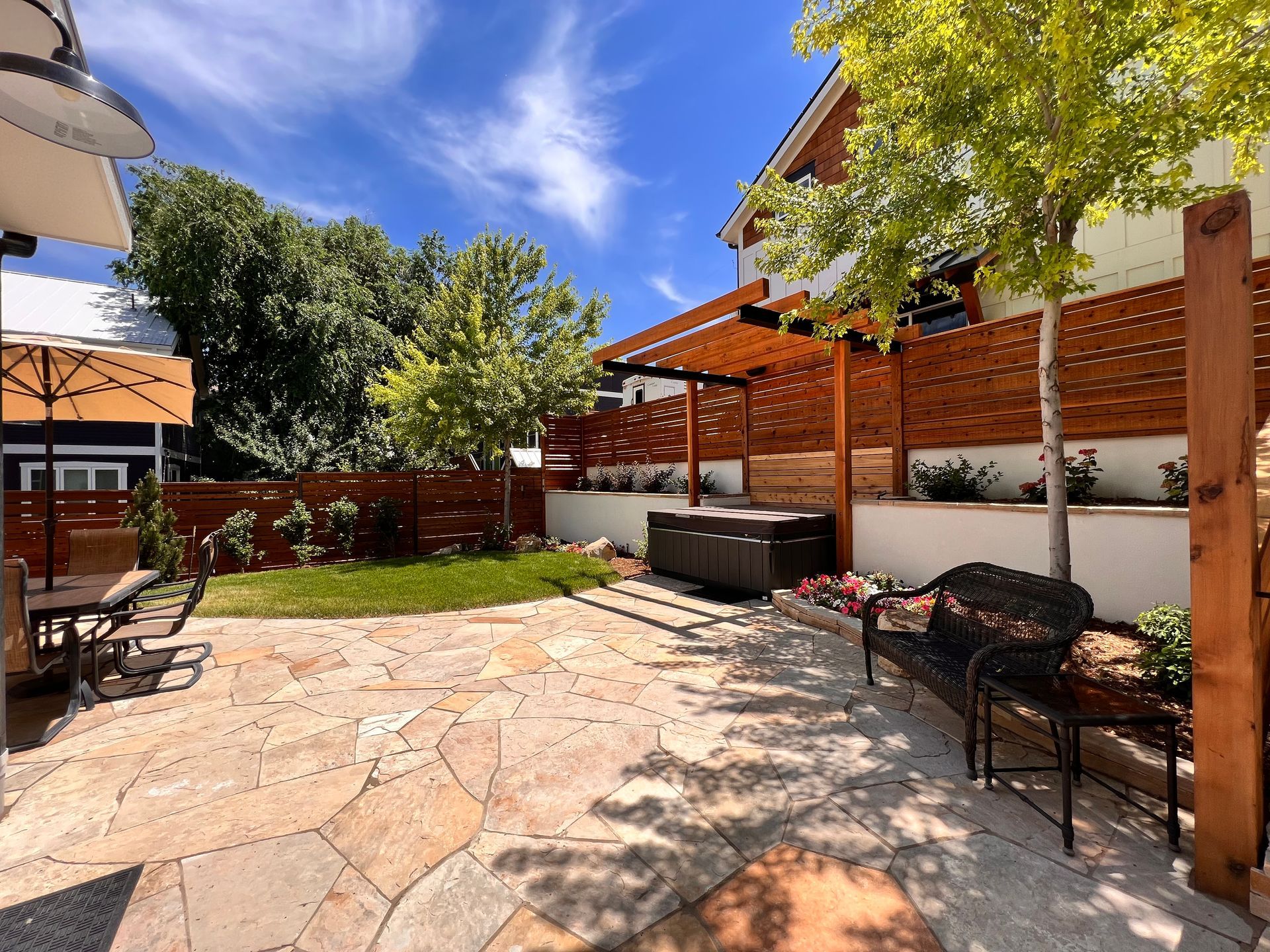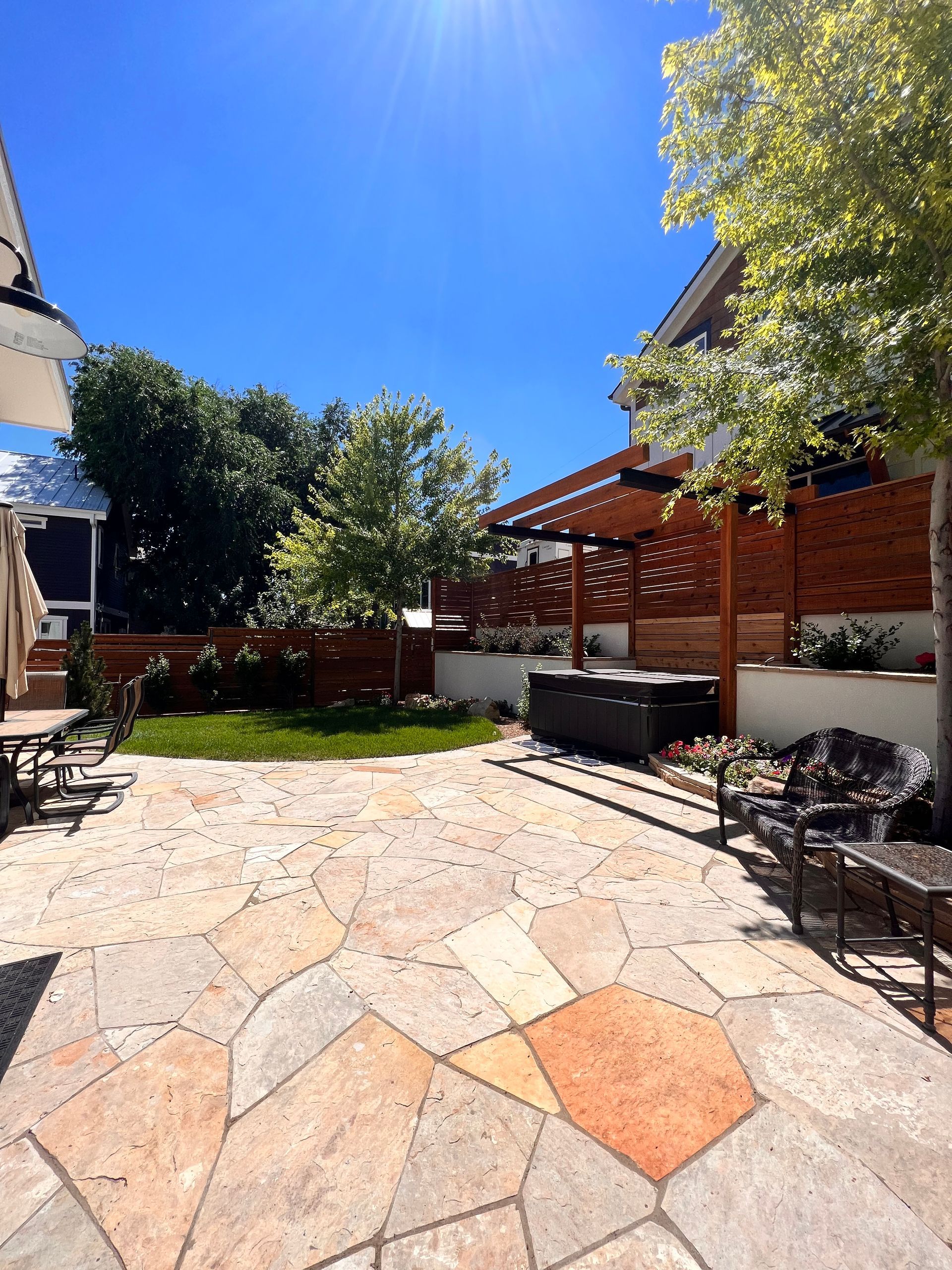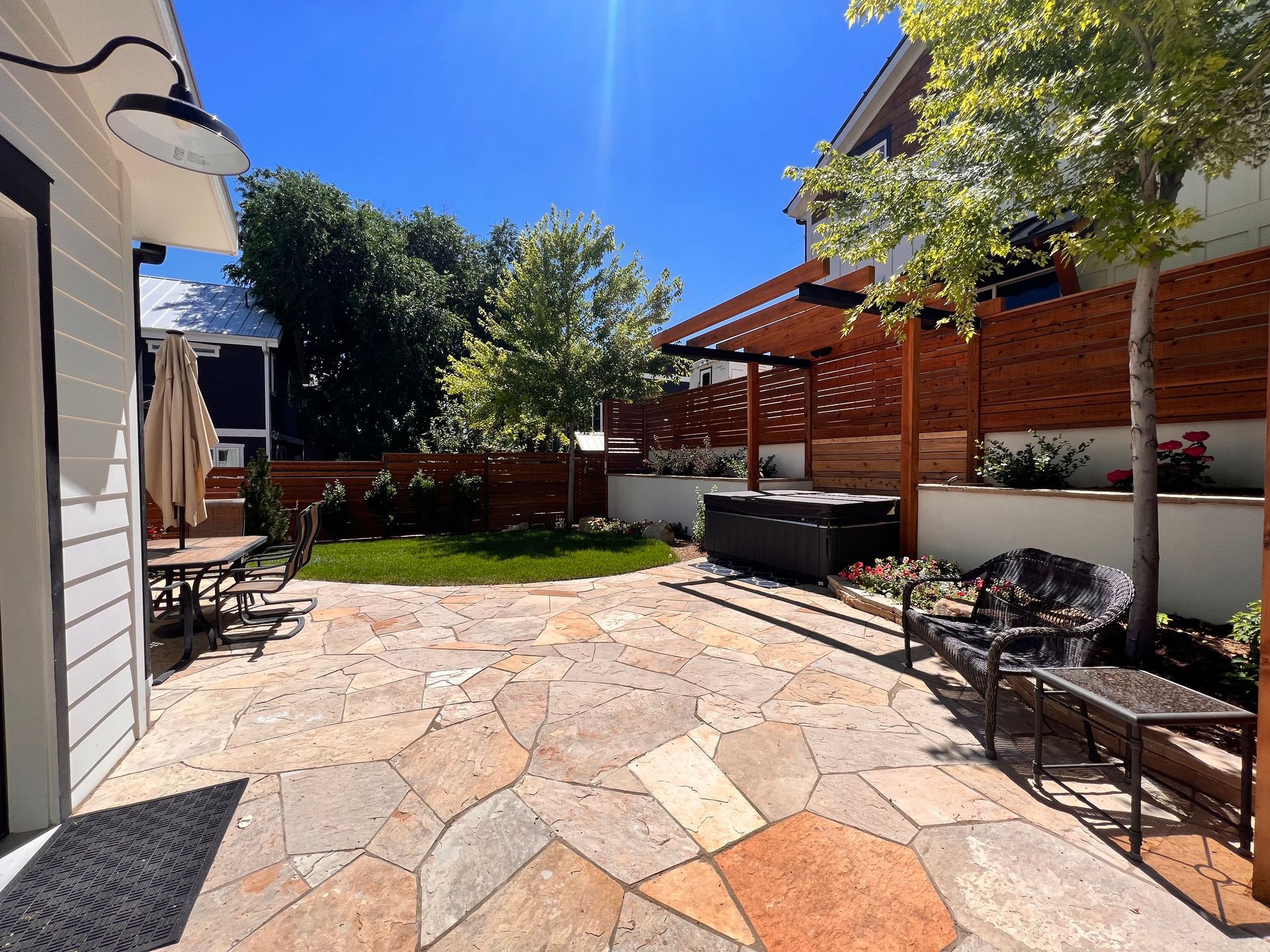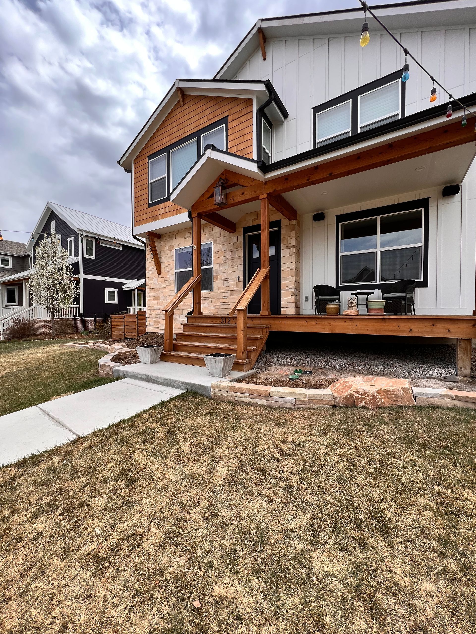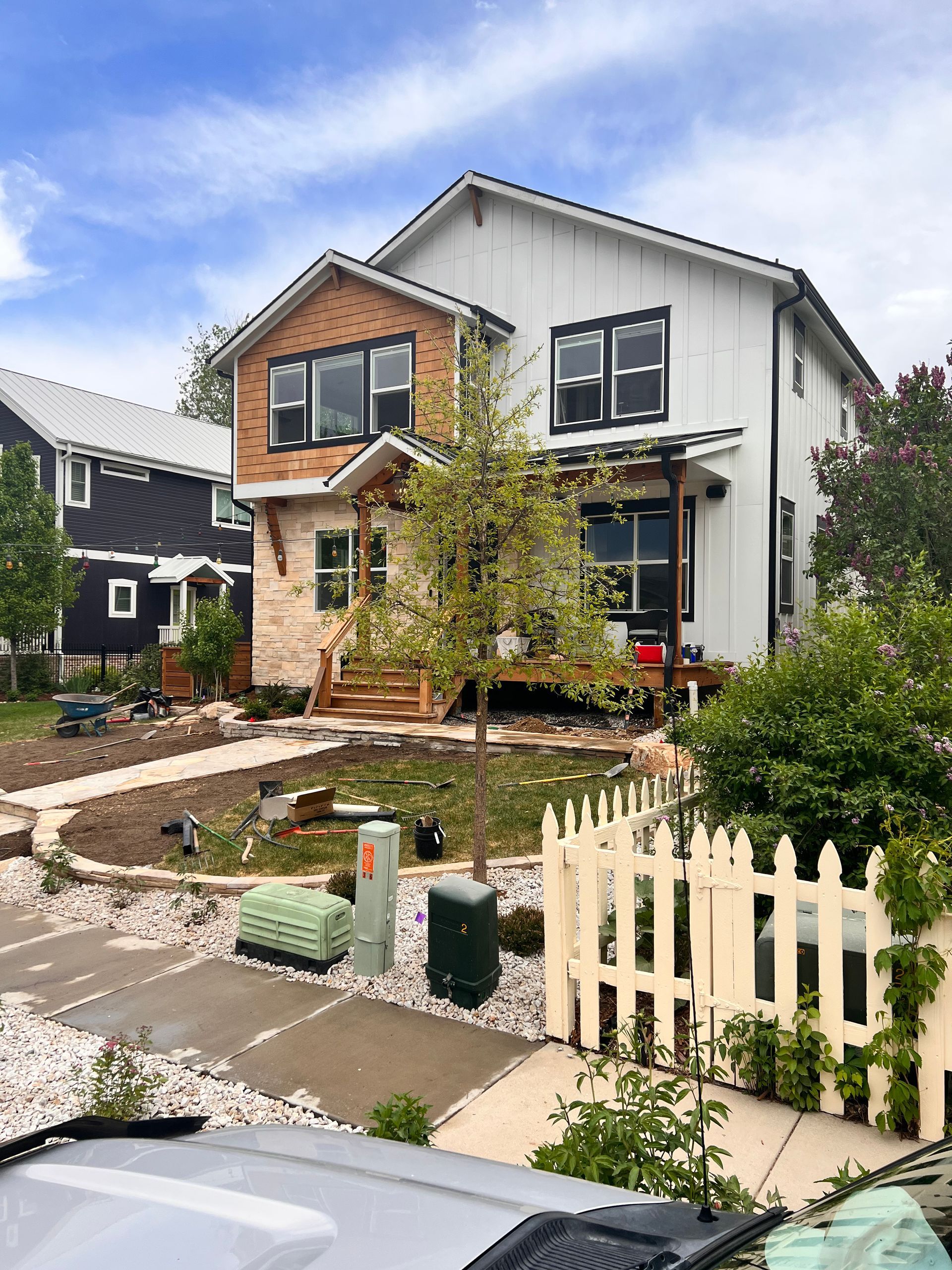 Full remodel of front and back yard building on home design. New Colorado buff flagstone and stripstone, plants, trees, sprinklers, and grass. Lafayette, CO 2019-2022