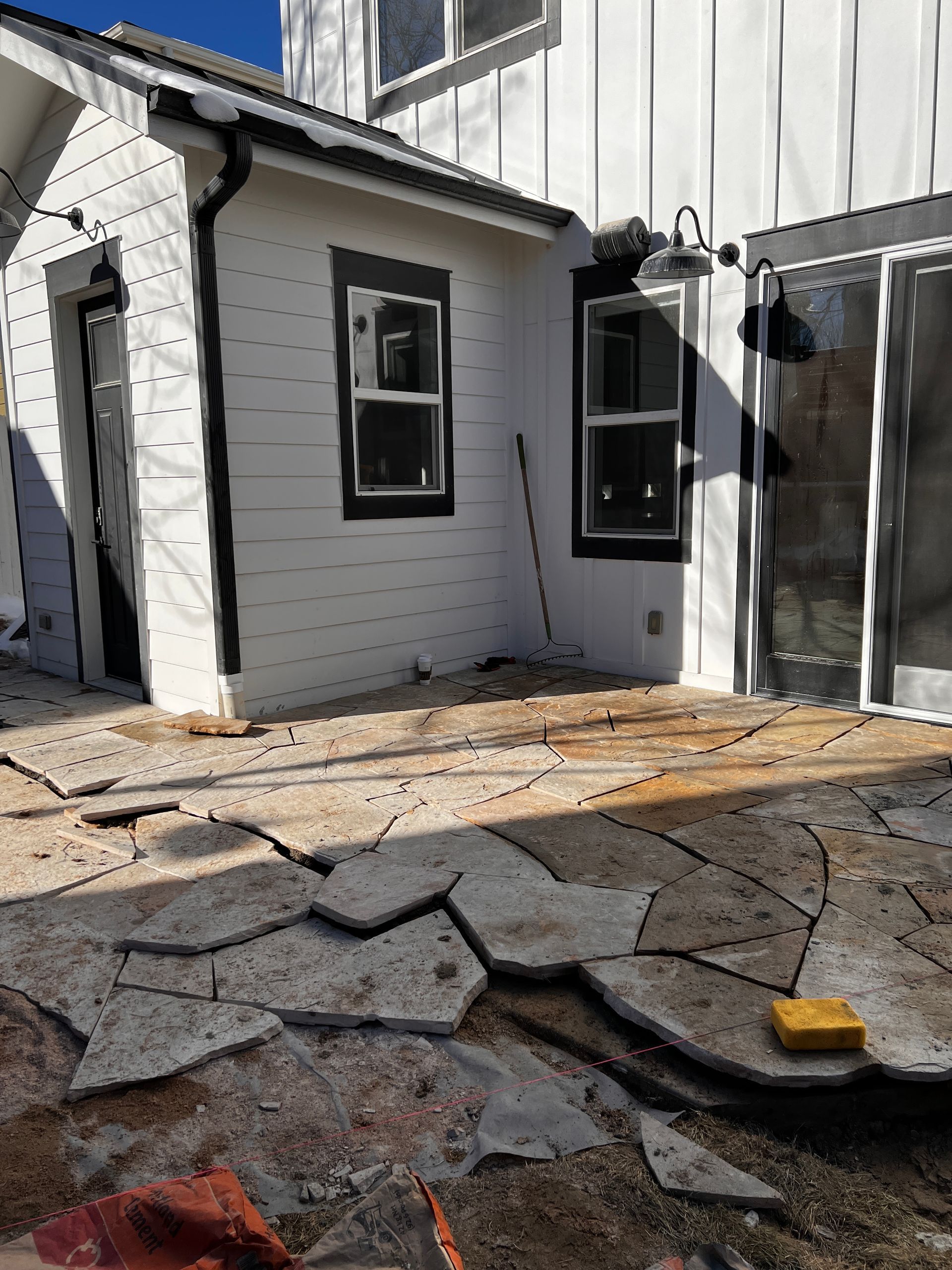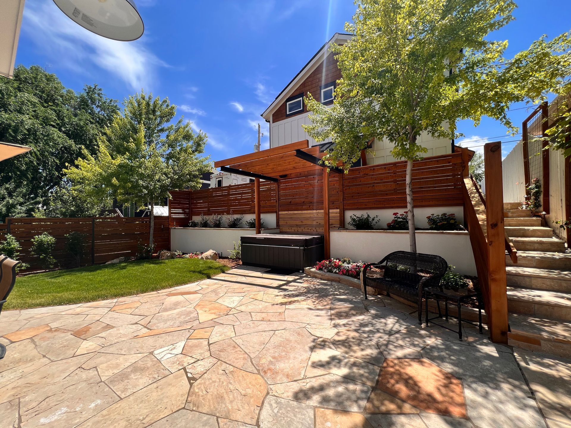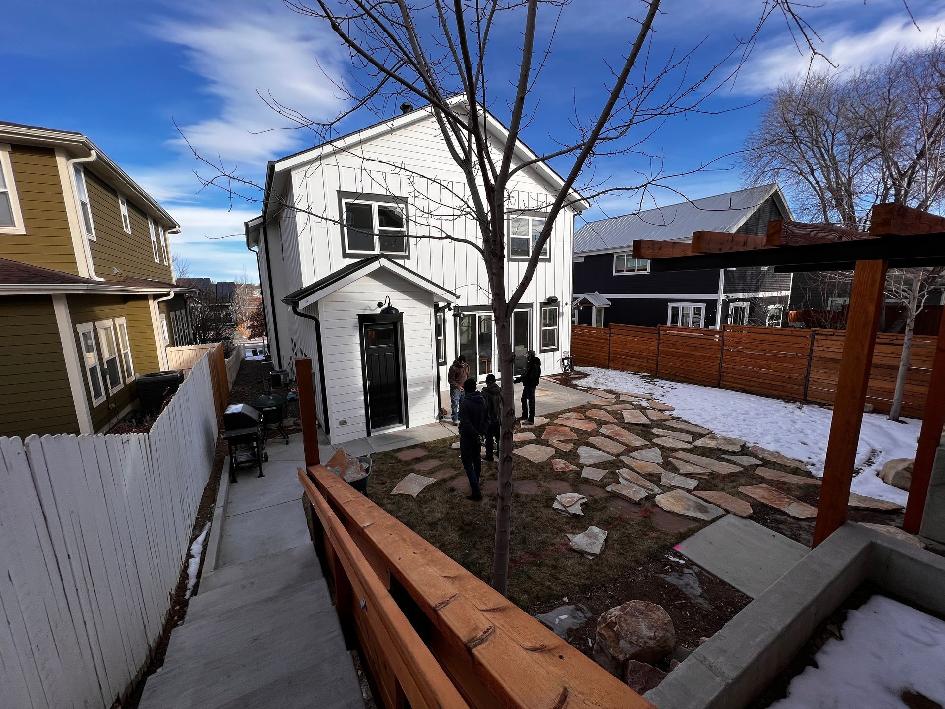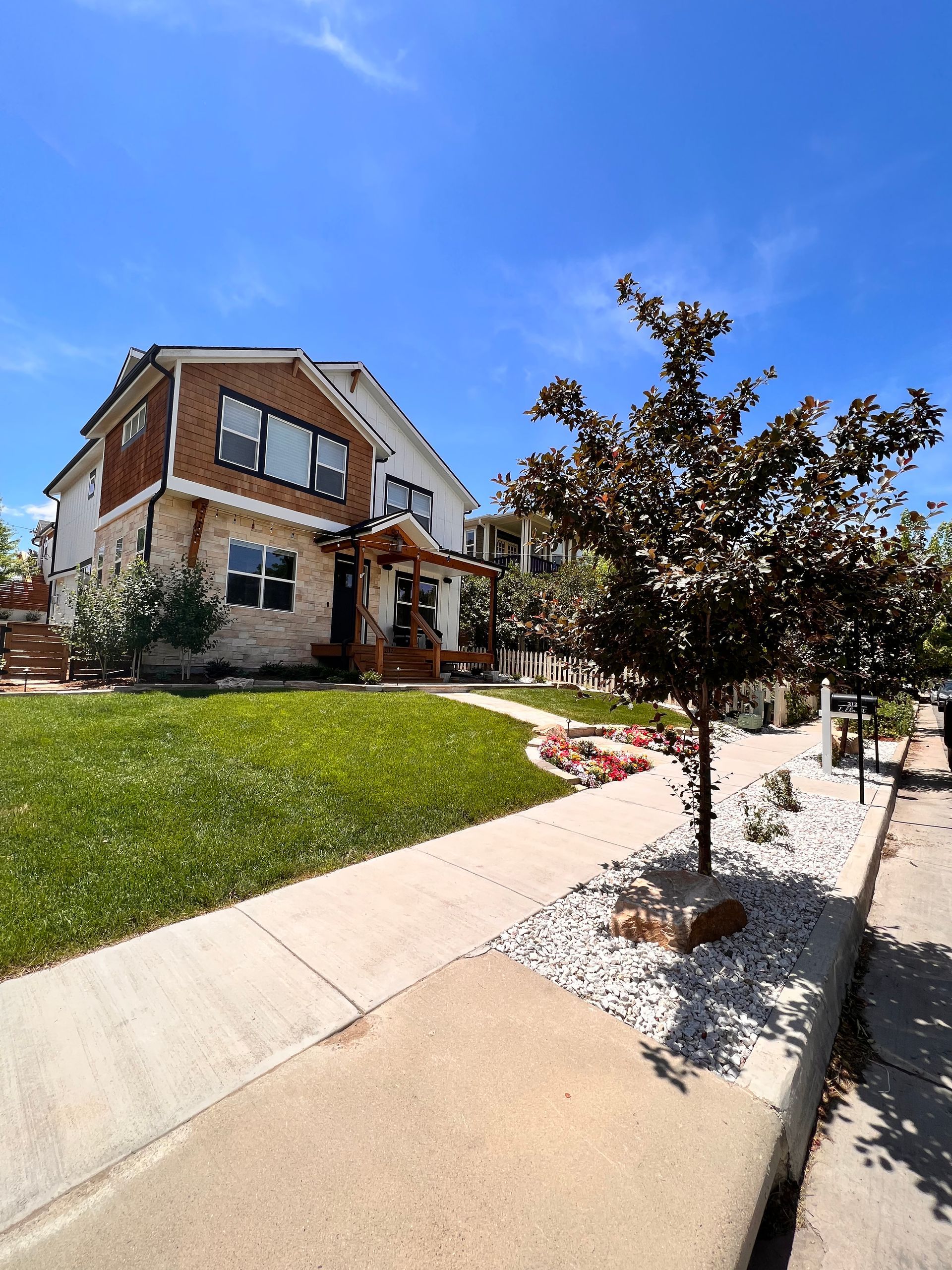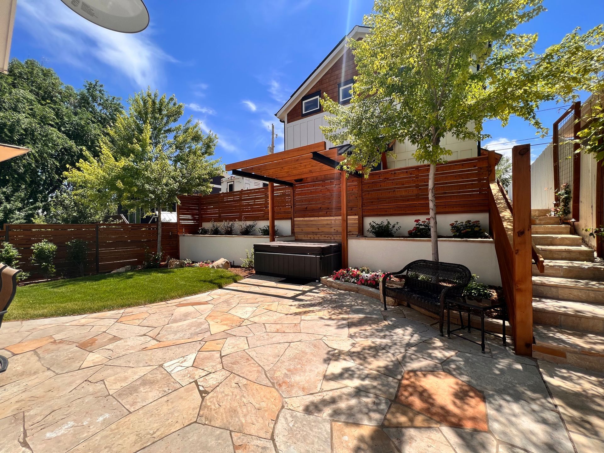 Full remodel of front and back yard building on home design. New Colorado buff flagstone and stripstone, plants, trees, sprinklers, and grass. Lafayette, CO 2019-2022