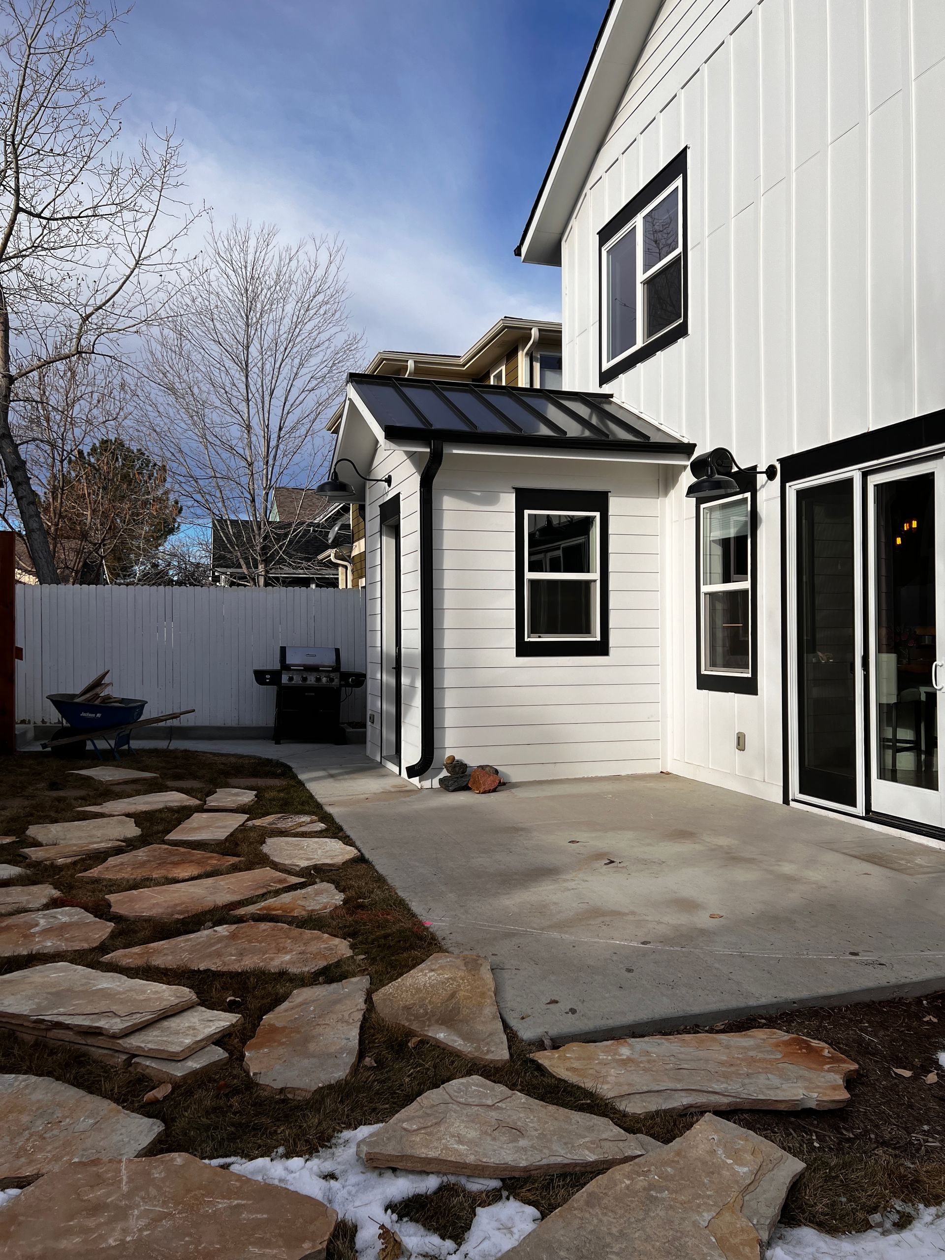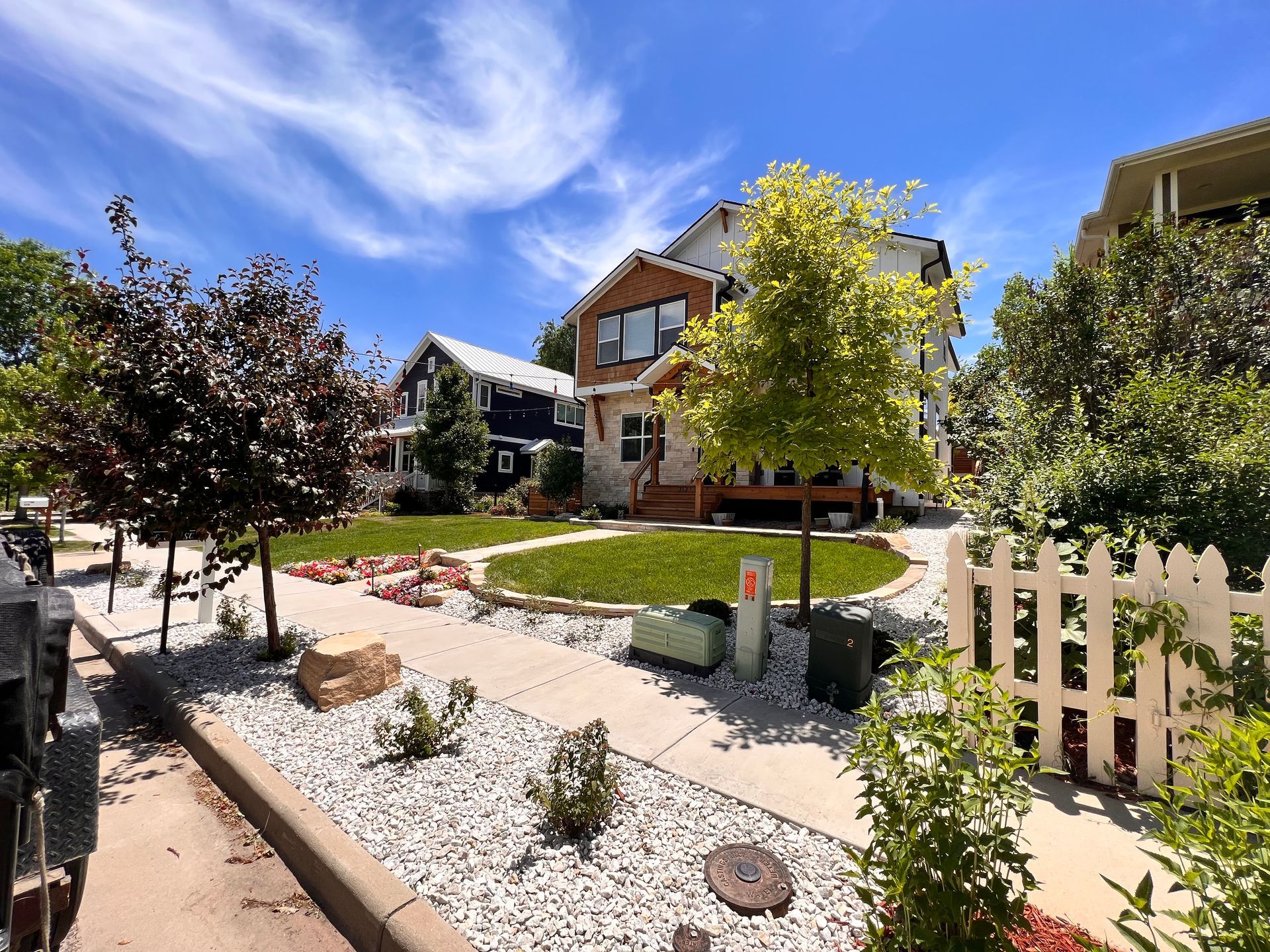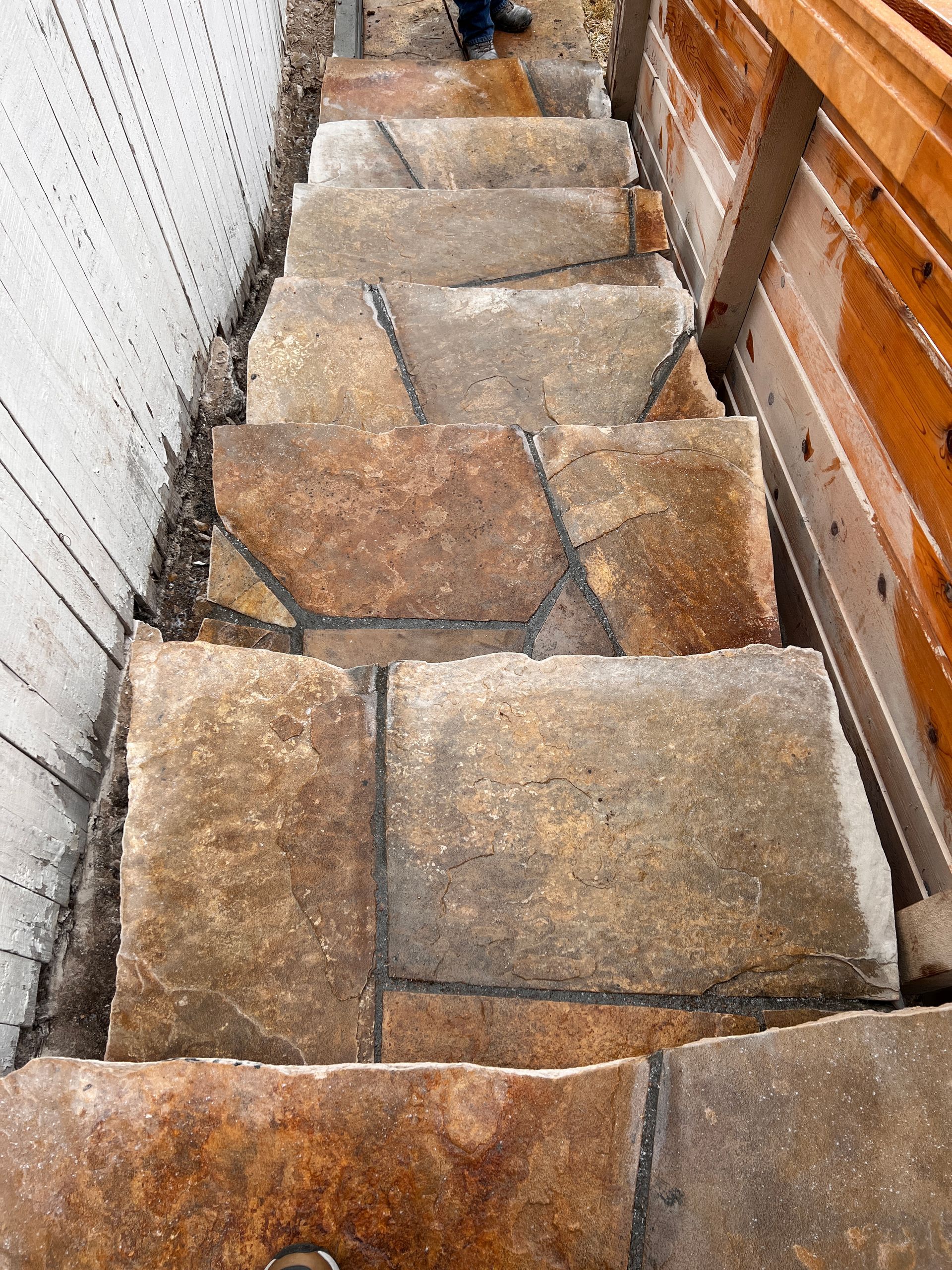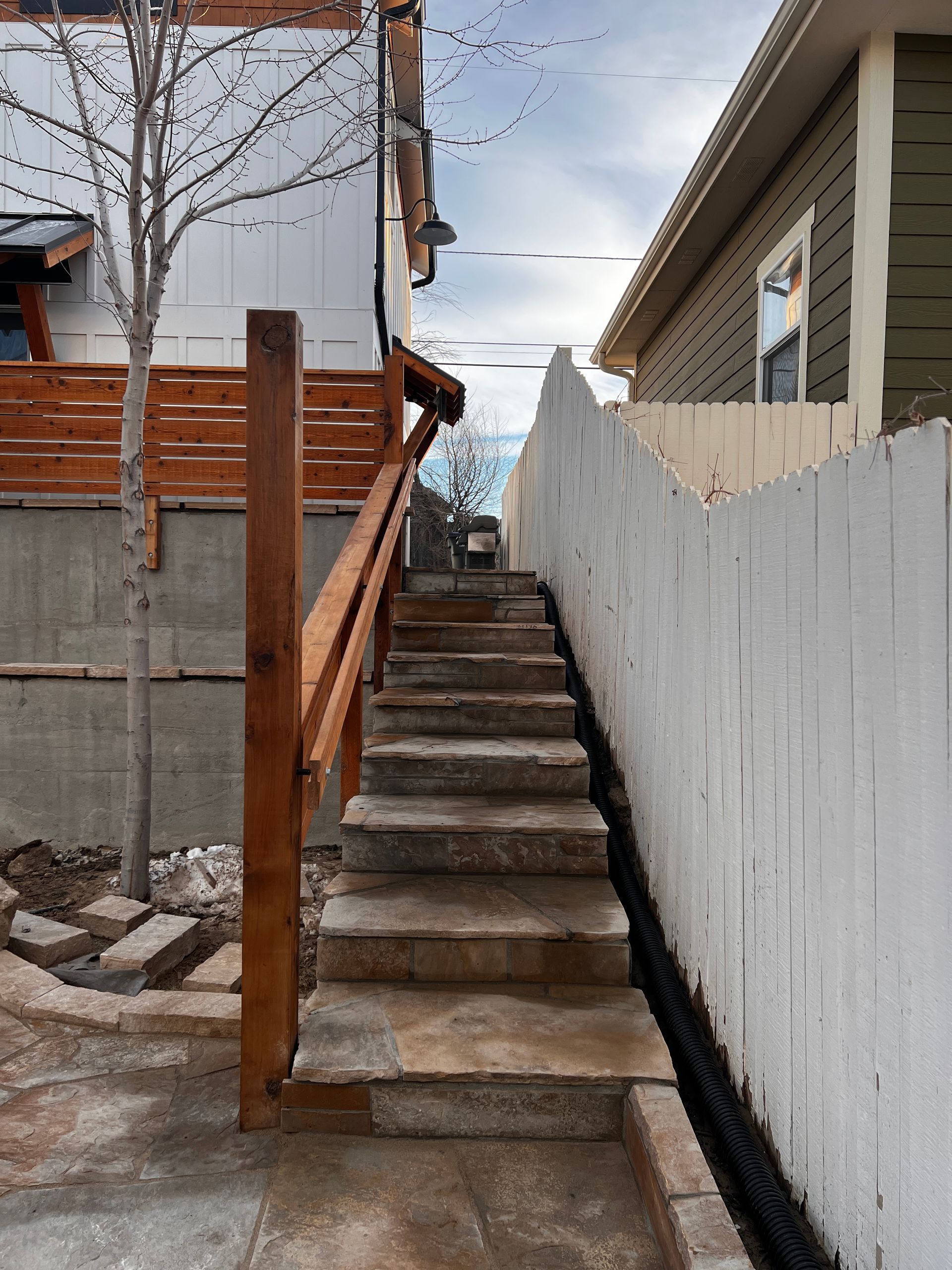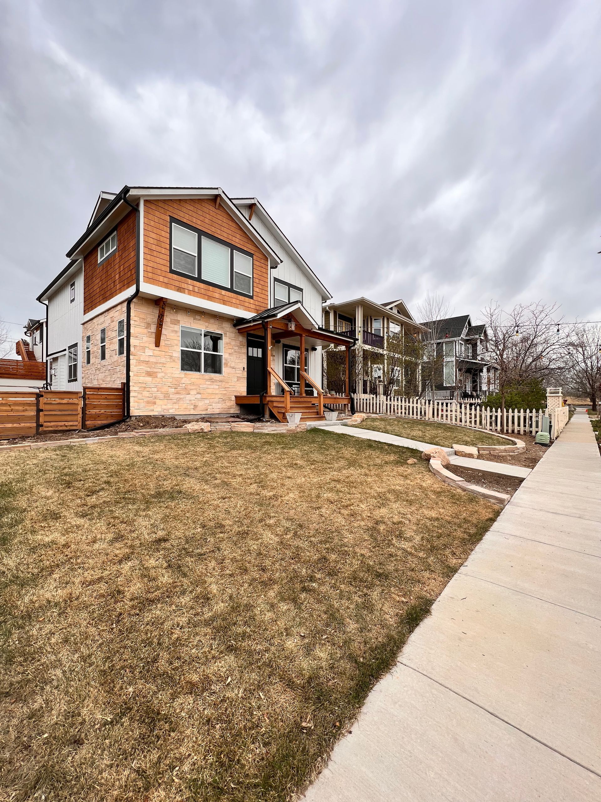 Full remodel of front and back yard building on home design. New Colorado buff flagstone and stripstone, plants, trees, sprinklers, and grass. Lafayette, CO 2019-2022
