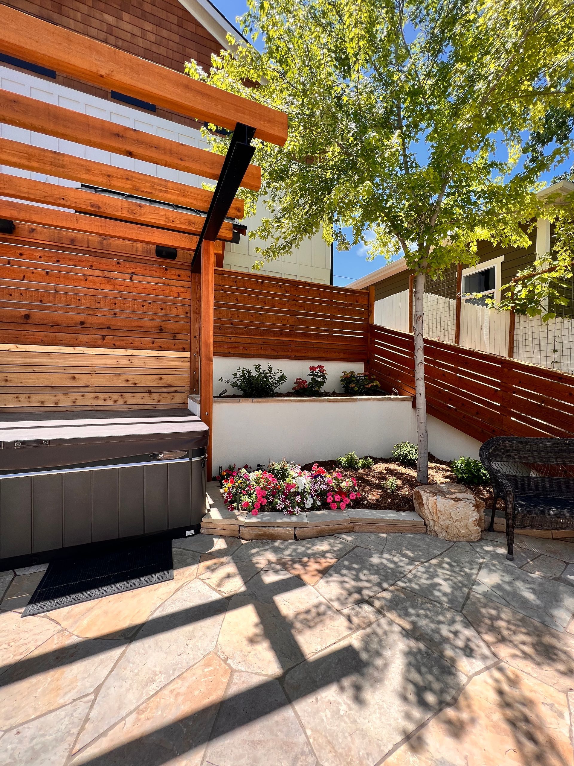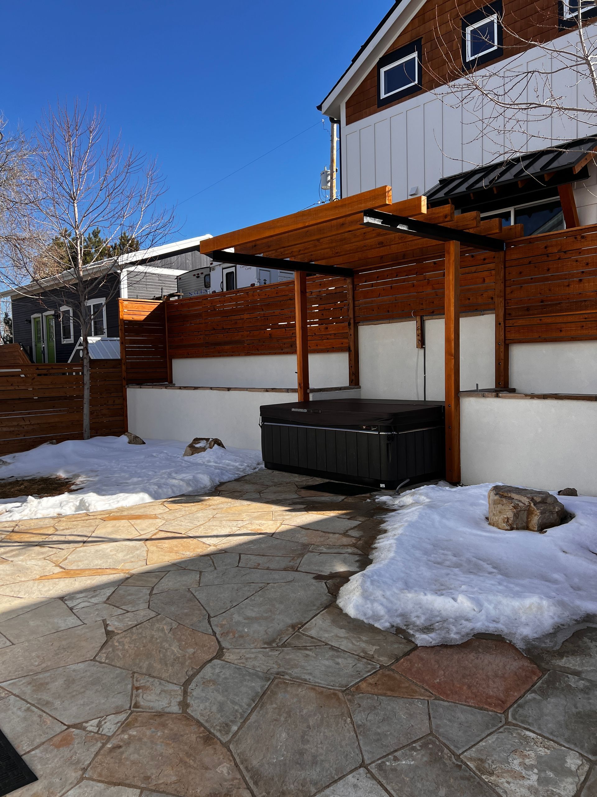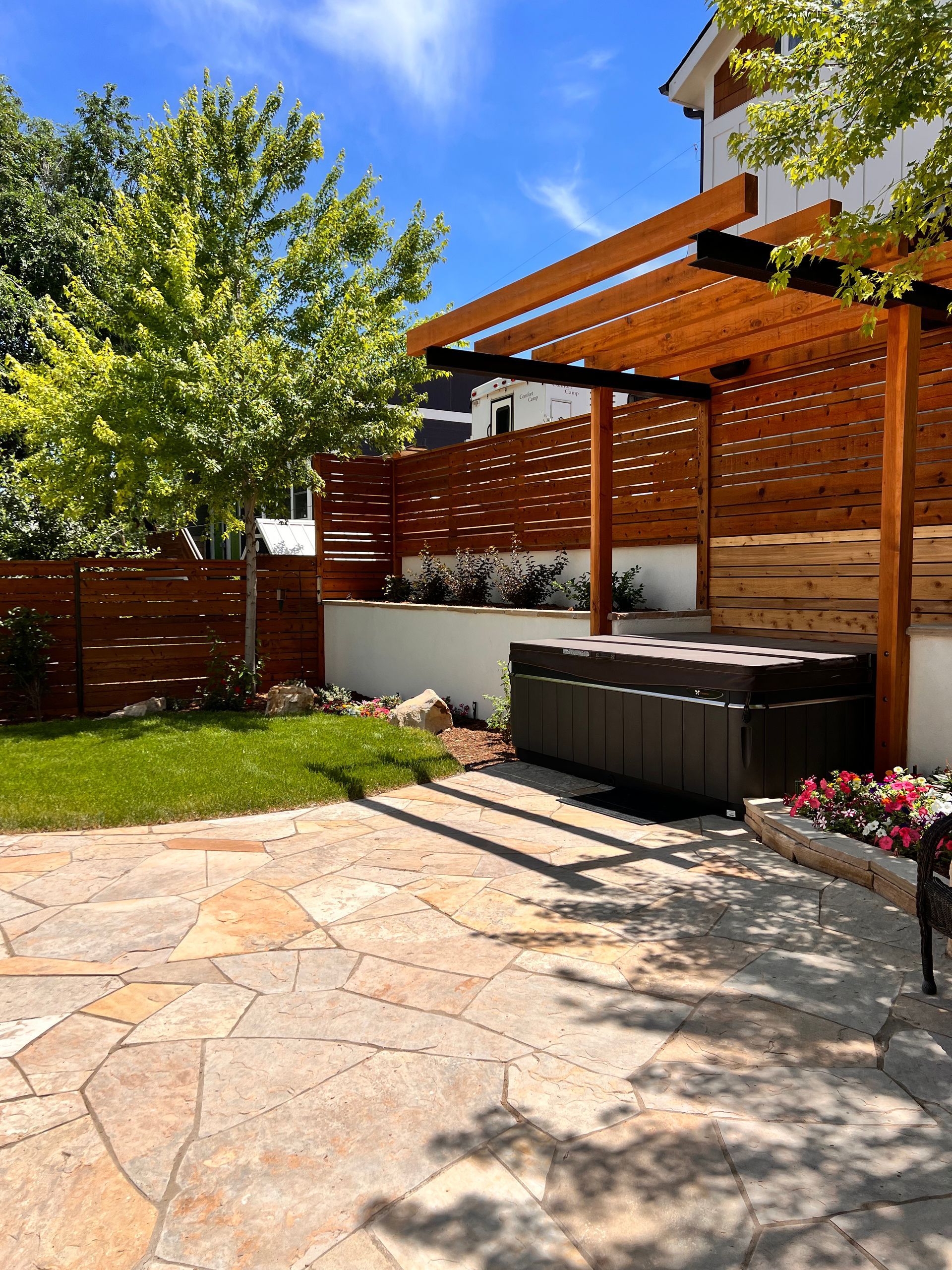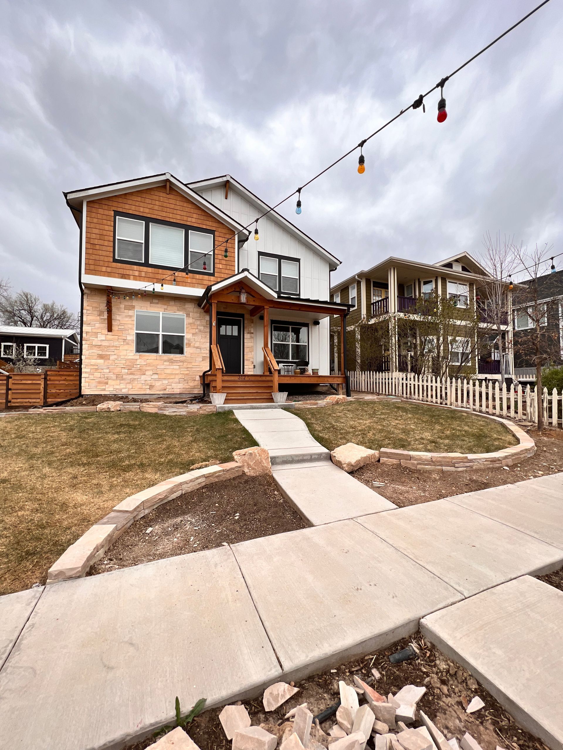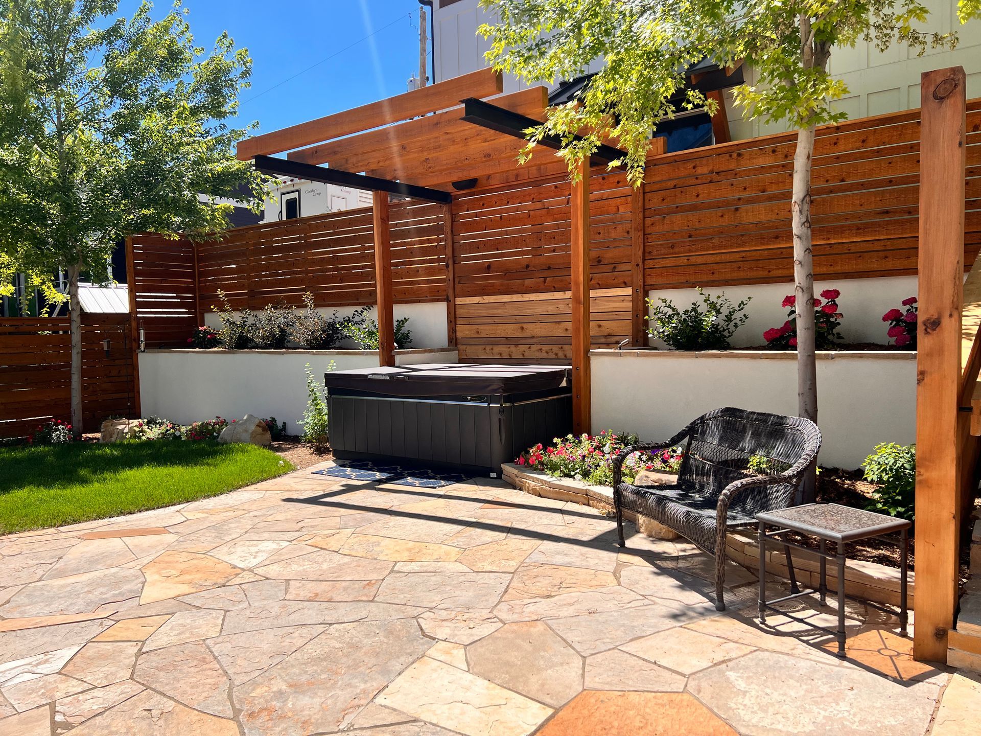 Full remodel of front and back yard building on home design. New Colorado buff flagstone and stripstone, plants, trees, sprinklers, and grass. Lafayette, CO 2019-2022