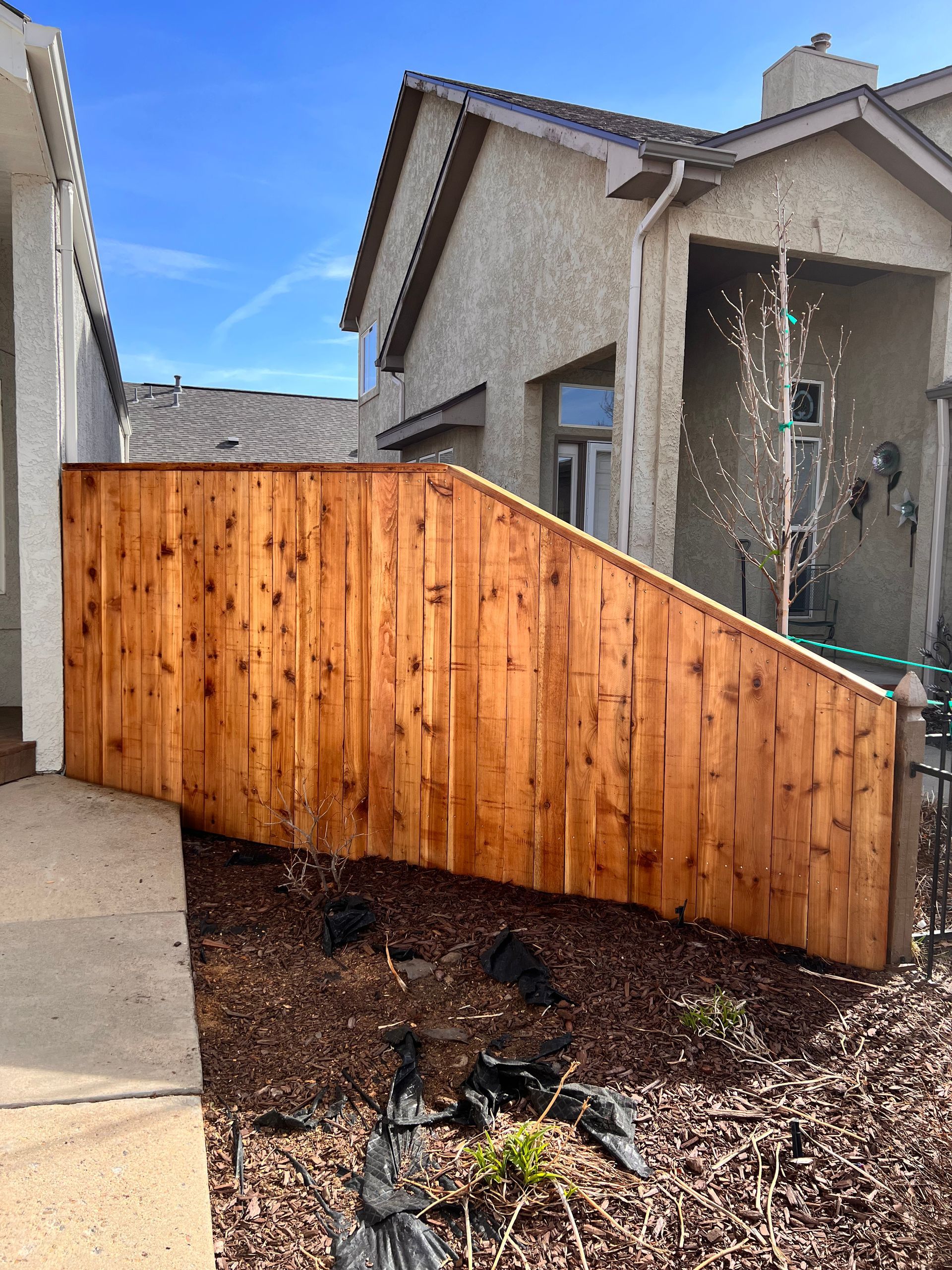 New fence rebuilt after Marshall fire with fire retardant spray to offer peace of mind. Louisville, CO 2022