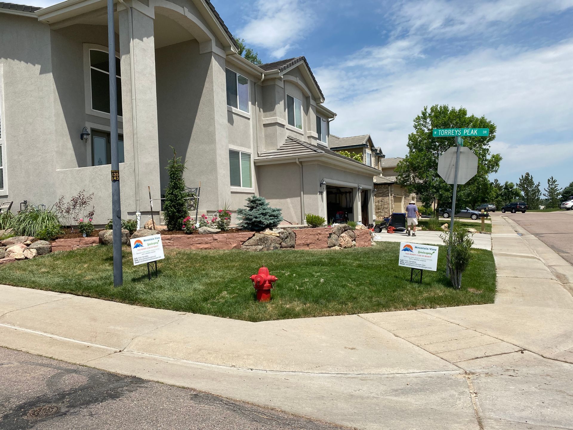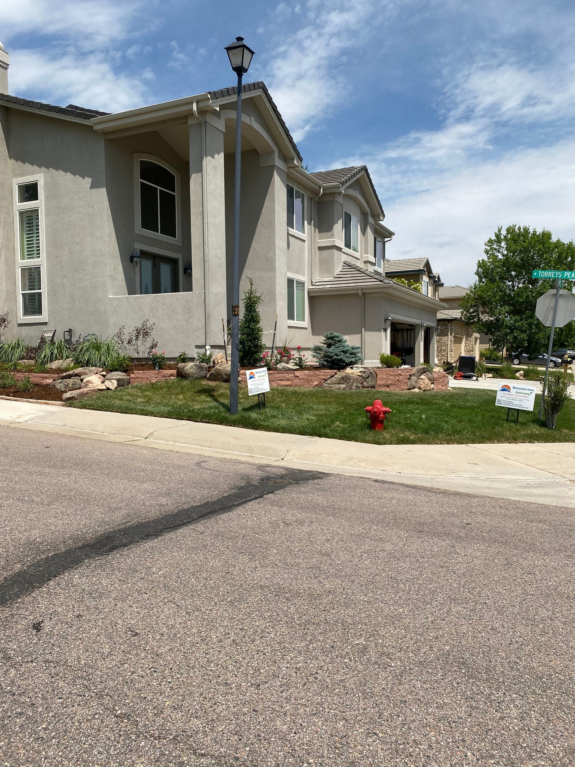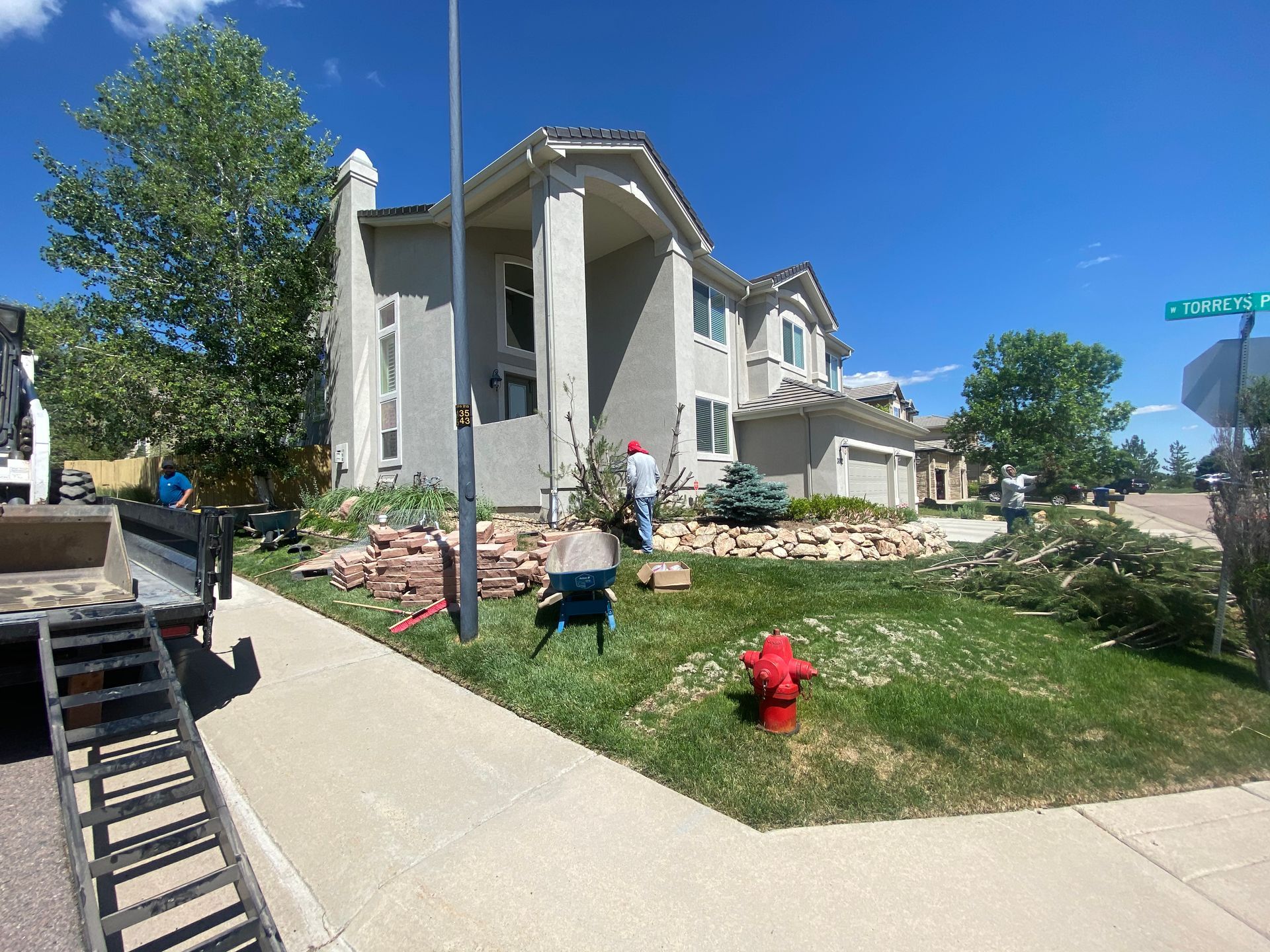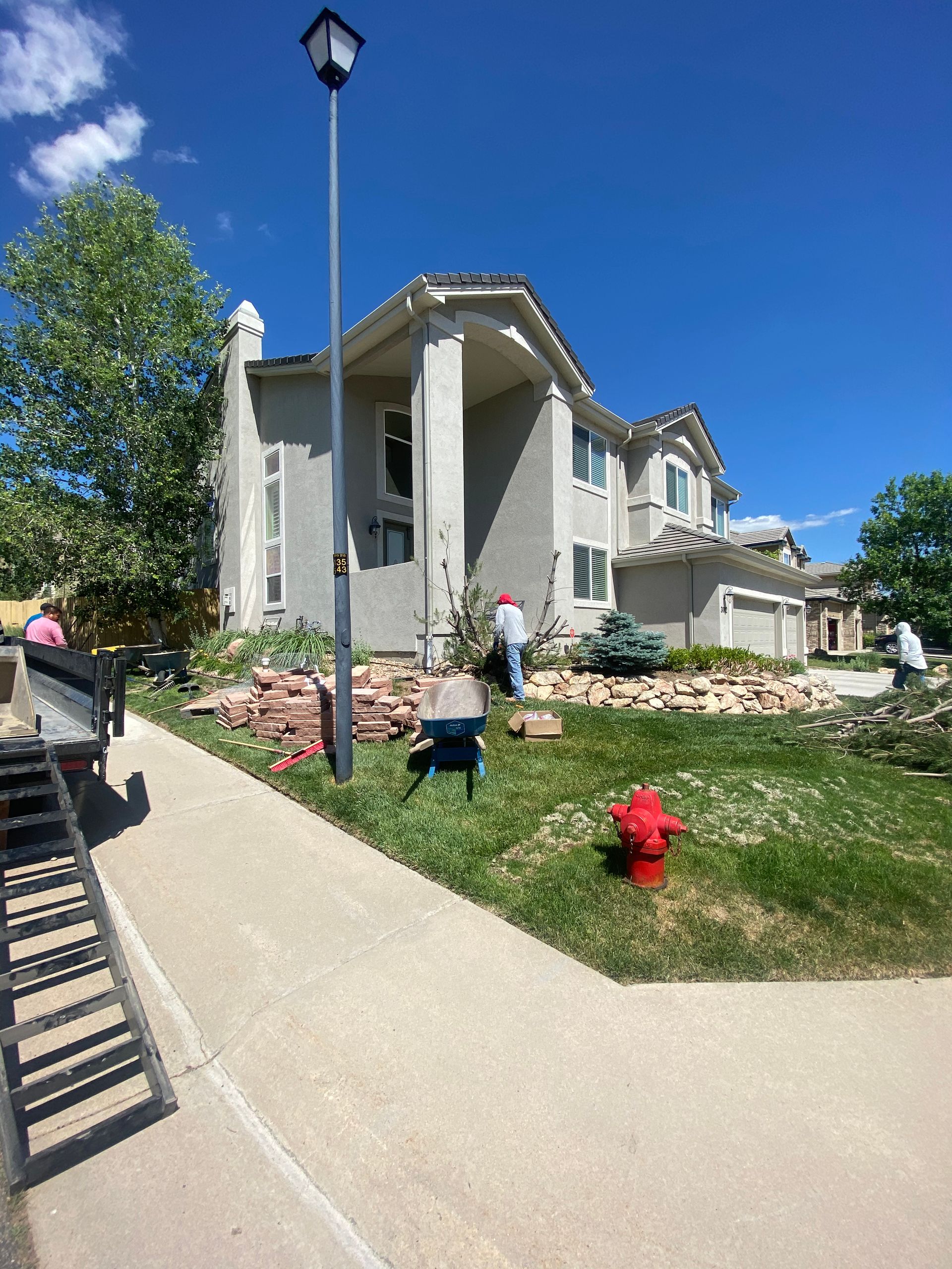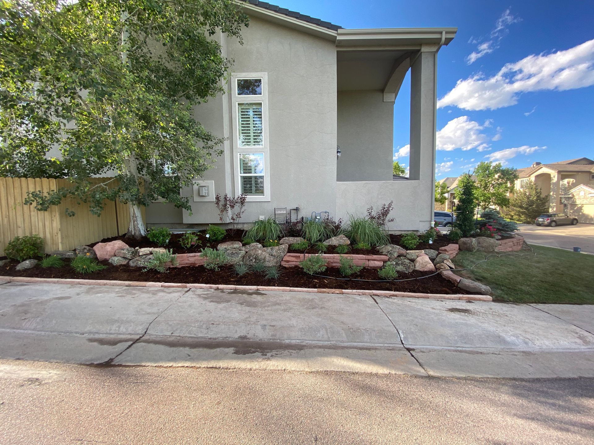 Major changes to existing landscape. Curb appeal using dry stacked Colorado red stripstone, new plants & trees, and mulch. Superior, CO 2020