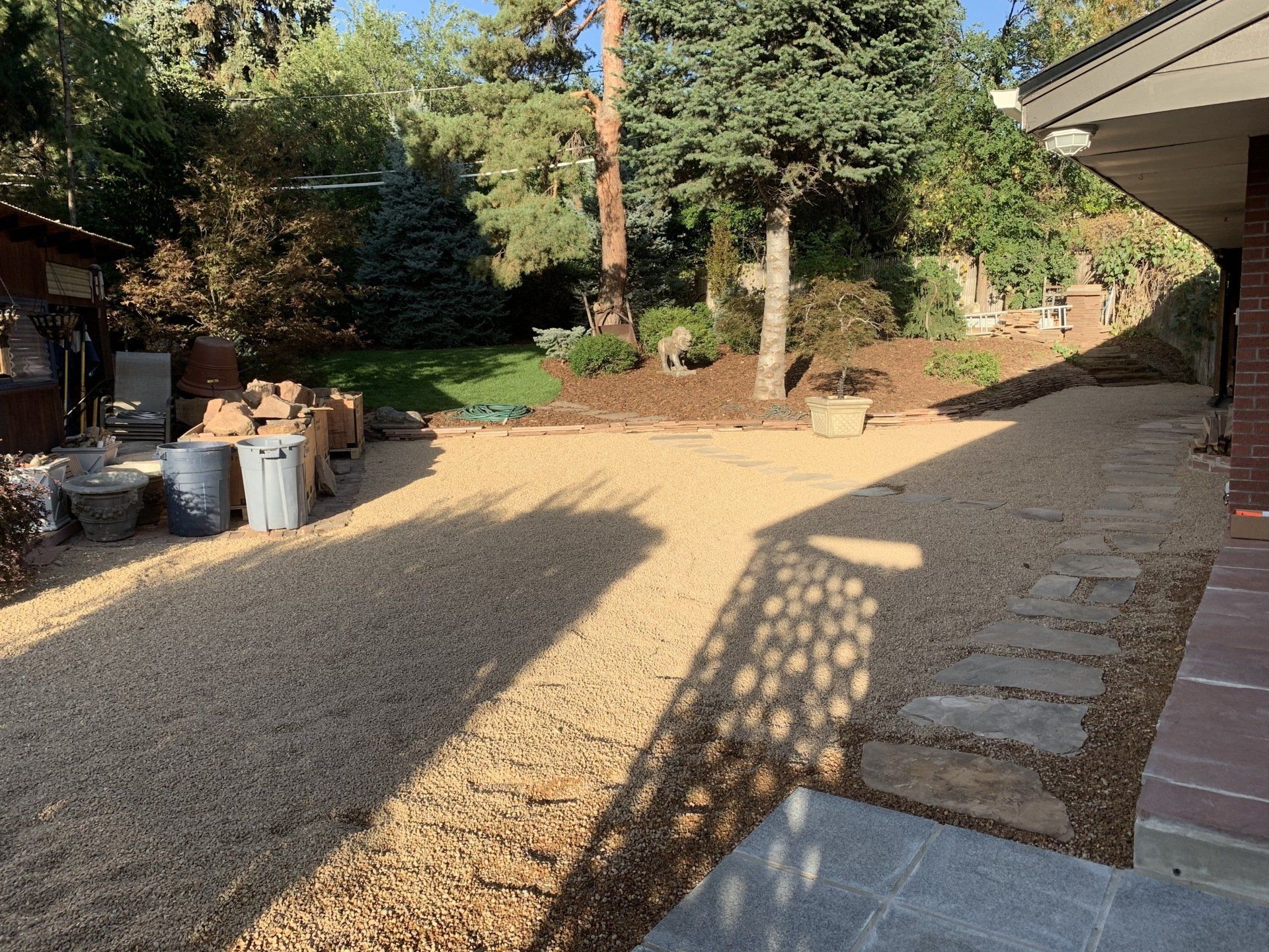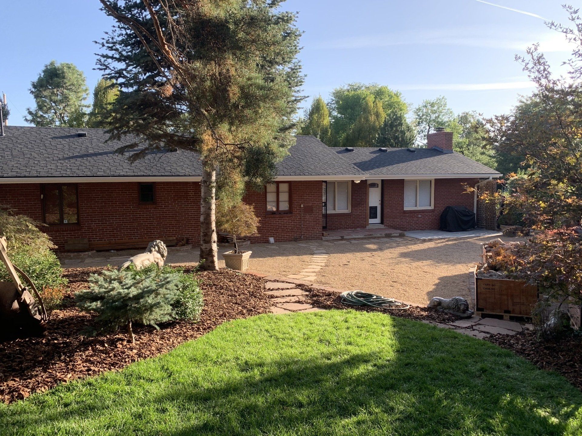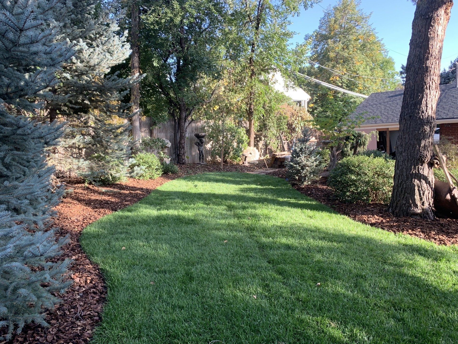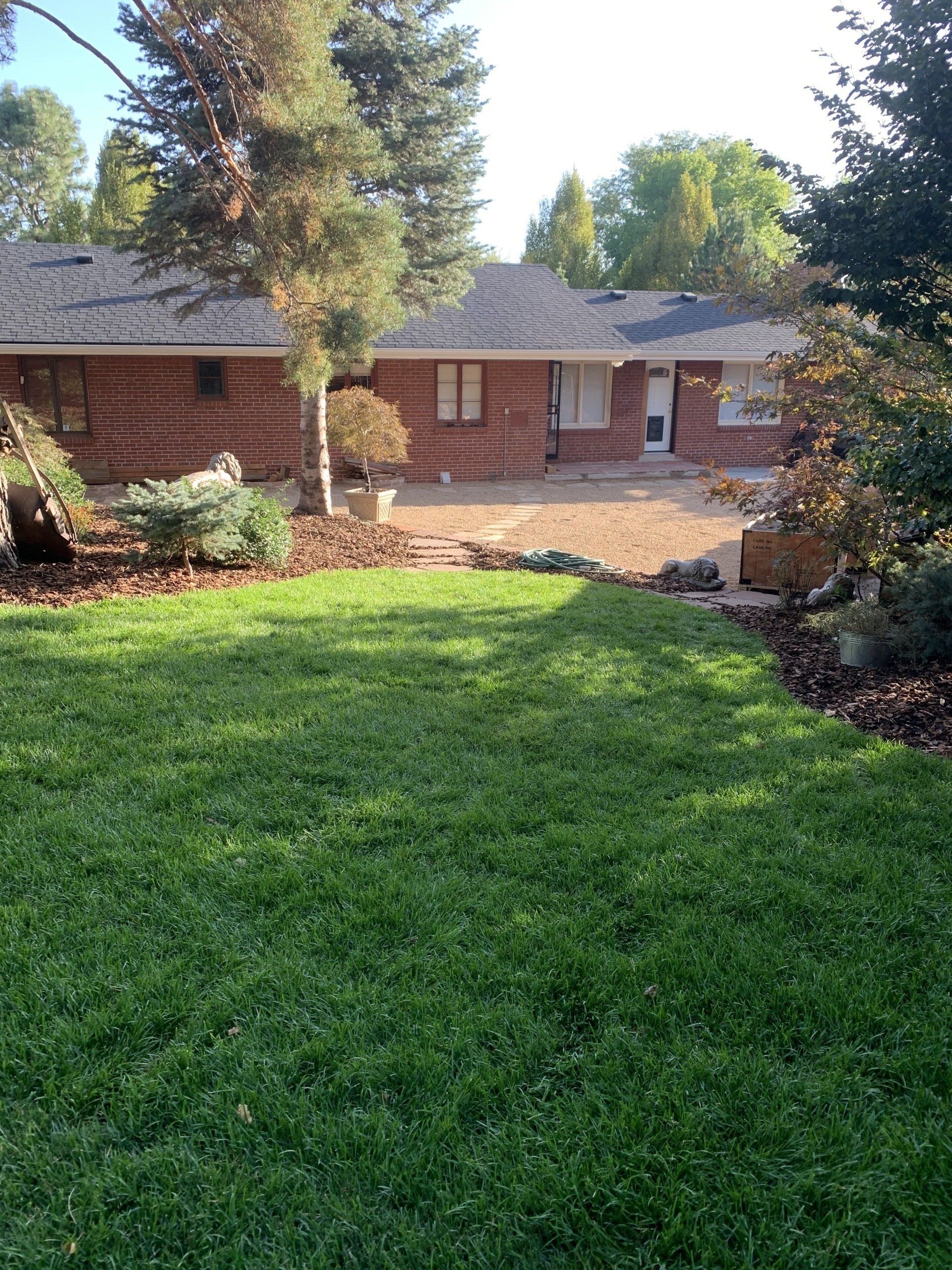 Major backyard landscaping changes! Quality grass, pea gravel, and bark mulch. Dog run solution and thick 6" of mulch installed to keep as many weeds out as possible.
