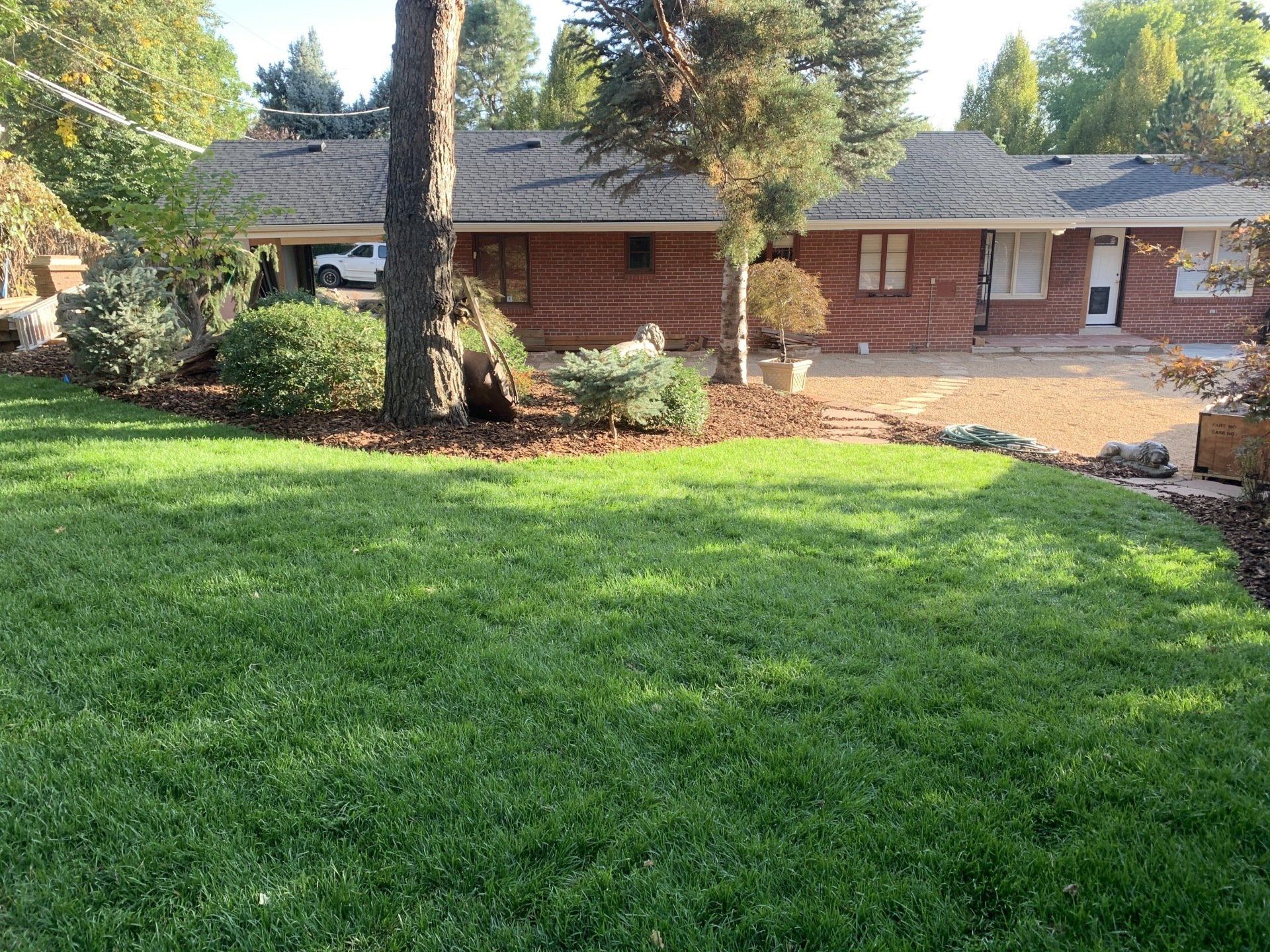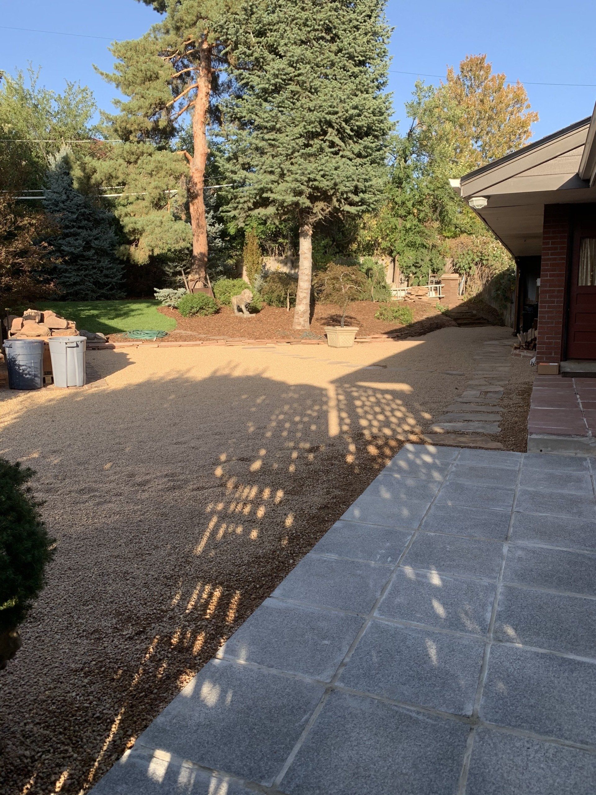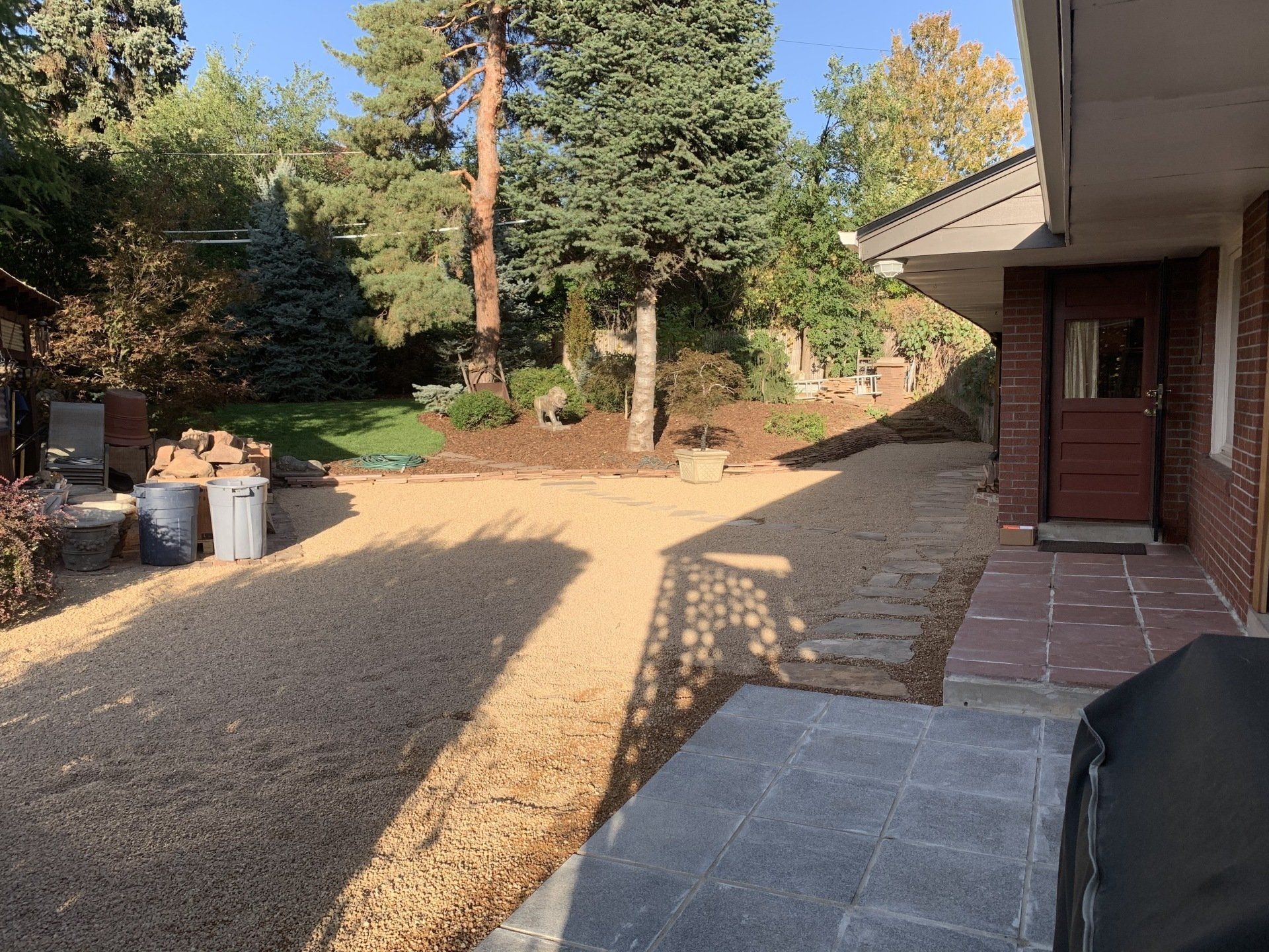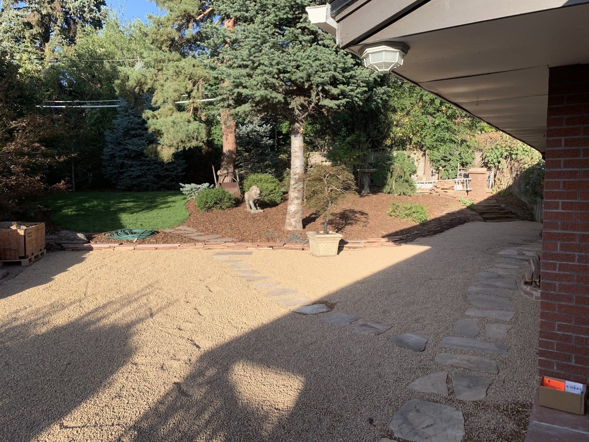Major backyard landscaping changes! Quality grass, pea gravel, and bark mulch. Dog run solution and thick 6" of mulch installed to keep as many weeds out as possible.