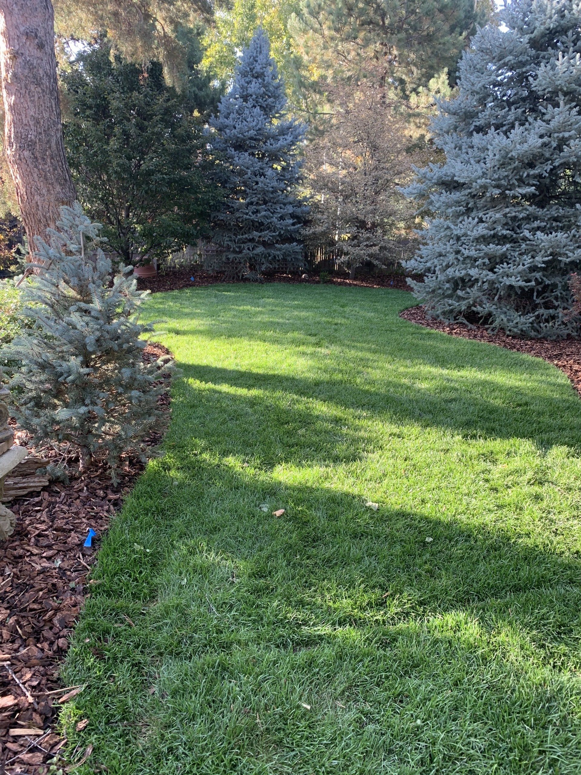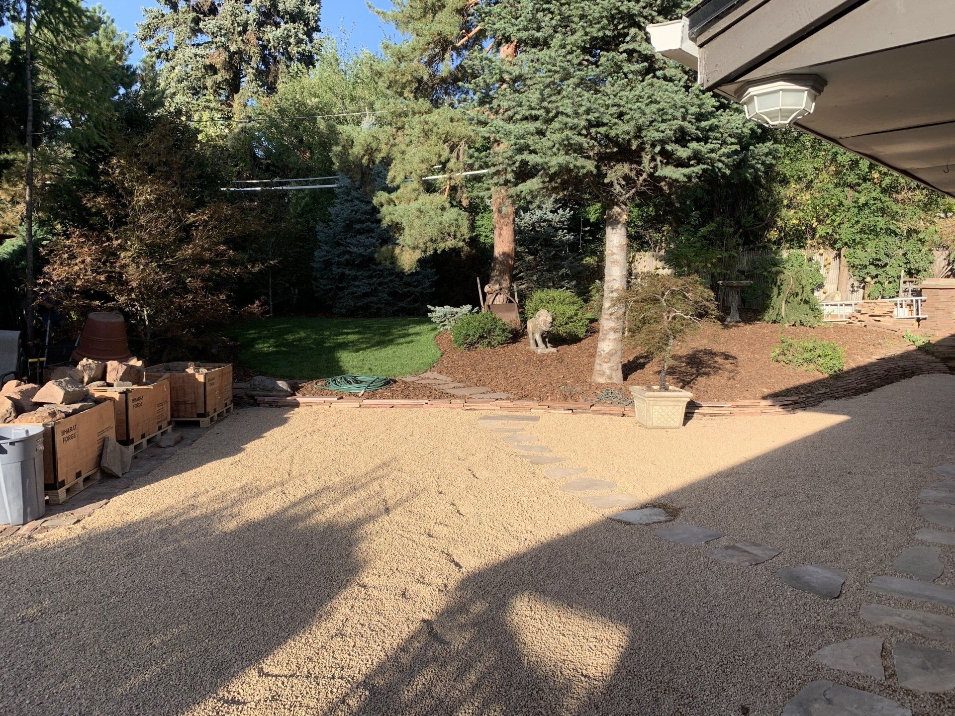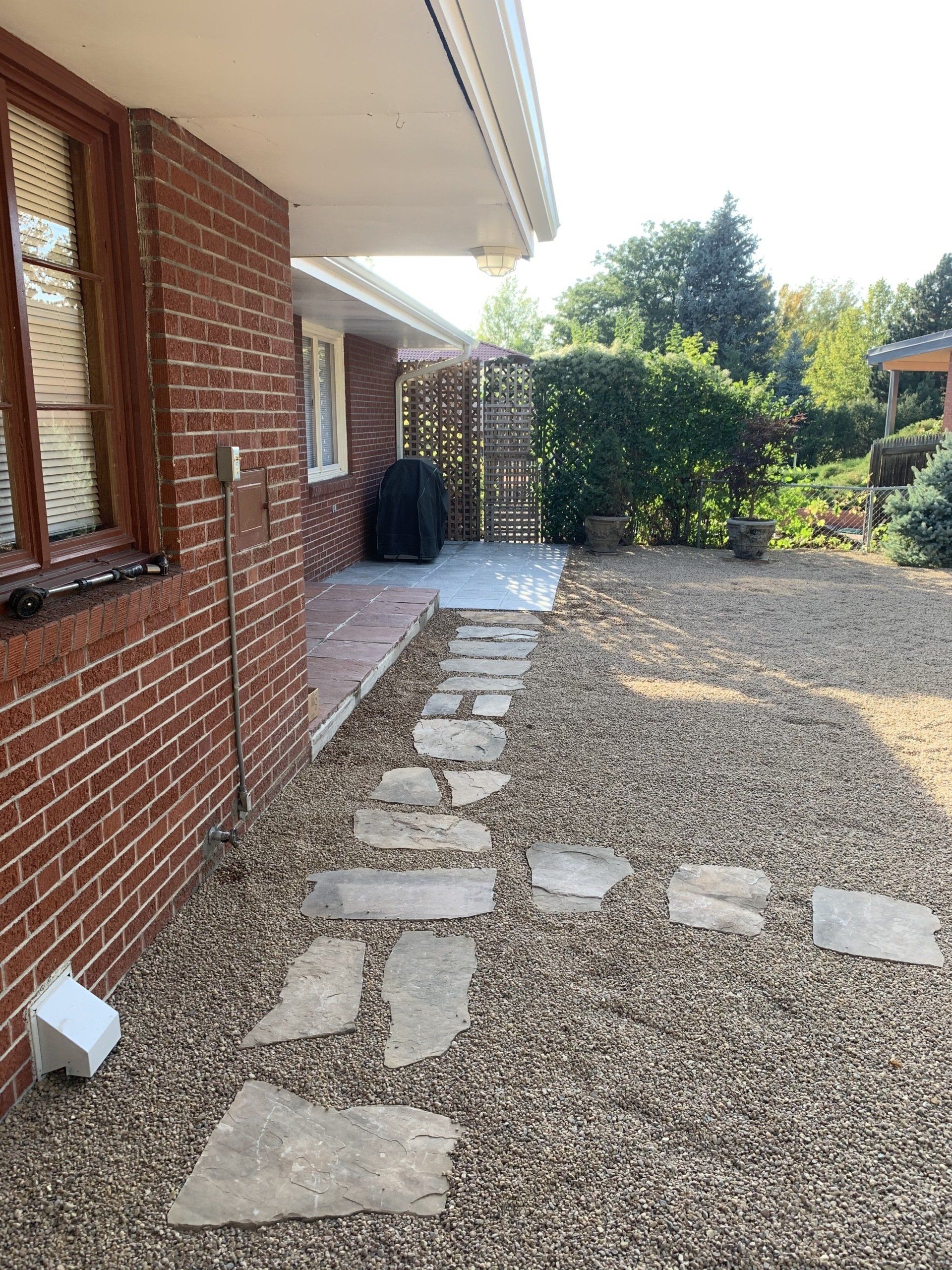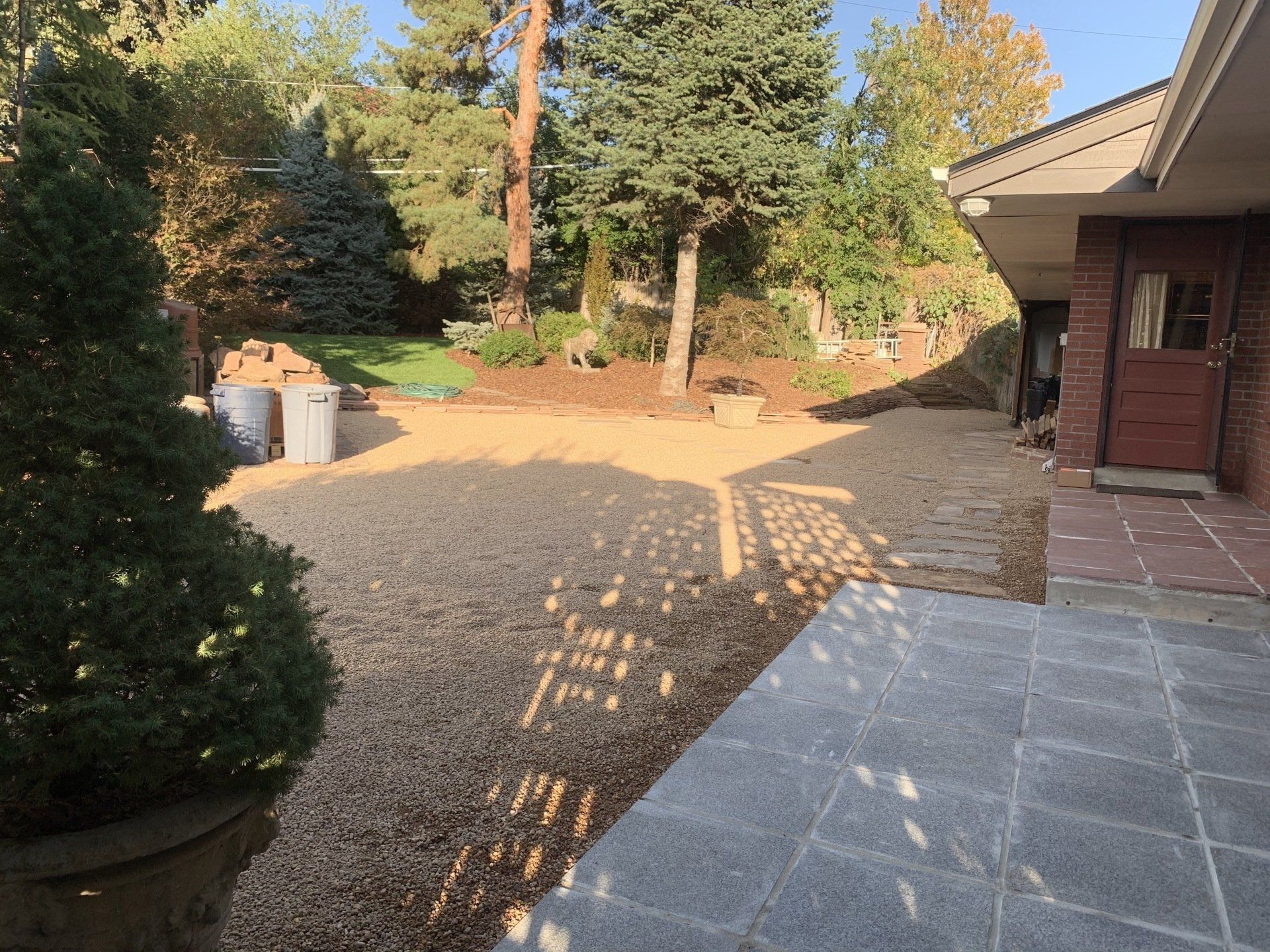 Major backyard landscaping changes! Quality grass, pea gravel, and bark mulch. Dog run solution and thick 6" of mulch installed to keep as many weeds out as possible.