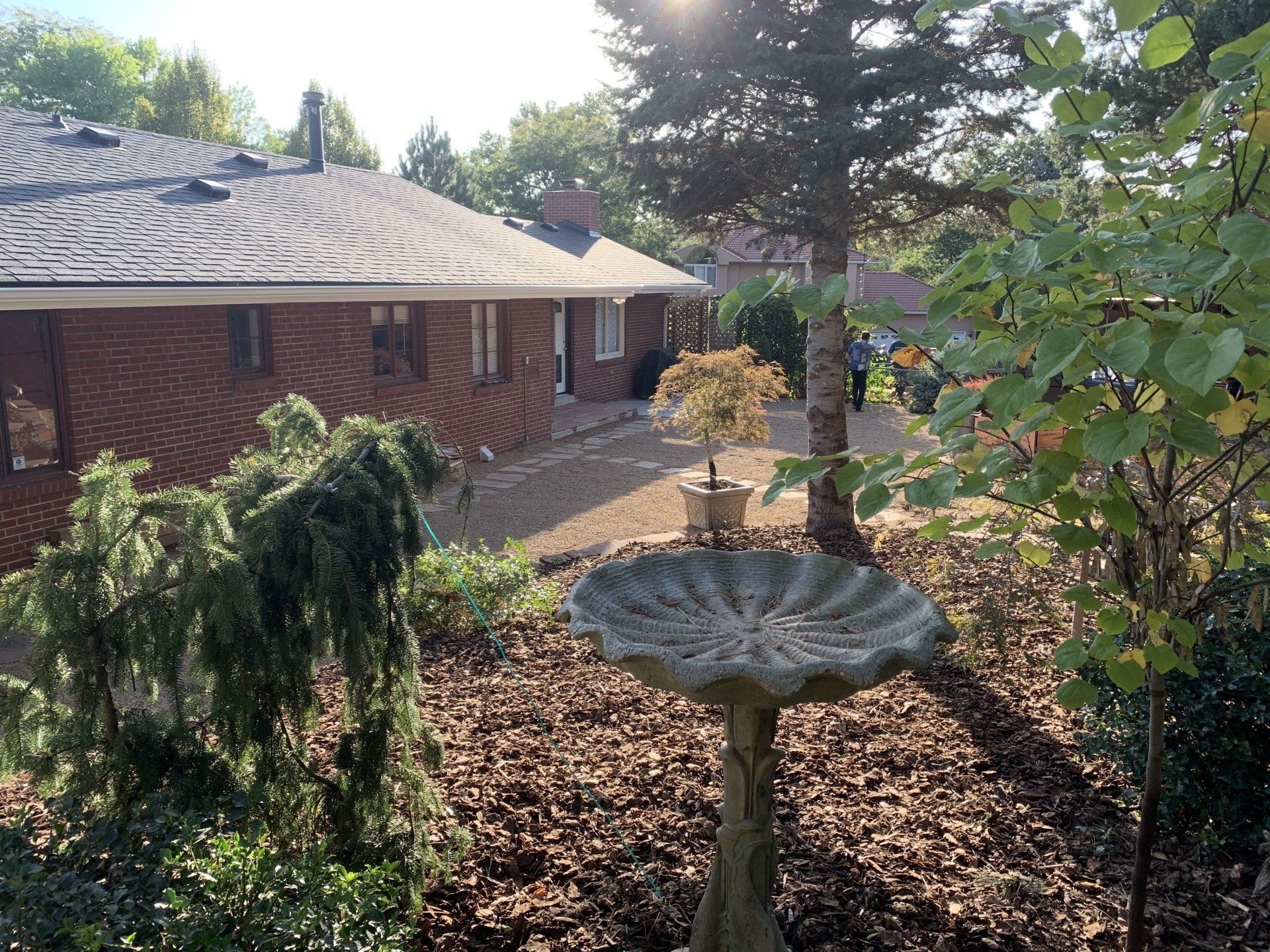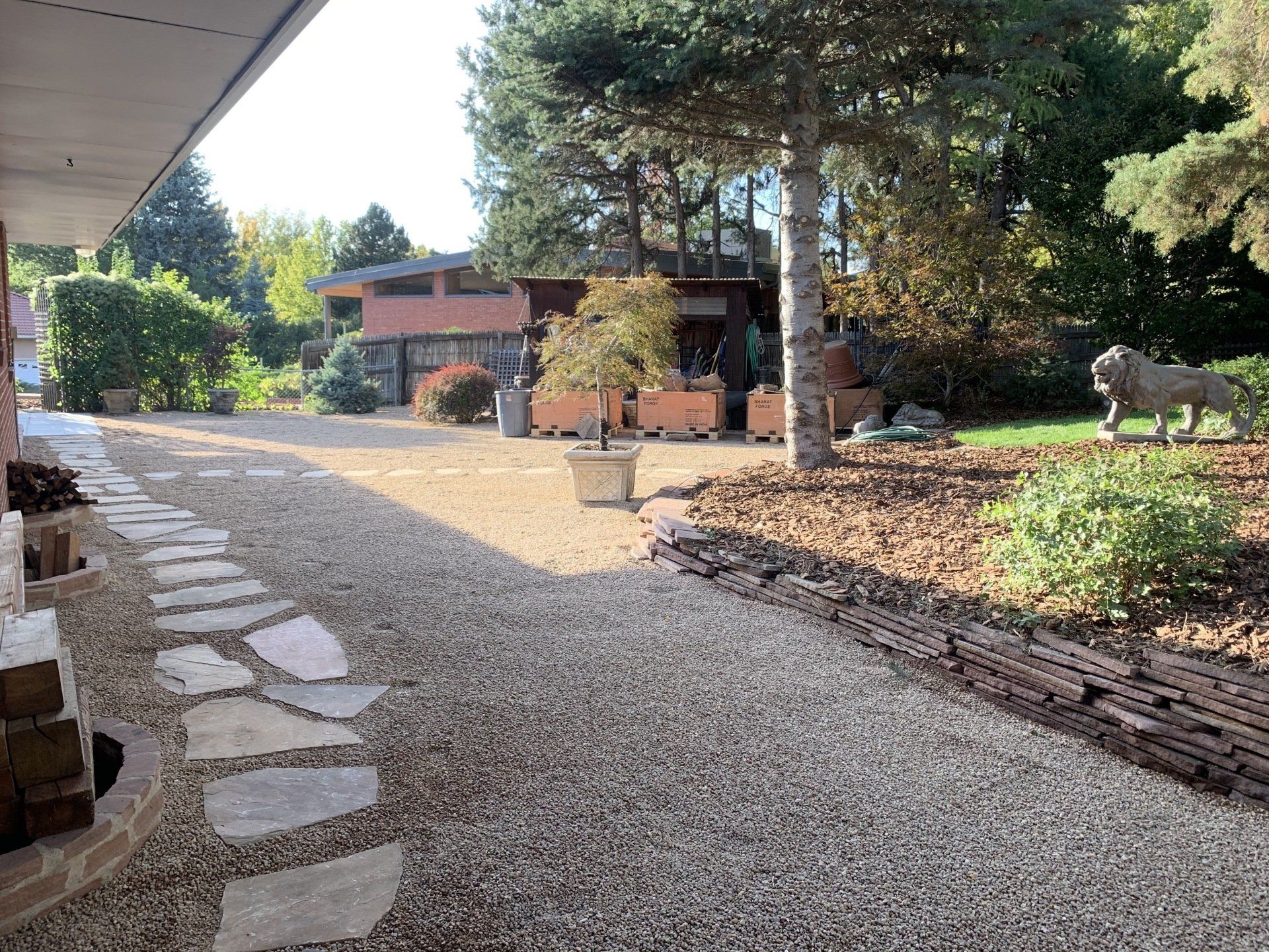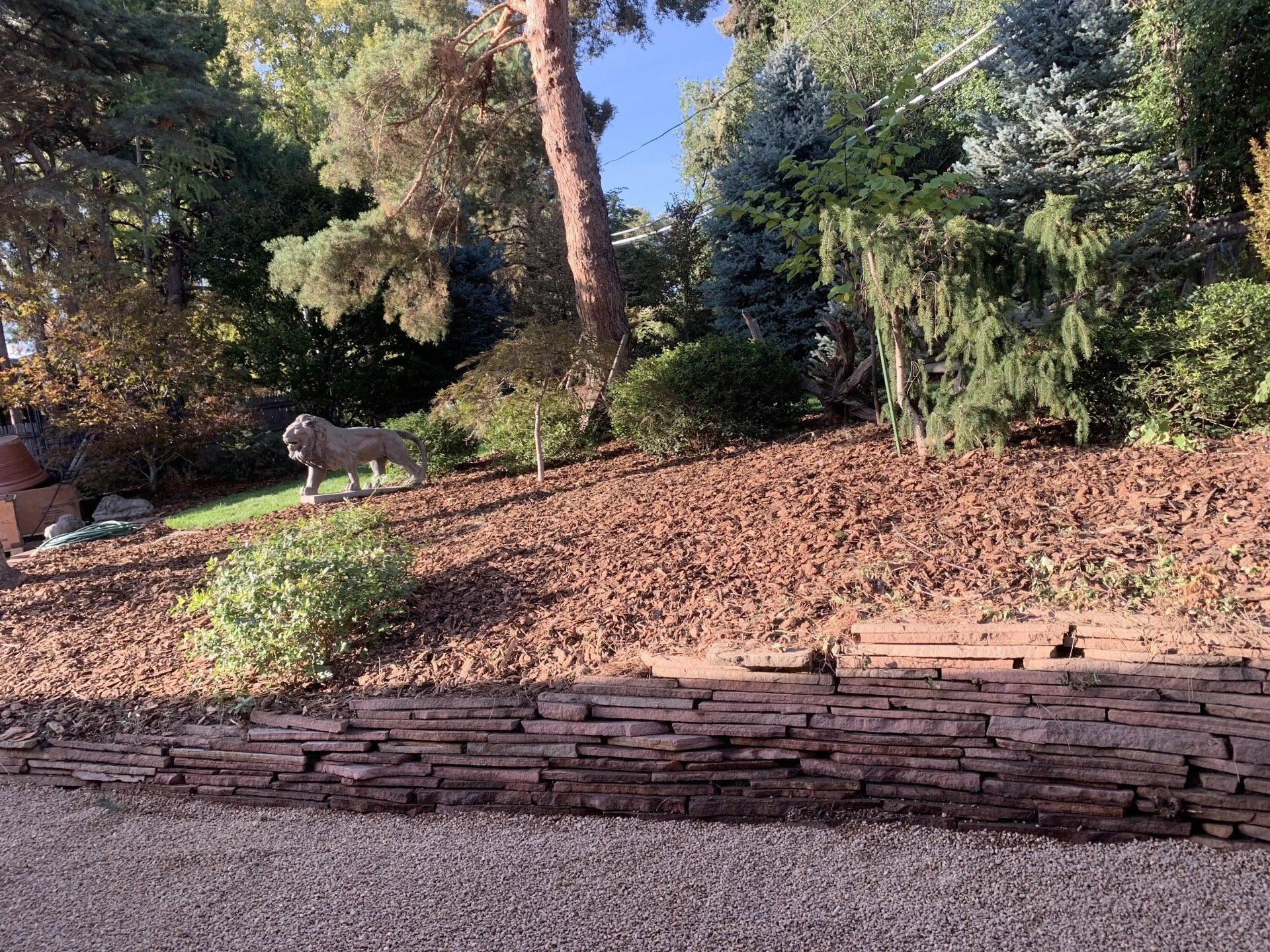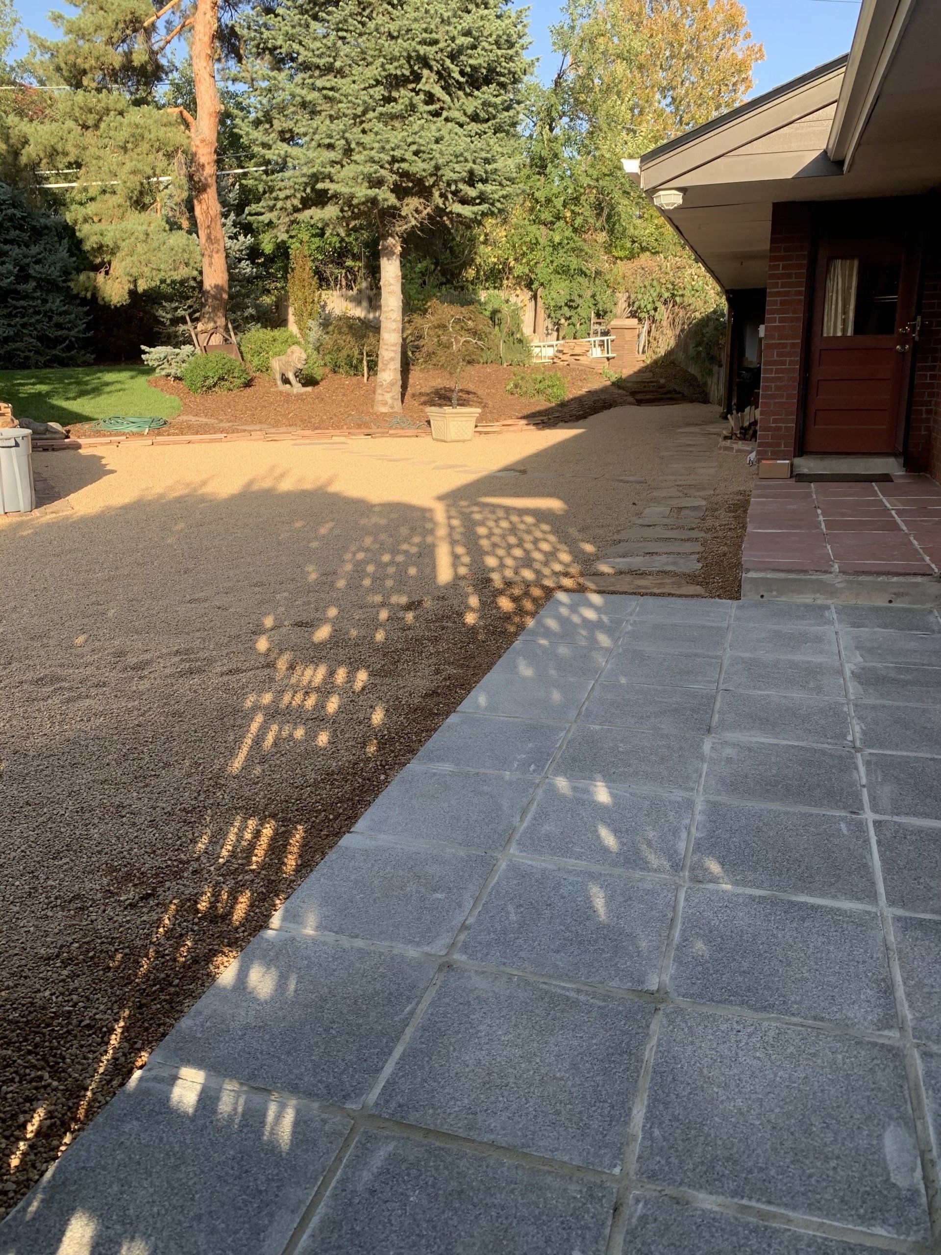 Major backyard landscaping changes! Quality grass, pea gravel, and bark mulch. Dog run solution and thick 6" of mulch installed to keep as many weeds out as possible.