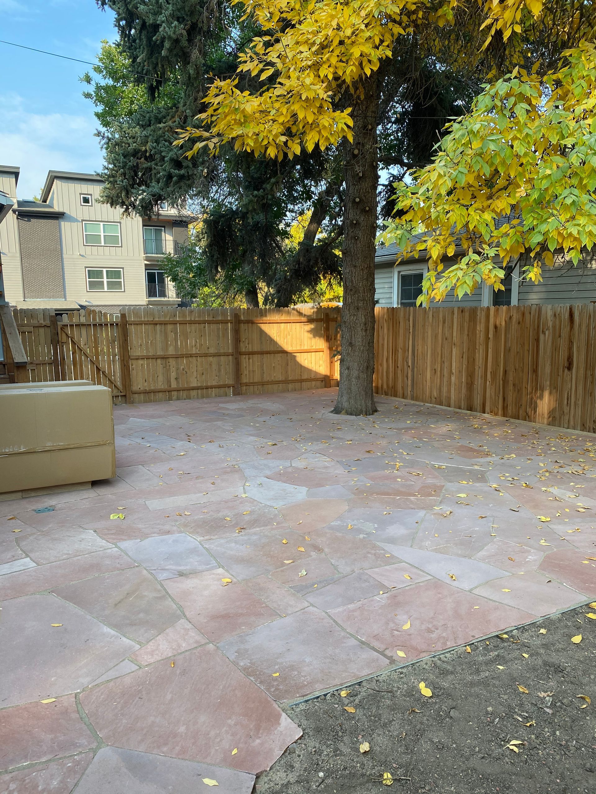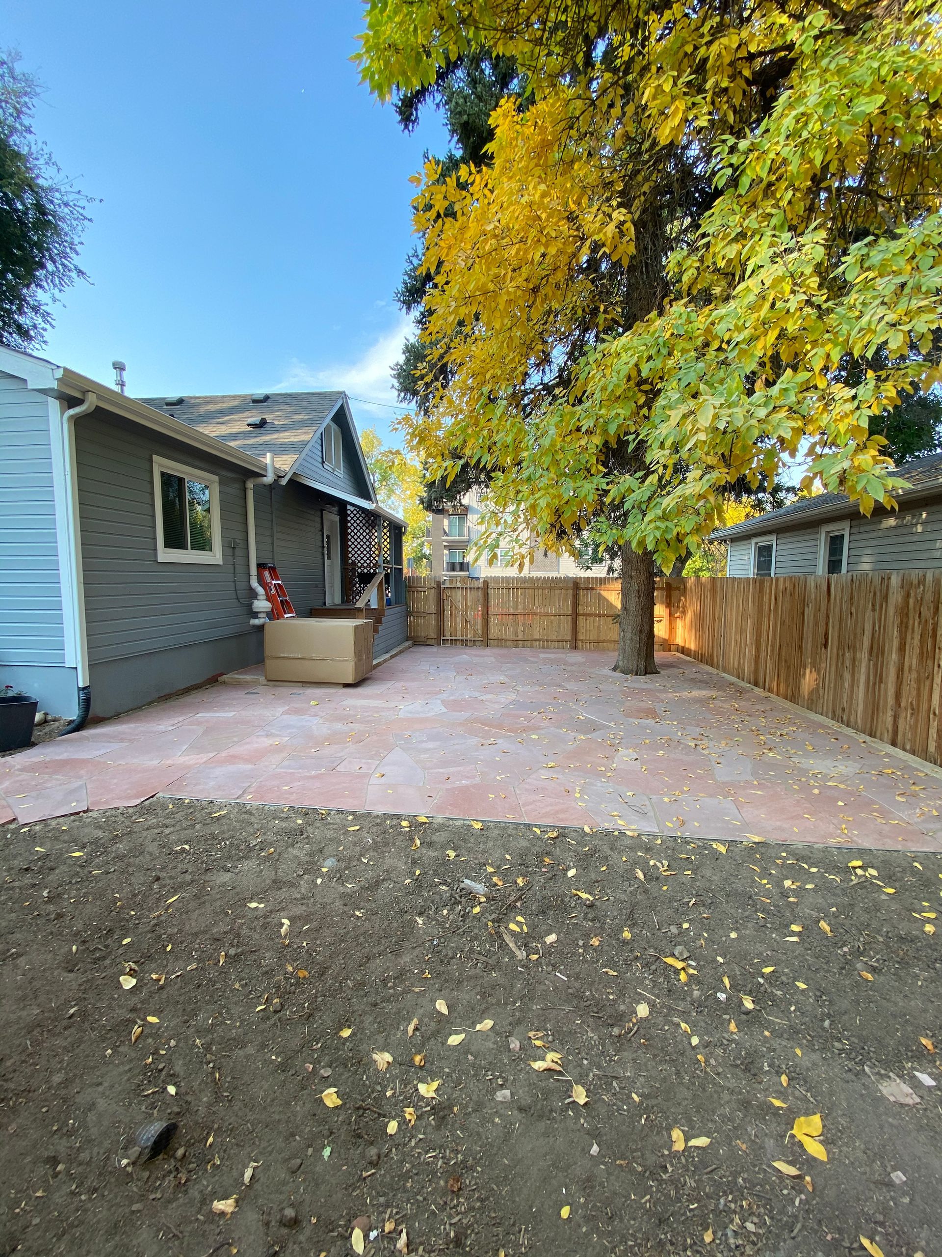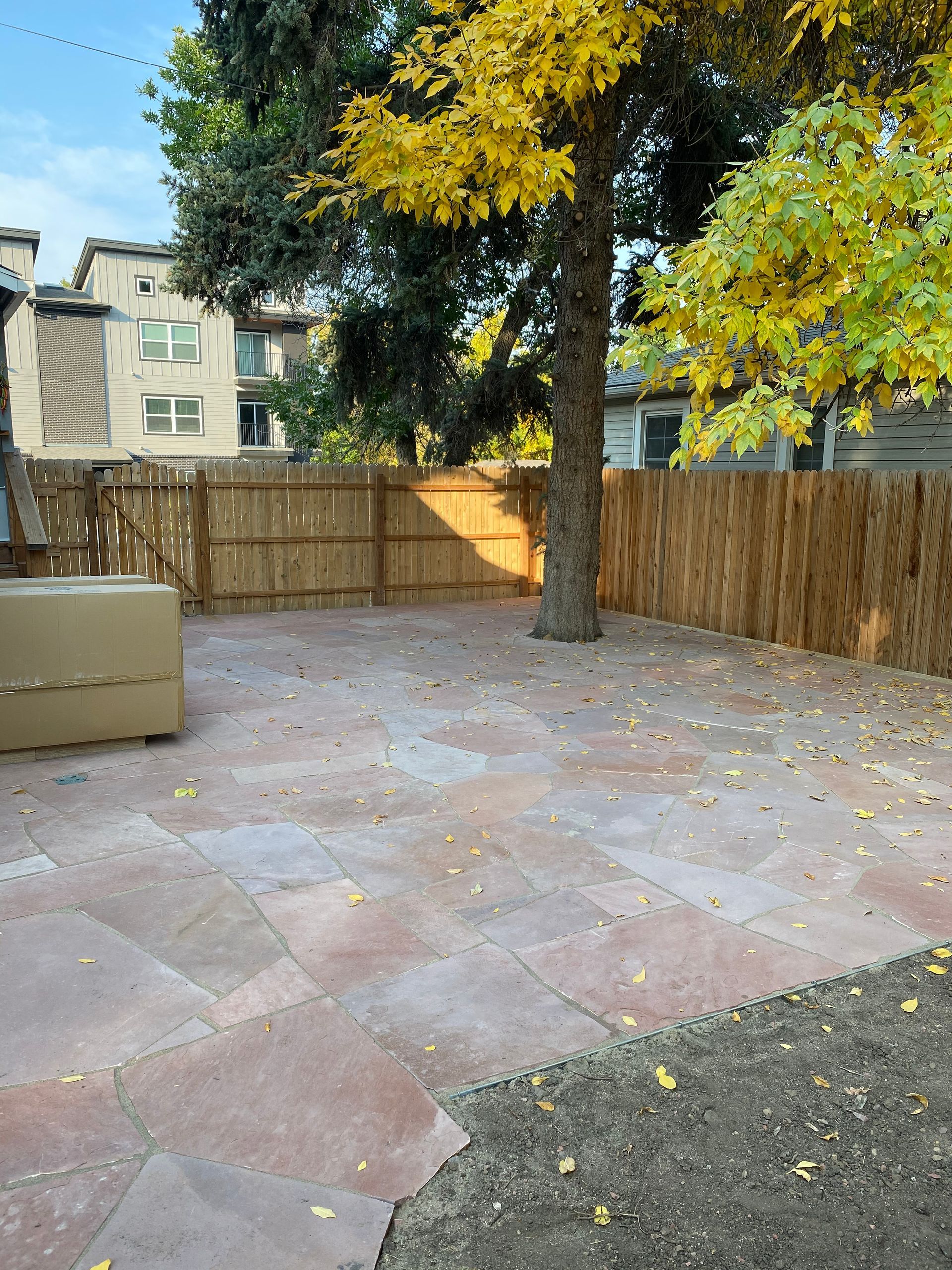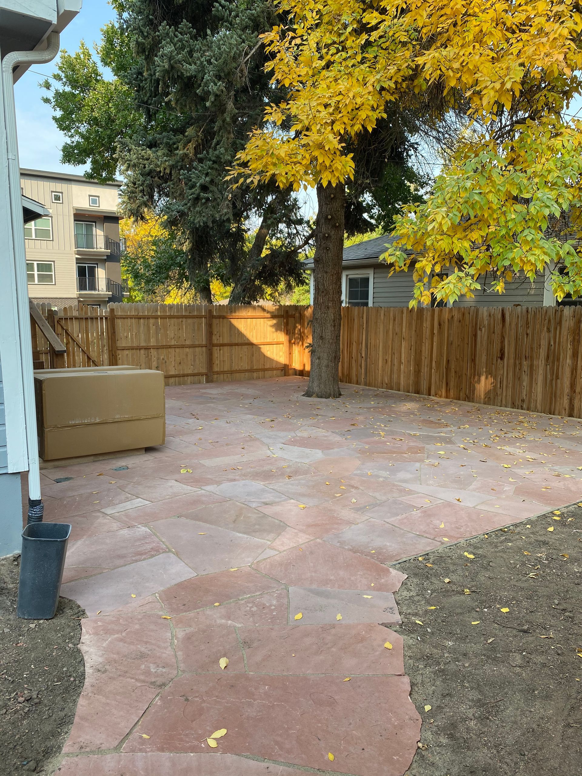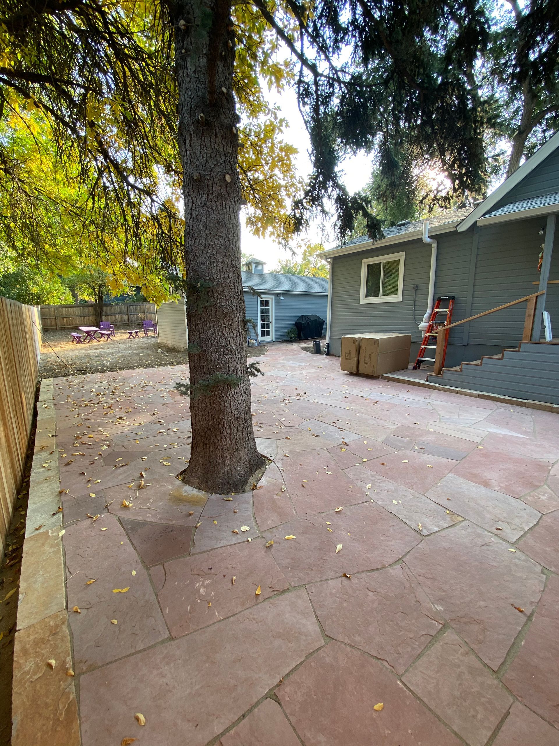 New large Colorado red flagstone patio as well as cleanup to overgrown areas in back yard. Longmont, CO 2020